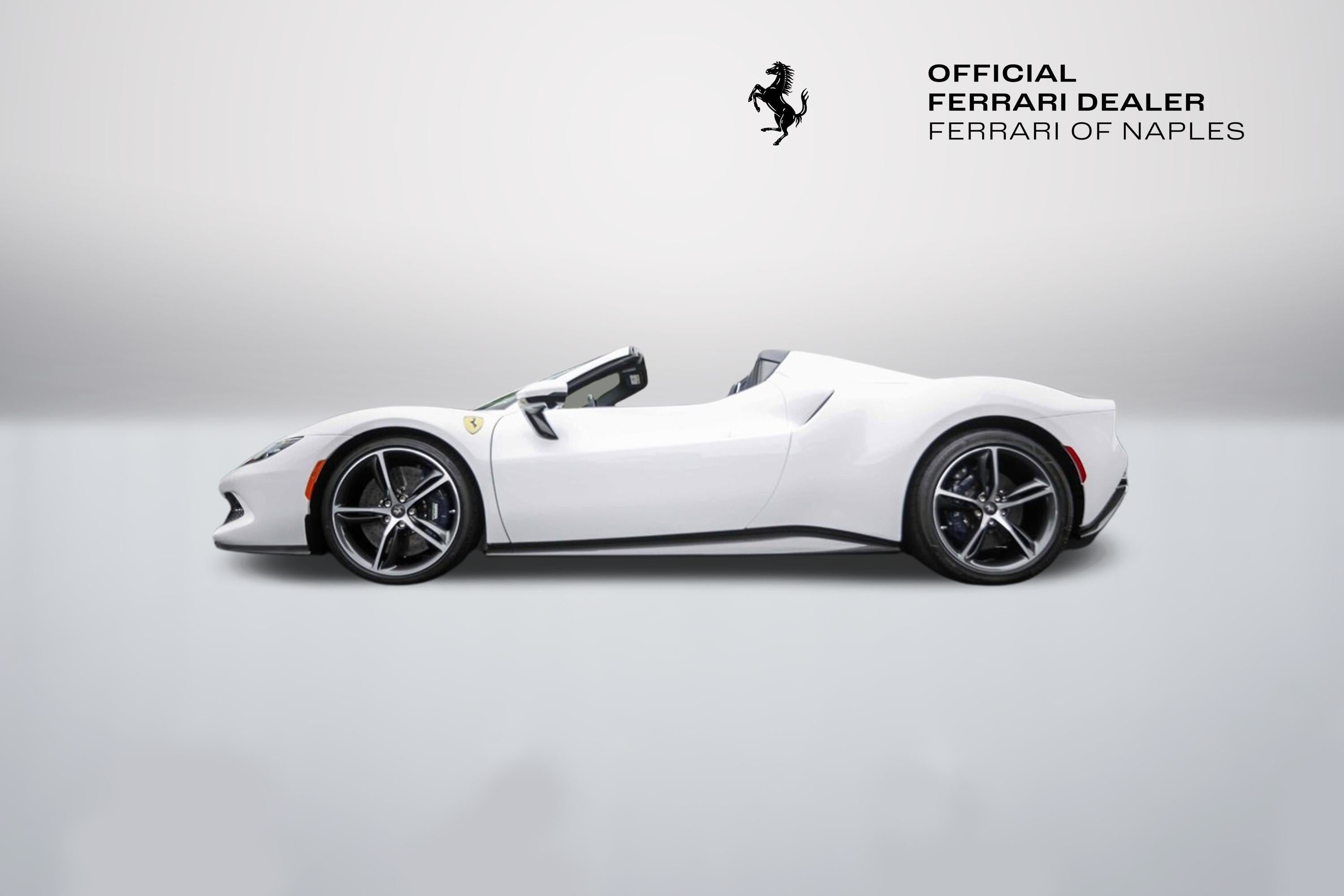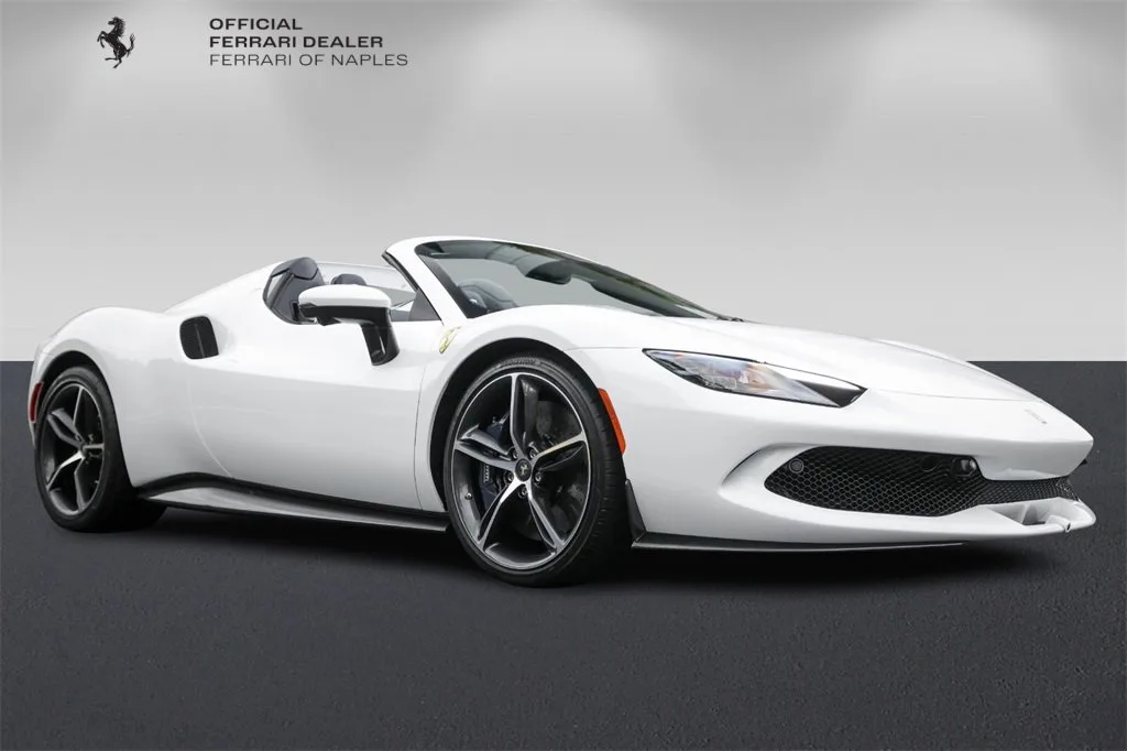 Ferrari of Naples is proud to present an exceptionally rare and exquisitely curated 2025 Ferrari 296 GTS, finished in the very rare Bianco Mille Miglia over a bespoke Blu Sterling leather interior, designed through the Ferrari Atelier program. With just 734 miles, one owner from new, and Ferrari Approved certification, this is a true collector-grade open-top Ferrari. This 296 GTS stands apart not only for its color combination--virtually unseen on modern Ferraris, but for its Atelier New York commission, featuring extensive Extracampionario materials, bespoke detailing, and carbon fiber throughout. The result is a Ferrari that is both visually stunning and historically significant. Ferrari Atelier commissions represent the highest level of factory personalization, guided directly by Ferrari designers. Exterior Bianco Mille Miglia (Special Atelier Paint) Blue brake callipers Extensive carbon fibre exterior package, including: Rear diffuser Under-door trim Front tunnel Exterior sill plates Wheel centre caps Gloss carbon front & lateral spoilers 20 diamond-polished sport wheels Titanium wheel studs Carbon fibre steering wheel with LEDs Scuderia Ferrari fender shields Interior Blu Sterling dual-colour leather interior Daytona carbon fibre racing seats (Size XL) Extracampionario leather seat piping & cabin accents Carbon fibre instrument binnacle brow Carbon fibre dashboard accents Dreamline color-matched F1 paddles Special Atelier carpets and overmats Leather-wrapped steering wheel in Blu Sterling Silver dedication nameplate & Atelier drawing plate Special contrast stitching and embroidered Cavallino headrests Equipment & Technology Apple CarPlay Adaptive Front Lighting System (AFS USA) Blind Spot Detection & Rear Radar Front suspension lift Advanced Front Driving Camera Electrochromic mirrors Surround View camera system Premium Hi-Fi audio system Wireless smartphone charger MyFerrari Connect hardware readiness Personalisation Pack & Special Features Bridgestone performance tyres As the official Ferrari dealer of Southwest Florida, Ferrari of Naples offers an exclusive selection of Ferrari models, backed by unparalleled service and expertise. Our commitment to excellence ensures that each vehicle meets the highest standards of quality and performance. To schedule a private viewing or request a personalized video tour of this 2025 Ferrari 296 GTS, please contact us: Phone: (239) 256-1400 Email: smora@newcountry.