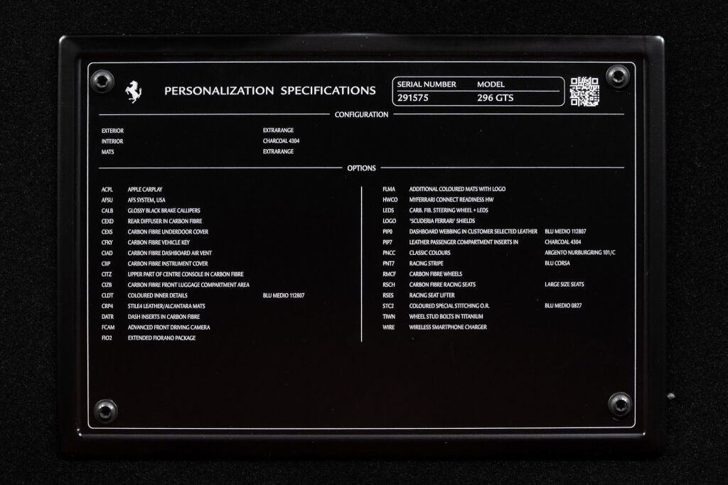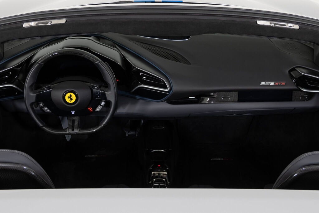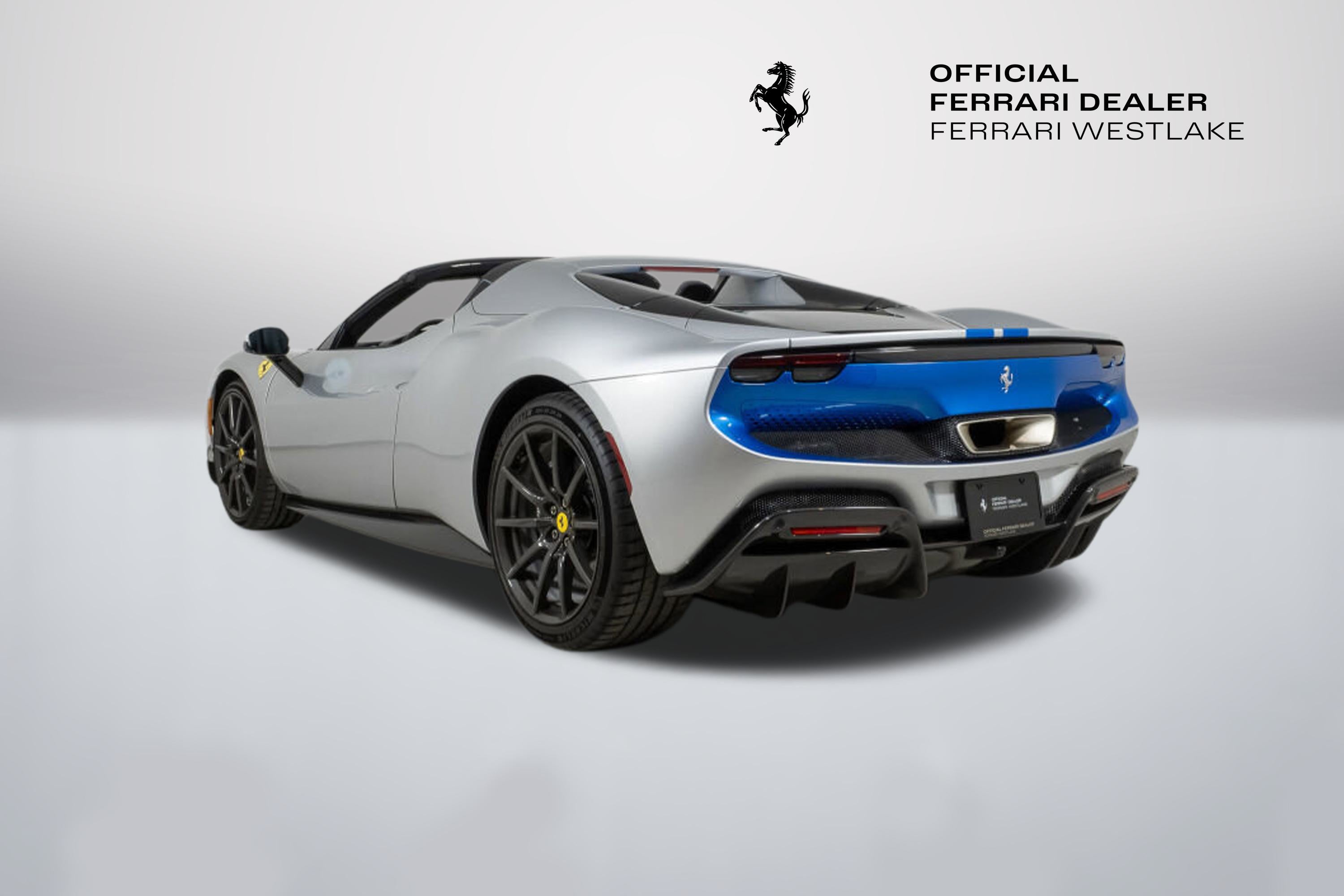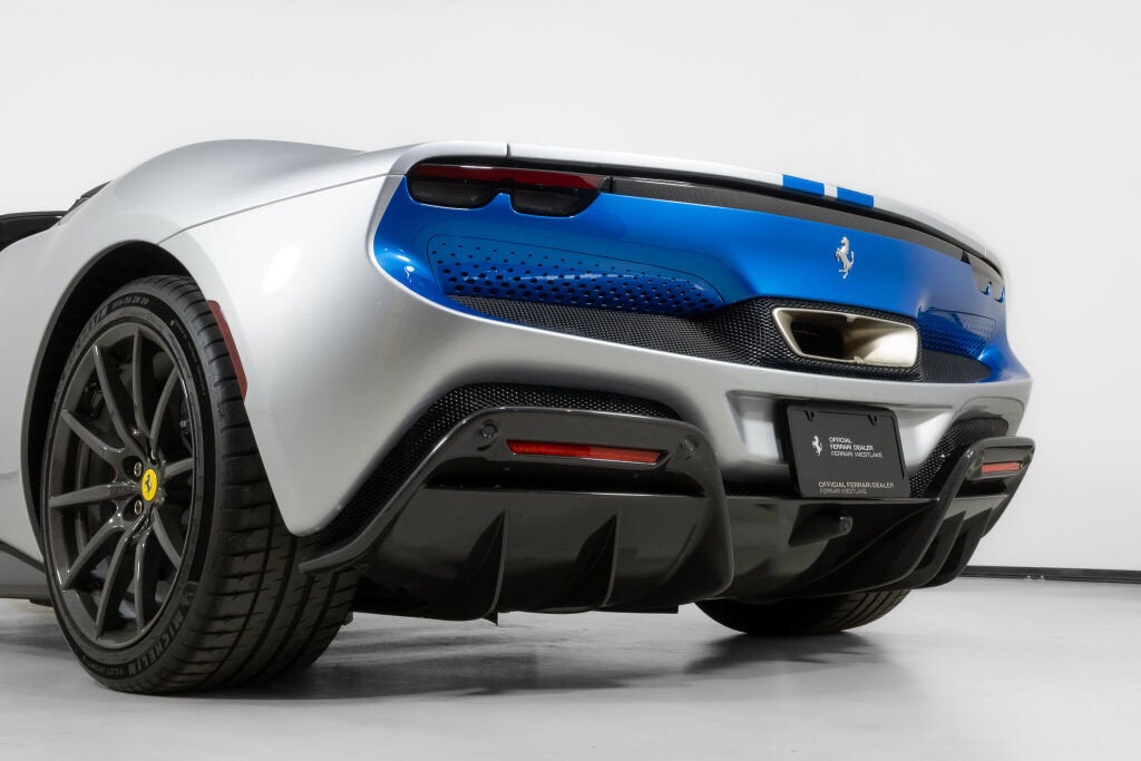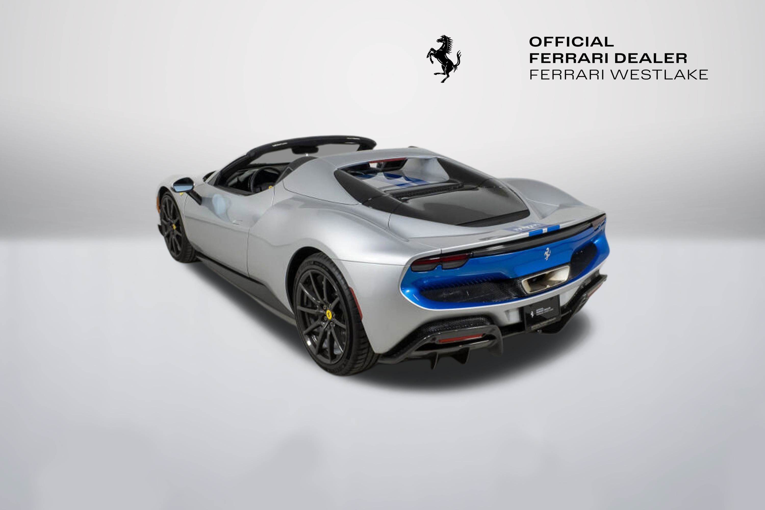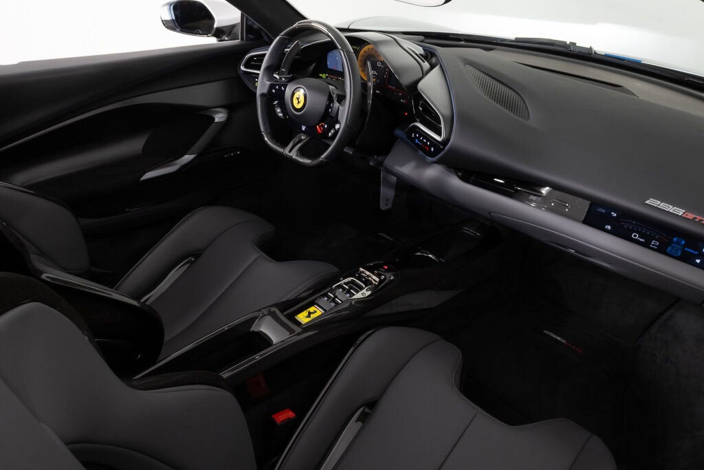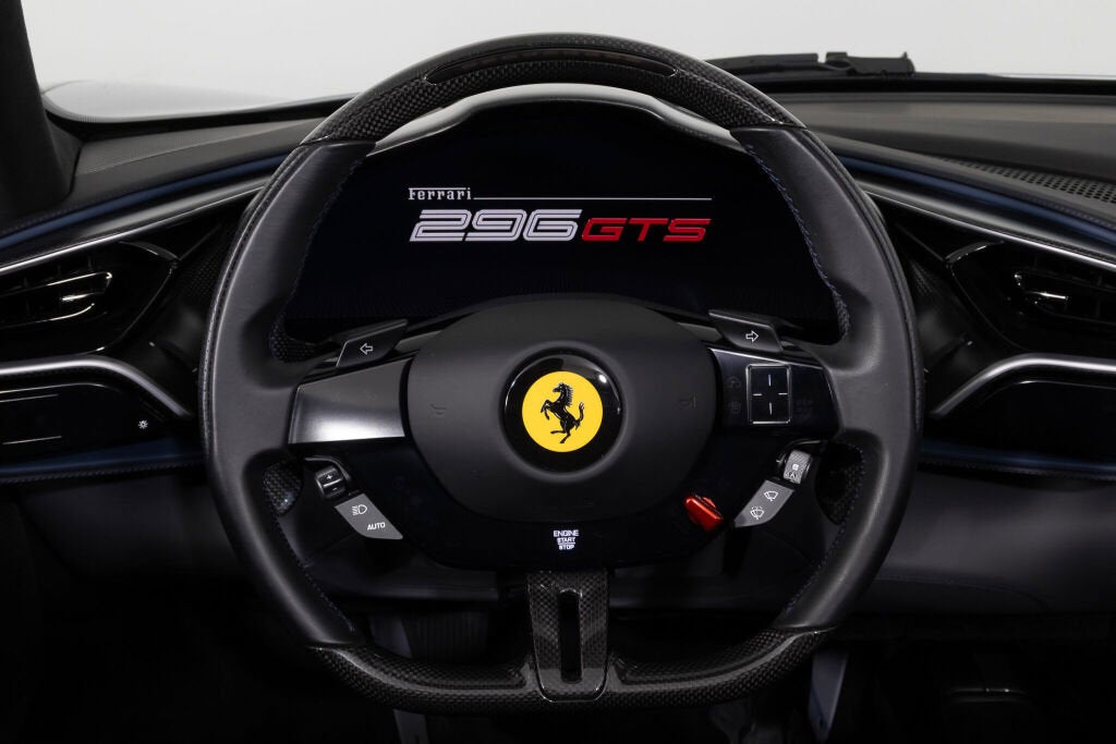 Ferrari Westlake is proud to present this exceptionally optioned 2023 Ferrari 296 GTS. Tastefully designed and superbly equipped, this example is finished in classic Argento Nürburgring paint over a Charcoal leather interior with elegant Blu Medio accents. Equipped with the desirable Assetto Fiorano Package and enhanced by a Blu Corsa racing livery, this configuration highlights Ferrari’s design and engineering excellence in its latest mid-rear-engine open-top model. Originally delivered new by Ferrari Westlake, this 296 GTS returns to us with just 1,056 miles. When developing the 296 GTS, Project Leader Mirko Statini emphasized that the soul of the car lies in its engine, explaining that the distinctive exhaust note was engineered to emulate the high-pitched tone of a V12 earning the V6 hybrid the nickname piccolo V12. An 8,500-rpm redline delivers a truly visceral driving experience, while four selectable drive modes eDrive, Hybrid, Performance, and Qualify offer progressively heightened performance characteristics. With its retractable hard top and cutting-edge hybrid powertrain, the Ferrari 296 GTS delivers open-air exhilaration without compromise. It’s 819-horsepower plug-in hybrid V6 accelerates from 0 60 mph in just 2.9 seconds, matching the impressive pace of the 296 GTB. Designed as a spiritual successor to Ferrari’s iconic open-top V6 models, the GTS blends timeless elegance with the most advanced driver engagement in Ferrari’s current lineup. Exterior Factory Upgrades Include:
