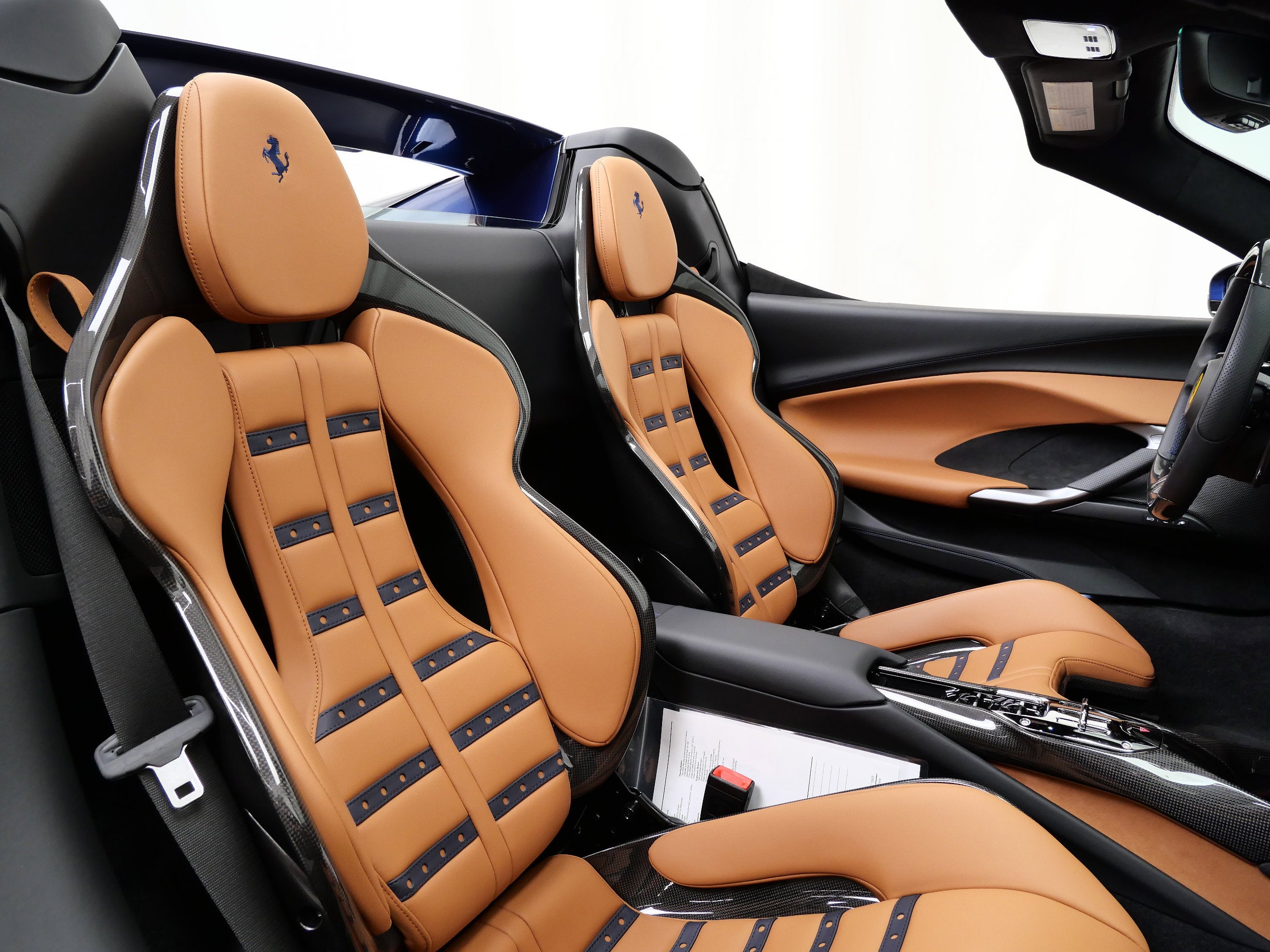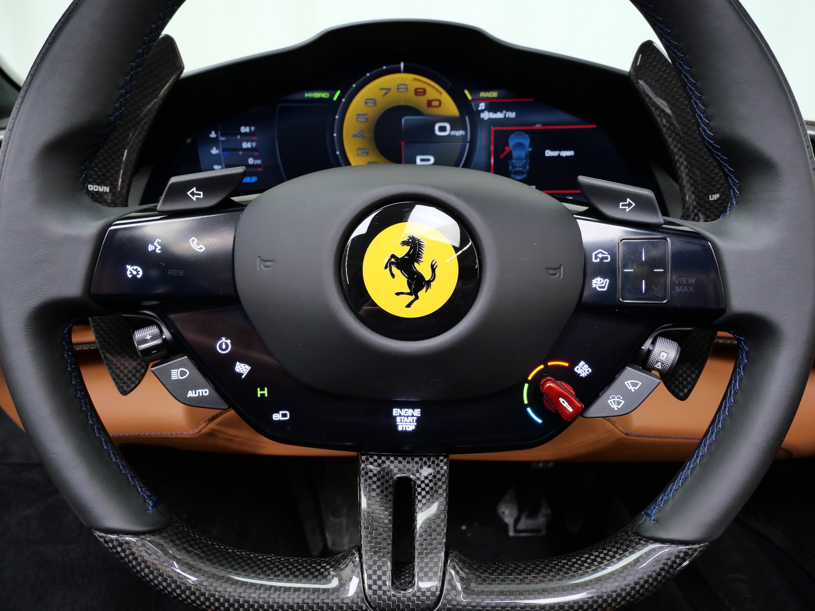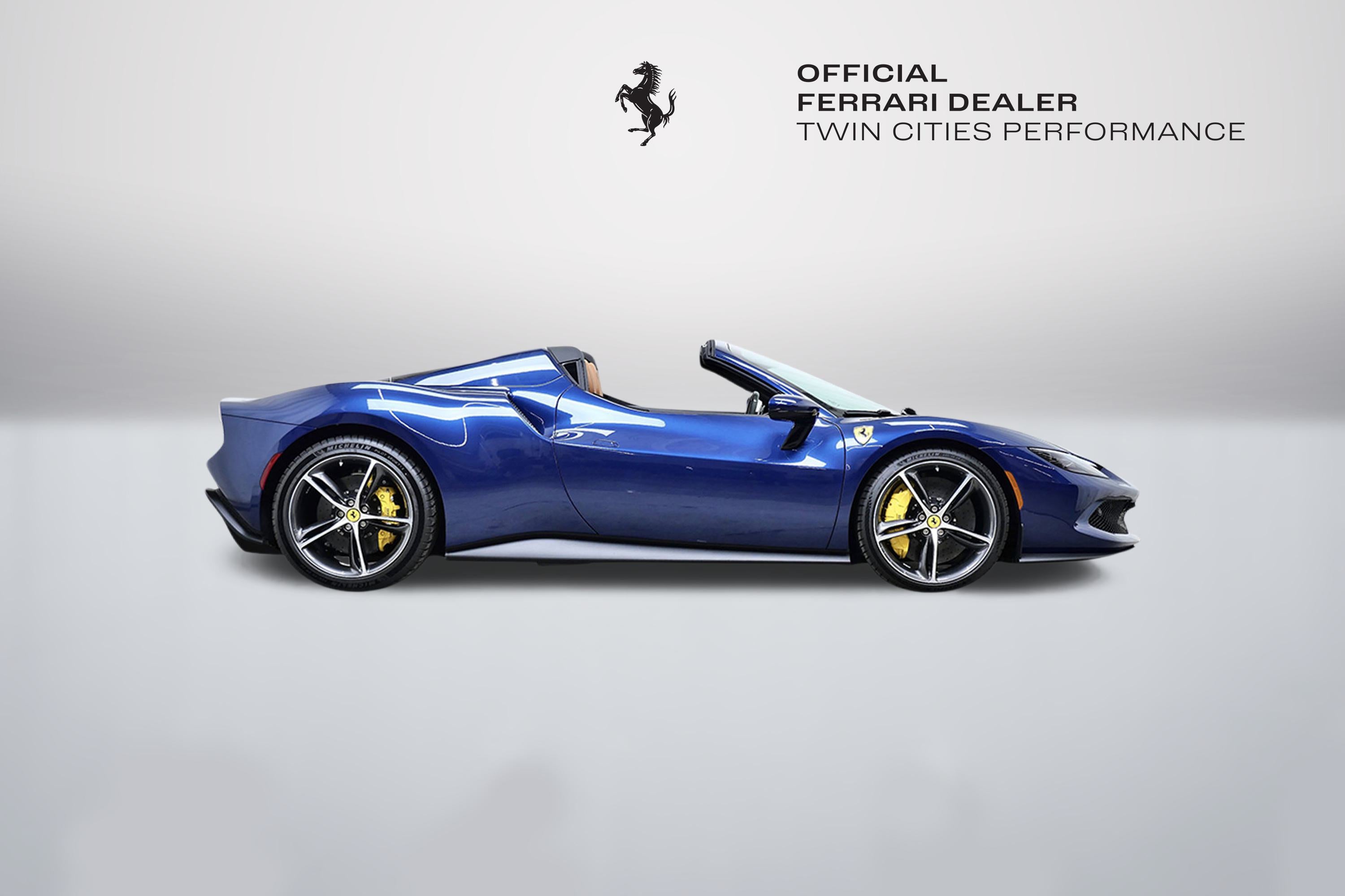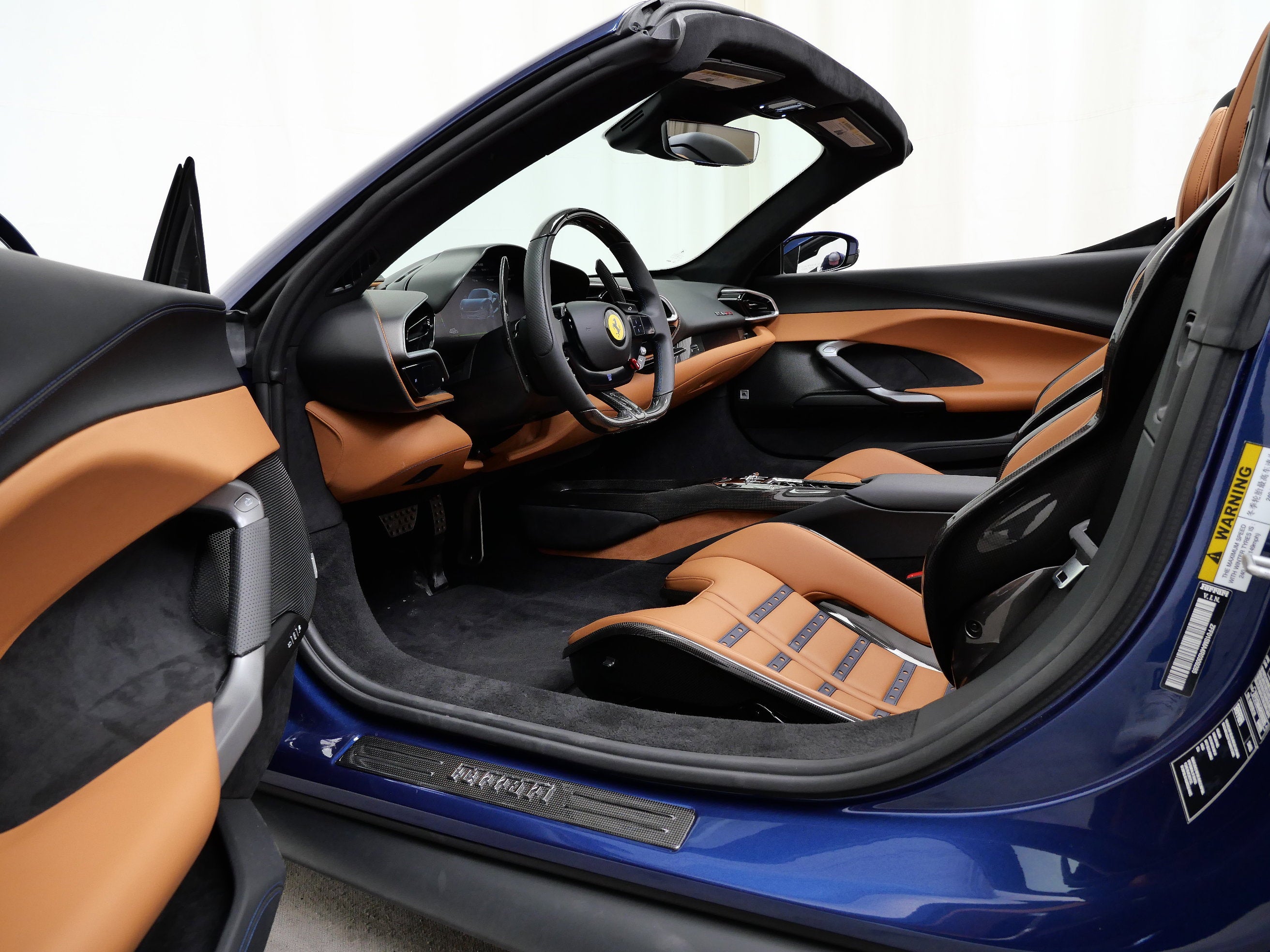 Ferrari Approved Certified Pre-Owned CPO. Options: Blu Tour De France over Cuoio Leather Race Seats, Giallo Modena Calipers, Black Finish Exhaust, Scuderia Ferrari Shields, 20" Forged Wheels Diamond Cut, Titanium Wheel Studs, Carbon Fiber Sill Plate, Carbon Fiber Tunnel, Carbon Fiber Dashboard, Embroidered Horse in Blu, Carbon Fiber LED Steering Wheel, Cuoio Leather Accents, Daytona Carbon Fiber Race Seats, Manual Ratch Racing Seat Lifter, Blu Contrast Stitching, Blu Sterling Daytona Seat Inserts, Apple CarPlay, Adaptive Front Headlight System, Blind Spot Detection and Back Radar, Suspension Lifter, Advanced Front Driving Camera, Homelink Garage Door Opener, Electrochormic Auto Dimming Mirrors, Front Parking Sensors, Premium Hifi Premium Sound, Wireless Smartphone Charger. Blu Tour de France Metallic 2024 Ferrari 296 GTS RWD 8 Speed Dual Clutch 3.0L V6 DOHC 24V Ferrari Approved Details: