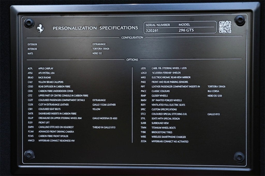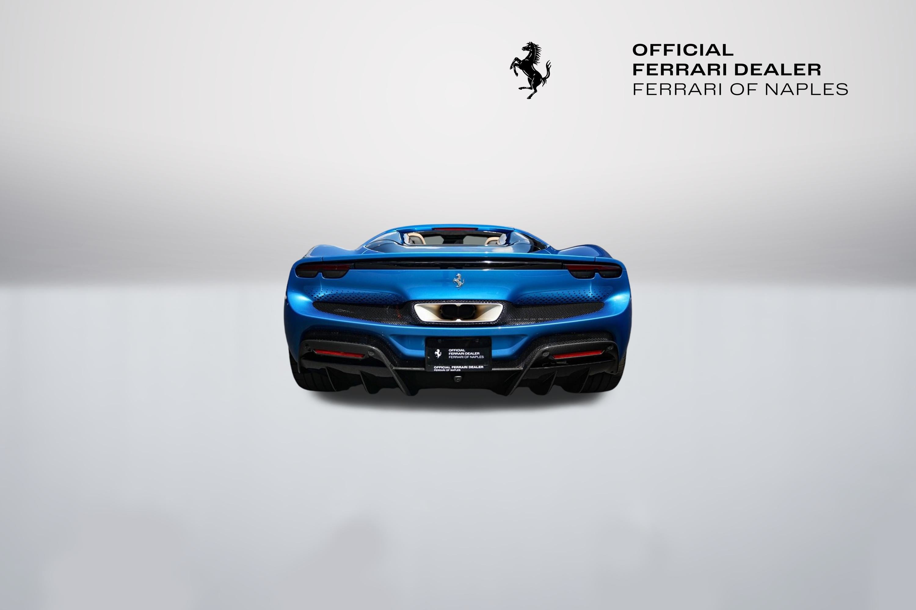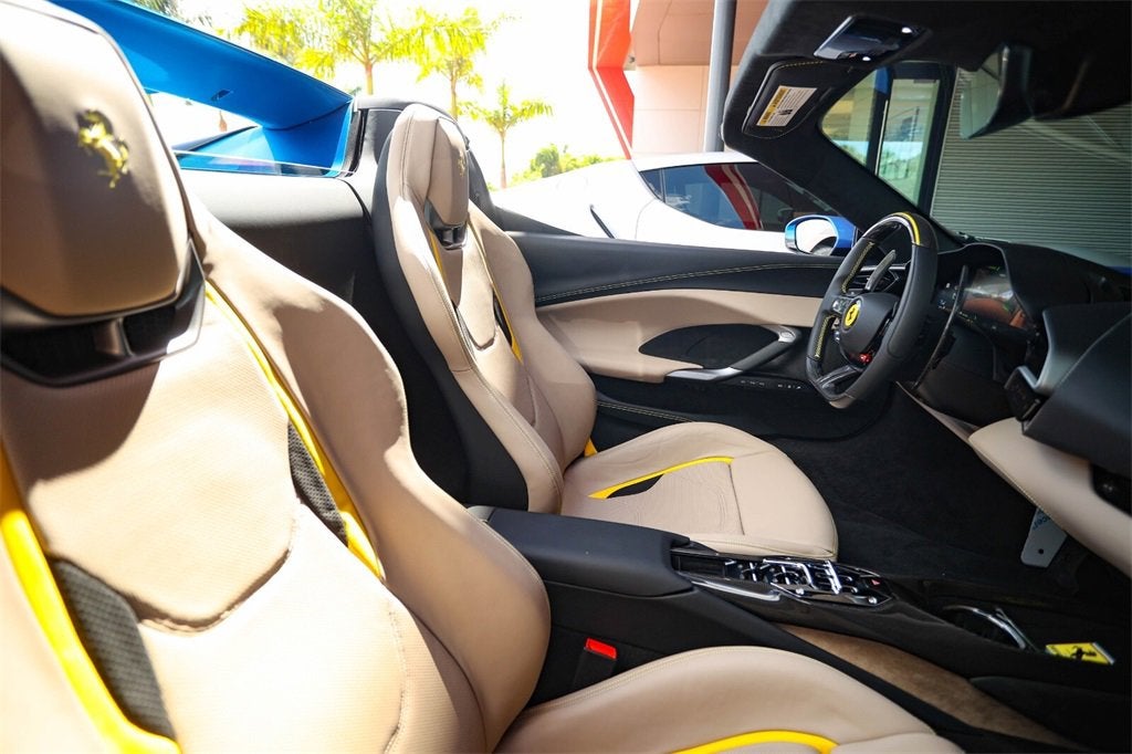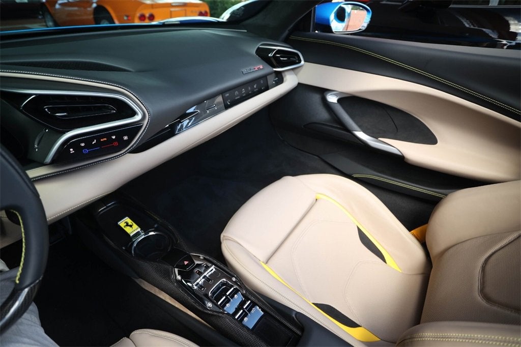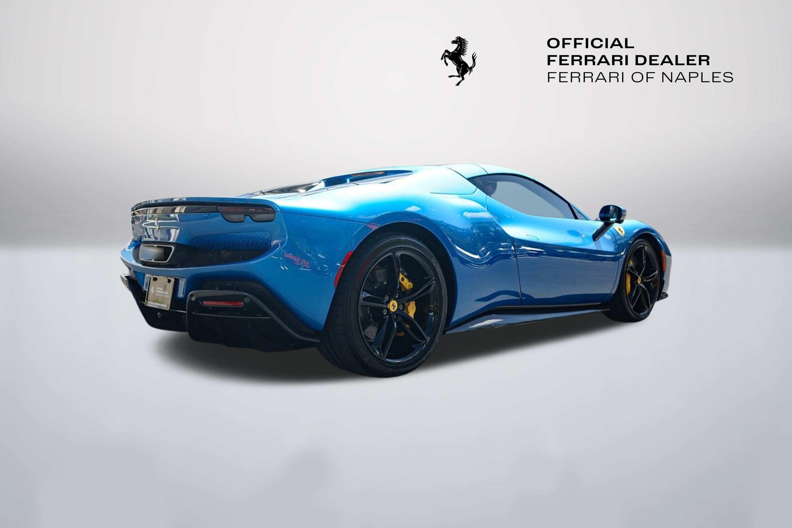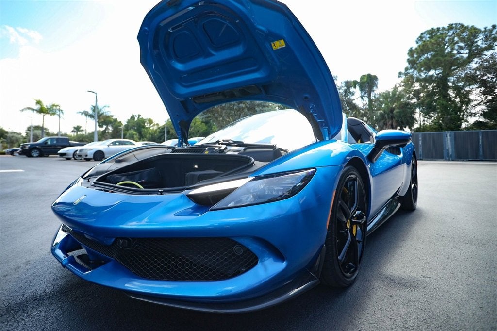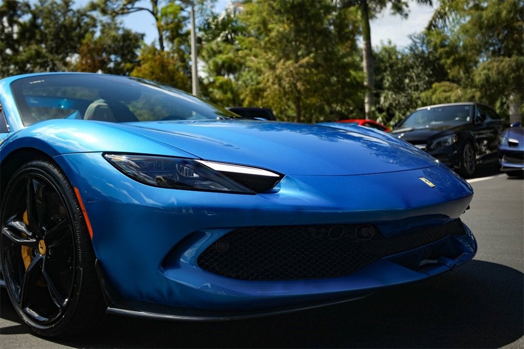 Ferrari of Naples is proud to present this spectacular 2023 Ferrari 296 GTS, finished in breathtaking Blu Corsa over a bespoke Tortora leather interior with striking Giallo Modena accents. Having covered only 104 miles from new, this single-owner example represents one of the most stunning specifications of Ferraris revolutionary hybrid supercar available today. The 296 GTS (Gran Turismo Spider) embodies Ferraris evolution into hybridized performance. Its 3.0-liter twin-turbocharged V6, paired with a plug-in electric motor, produces an astonishing 818 horsepowermaking it the most powerful road-going V6 in Ferrari history. The open-top design allows drivers to experience its signature soundtrack while enjoying a remarkable balance of efficiency and performance. Factory Options and Highlights Exterior and Aero: Blu Corsa Paint (Colori Classici Program) Giallo Modena Brake Calipers Forged Wheels in Gloss Brilliant Silver Finish with Titanium Wheel Studs Gloss Black Painted Wheels Option Carbon Fibre Front and Lateral Spoilers (FCWS) Carbon Fibre Rear Diffuser (CEXD) and Under-Door Trim (CEXS) Scuderia Ferrari Fender Shields Full Front PPF Recommended / Ready Interior and Cockpit: Tortora Leather Interior with Yellow Piping and Contrast Stitching Giallo Seat Belts and Cavallino Embroidered Headrests Carbon Fibre Steering Wheel with LED Shift Lights (LEDS) Carbon Fibre Dashboard Inserts and Front Tunnel (CITZ, DATR) Dreamline Upper Steering Arch in Giallo Modena Full-Electric Ventilated Style Seats (RSFV/STYL) Leather Passenger Compartment Accents in Tortora Premium Hi-Fi System and Wireless Smartphone Charger (WIRE) Technology and Performance: Front Suspension Lift (ELEV) AFS Adaptive Headlight System (AFSU) Advanced Front Camera (FCAM) and Surround View (SURR) Blind Spot Detection (BRAD) and Front Parking Sensors (PAR2) Electrochromic Exterior Mirrors (MIR3) Apple CarPlay (ACPL) and MyFerrari Connect Compatibility Bridgestone Performance Tires (TYBR) As the official Ferrari dealer of Southwest Florida, Ferrari of Naples offers an exclusive selection of Ferrari models, backed by unparalleled service and expertise. Our commitment to excellence ensures that each vehicle meets the highest standards of quality and performance. To schedule a private viewing or request a personalized video tour of this 2025 Ferrari 296 GTS, please contact us: Phone: (239) 256-1400 Email: smora@newcountry.