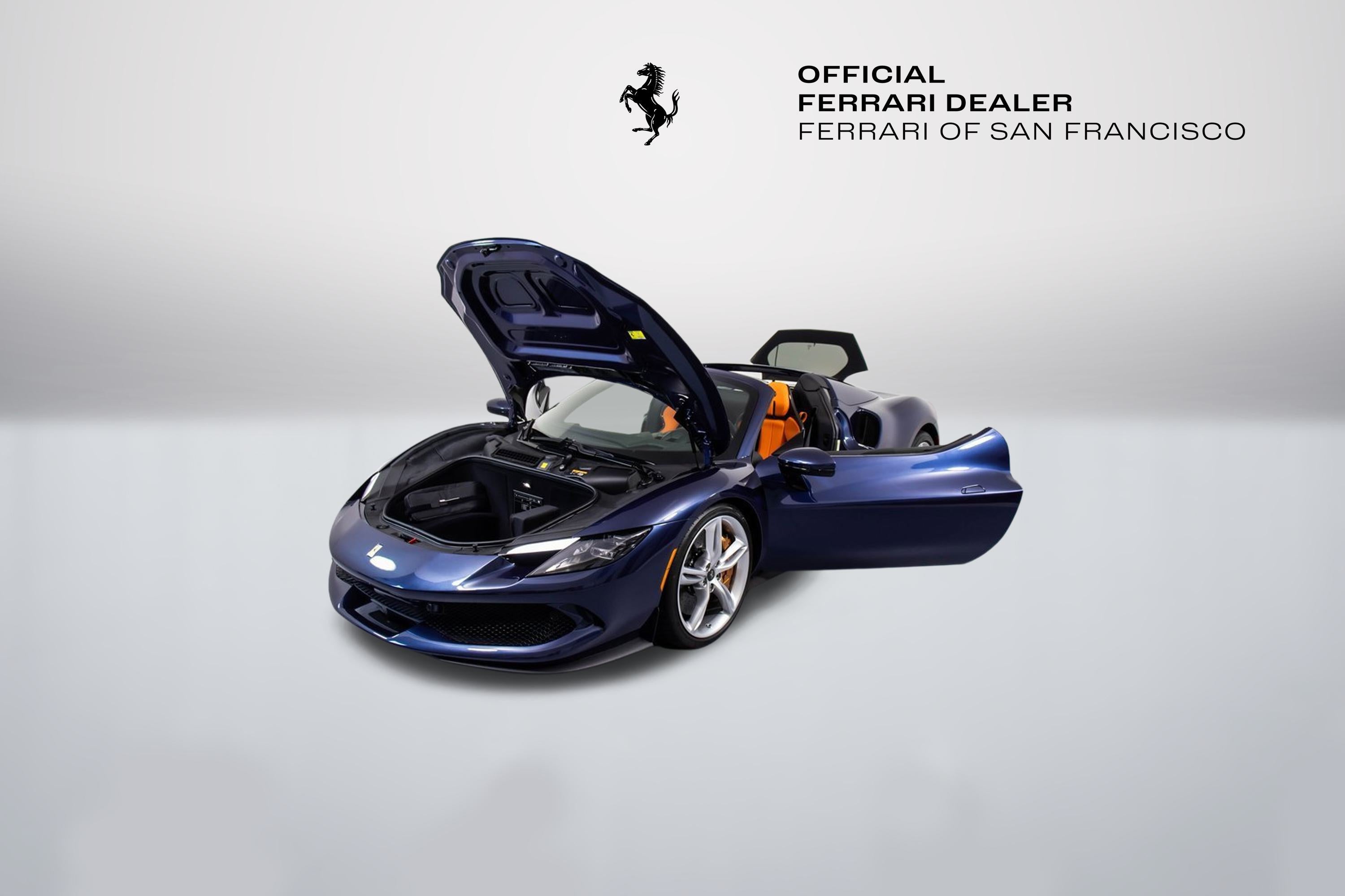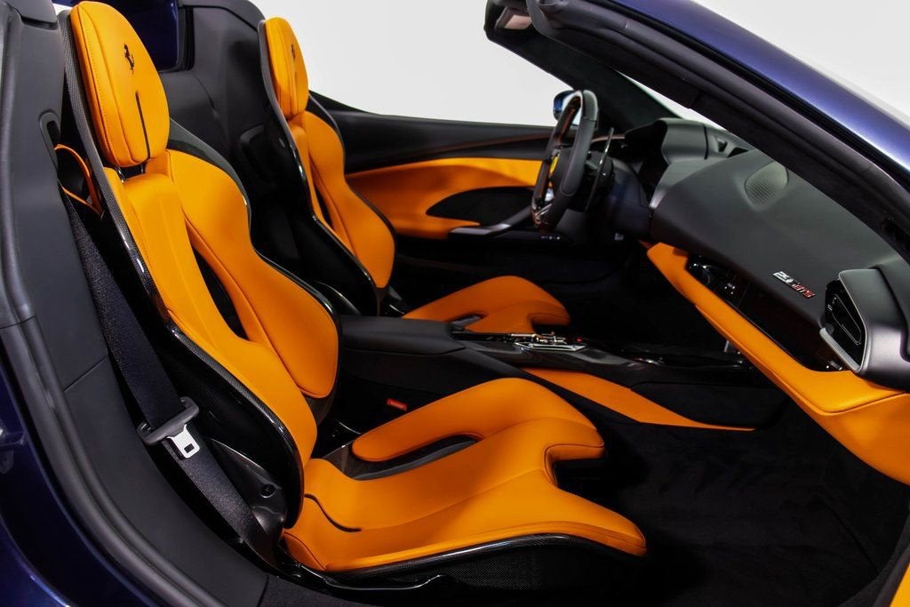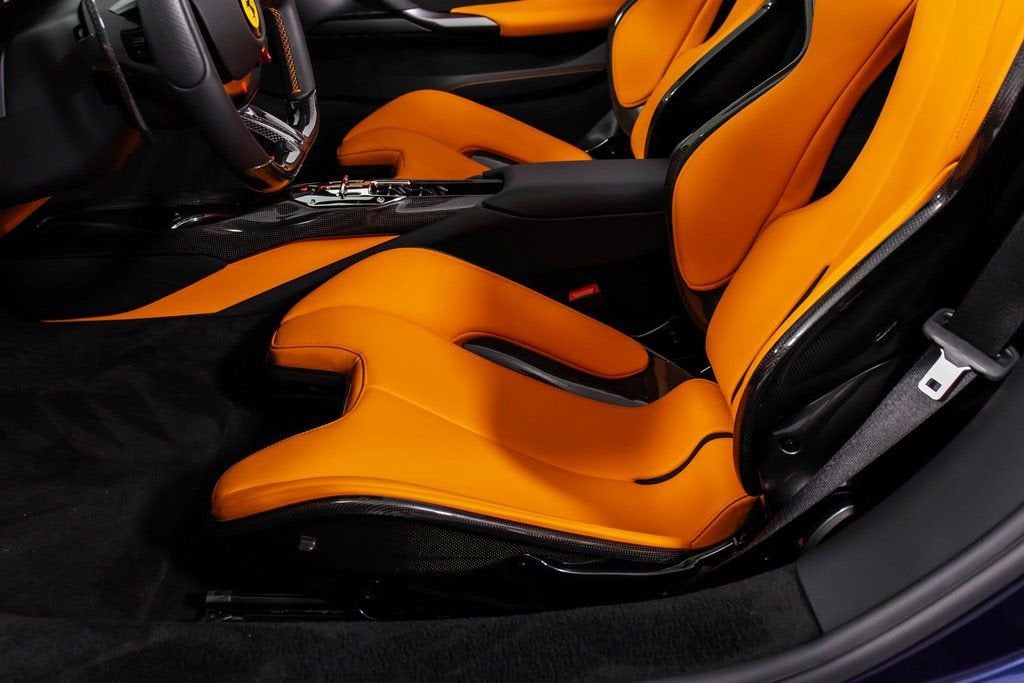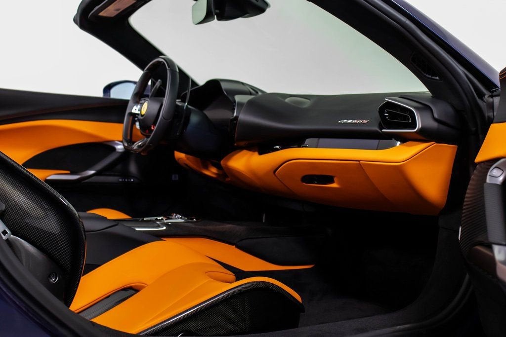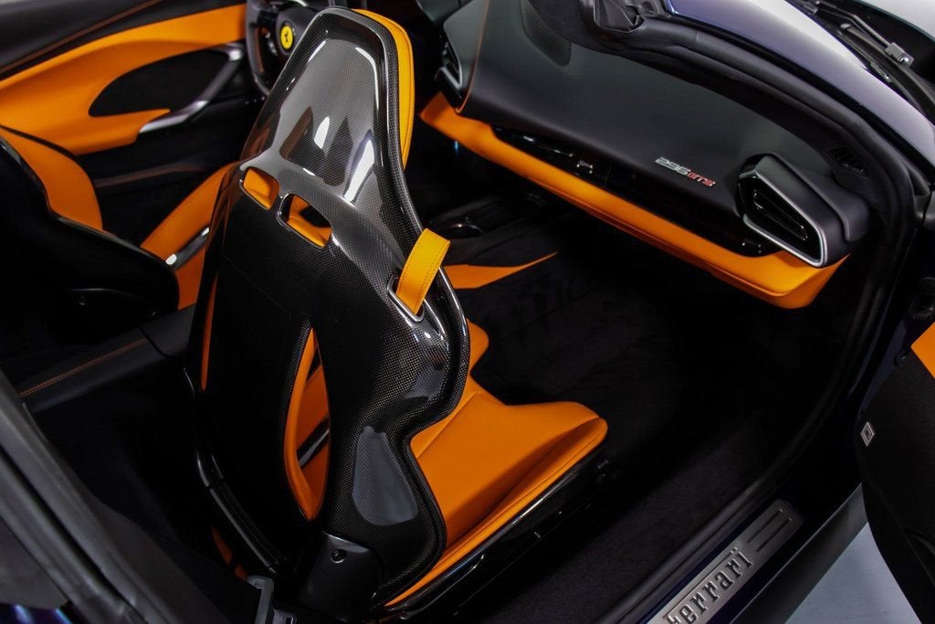 316221 Exterior: Blu Swaters Interior: Orange Mats: Nero 2025 Ferrari 296 GTS Options: Colored Passenger Compartment Details Cavallino Stitched on Headrest in Nero Extra Range Leather in Orange Ferrari Historical Colors in Blue Swaters Carbon Fiber Racing Seats STC1 in Special Thread Arancio Colored Standard Stitching O.R. The 2025 Ferrari 296 GTS arrives in a breathtaking Blu Swaters exterior, a historic Ferrari color that pairs strikingly with the bold orange extra range leather interior and Nero mats, creating a truly bespoke specification. Inside, the cabin is elevated with colored passenger compartment details, Cavallino stitching on the headrests in Nero, and special Arancio thread (STC1) with contrasting standard stitching, highlighting the craftsmanship and attention to detail. Performance and sportiness are underscored by the lightweight carbon fiber racing seats, blending Ferraris racing DNA with unmistakable Italian luxury. This 296 GTS embodies the perfect harmony between heritage, individuality, and cutting-edge performance.