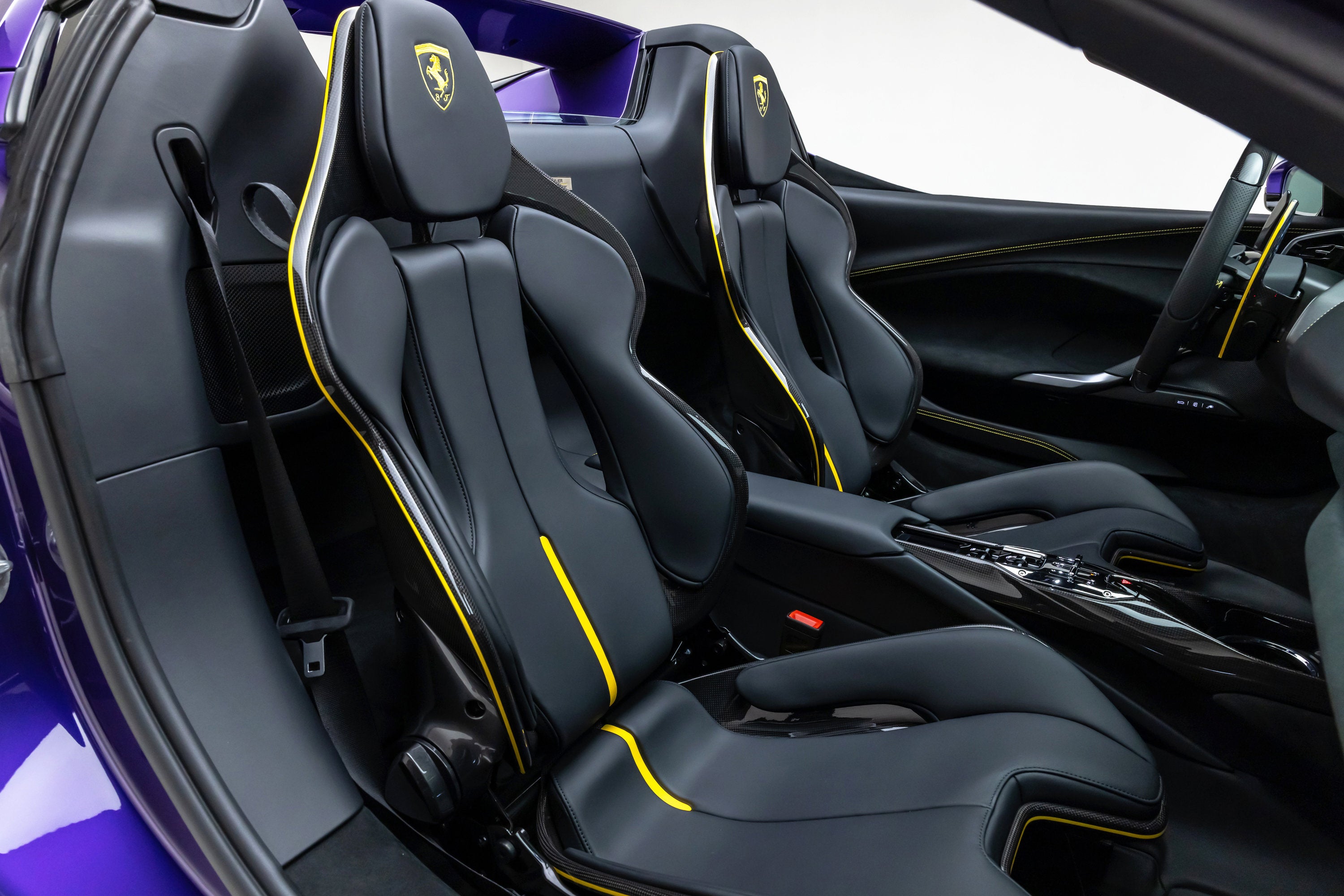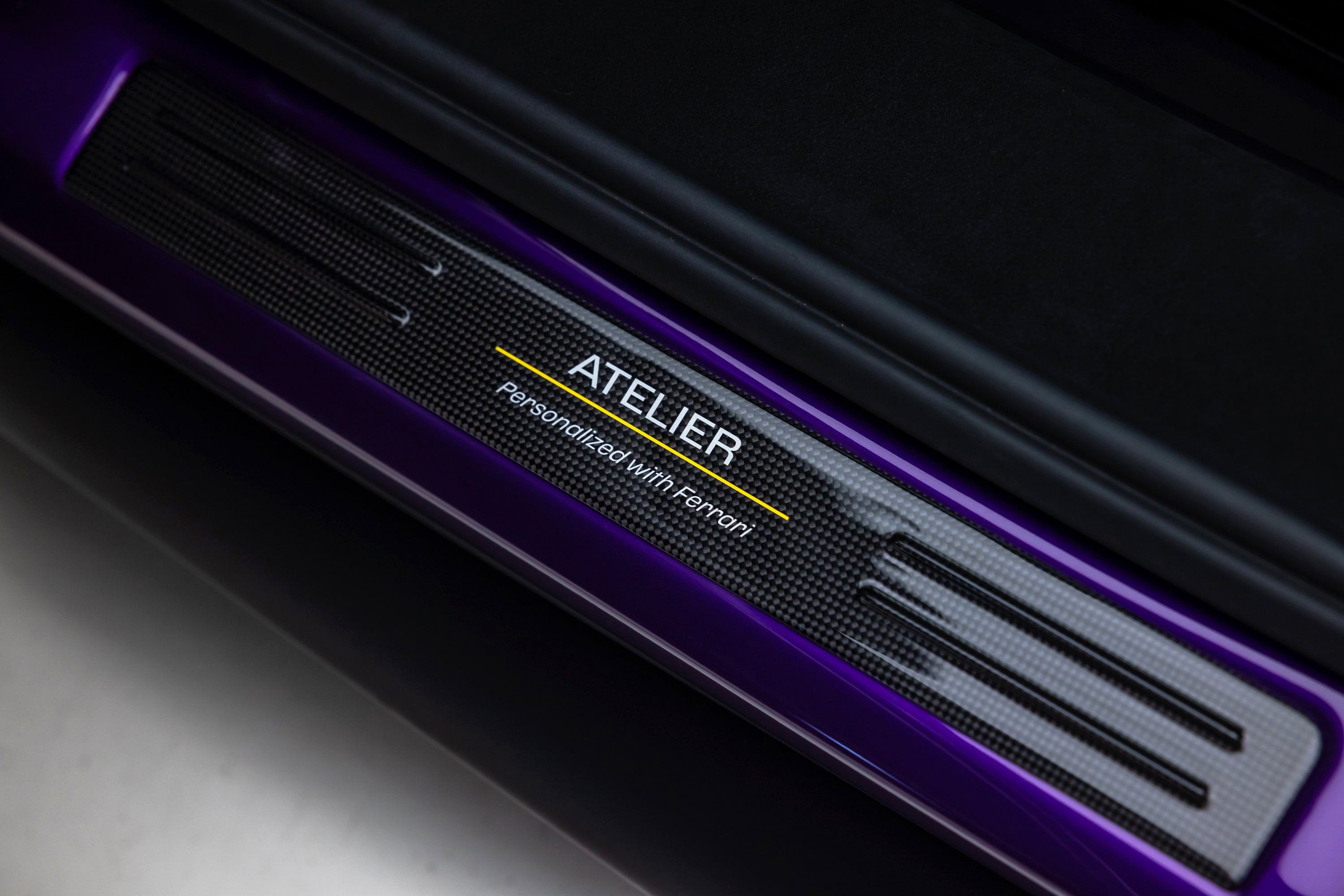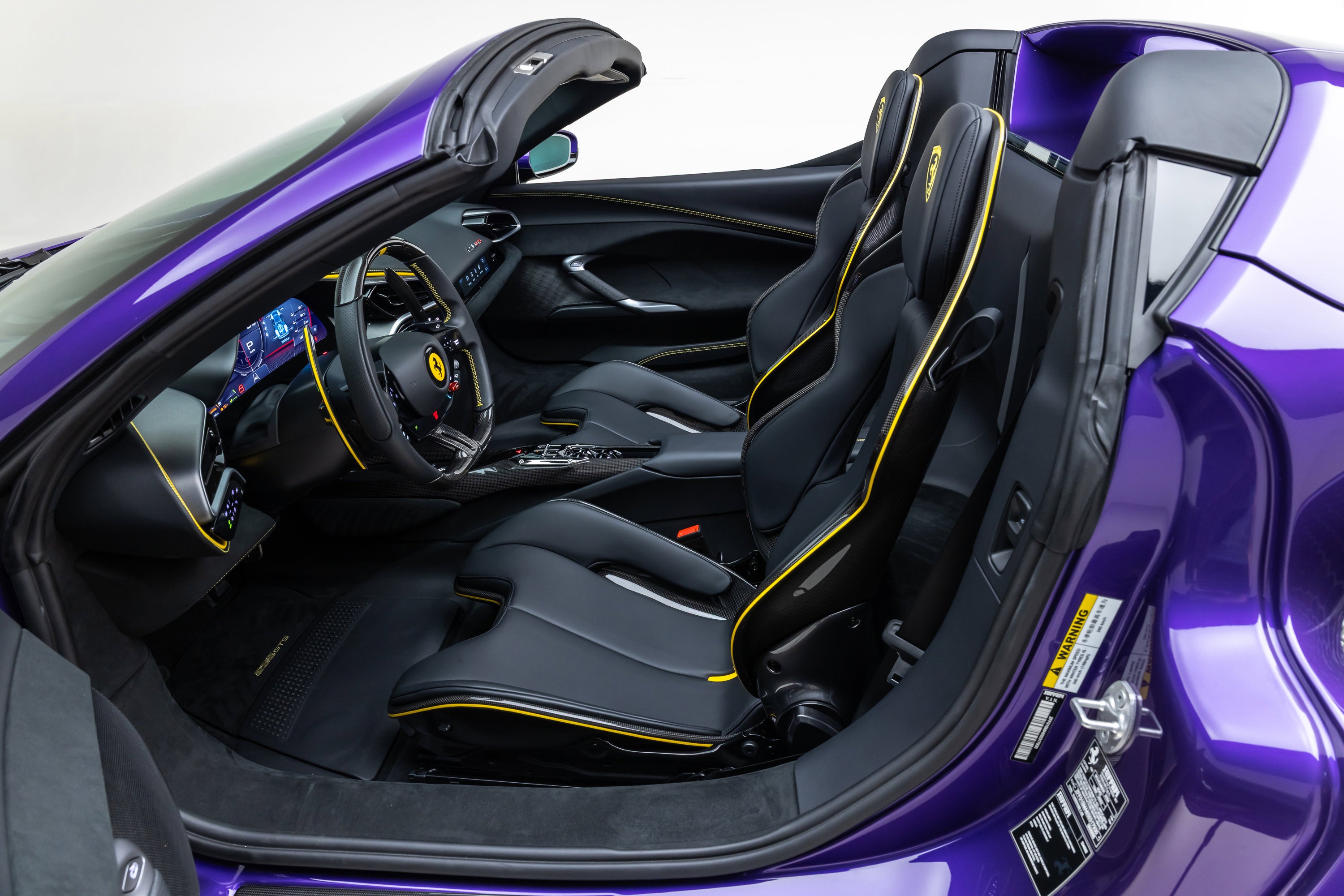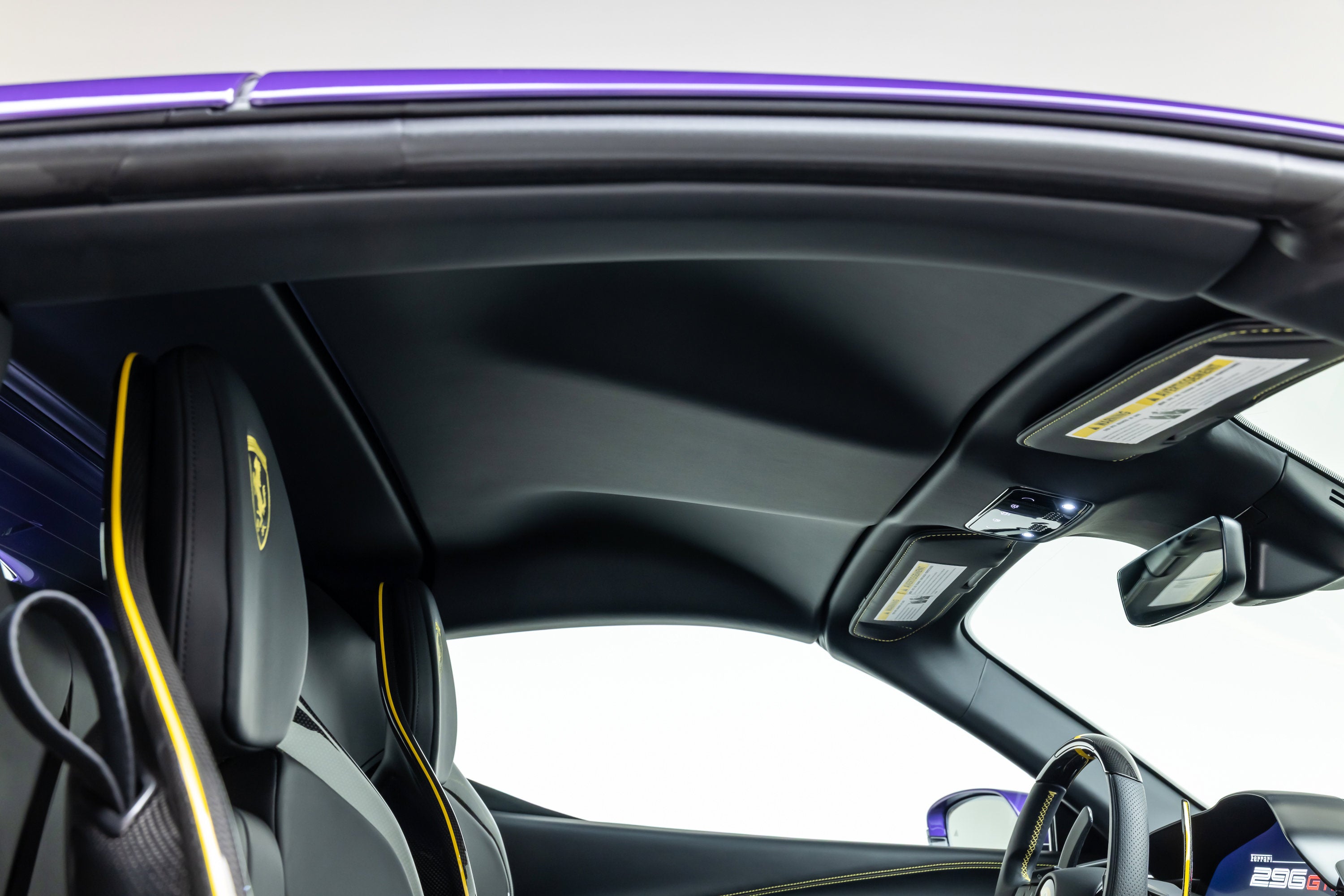 ===== 2025 Ferrari 296 GTS ===== Violetto Dino over Nero with Giallo Accents 143 Miles | VIN: ZFF01SMA6S0317930 Finished in a bespoke Extracampionario Violetto Dino, this 2025 Ferrari 296 GTS is a highly exclusive Atelier-commissioned example with just 143 miles. Built through Ferrari's Atelier New York program, this car represents a one-of-one specification, pairing a deep metallic purple exterior with a Nero interior and curated Giallo accents throughout. The exterior is defined by its striking Violetto Dino finish, complemented by matte black forged wheels, yellow brake calipers, and carbon fiber detailing. Subtle finishes including a satin Ferrari badge and matte black rear Cavallino further enhance the bespoke nature of this build. Inside, the Nero cabin is elevated with extensive Extracampionario customization, featuring Giallo accents across the steering wheel, paddles, and stitching. Carbon fiber racing seats (XL) and a carbon fiber steering wheel with LEDs reinforce the car's performance-focused design, while Atelier personalization details complete the interior. ==== Factory Options & Highlights ==== * Atelier New York Commission * Special Exterior Color (Violetto Dino) * Carbon Fiber Racing Seats (XL) with Lifter * Carbon Fiber Steering Wheel with LEDs * Matte Black Forged Wheels * Scuderia Ferrari Shields Carbon fiber specification includes: * Carbon Fiber Exterior Sill Kickplates * Carbon Fiber Upper Center Console * Carbon Fiber Wheel Cups Additional features include:
