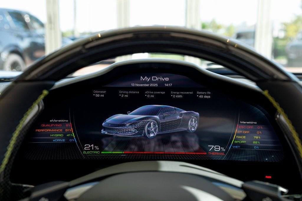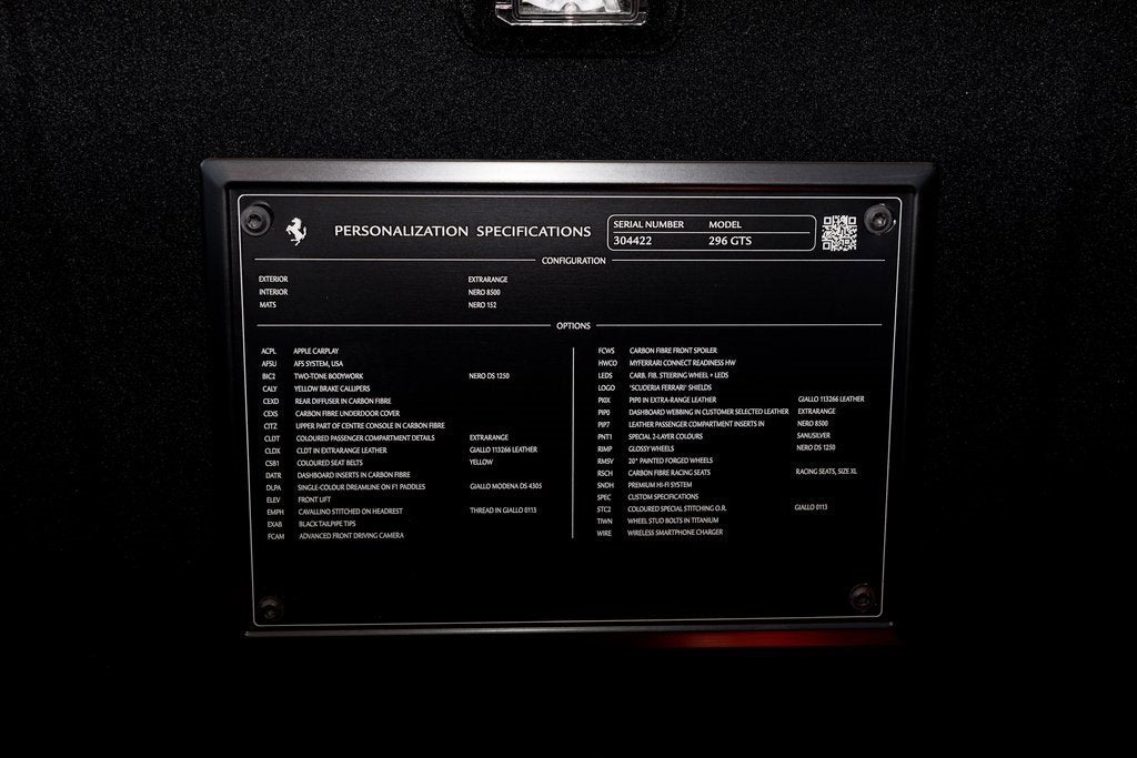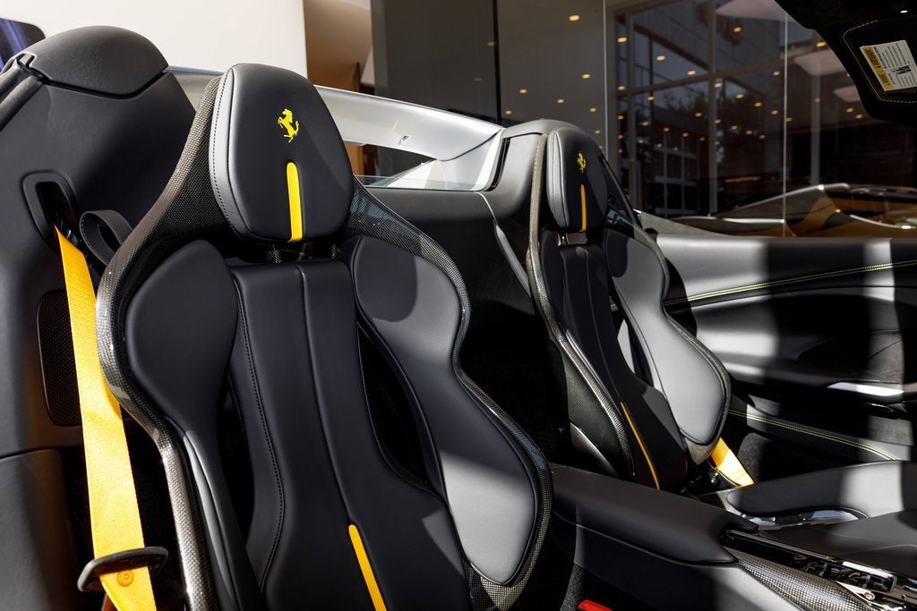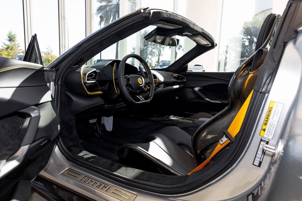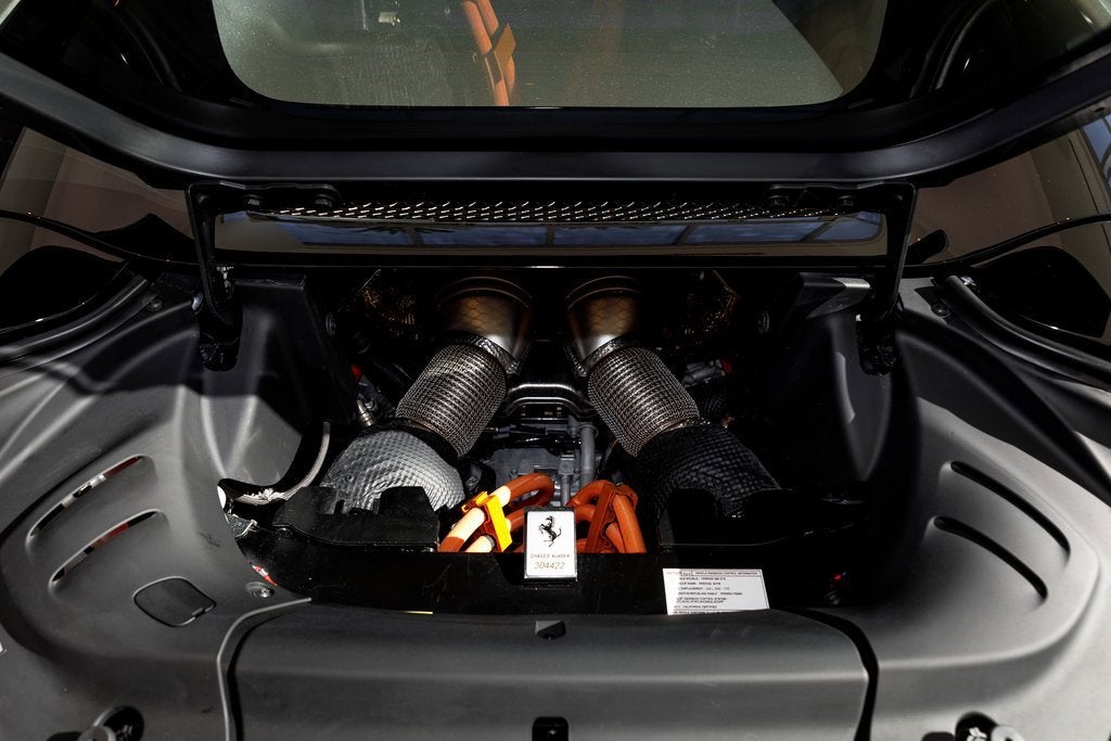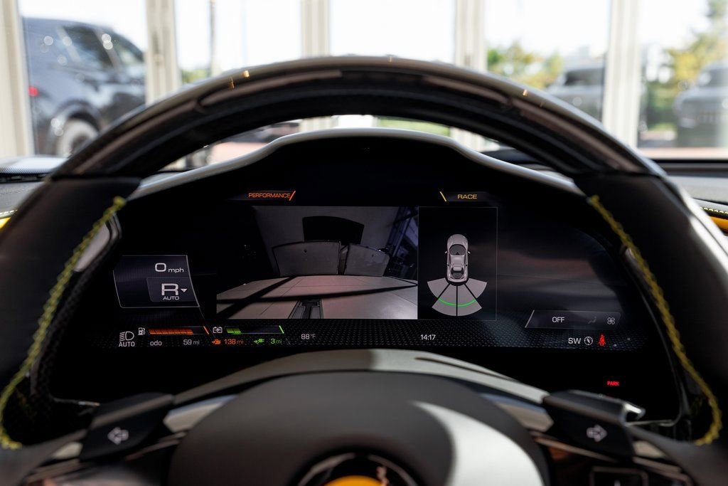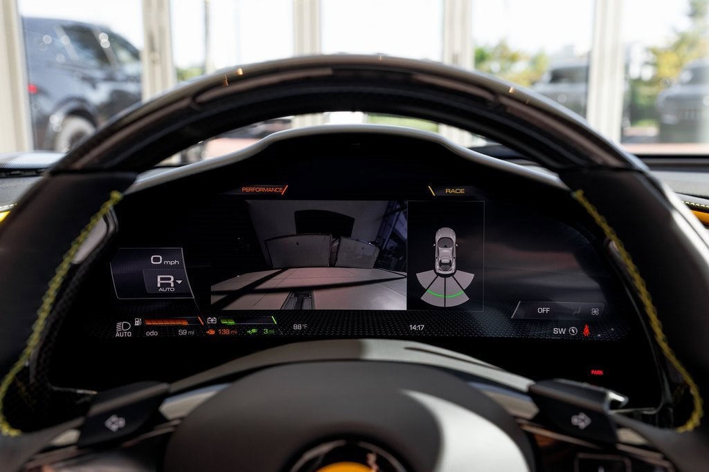 Factory options: External colors - Nero DS Internal colors - Nero Carpets colors - Nero -Two tone body painting -Dashboard insert in leather -Forged wheels brilliant silver -Yellow brake calipers -Titanium wheel bolts -Carbon fibre front bumper insert -Carbon fibre under door cover -Rear diffuser in carbon fibre -Suspension lifter -'Scuderia Ferrari' shields -Advanced front driving camera -Colored special stitching -Color leather seats stripes -Specific design racing seats -Black ceramic exhaust pipes -Horse stitched on headrest -Wireless charger smartphone -Colored safety belts -Cldt with special leather -Color leather interior inserts -Dreamline f1 paddles-1 color -Premium hifi system -Apple CarPlay -Carbon fibre dashboard inserts -Carbon fibre upper tunnel trim -Carbon steering wheel + paddles + LEDs -Glossy painted rims -Personalization pack -2 layer paint upon sample -Pip0 in extra range leather -Hw readiness MyFerrari connect For more information or to schedule a test drive, contact us today!