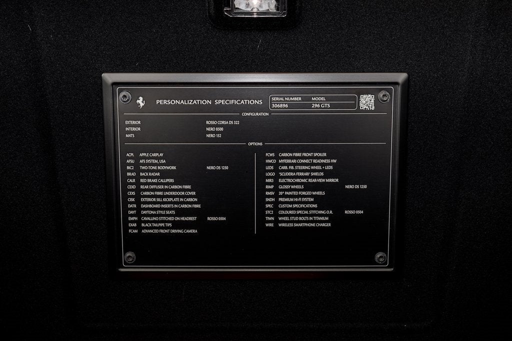 Factory options: External colors - Rosso corsa Internal colors - Nero Carpets colors - Nero -Carbon fibre dashboard inserts -Carbon fibre sill kick -Carbon steering wheel + paddles + LEDs -Carbon fibre front bumper insert -Carbon fibre under door cover -Carbon fibre rear diffuser -Two tone body painting -Forged wheels brilliant silver -Red brake calipers -Titanium wheel bolts -'Scuderia Ferrari' shields -Electrochrom.