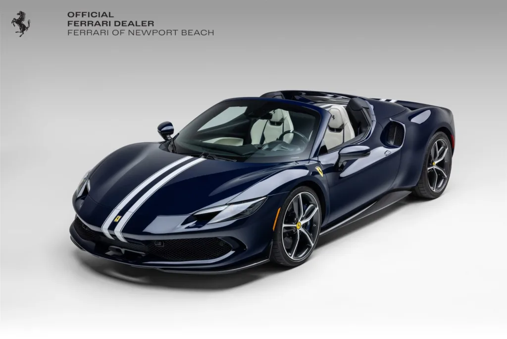 ===== 2025 Ferrari 296 GTS ===== Extracampionario (Extra Range) over Blu Sterling 475 Miles | VIN: ZFF01SMA7S0320206 Ferrari of Newport Beach proudly presents this 2025 Ferrari 296 GTS with just 475 miles, finished in a stunning Extra Range specification over Blu Sterling leather with Nero mats. This example showcases a highly curated build, combining extensive carbon fibre options with a unique blue-on-blue interior and elevated material selections throughout. As the open-top evolution of Ferrari's next-generation hybrid platform, the 296 GTS pairs a retractable hardtop with cutting-edge performance, delivering both everyday usability and supercar-level capability. Powered by a twin-turbocharged 3.0-liter V6 paired with an electric motor, the 296 GTS produces a combined 819 horsepower, delivering immediate response and exceptional performance. ==== FNB Highlights ==== 475 Miles Extra Range Exterior Blu Sterling Interior Carbon Fibre Steering Wheel with LEDs Ventilated Full Electric Seats Blue Brake Calipers Scuderia Ferrari Shields Diamond-Polished Forged Wheels Suspension Lifter Apple CarPlay Premium Hi-Fi System Front & Rear Parking Sensors Advanced Front Driving Camera Wireless Smartphone Charger ==== Factory Options & Equipment ==== Apple CarPlay AFS System (USA) Blue Brake Calipers Carbon Fibre Rear Diffuser Carbon Fibre Underdoor Covers Carbon Fibre Instrument Cluster Carbon Fibre Upper Centre Console Trim Carbon Fibre Dashboard Inserts Carbon Fibre Front Spoiler Carbon Fibre Steering Wheel with LEDs Coloured Inner Details (Blu Sterling) Coloured Seat Belts (Blu Sterling) Semi-Aniline Leather Interior Ventilated Full Electric Seats Cavallino Stitched on Headrests Special Contrast Stitching (Blu) Scuderia Ferrari Shields Diamond-Polished Forged Wheels Suspension Lifter Front & Rear Parking Sensors Advanced Front Driving Camera Premium Hi-Fi System Wireless Smartphone Charger Titanium Wheel Stud Bolts MyFerrari Connect ==== Condition, History & Additional Information ====