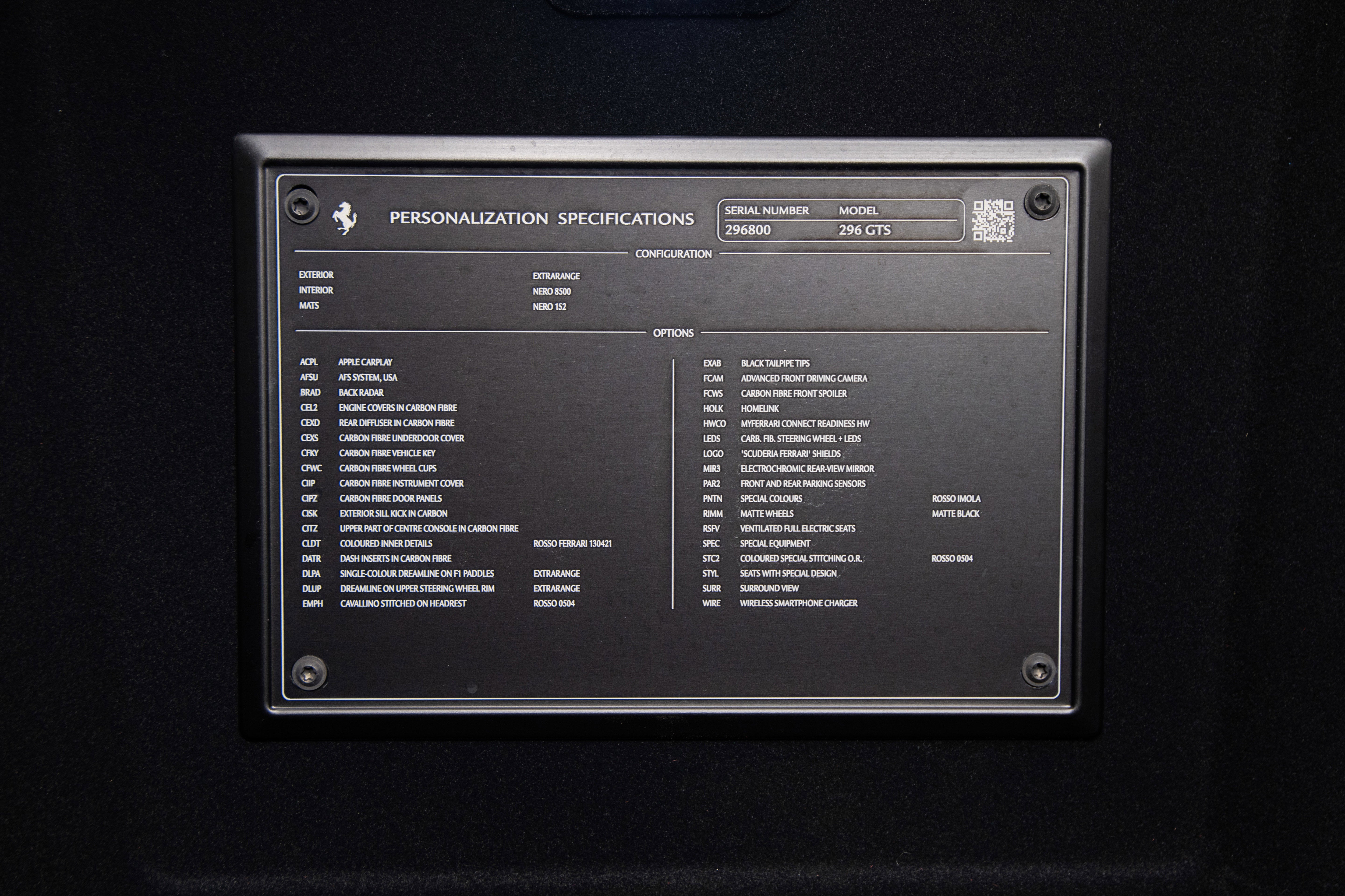 Ferrari Philadelphia is pleased to offer this 2023 Ferrari 296 GTS with only 753 miles. This vehicle is being sold with the balance of the factory warranty valid until 10/31/2026 & is under the Ferrari Certified Pre-Owned Program. The Ferrari 296 GTS combines cutting-edge technology with exhilarating performance, featuring a 3.0-liter V6 engine paired with a plug-in hybrid system. This innovative powertrain produces a staggering 818 horsepower, delivering thrilling acceleration from 0 to 60 mph in just 2.9 seconds. The 296 GTS boasts a sleek, aerodynamic design, optimized for both aesthetics and functionality, enhancing stability at high speeds. Its advanced chassis and suspension systems ensure an unparalleled driving experience, blending agility with comfort. With a focus on sustainable performance, the 296 GTS exemplifies Ferrari's commitment to the future of high-performance sports cars. The exterior color of this Ferrari is hand-finished in Rosso Imola complemented by a Nero leather and alcantara interior. The options on this 296 GTS include: