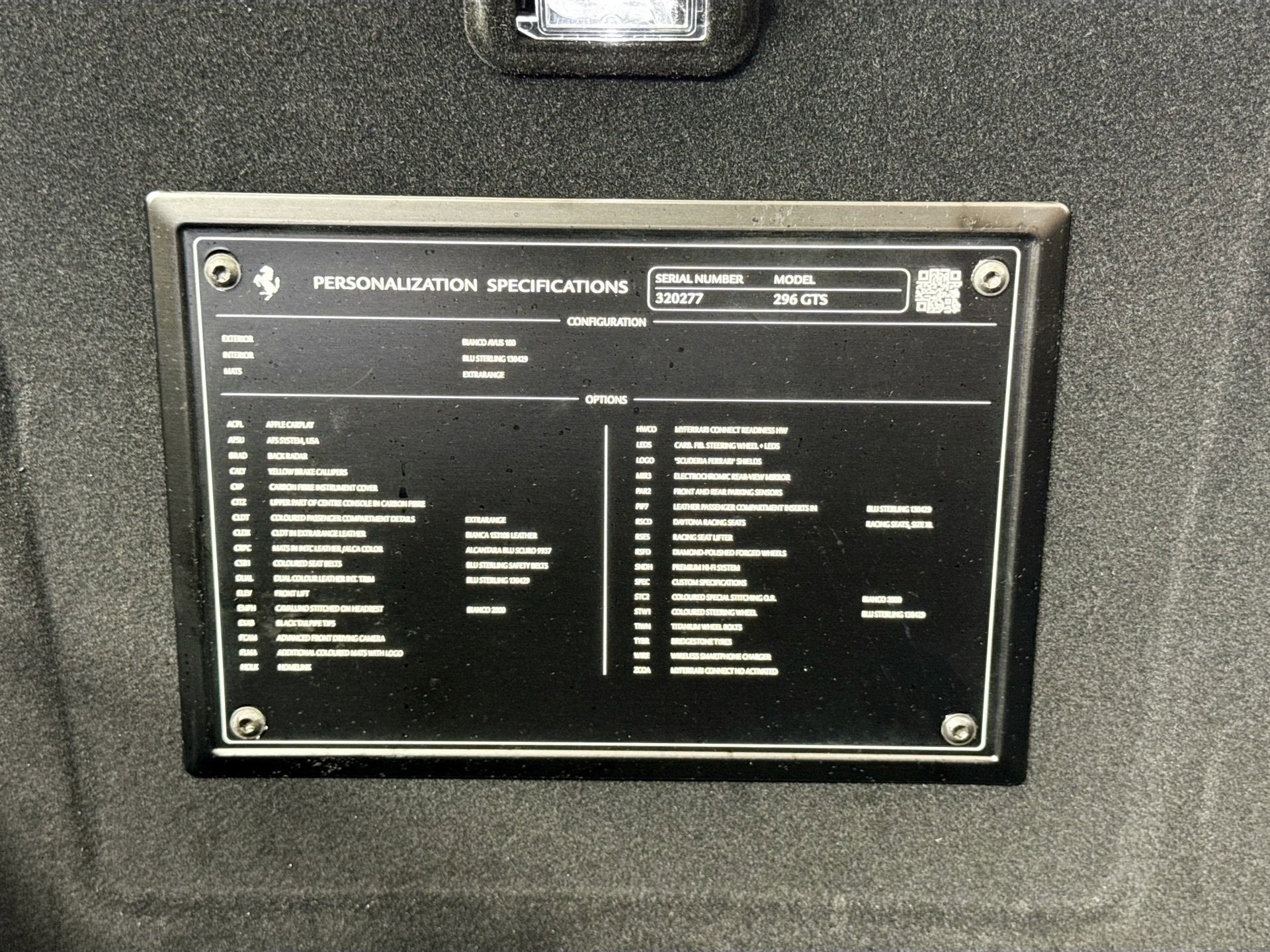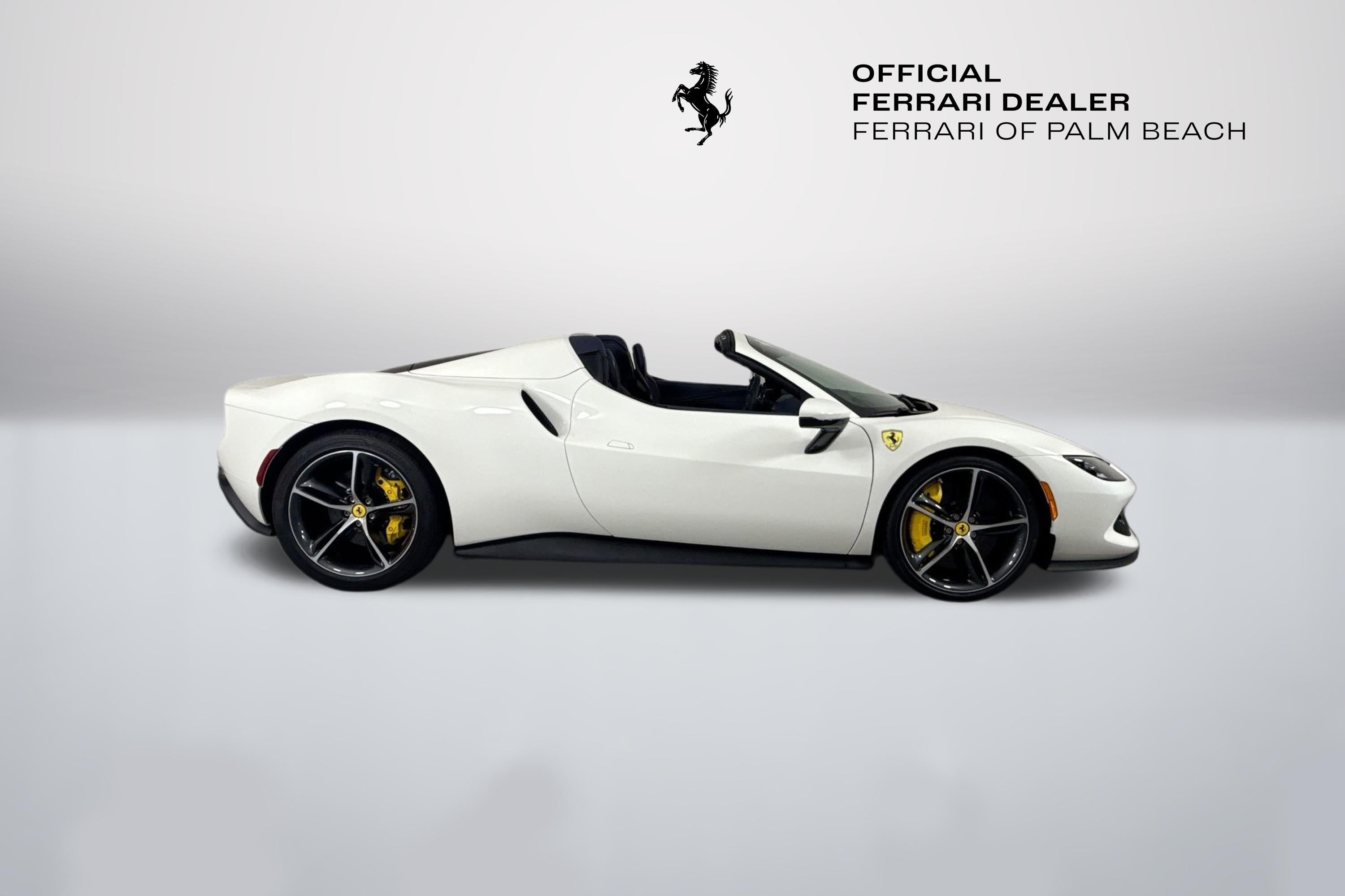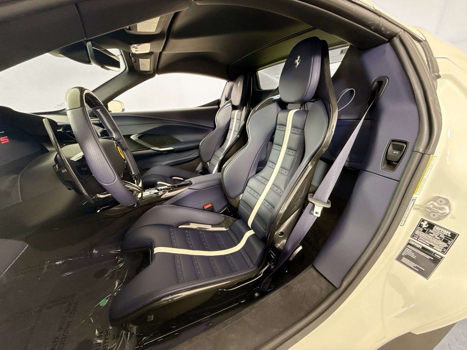 2025 Ferrari 296 GTS One Owner, Local Delivery Mile, Stunning Custom Spec Experience the pinnacle of Italian performance and craftsmanship with this 2025 Ferrari 296 GTS, featuring an immaculate, delivery-mile, one-owner history. Finished in Bianco Avus, this example commands attention with its signature Scuderia Ferrari shields on the fenders and Giallo Modena brake calipers, perfectly complementing the 20 diamond-polished sports wheels with titanium wheel studs. Tailpipe tips with a sleek black finish add a subtle yet aggressive touch. Step inside and enjoy a fully custom Blu Sterling leather interior, featuring Daytona carbon fiber racing seats, dual-color leather trim, and special stitching with embroidered Cavallino emblems on the headrests. The cockpit is further enhanced with carbon fiber instrument binnacle brow, custom leather accents, and LED-equipped carbon fiber steering wheel, providing both style and function. Colored seat belts, Alcantara carpets, and embroidered over mats complete this truly bespoke interior. This 296 GTS comes fully loaded with advanced technology and convenience: Apple CarPlay, premium Hi-Fi audio, wireless smartphone charging, and Home link home access control. Safety and driving assistance include Blind Spot Detection, front driving camera, and front parking sensors, while the AFS America lighting system and electrochromic mirrors enhance visibility. The front suspension lift system ensures worry-free access over curbs. Equipped with Bridgestone performance tires and retaining all Ferrari personalization features, this 296 GTS exemplifies the perfect combination of track-capable performance and refined daily usability. Delivered new locally, it has only the original miles from delivery and has been meticulously cared for by its single owner. This is your opportunity to own a rare, fully loaded, one-owner 2025 Ferrari 296 GTS with exceptional custom spec, delivering the ultimate driving experience in a turnkey package.