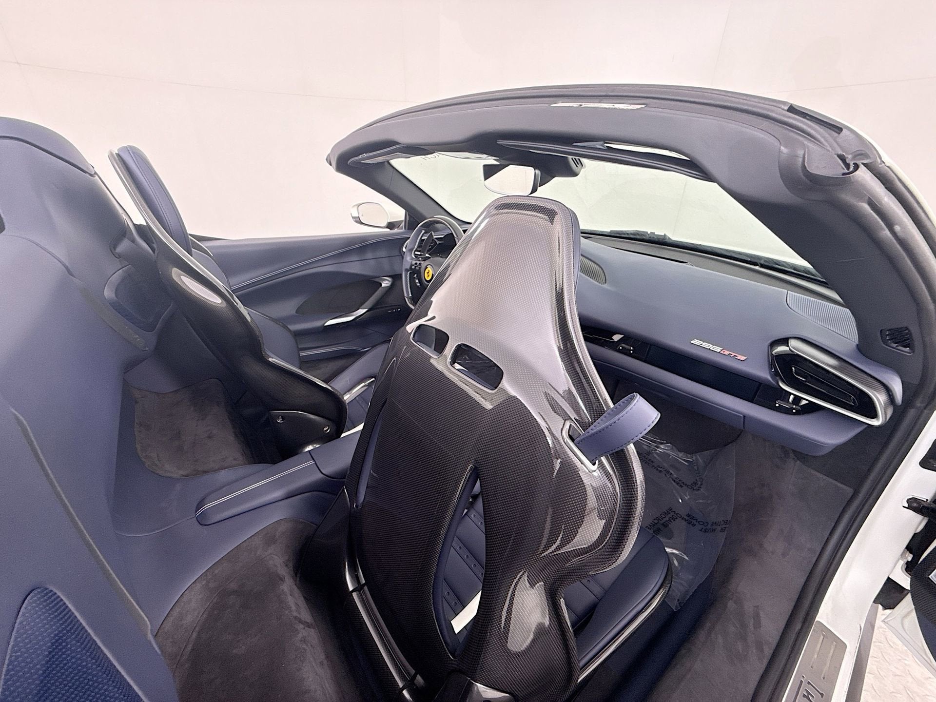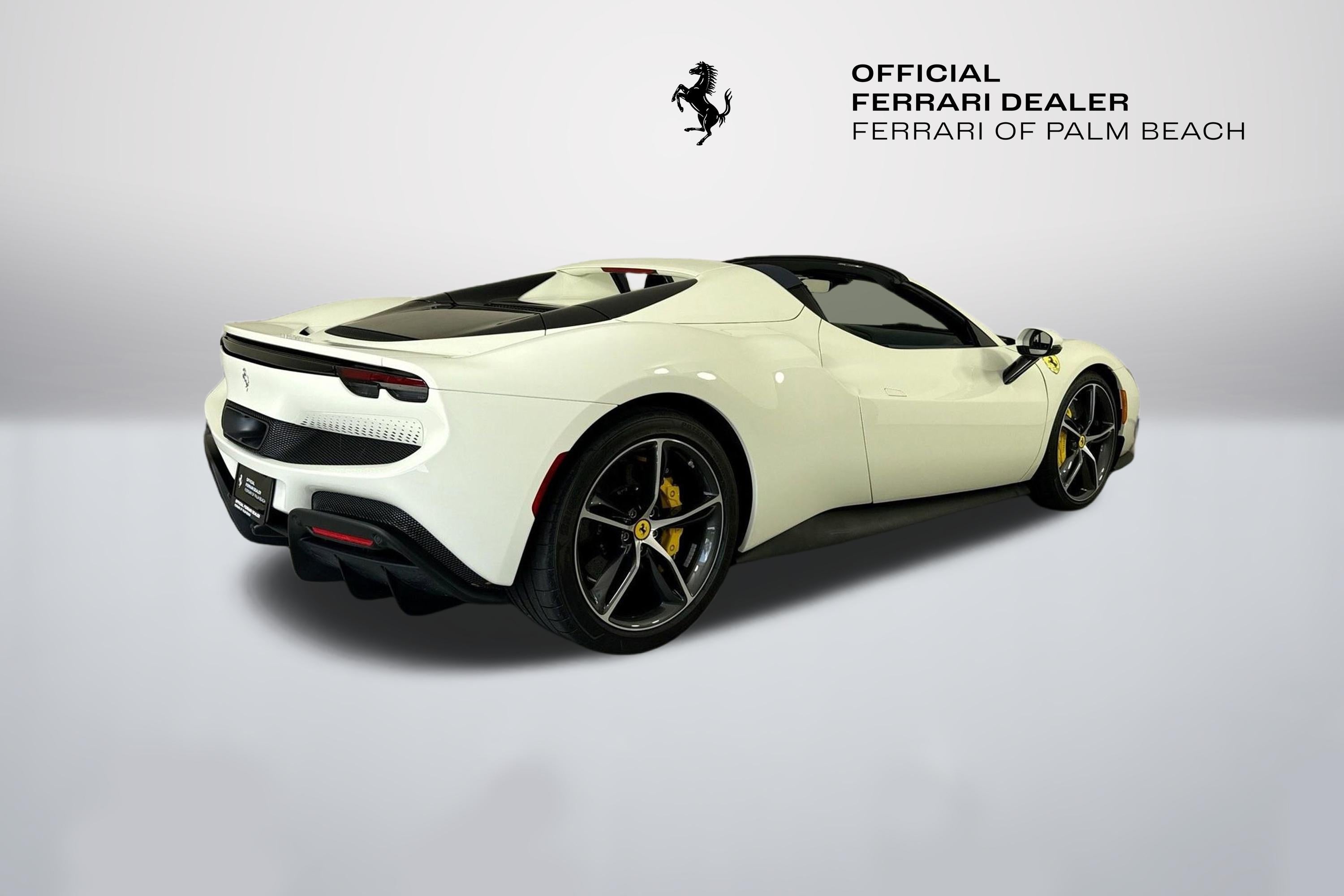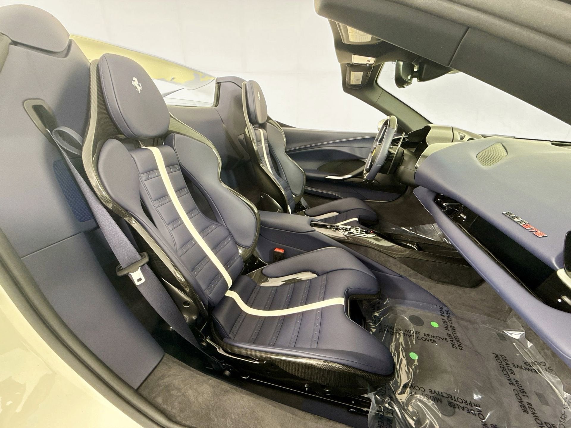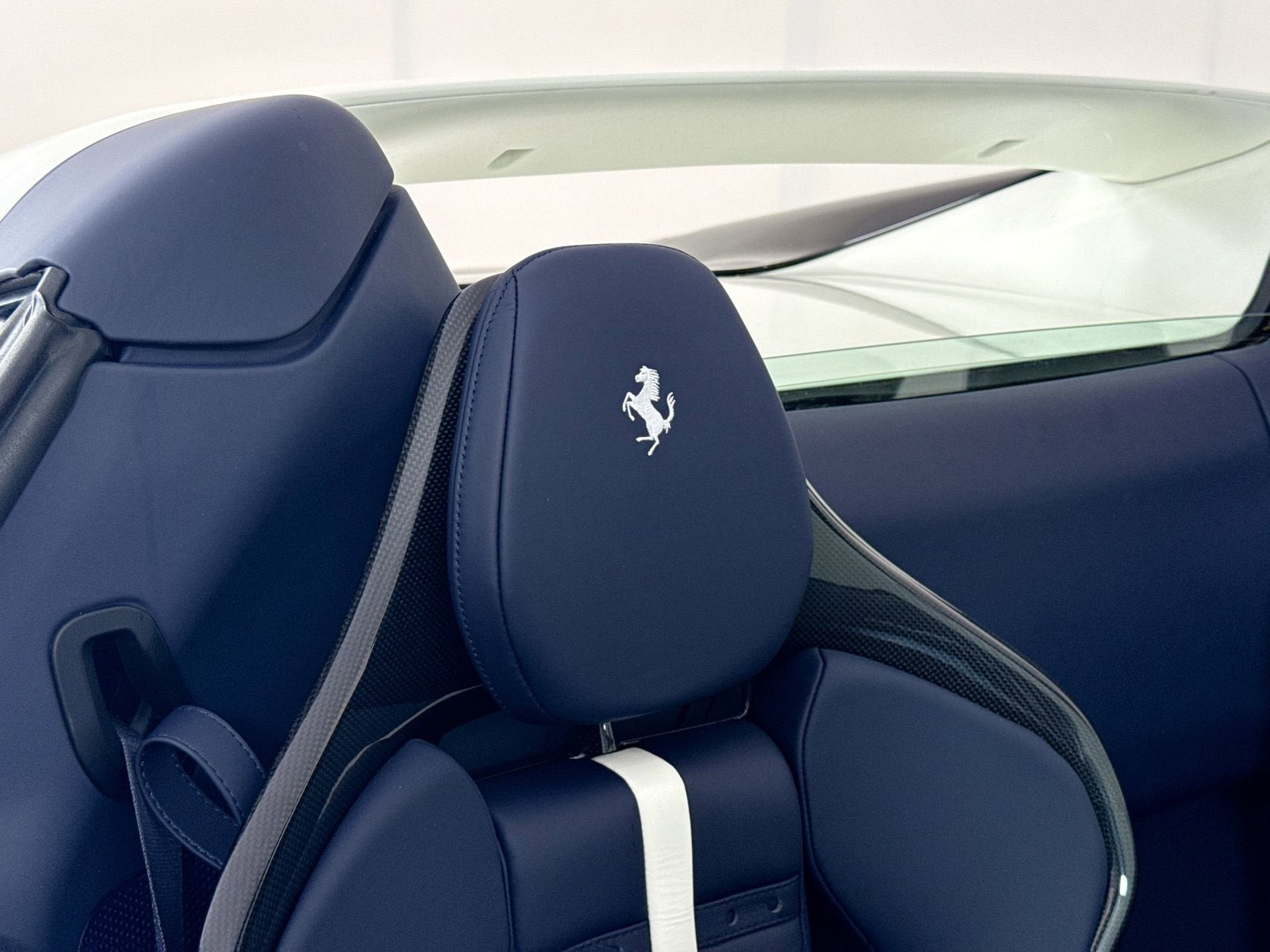 2025 Ferrari 296 GTS One Owner, Local Delivery Mile, Stunning Custom Spec Experience the pinnacle of Italian performance and craftsmanship with this 2025 Ferrari 296 GTS, featuring an immaculate, delivery-mile, one-owner history. Finished in Bianco Avus, this example commands attention with its signature Scuderia Ferrari shields on the fenders and Giallo Modena brake calipers, perfectly complementing the 20 diamond-polished sports wheels with titanium wheel studs. Tailpipe tips with a sleek black finish add a subtle yet aggressive touch. Step inside and enjoy a fully custom Blu Sterling leather interior, featuring Daytona carbon fiber racing seats, dual-color leather trim, and special stitching with embroidered Cavallino emblems on the headrests. The cockpit is further enhanced with carbon fiber instrument binnacle brow, custom leather accents, and LED-equipped carbon fiber steering wheel, providing both style and function. Colored seat belts, Alcantara carpets, and embroidered over mats complete this truly bespoke interior. This 296 GTS comes fully loaded with advanced technology and convenience: Apple CarPlay, premium Hi-Fi audio, wireless smartphone charging, and Home link home access control. Safety and driving assistance include Blind Spot Detection, front driving camera, and front parking sensors, while the AFS America lighting system and electrochromic mirrors enhance visibility. The front suspension lift system ensures worry-free access over curbs. Equipped with Bridgestone performance tires and retaining all Ferrari personalization features, this 296 GTS exemplifies the perfect combination of track-capable performance and refined daily usability. Delivered new locally, it has only the original miles from delivery and has been meticulously cared for by its single owner. This is your opportunity to own a rare, fully loaded, one-owner 2025 Ferrari 296 GTS with exceptional custom spec, delivering the ultimate driving experience in a turnkey package.