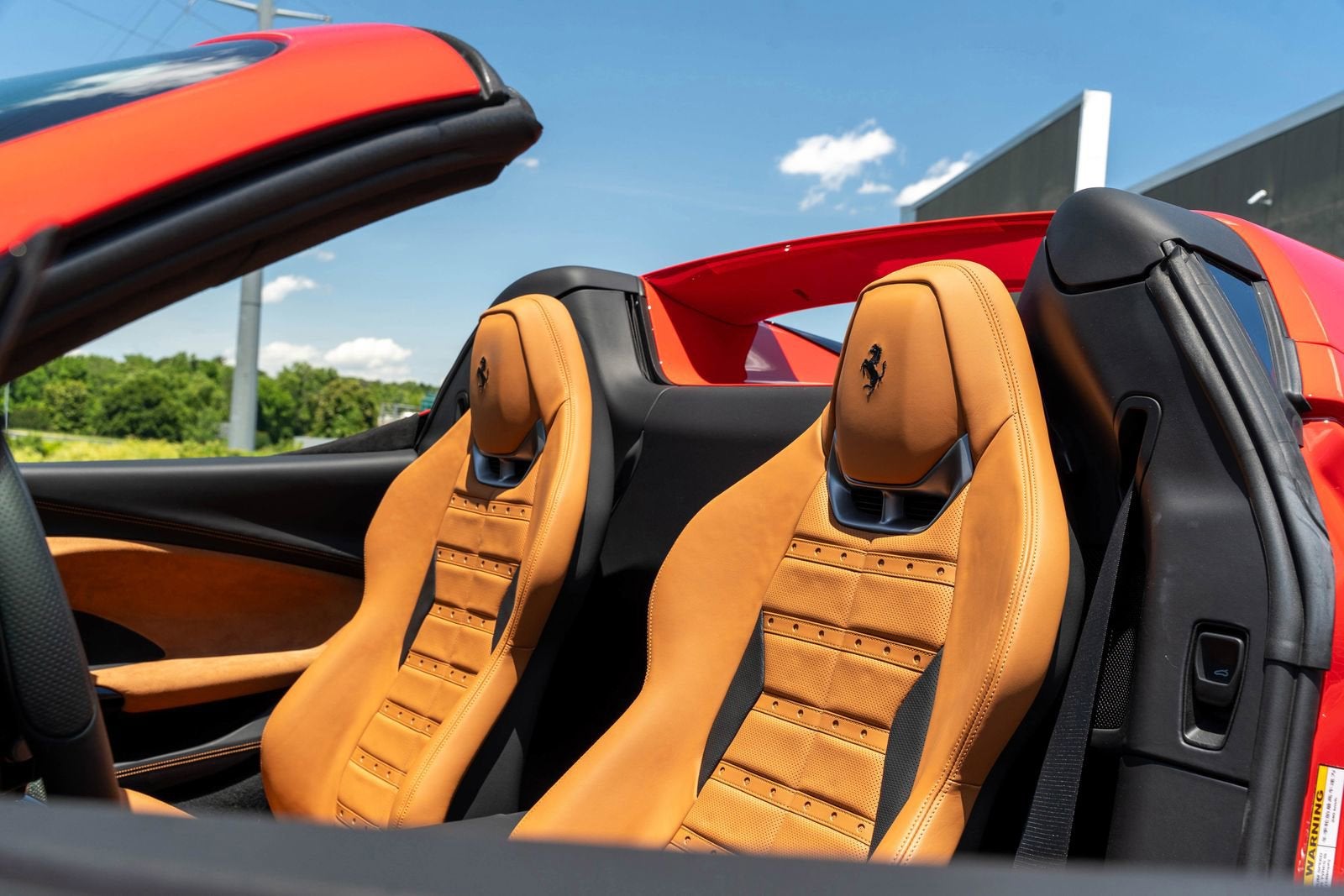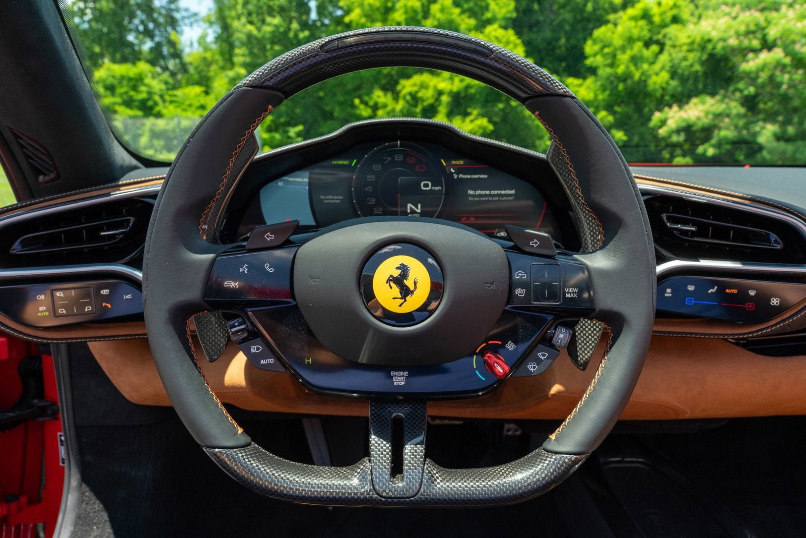 2024 Ferrari 296 GTS 3.0L V6. Call Foreign Cars Italia at 336-252-5588 for Walkaround Video and More Info ~Official Ferrari Dealer Foreign Cars Italia~ Sold new to very loyal customer, garage kept, excellent condition Inside & out, perfect color with all the right options. Exterior: Rosso Corsa over Cuoio, Gloss black brake callipers, Carbon fibre wheel centre cap, Tailpipe tips with black finish, Rear Prancing Horse Matt Black, Satin Prancing Horse, "Scuderia Ferrari" shields on fenders, 20" sports wheels with diamond-polished finish, Titanium wheel studs. Interior: Aluminum Trims Painted, Front seat neck warmer, Aluminium Painted Door Hangrips, Carbon fibre instrument binnacle brow, Carbon fibre front tunnel, Tappeti carpet, "Daytona" style seats, Embroidered Cavallino emblem on headrest, Carbon fibre steering wheel with LEDs, Alcantara® passenger compartment inserts, Full-electric ventilated seats, Special stitching in Cuoio. Equipment: ACC (Adaptive Cruise Control) and front radar, Apple CarPlay, SISTEMA AFS AMERICA, Blind Spot Detection and rear radar, Front suspension lift, Advanced Front Driving Camera, Homelink home access control system, HW READINESS MYFERRARI CONNECT, Electrochromic exterior rear view mirrors, Front parking sensors, Premium Hi-Fi system, Wireless smartphone charger, Surround View. 111-Point Approved Inspection Passed, 2 Year/Unlimited Mile Warranty Included. For more information please contact Foreign Cars Italia of Greensboro at 336-252-5588.
