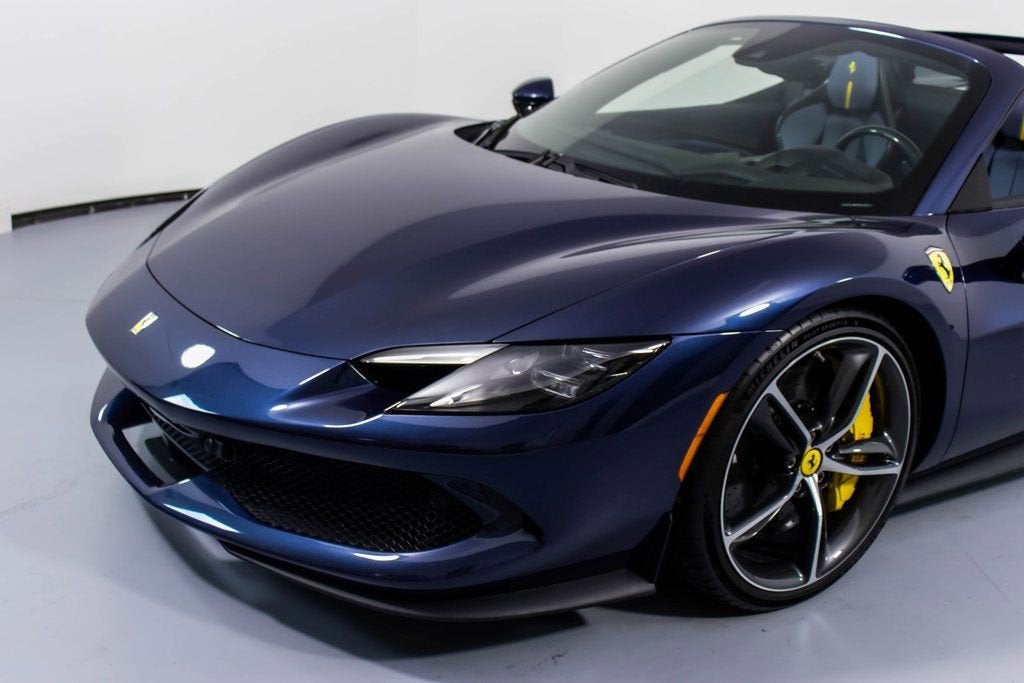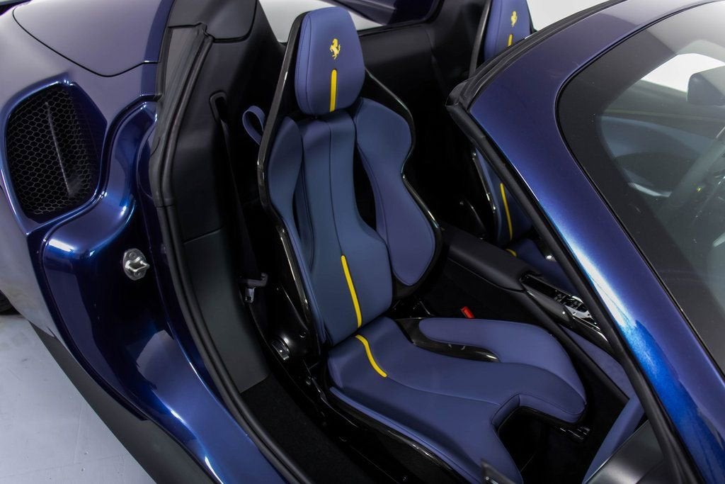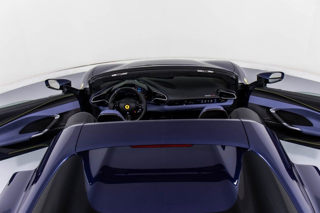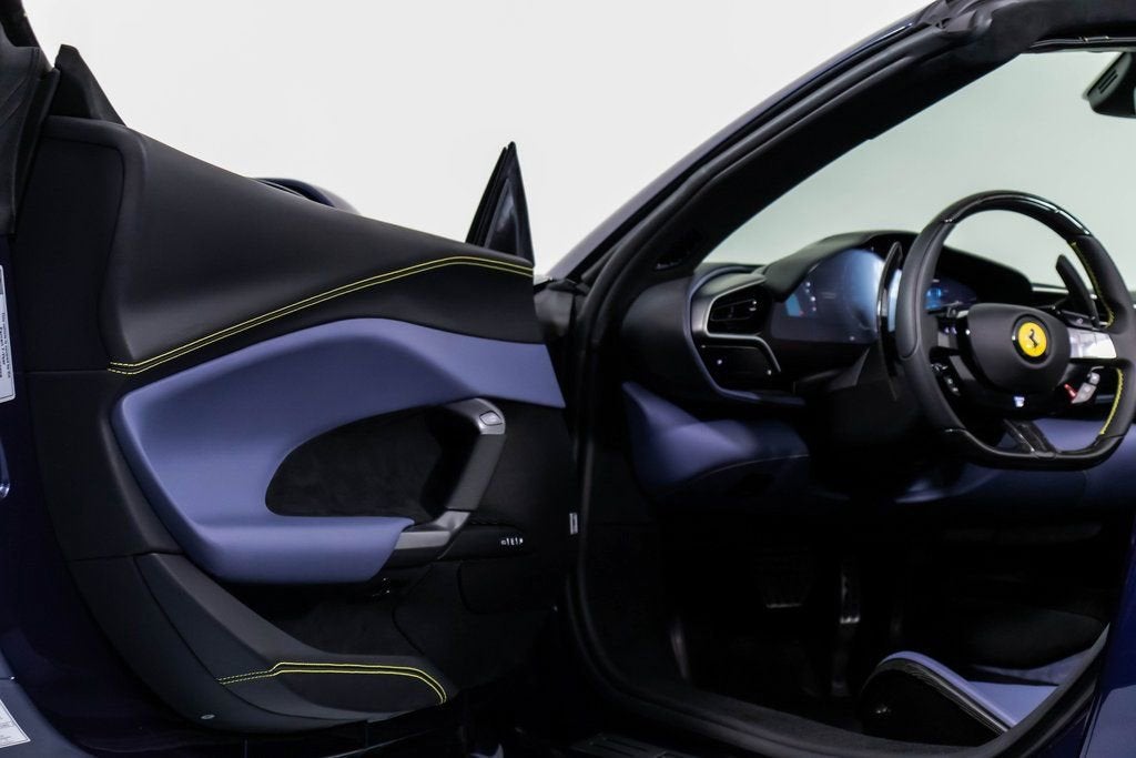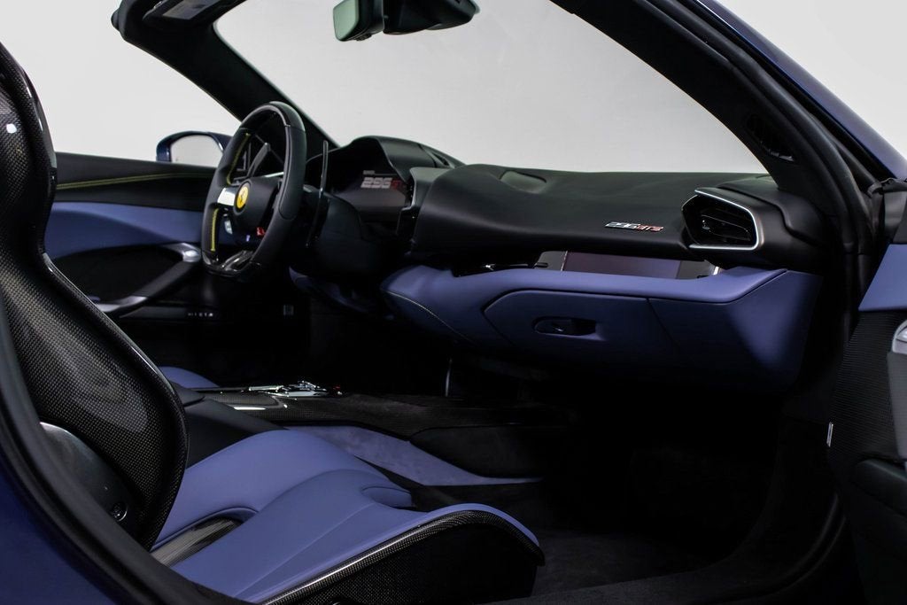 310819 Exterior: Blu Swaters Interior: Carta Da Zucchero Mats: Nero 2024 Ferrari 296 GTS Options: Apple CarPlay AFS System Back Radar Yellow Brake Calipers Upper Part of Center Console in Carbon Fiber Colored Passenger Compartment Details CLDT in Extra Range Leather in Giallo MyFerrari Connect Activated Front Lift Cavallino Stitched on Headrest in Giallo Black Tailpipe Tips Advanced Front Driving Camera Home Link MyFerrari Connect Readiness HW Carb. Fib. Steering Wheel + LEDS 'Scuderia Ferrari' Shields Electrochromic Rear-View Mirror Front and Rear Parking Sensors Leather Passenger Compartment Inserts in Carta Da Zucchero Ferrari Historical Colors in Blu Swaters Carbon Fiber Racing Seats Racing Seat Lifter Diamond-Polished Forged Wheels Premium Hi-Fi System Custom Specifications Colored Special Stitching O.R. in Giallo Wheel Stud Bolts in Titanium Wireless Smartphone Charger The 2024 Ferrari 296 GTS stands out with its iconic Blu Swaters exterior, a historic Ferrari color, beautifully contrasted by the refined Carta Da Zucchero leather interior and Nero mats. Inside, bespoke details shine through with Carta Da Zucchero leather inserts, extra range leather in Giallo accents, and a Cavallino stitched on the headrest in Giallo, further enhanced by special Giallo contrast stitching. Performance-driven elements include carbon fiber racing seats with lifter, a carbon fiber steering wheel with LEDs, and diamond-polished forged wheels, combining luxury with racing pedigree. Technology and convenience are abundant with Apple CarPlay, premium Hi-Fi system, advanced front driving camera, front lift, front and rear parking sensors, wireless smartphone charger, and MyFerrari Connect integration. With yellow brake calipers, Scuderia Ferrari shields, and black tailpipe tips, this 296 GTS blends heritage, innovation, and personalization into a striking open-top masterpiece.