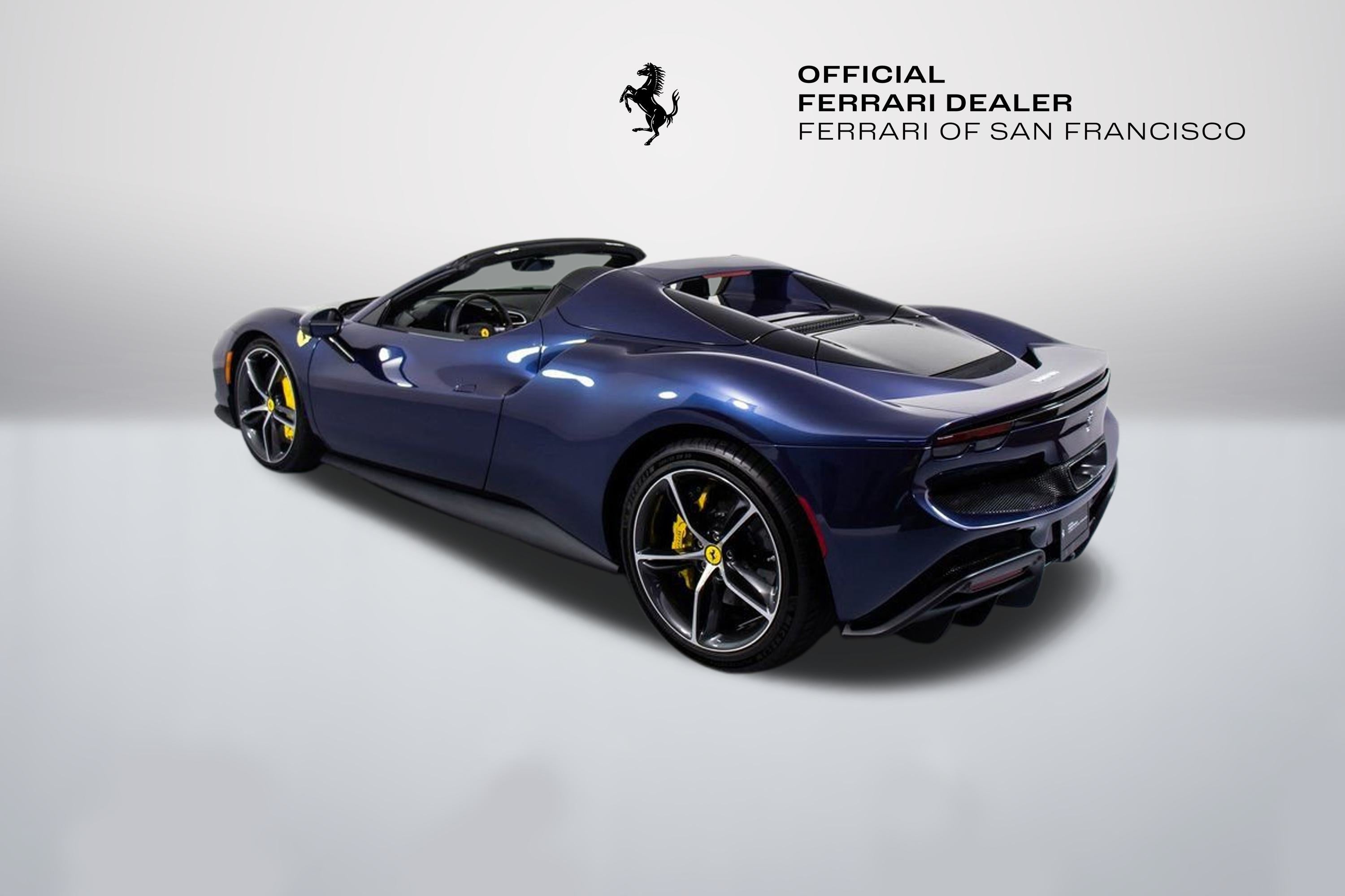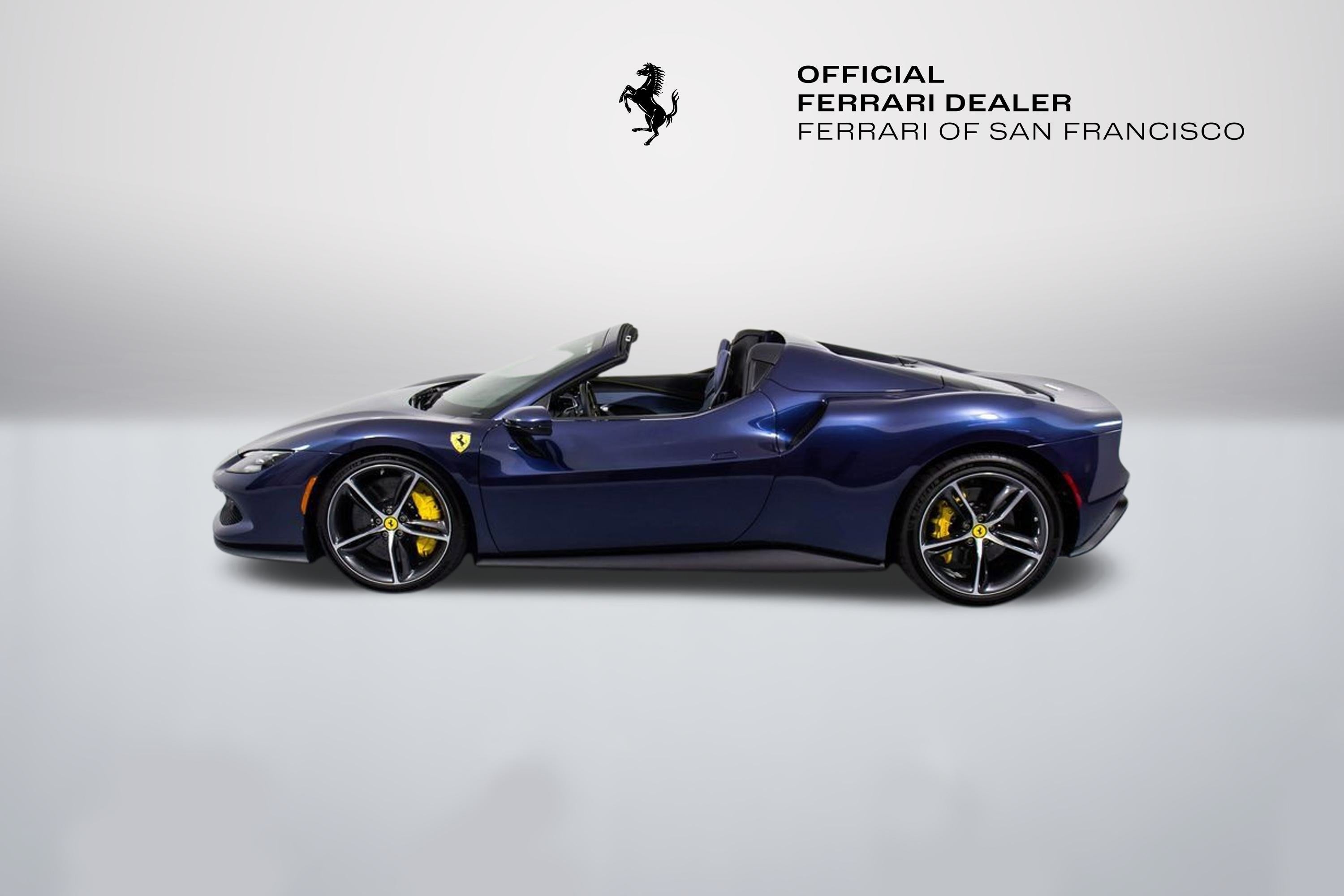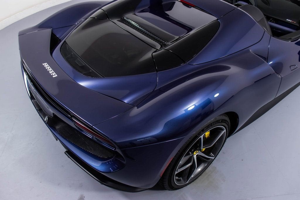 310819 Exterior: Blu Swaters Interior: Carta Da Zucchero Mats: Nero 2024 Ferrari 296 GTS Options: Apple CarPlay AFS System Back Radar Yellow Brake Calipers Upper Part of Center Console in Carbon Fiber Colored Passenger Compartment Details CLDT in Extra Range Leather in Giallo MyFerrari Connect Activated Front Lift Cavallino Stitched on Headrest in Giallo Black Tailpipe Tips Advanced Front Driving Camera Home Link MyFerrari Connect Readiness HW Carb. Fib. Steering Wheel + LEDS 'Scuderia Ferrari' Shields Electrochromic Rear-View Mirror Front and Rear Parking Sensors Leather Passenger Compartment Inserts in Carta Da Zucchero Ferrari Historical Colors in Blu Swaters Carbon Fiber Racing Seats Racing Seat Lifter Diamond-Polished Forged Wheels Premium Hi-Fi System Custom Specifications Colored Special Stitching O.R. in Giallo Wheel Stud Bolts in Titanium Wireless Smartphone Charger The 2024 Ferrari 296 GTS stands out with its iconic Blu Swaters exterior, a historic Ferrari color, beautifully contrasted by the refined Carta Da Zucchero leather interior and Nero mats. Inside, bespoke details shine through with Carta Da Zucchero leather inserts, extra range leather in Giallo accents, and a Cavallino stitched on the headrest in Giallo, further enhanced by special Giallo contrast stitching. Performance-driven elements include carbon fiber racing seats with lifter, a carbon fiber steering wheel with LEDs, and diamond-polished forged wheels, combining luxury with racing pedigree. Technology and convenience are abundant with Apple CarPlay, premium Hi-Fi system, advanced front driving camera, front lift, front and rear parking sensors, wireless smartphone charger, and MyFerrari Connect integration. With yellow brake calipers, Scuderia Ferrari shields, and black tailpipe tips, this 296 GTS blends heritage, innovation, and personalization into a striking open-top masterpiece.