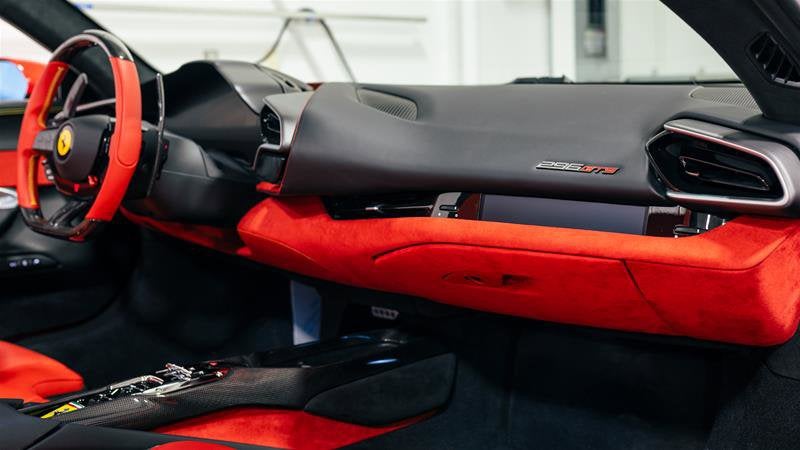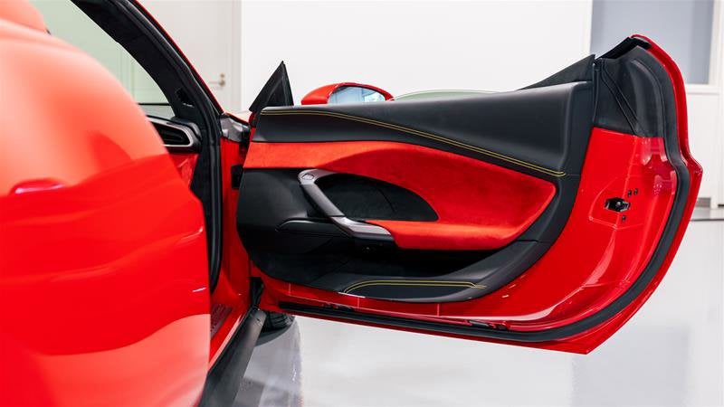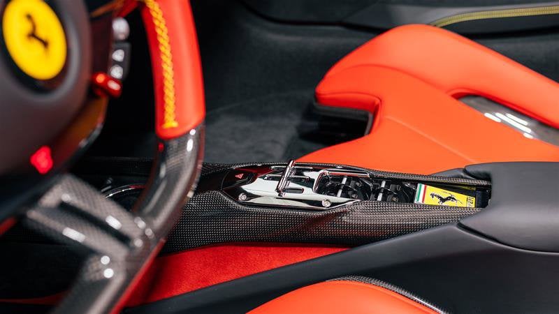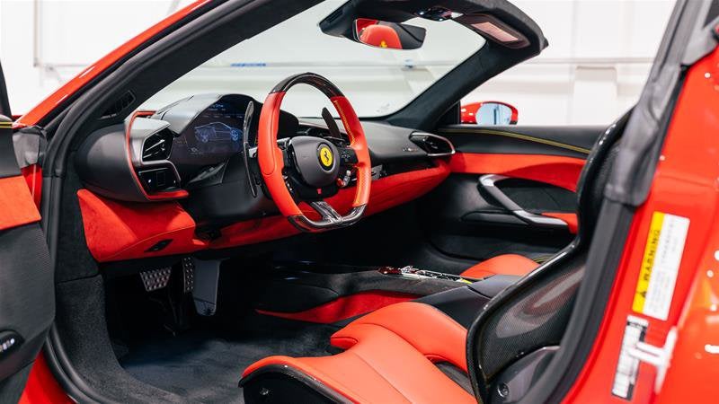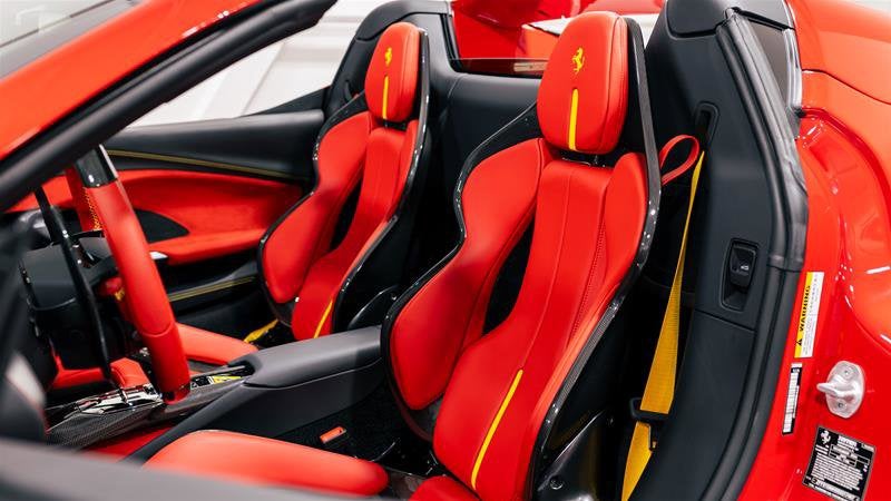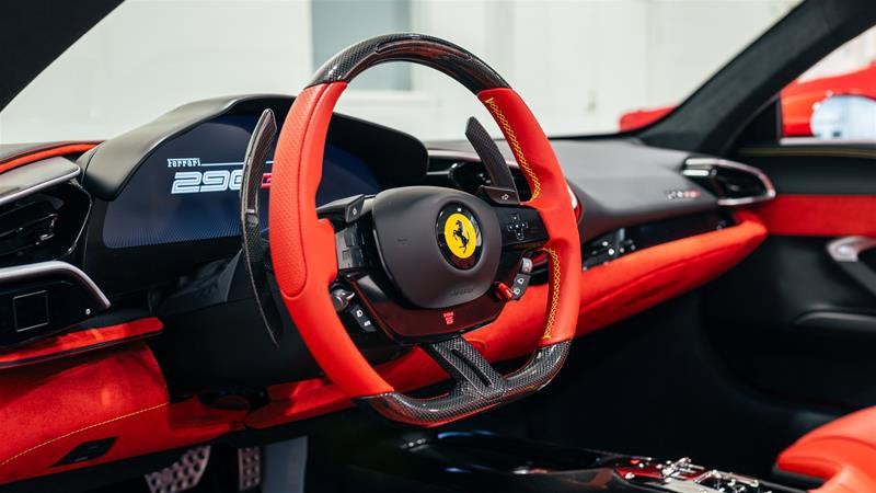 • Leather steering wheel in colour of customer's choice (Rosso Ferrari)