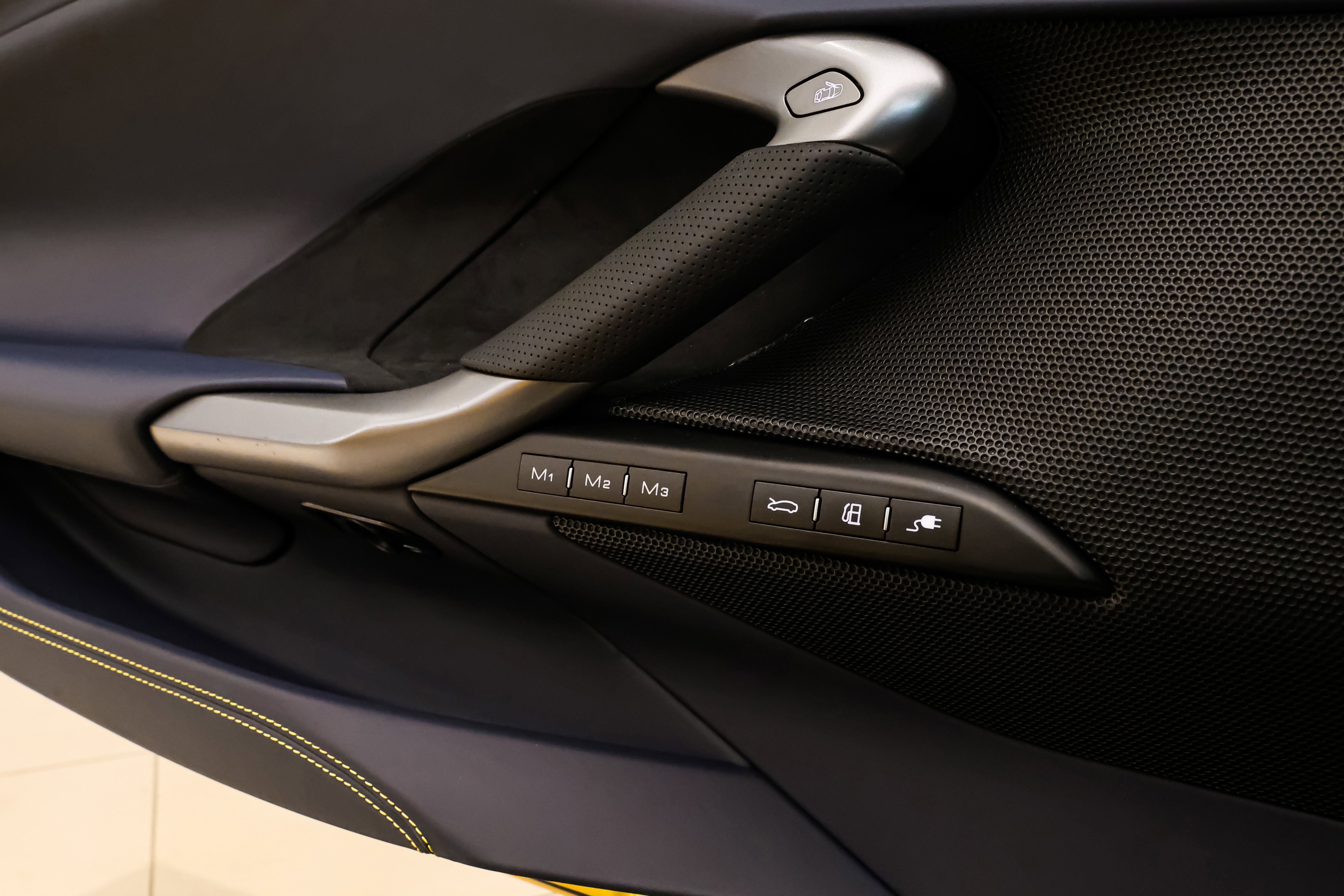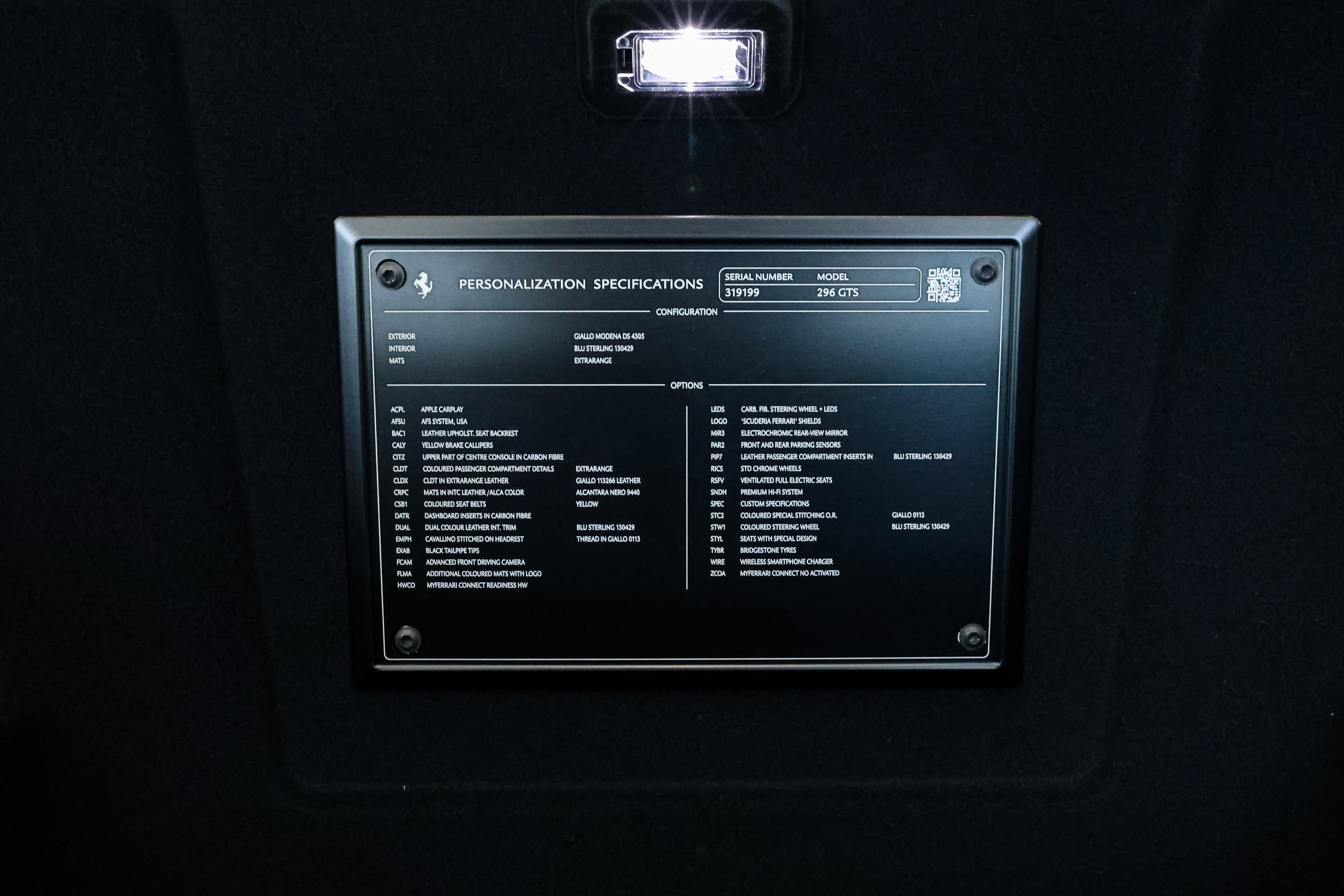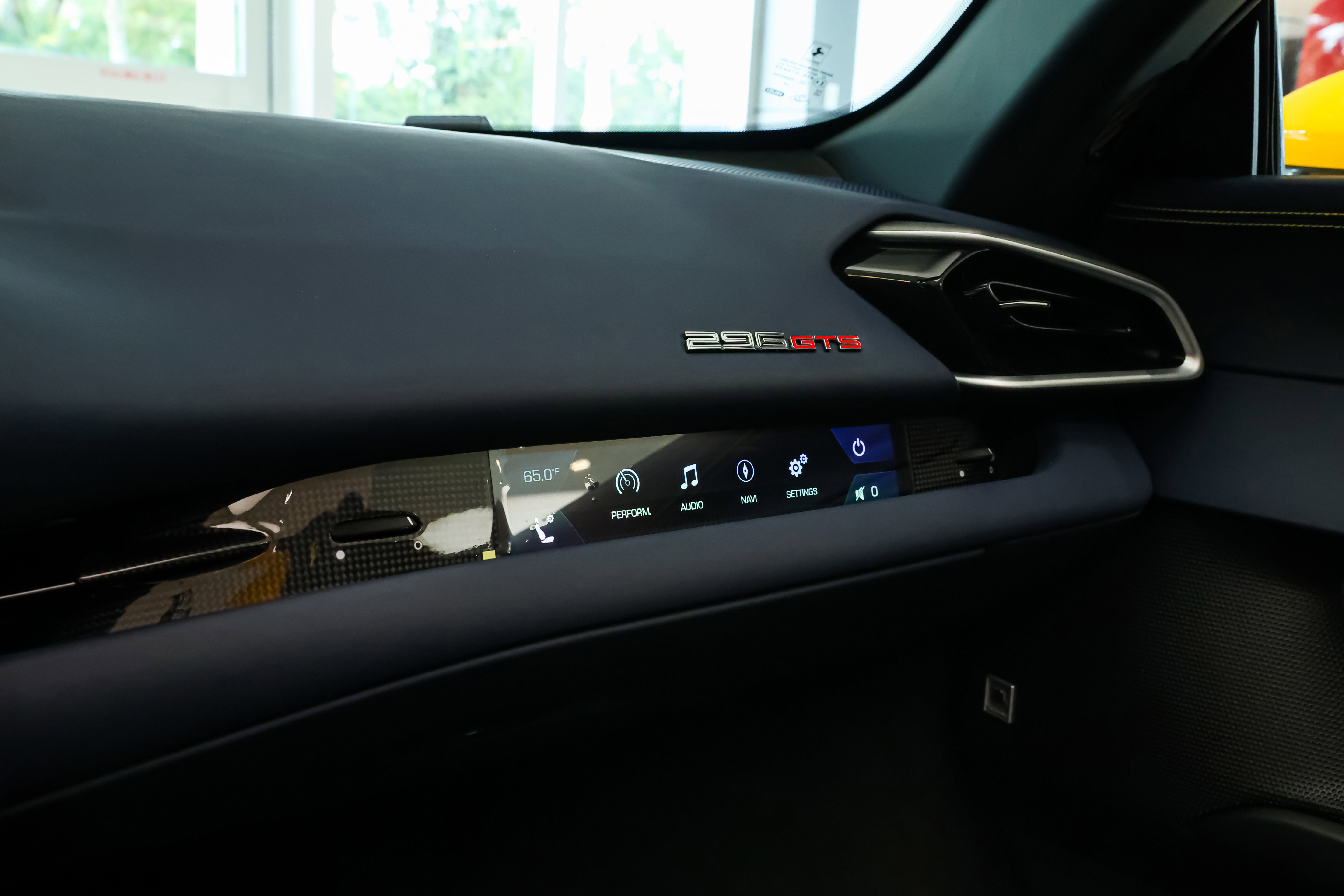 Just wow!  This 2025 Ferrari 296 GTS must be seen!  Only 52 delivery only miles and a stunning configuration.  Finished in Giallo Modena (Ferrari Yellow) with Blu Sterling Interior.  The long option list includes the following: 20" Brilliant Silver Matte Wheels, Front Parking Sensors, Scuderia Ferrari Shields, Advanced Front Driving Camera, Yellow Brake Calipers, Electrochromic Mirrors, Black Ceramic Exhaust Pipes, Full Electric Ventilated Seats with Gialla (Yellow) Leather Seat Accents, Giallo Special Seat Stitching, Extrampionario Seat Striping, Giallo Colored Seat Belts, Blu Sterling Leather Interior Inserts, Colored Mats with Ferrari Logo, Alcantara Nero (Black) Carpet Mat Inserts, Leather Upholstered Seat Backs, Blu Sterling Colored Steering Wheel, Blu Sterling Upper Dash and Interior Appointments, Cavallino Stitched upon the Headrests in Giallo, Wireless SmartPhone Charging System, Apple CarPlay, Ferrari Premium Hi-Fi Sound System, Carbon Fibre Dashboard Inserts, Carbon Fibre Upper Tunnel Trim, and Carbon Fibre Steering Wheel with LED Display.