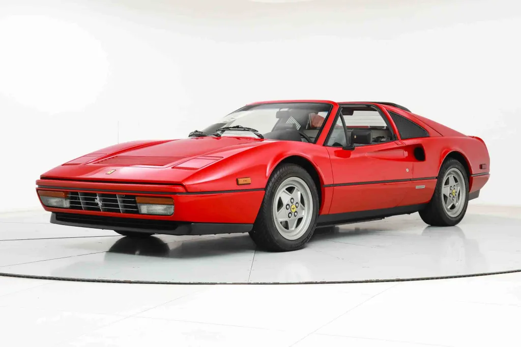 Ferrari 328 GTS - PRISTINE, LOW MILEAGE EXAMPLE - COMPLETE WITH MANUALS, BOOKS, JACK, CHARGER - This gorgeous example of Ferrari's late-1980s eight-cylinder model benefits from a pampered life of minimal use, resulting in extreme originality. Chassis number 79638 completed assembly at the Maranello factory in December 1988, finished in Rosso and trimmed in Nero. Specified for the North American market, the car was exported to the United States in February of 1989. The CarFax report show that the vehicle was titled in the northeast for most of its life, followed by a few years in a California collection. Our dealership received this vehicle a couple years ago and serviced it for sale. Since then it has returned and we are now offering it again. With only 8,724 miles on the odometer, the 328 still features its factory paint and interior, both of which remain in remarkably pristine condition. It is complete with books, jack, and charger.