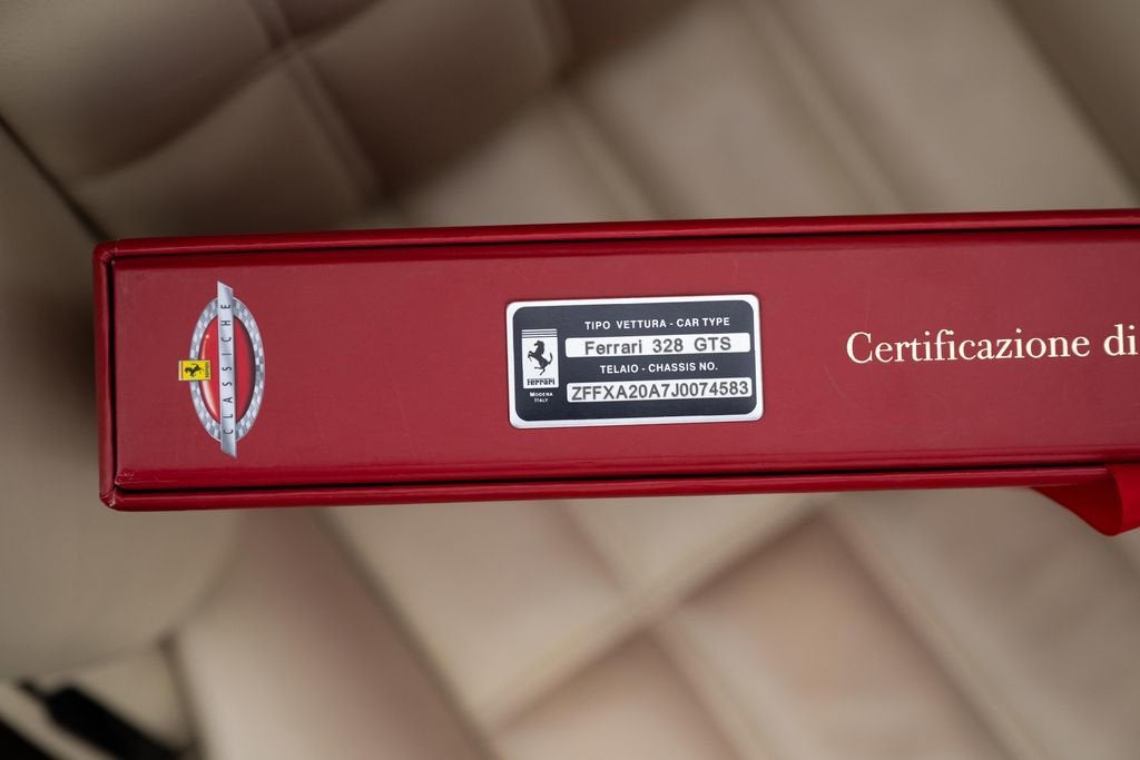 Foreign Cars Italia Charlotte | Official Ferrari Dealer Is proud to offer this 1988 Ferrari 328 GTS, Featured in Rosso Corsa over tan interior. This vehicle is Ferrar Classiche Certified. It comes with alls its Classiche books, certifications, and materials. Currently the only Ferrari Classiche Certified 328 GTS for sale in the US. This vehicle is in excellent condition for its age. It has extensive service history and it was most recently owned by a collector in the Carolinas. This vehicle is worthy of participation at any Concours d'elegance. This is a great opportunity to own a vintage Ferrari with the right history. For a tailored consultation, and carefully crafted walk around video, please contact Joe Greenberg, Ferrari General Manager at 860.550.1149.