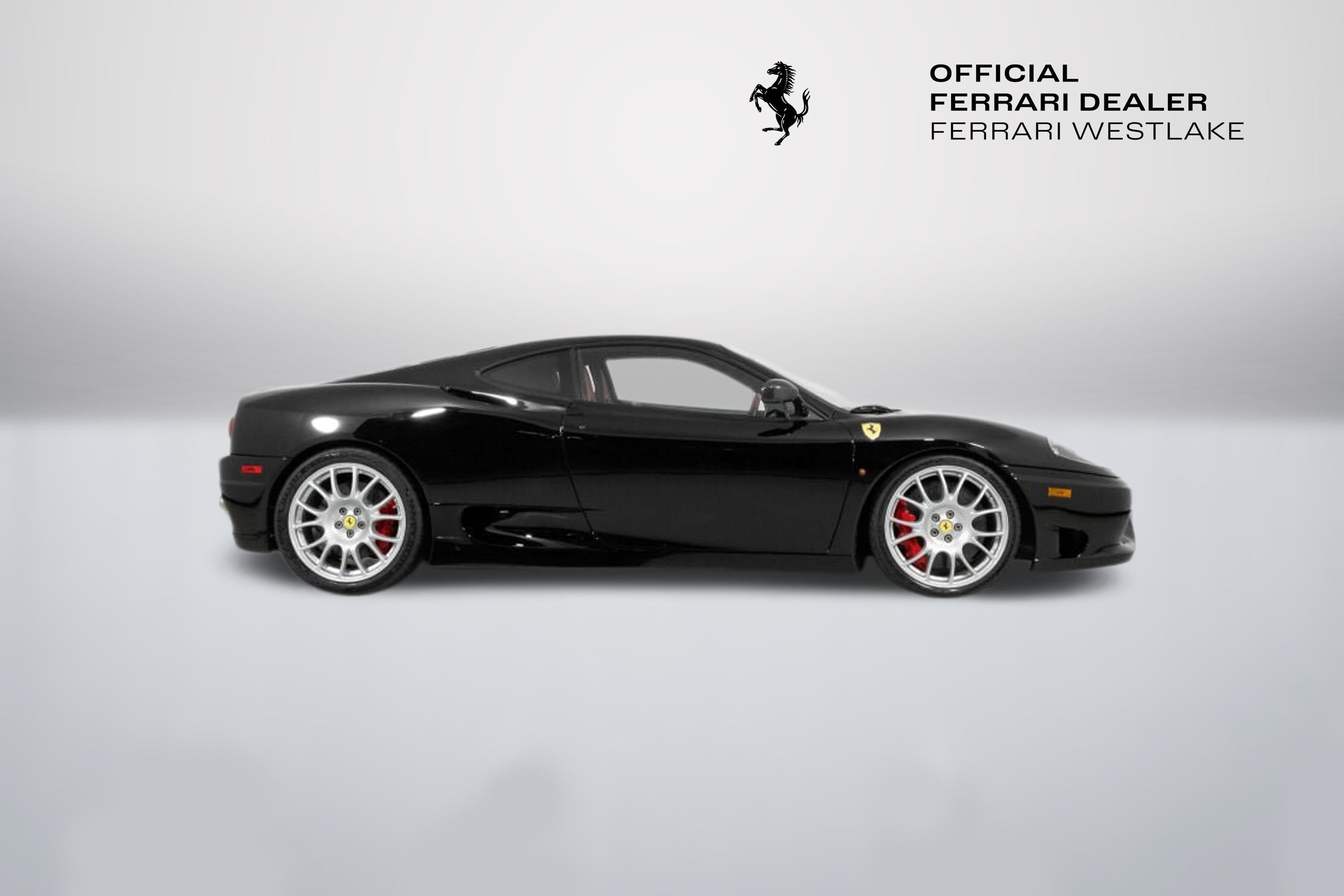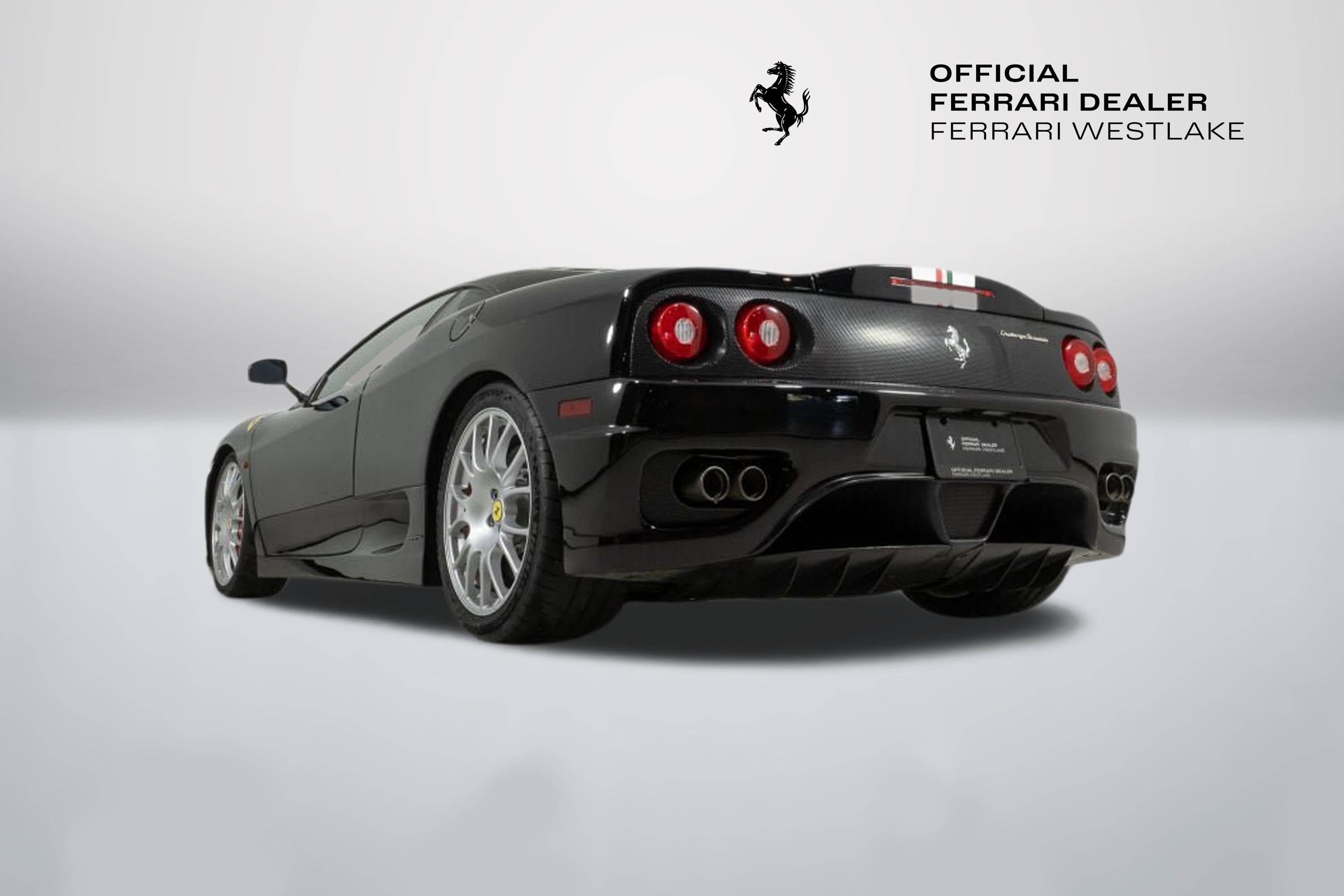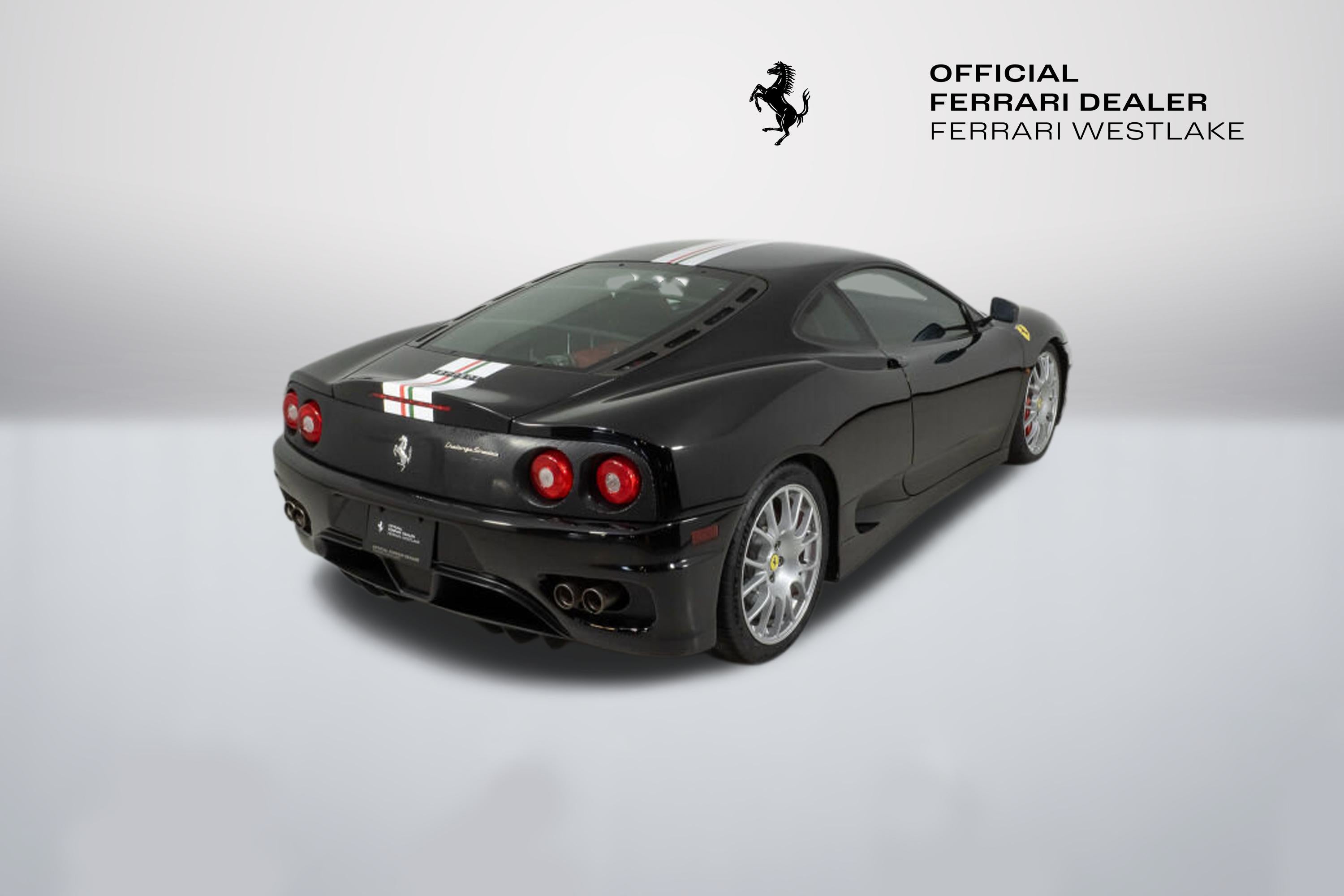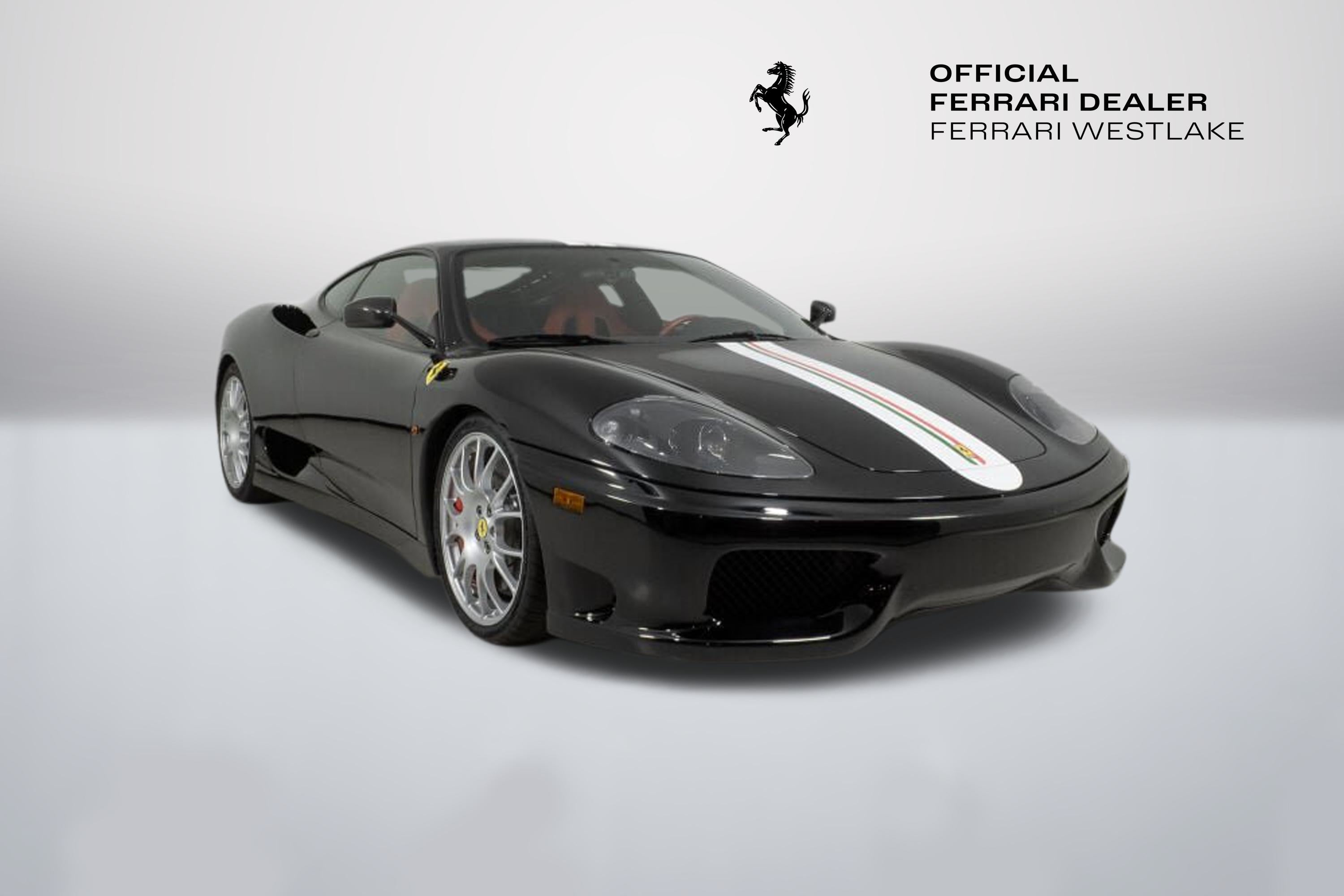 Ferrari Westlake has a truly unique opportunity to acquire a true racing car built for road use, a 2004 360 Challenge Stradale. This example comes to us finished in Nero with a Tricolor Racing Stripe, contrasted beautifully by the Rosso seats and calipers. The experiences coming from the Ferrari Challenge International Championships and the FIA GT races have allowed Ferrari technicians to develop solutions that make the Challenge Stradale really unique. This strong link to racing is underlined not only by significant weight reduction, but also by its engine set up, aerodynamics, braking system and F1 style gearbox. The main material used in the Challenge Stradale's construction was aluminum, which has a specific weight a third of that of steel. The resulting Challenge Stradale was therefore 110 kg lighter than the 360 Modena. On the suspension front, its front and rear titanium springs stiffened and a wider-diameter roll-bar was introduced, resulting in the center of gravity being lowered by 15 mm. A lower racing set-up as well as availing of specific solutions that increased downforce by 50% compared to the 360 Modena. Every last detail of the car’s aerodynamics was honed, right down to the carbon-fibre rear view mirrors which derived from the 360 GT and the 19 Challenge wheels. The braking system featured CCM (Carbon Composite Material) discs, the fruit of Ferrari's ongoing partnership with Brembo. The Challenge Stradale has a 90 V8 mid-engine mounted longitudinally behind the cabin and in unit with the gearbox and differential. Its maximum power was boosted to 425 hp at 8.500 rpm and a high peak torque of 275 lb/ft at 4750 rpm.