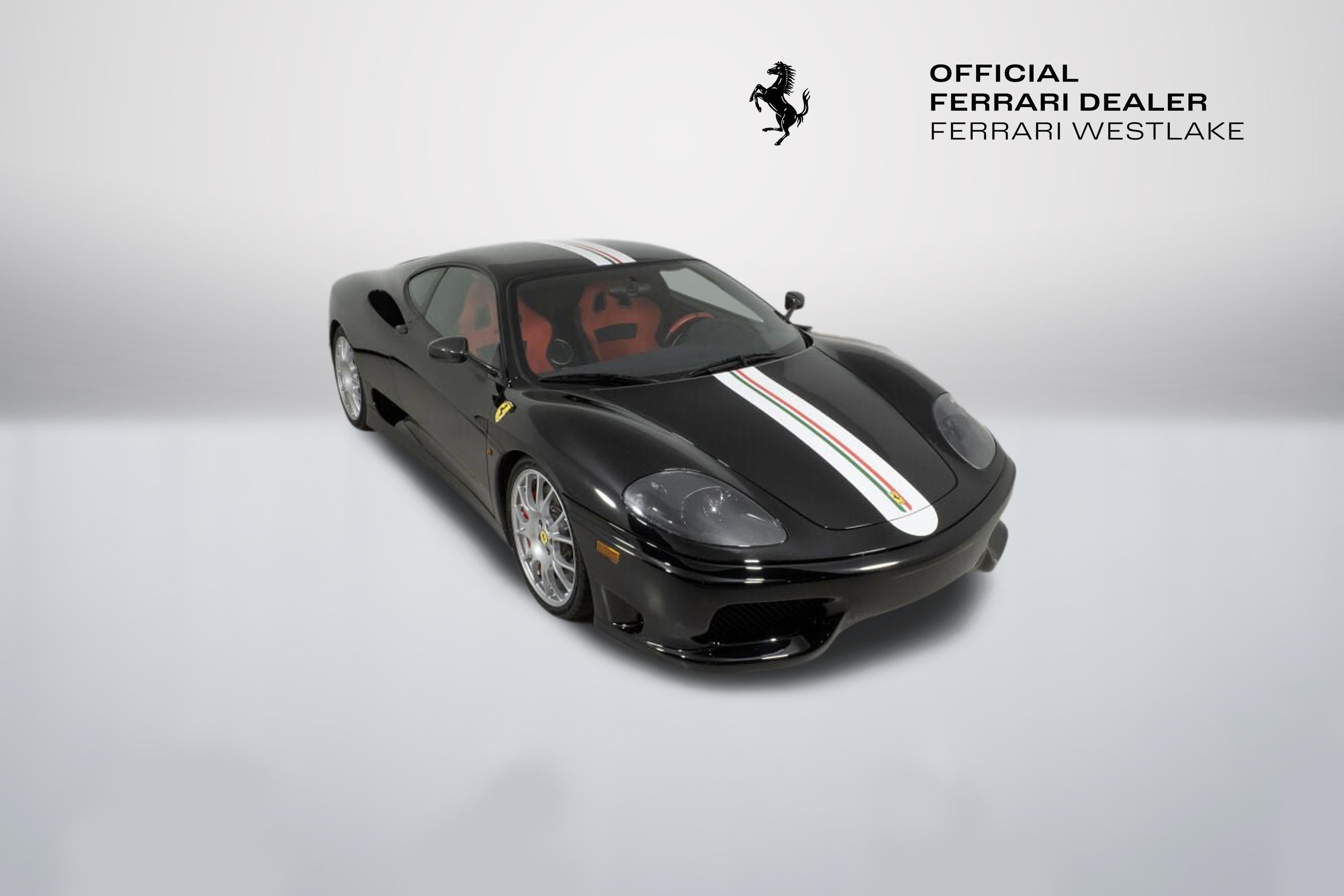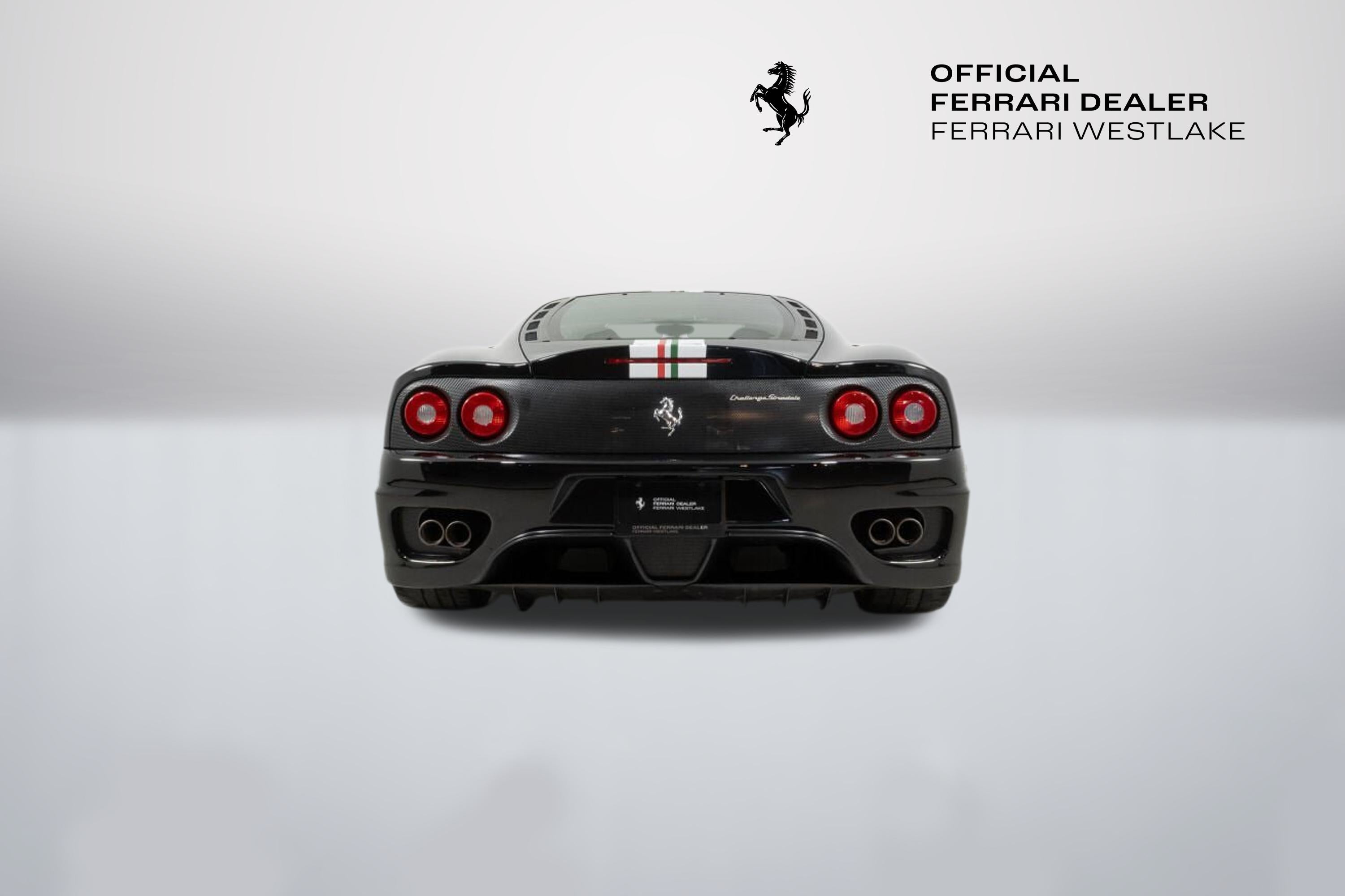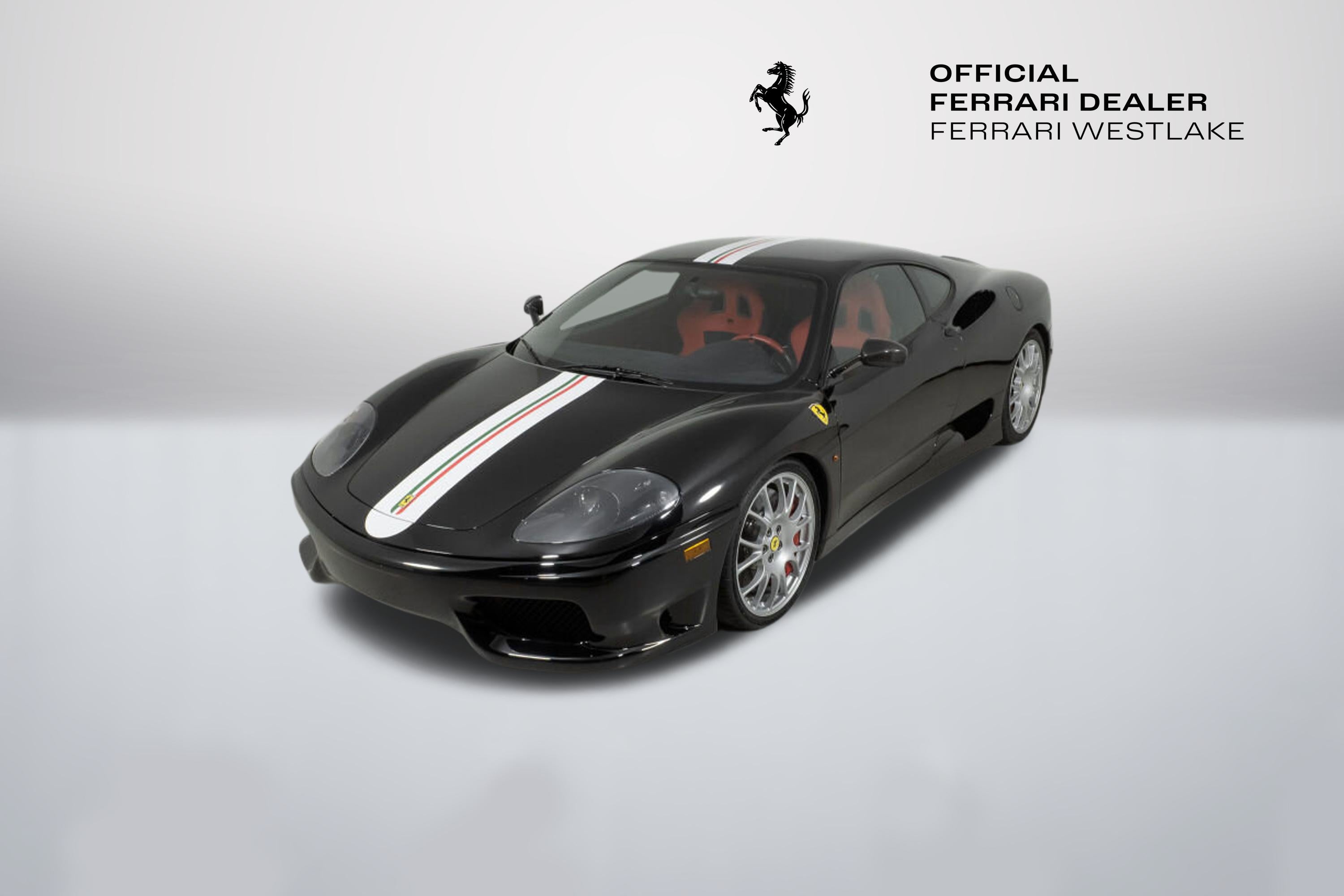 Ferrari Westlake has a truly unique opportunity to acquire a true racing car built for road use, a 2004 360 Challenge Stradale. This example comes to us finished in Nero with a Tricolor Racing Stripe, contrasted beautifully by the Rosso seats and calipers. The experiences coming from the Ferrari Challenge International Championships and the FIA GT races have allowed Ferrari technicians to develop solutions that make the Challenge Stradale really unique. This strong link to racing is underlined not only by significant weight reduction, but also by its engine set up, aerodynamics, braking system and F1 style gearbox. The main material used in the Challenge Stradale's construction was aluminum, which has a specific weight a third of that of steel. The resulting Challenge Stradale was therefore 110 kg lighter than the 360 Modena. On the suspension front, its front and rear titanium springs stiffened and a wider-diameter roll-bar was introduced, resulting in the center of gravity being lowered by 15 mm. A lower racing set-up as well as availing of specific solutions that increased downforce by 50% compared to the 360 Modena. Every last detail of the car’s aerodynamics was honed, right down to the carbon-fibre rear view mirrors which derived from the 360 GT and the 19 Challenge wheels. The braking system featured CCM (Carbon Composite Material) discs, the fruit of Ferrari's ongoing partnership with Brembo. The Challenge Stradale has a 90 V8 mid-engine mounted longitudinally behind the cabin and in unit with the gearbox and differential. Its maximum power was boosted to 425 hp at 8.500 rpm and a high peak torque of 275 lb/ft at 4750 rpm.