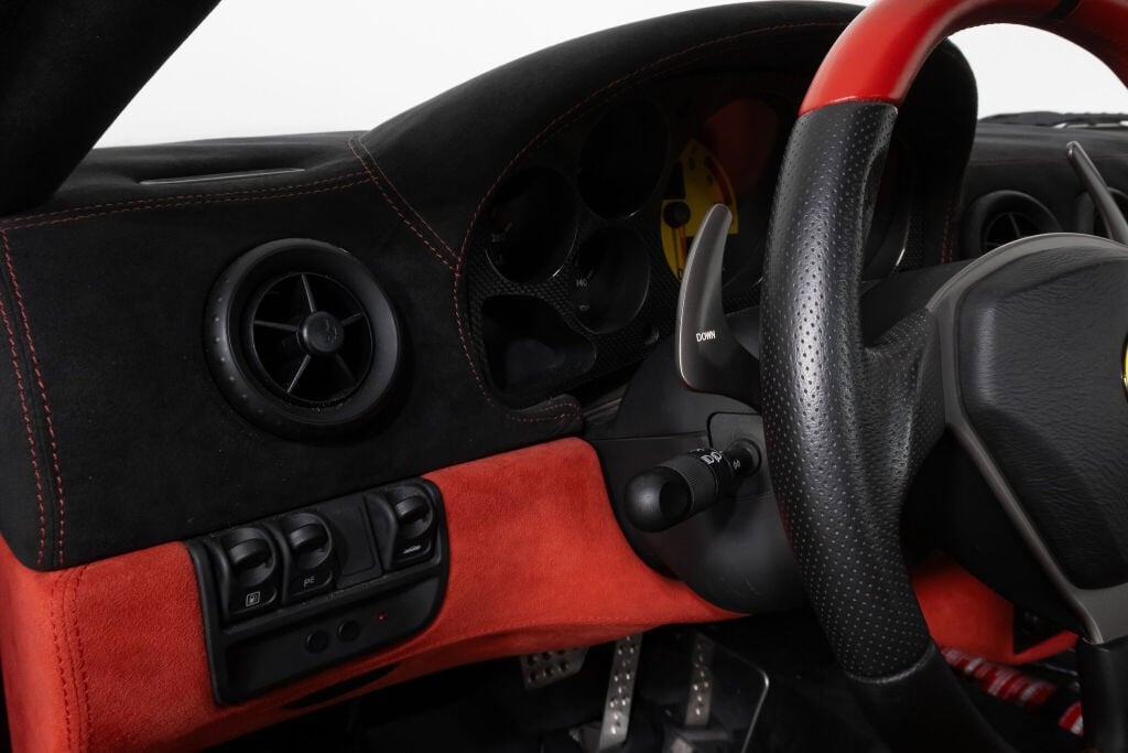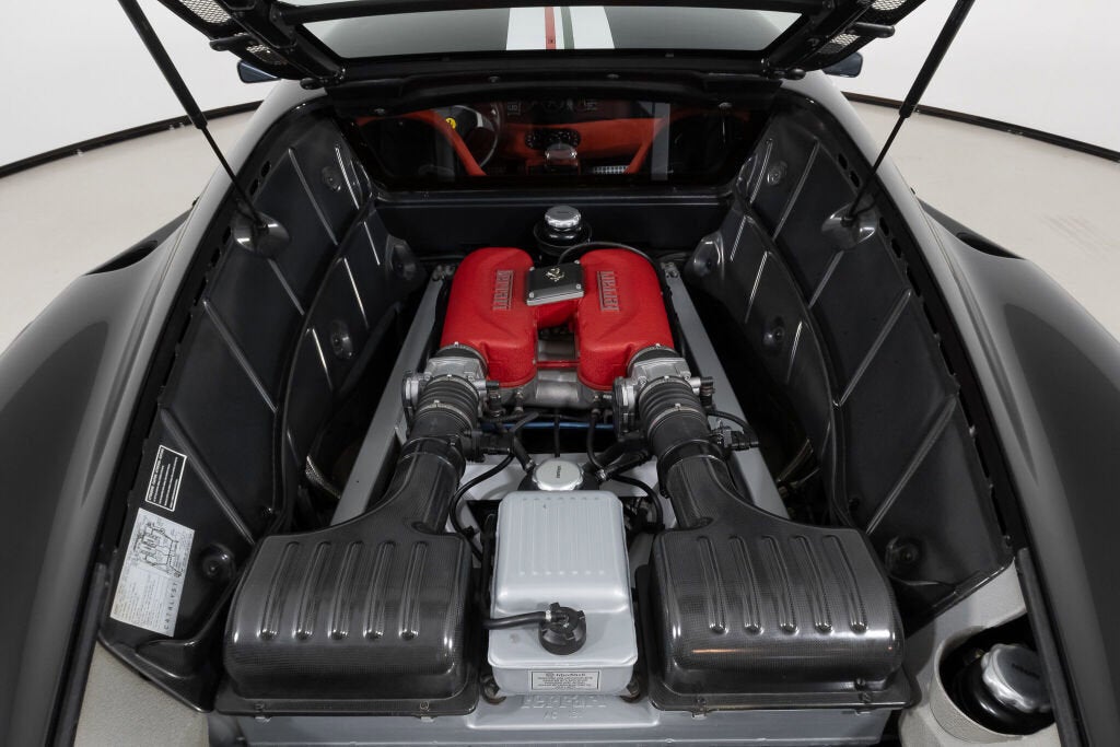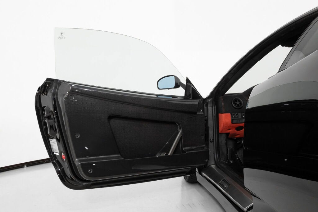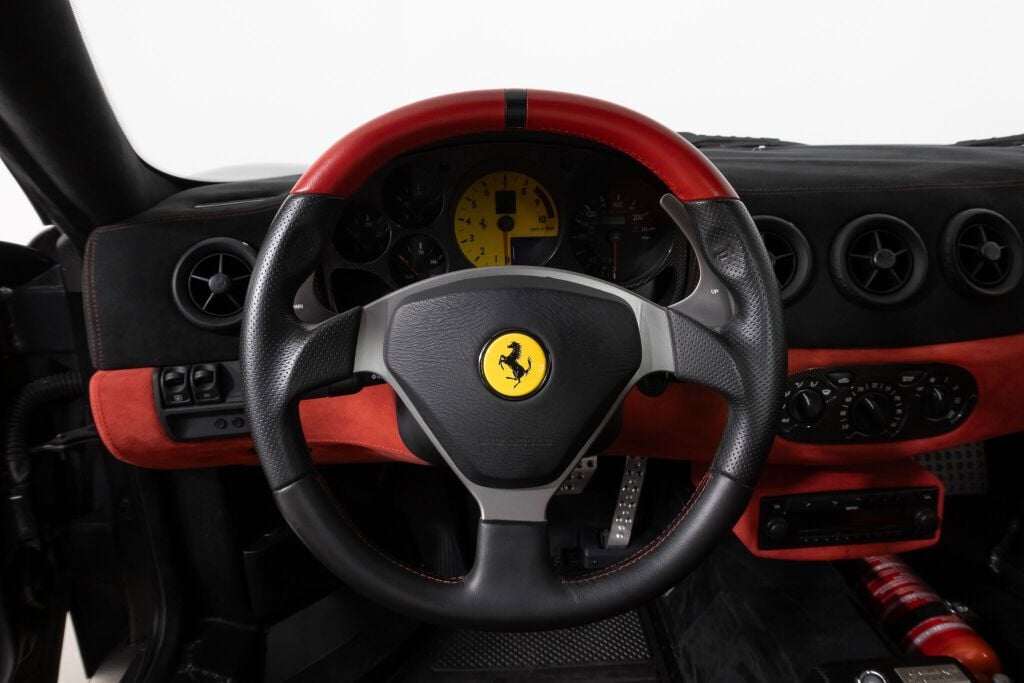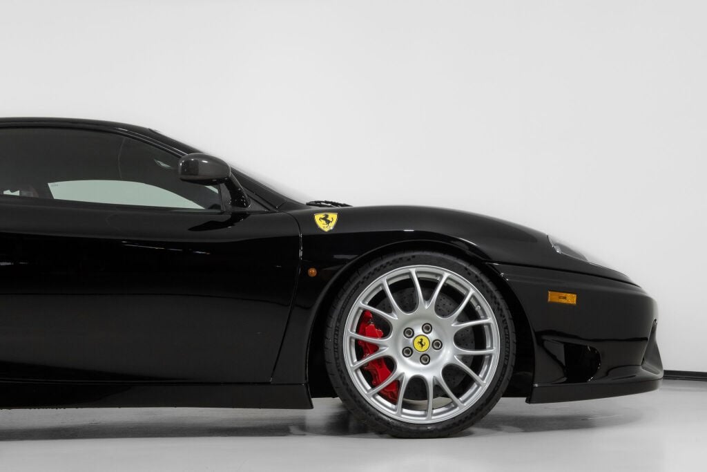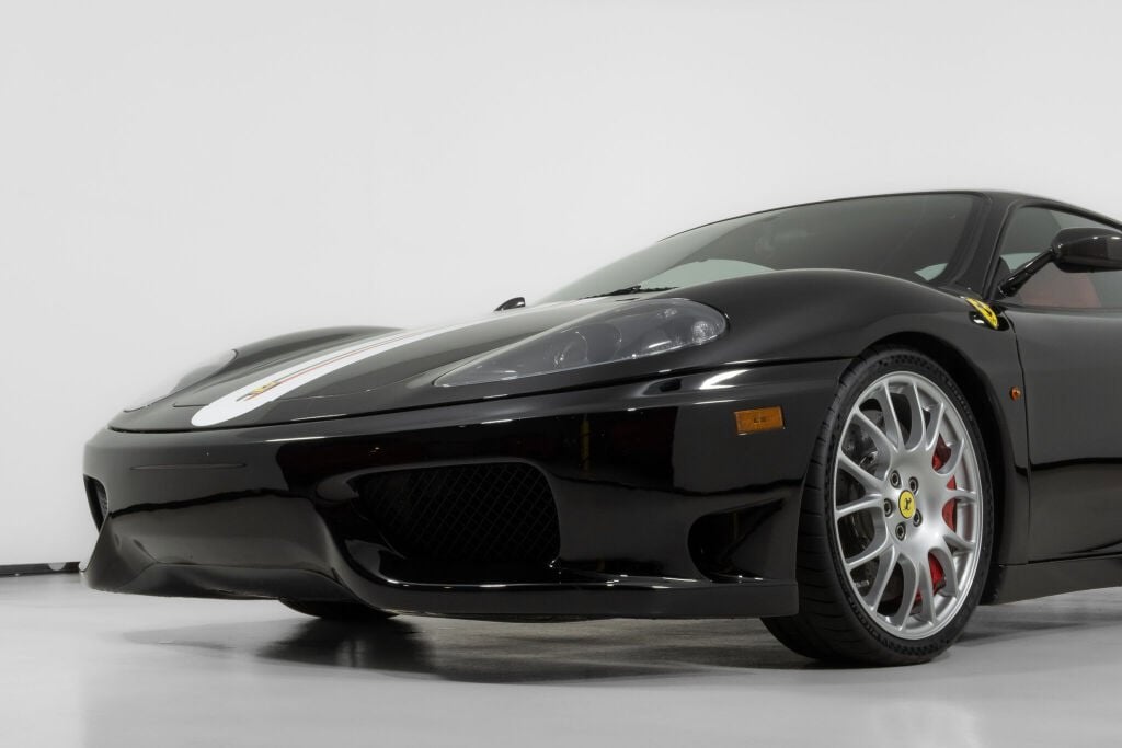 Ferrari Westlake has a truly unique opportunity to acquire a true racing car built for road use, a 2004 360 Challenge Stradale. This example comes to us finished in Nero with a Tricolor Racing Stripe, contrasted beautifully by the Rosso seats and calipers. The experiences coming from the Ferrari Challenge International Championships and the FIA GT races have allowed Ferrari technicians to develop solutions that make the Challenge Stradale really unique. This strong link to racing is underlined not only by significant weight reduction, but also by its engine set up, aerodynamics, braking system and F1 style gearbox. The main material used in the Challenge Stradale's construction was aluminum, which has a specific weight a third of that of steel. The resulting Challenge Stradale was therefore 110 kg lighter than the 360 Modena. On the suspension front, its front and rear titanium springs stiffened and a wider-diameter roll-bar was introduced, resulting in the center of gravity being lowered by 15 mm. A lower racing set-up as well as availing of specific solutions that increased downforce by 50% compared to the 360 Modena. Every last detail of the car’s aerodynamics was honed, right down to the carbon-fibre rear view mirrors which derived from the 360 GT and the 19 Challenge wheels. The braking system featured CCM (Carbon Composite Material) discs, the fruit of Ferrari's ongoing partnership with Brembo. The Challenge Stradale has a 90 V8 mid-engine mounted longitudinally behind the cabin and in unit with the gearbox and differential. Its maximum power was boosted to 425 hp at 8.500 rpm and a high peak torque of 275 lb/ft at 4750 rpm.