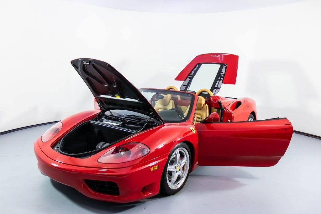 129567 Exterior: Rosso Corsa Interior: Beige Mats: Nero 2002 Ferrari 360 Modena Spider Options: Red Brake Calipers 6 CD Changer Daytona Style Seat Electrically Operated Seats Piping in Color Upon Request Modular Wheel Rims Roll Bar Upholstery Color High Power HiFi with Subwoofer Special Stitching This 2002 Ferrari 360 Spider is a timeless open-top Italian classic, finished in iconic Rosso Corsa over an elegant Beige interior with Nero mats. Its sculpted Pininfarina design is complemented by modular wheel rims and red brake calipers, perfectly capturing the pure, analog Ferrari experience of the early 2000s. Inside, Daytona style electrically operated seats with special stitching and color-matched piping create a refined yet sporting atmosphere, further enhanced by color-coordinated roll bar upholstery. Equipped with a high-power HiFi system with subwoofer and a 6-CD changer, this 360 Spider blends vintage Ferrari charm with period-correct luxury, making it a highly desirable example of Maranellos naturally aspirated V8 open-air heritage.