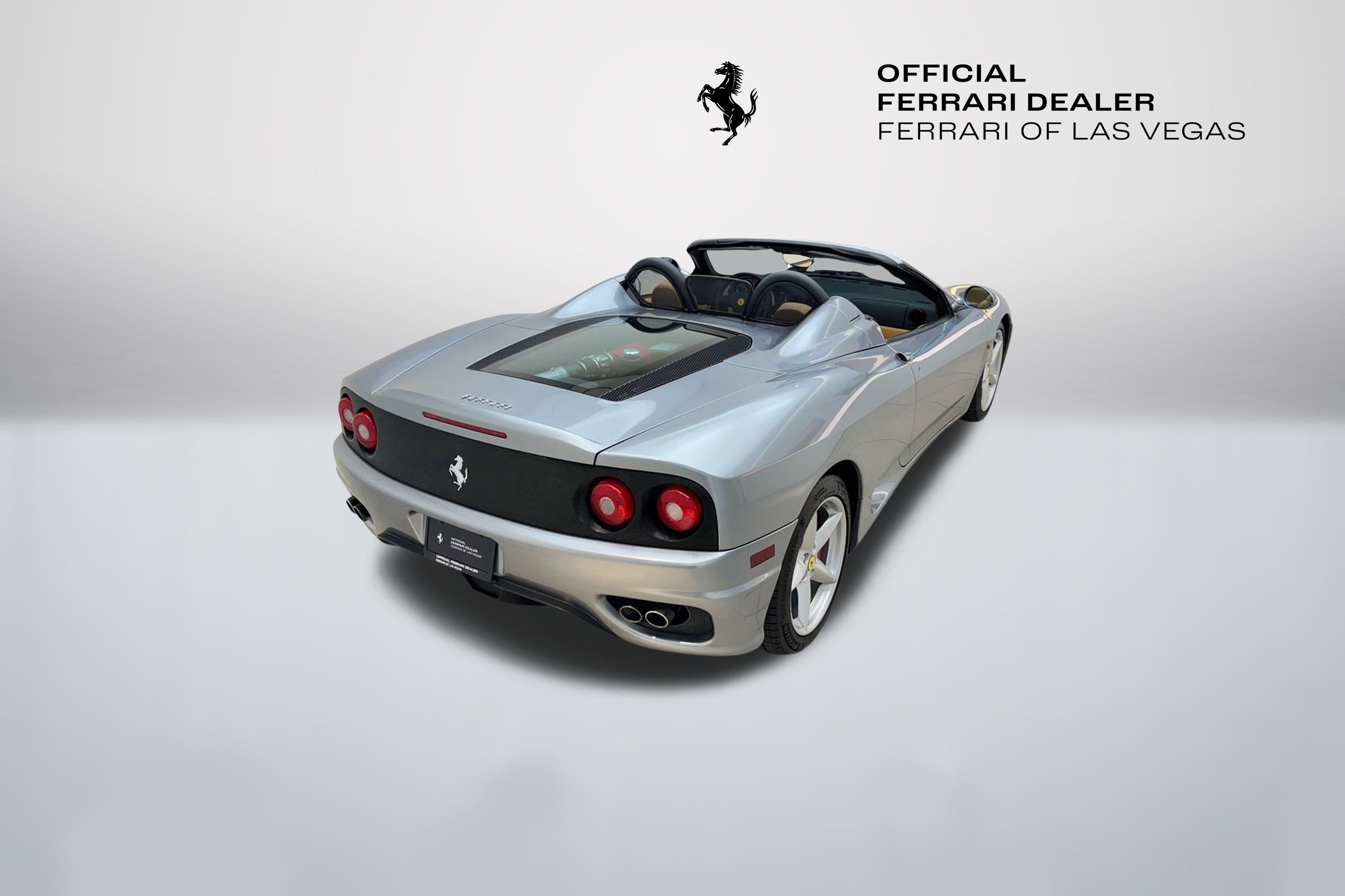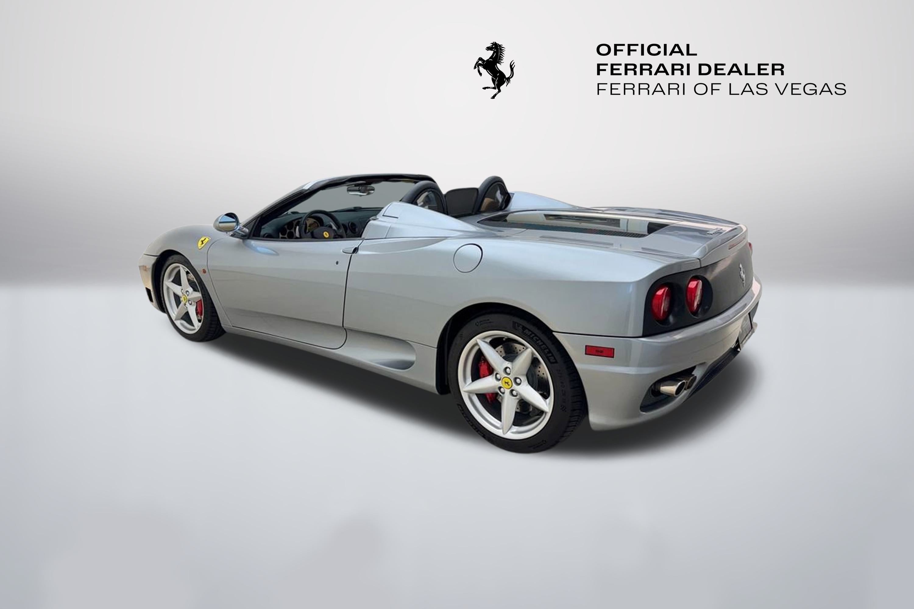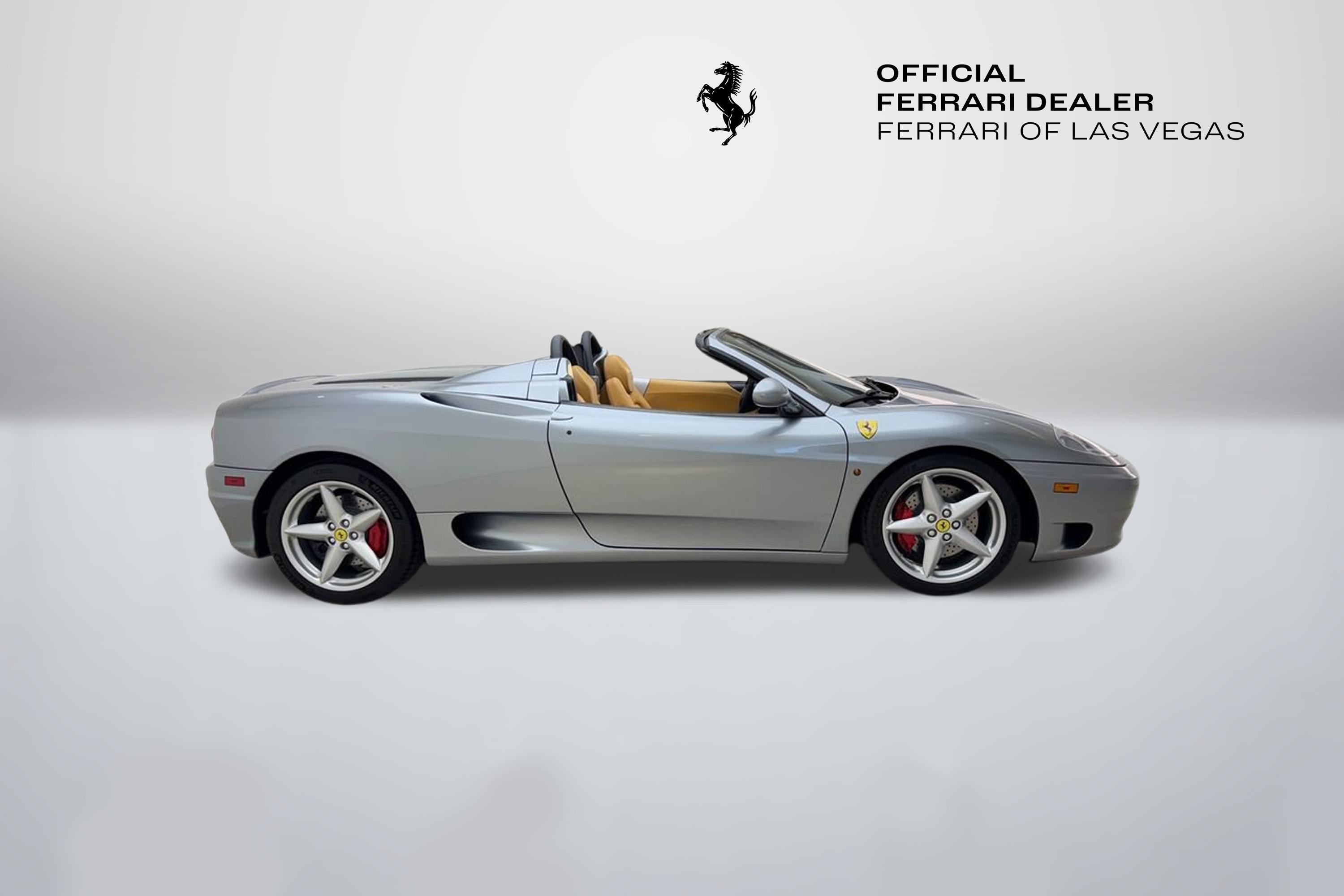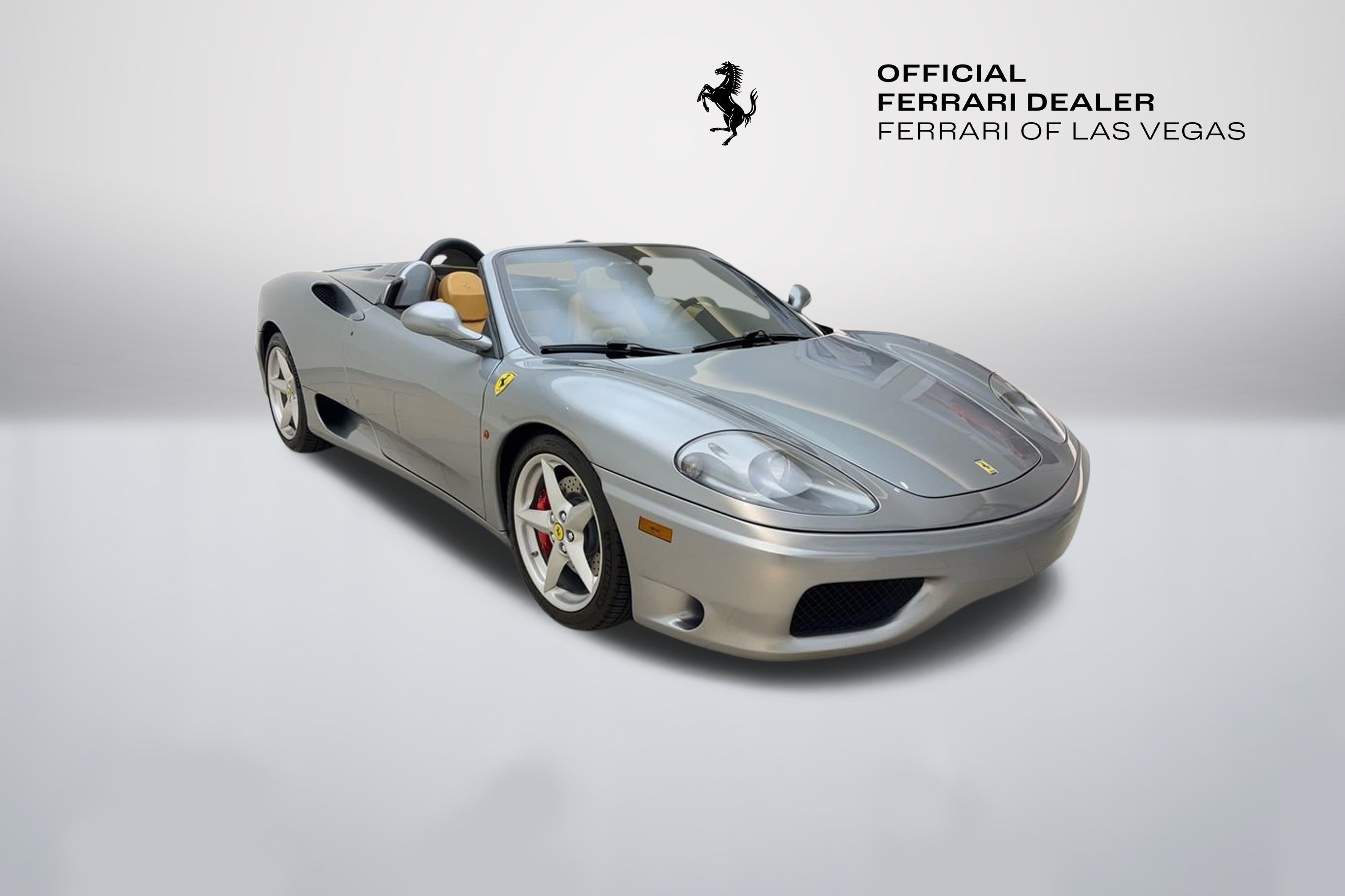 Authorized Dealer! Ferrari Of Las Vegas is pleased to offer this exceptionally clean 360 Modena Spider we recently picked up on trade! Fully serviced and ready to go buy with confidence from Nevada's only authorized Ferrari dealer! Authorized Dealer! Fresh Service Clean Carfax No Accident Vehicle Grigio Titanio Exterior Beige Interior Scuderia Ferrari Shields $1188 Red Brake Calipers $715 Daytona Style Seating $2203 Electrically Operated Seats $1998 6 CD Changer $1086 Battery Charger Pre-Wire $807 Colored Upper Dashboard $666 Rear Challenge Grill $623 Front Challenge Style Grill $527 Sat Navigation $2256 Roll Bar Upholstery Color $355 Leather Rear Shelf $1752 Hi Power Hi Fi $1612 Fresh Service! Buy with confidence from Nevada's only authorized Ferrari dealer, Ferrari of Las Vegas. We hand-select only the best with every car receiving an extensive reconditioning process to ensure that only the finest examples are offered for sale. Ferrari of Las Vegas does not reserve, or hold advertised vehicles. All cars in inventory are subject to sale on a first come first serve basis. We reserve the right to revise price, equipment, mileage, and certification status as a result of changing market conditions, manufacturer/distributor notices including recall notices, or errors. All vehicle pricing expires upon close of business the same day. Call 702-932-7100