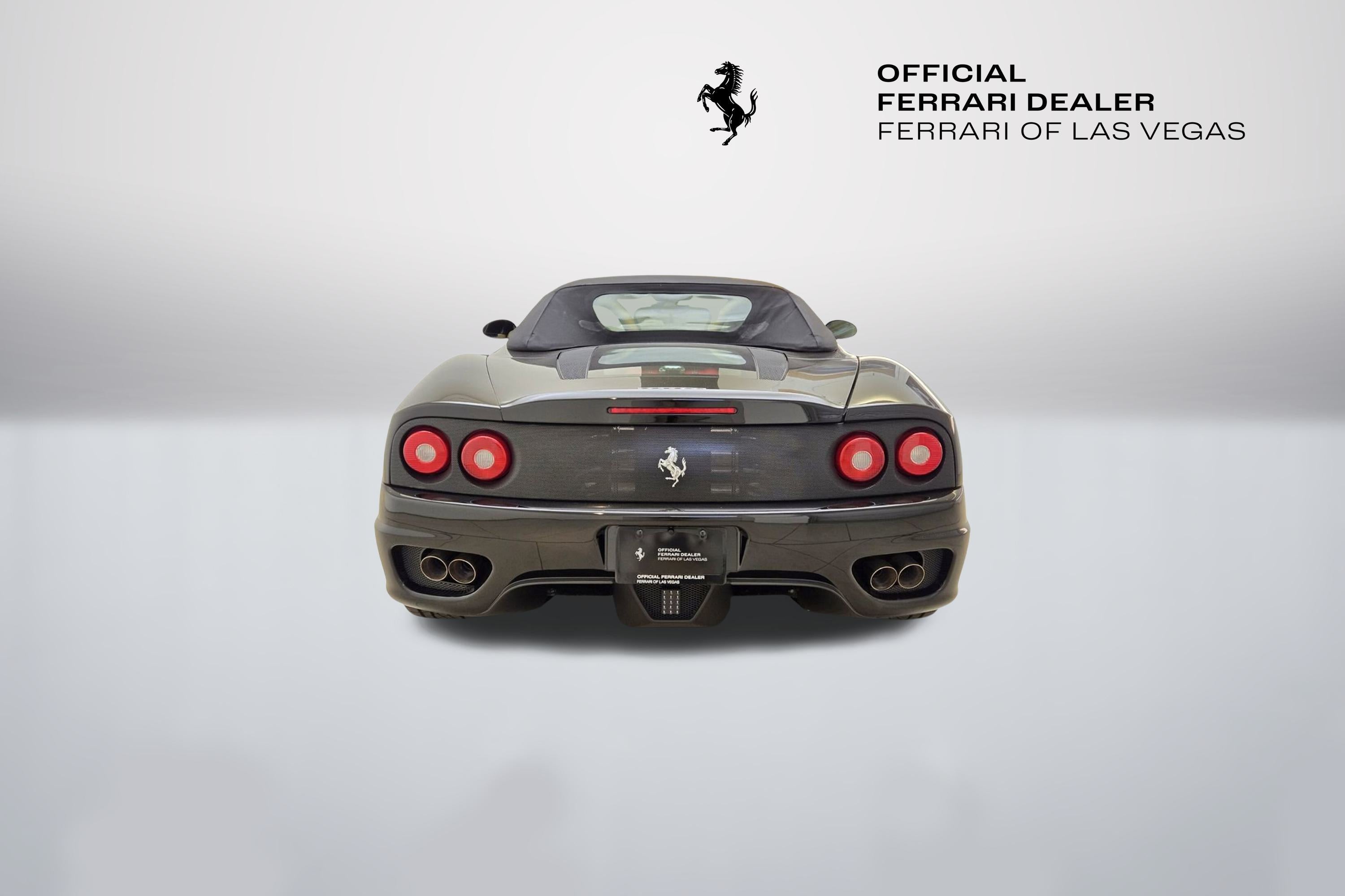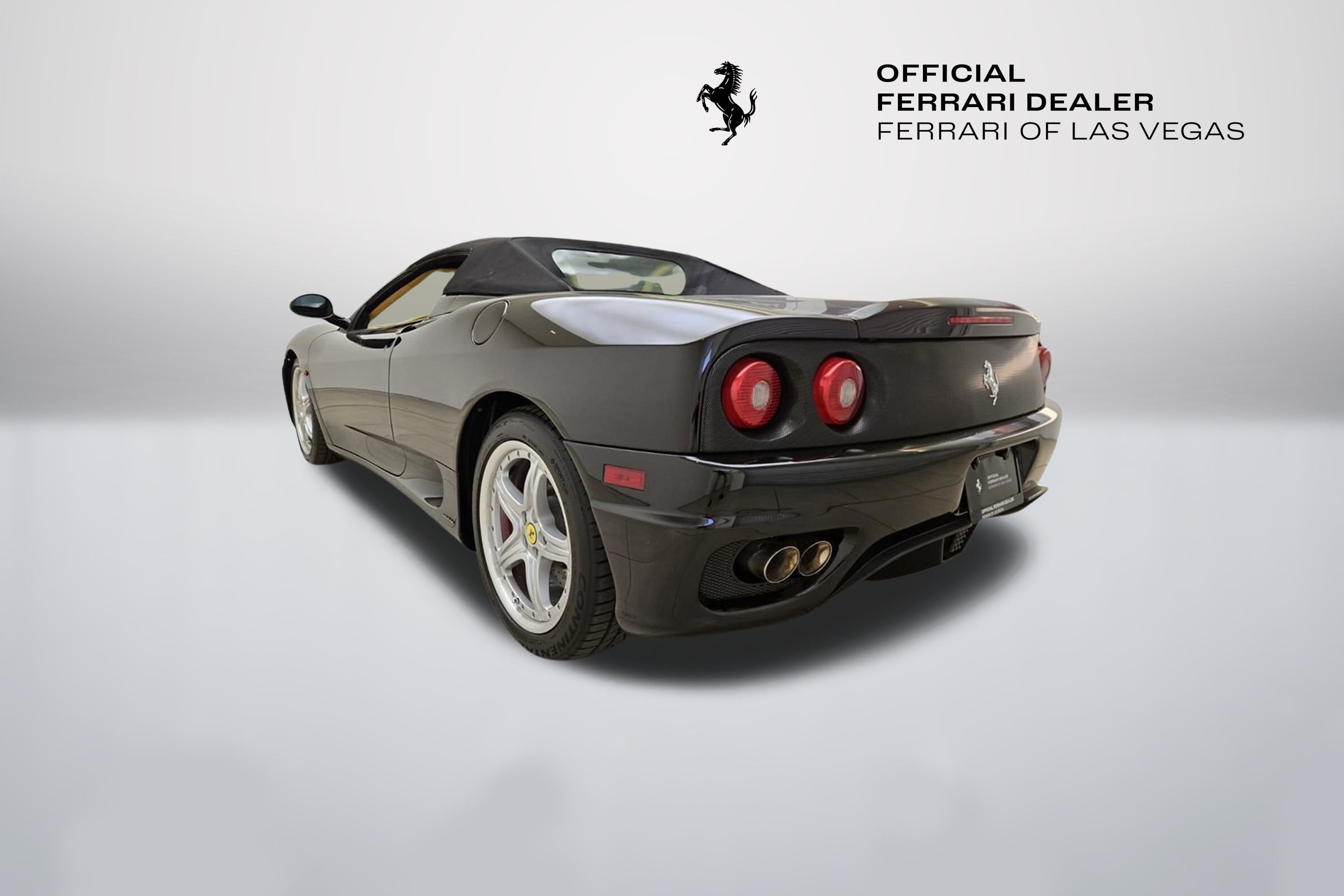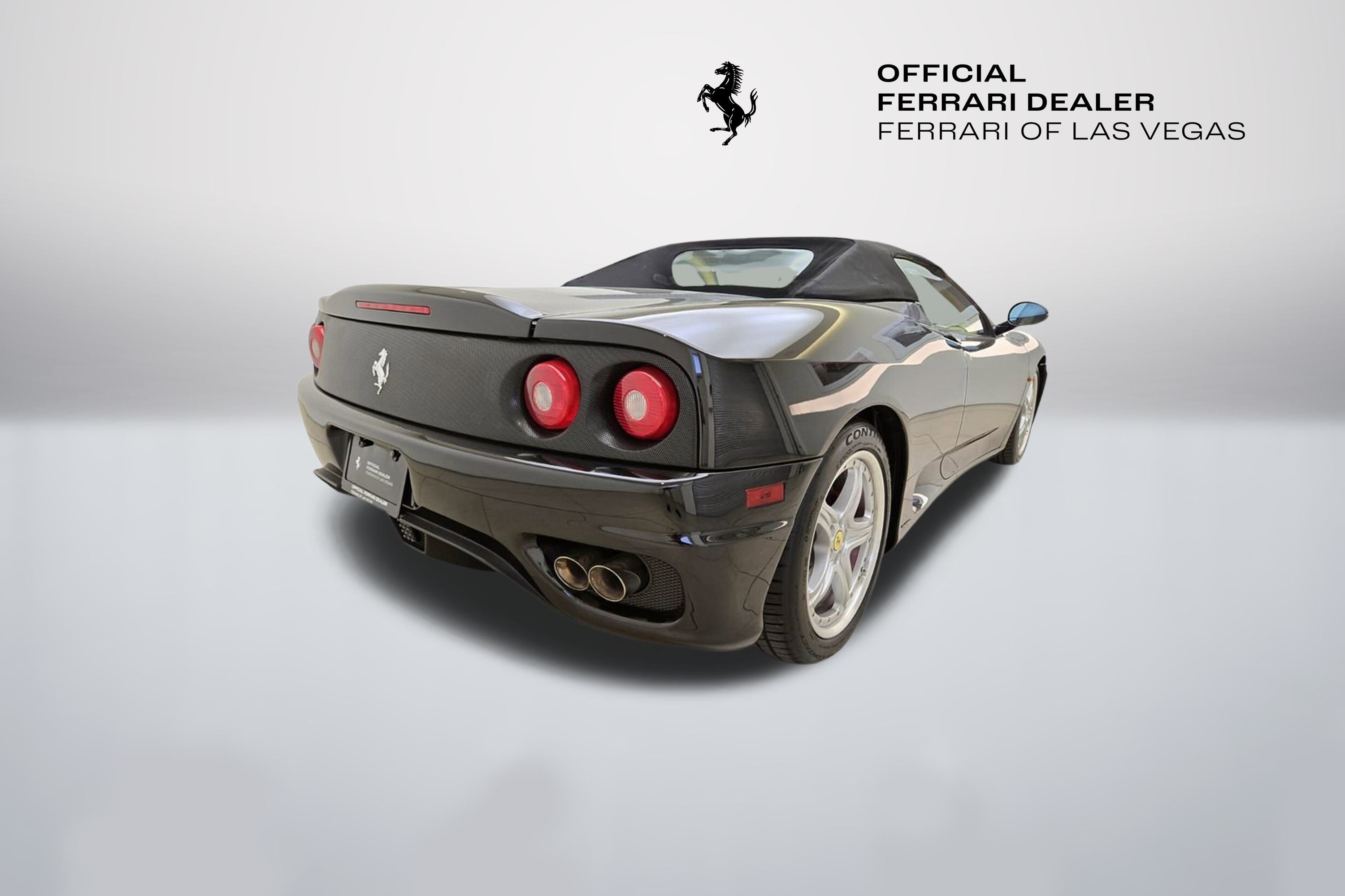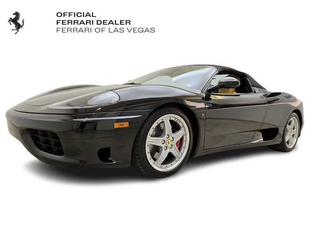 Authorized Dealer! Ferrari Of Las Vegas is pleased to offer this exceptionally clean 360 Modena Spider we recently picked up on trade! Fully serviced and ready to go buy with confidence from Nevada's only authorized Ferrari dealer! Authorized Dealer! Fresh Service Clean Carfax No Accident Vehicle Nero Exterior Beige Interior Red Brake Calipers $715 Electrically Operated Seats $2299 6 CD Changer $1086 Colored Upper Dashboard $666 Rear Challenge Grill $709 Roll Bar Upholstery Color $441 Leather Rear Shelf $1967 Colored Steering Wheel Fresh Service! Buy with confidence from Nevada's only authorized Ferrari dealer, Ferrari of Las Vegas. We hand-select only the best with every car receiving an extensive reconditioning process to ensure that only the finest examples are offered for sale. Ferrari of Las Vegas does not reserve, or hold advertised vehicles. All cars in inventory are subject to sale on a first come first serve basis. We reserve the right to revise price, equipment, mileage, and certification status as a result of changing market conditions, manufacturer/distributor notices including recall notices, or errors. All vehicle pricing expires upon close of business the same day. Call 702-932-7100