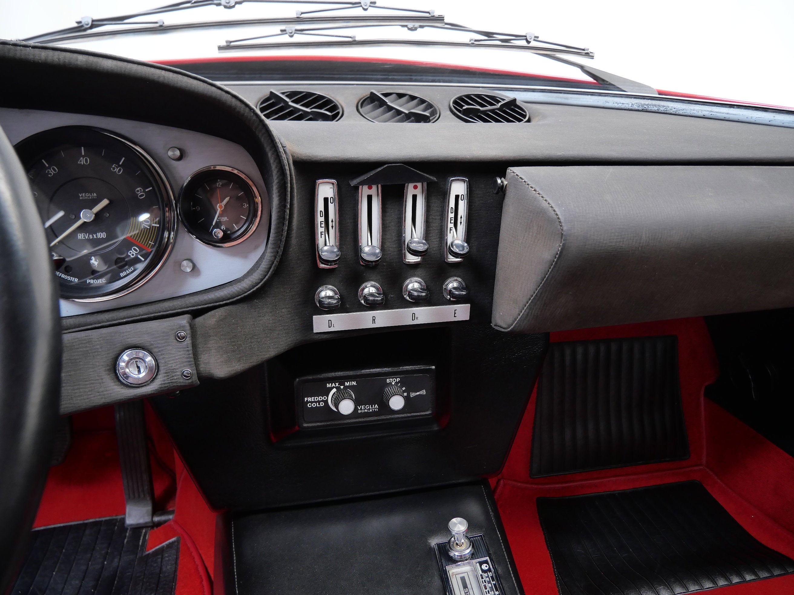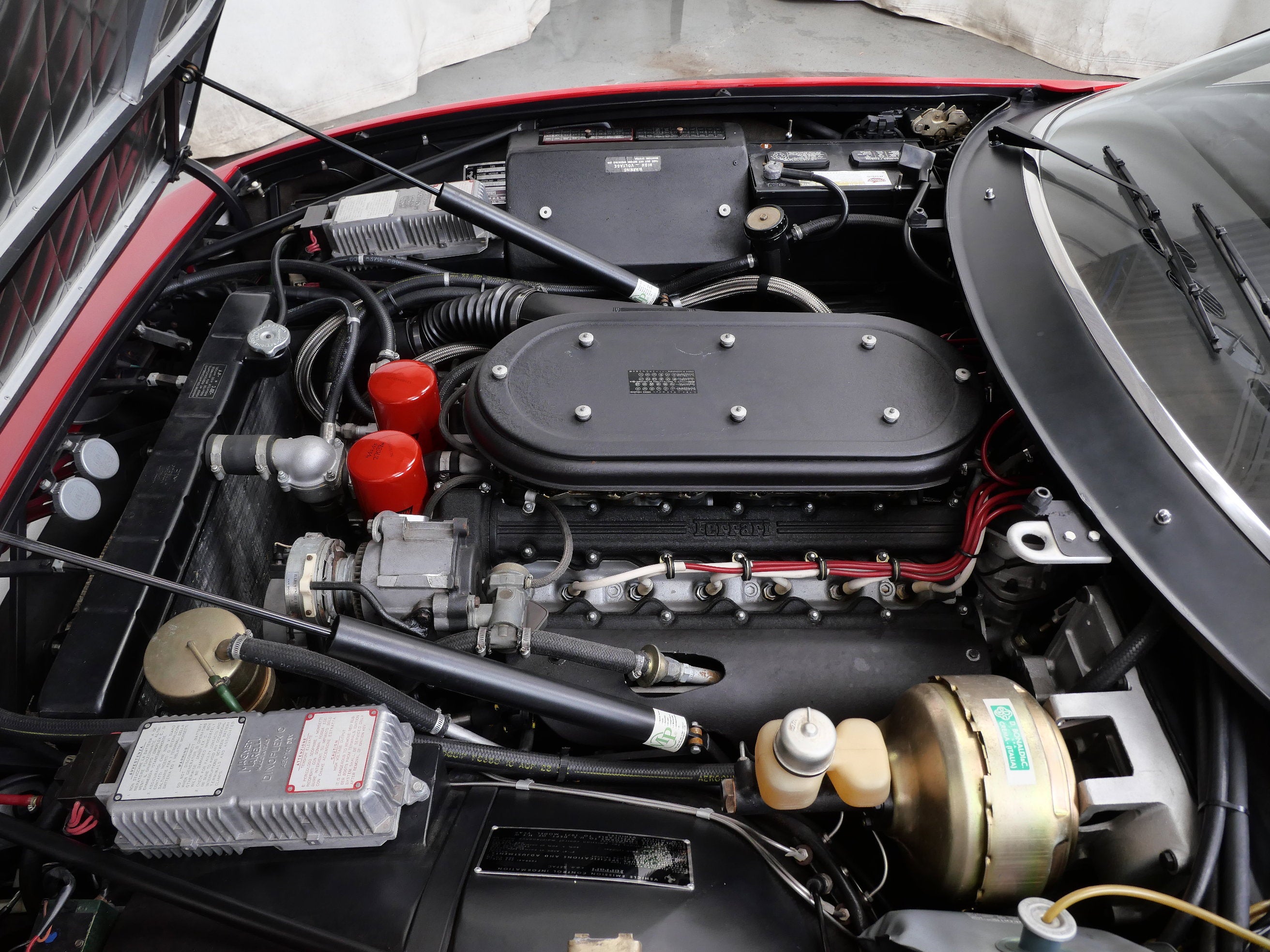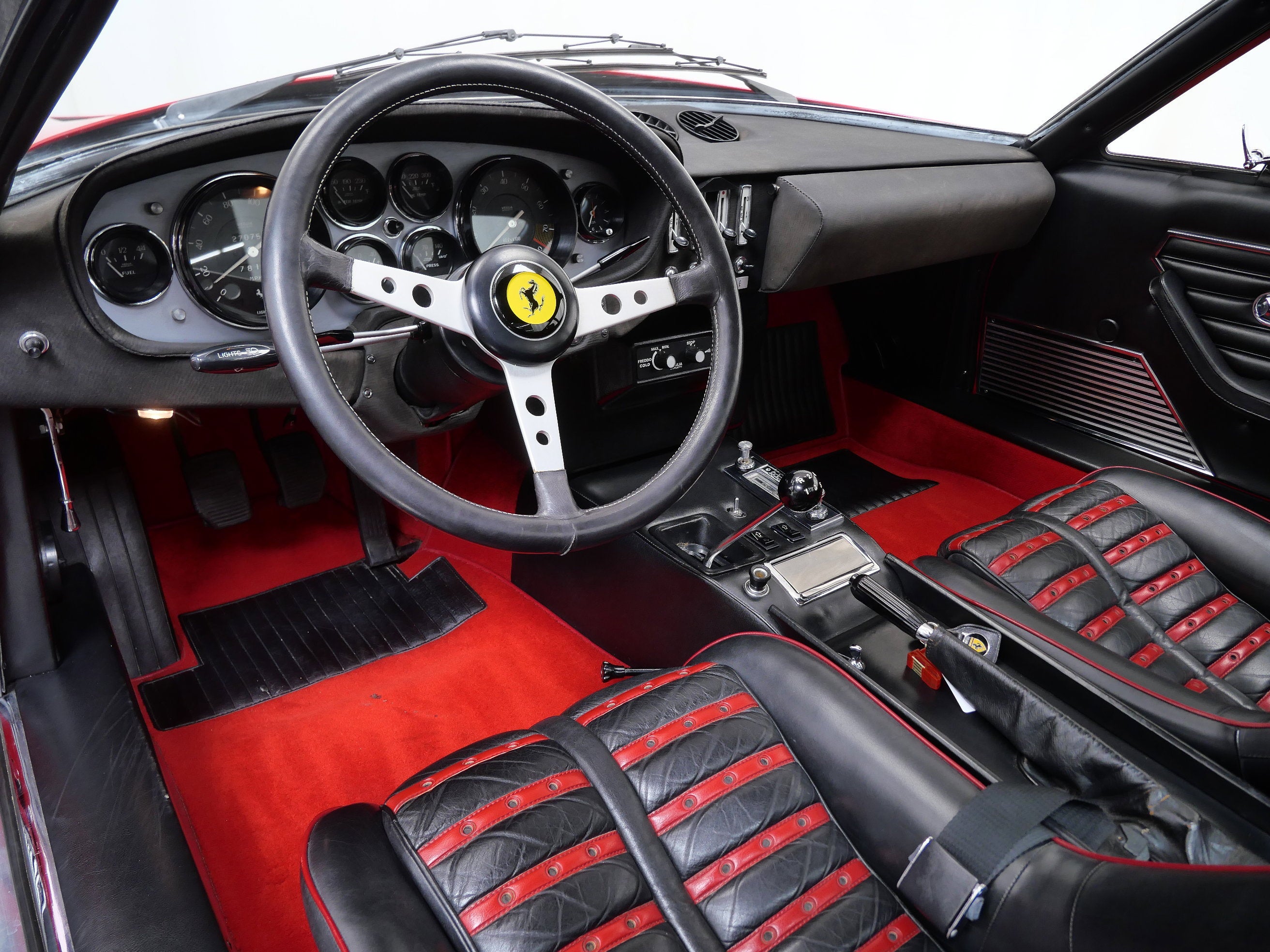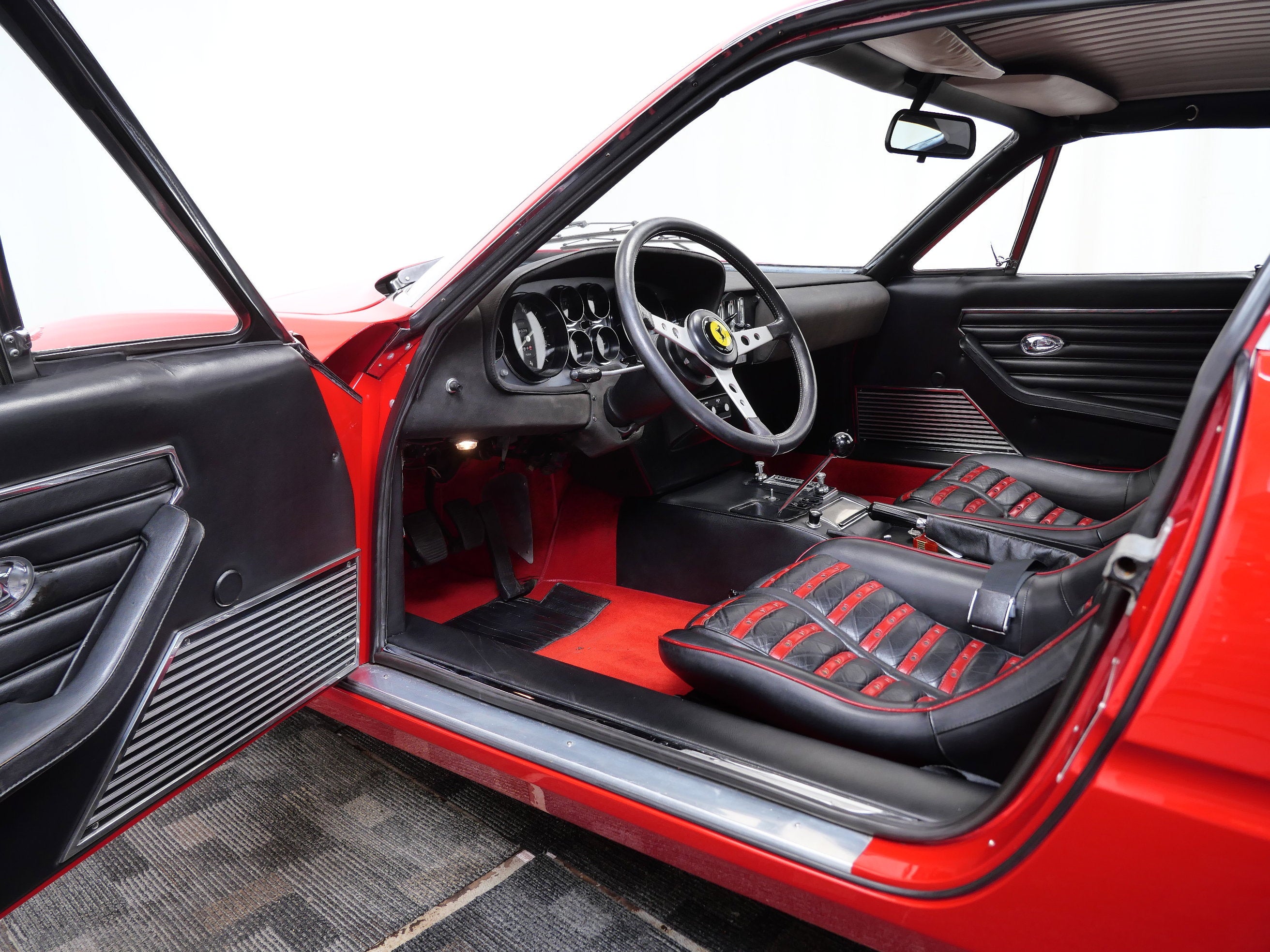 This 1971 Ferrari 365 GTB/4 Daytona was originally finished new in Rosso Chiaro over Nero VM 8500 Connolly. Options included the rare Silvergrey Painted Nose Band, Air Conditioning, and Power Windows. This vehicle was delivered new to Luigi Chinetti Motors April 15th, 1971. Vehicle was restored in the late 90’s. It comes with books, toolkit, and extra set of Cromodora wheels, and currently equipped with the Borrani wire wheels. This vehicle will be going through the Classiche certification process here at Twin Cities Performance Ferrari. We will be going through all mechanicals to meet our expectations, and all maintenances will be up to date. Our service department has incredible experience with these cars, as we are one of the few dealers in the world that offer vintage Ferrari restorations. One of our technicians used to work at the Factory in Maranello and toured on the F1 team with Michael Schumacher and Eddie Irvine.