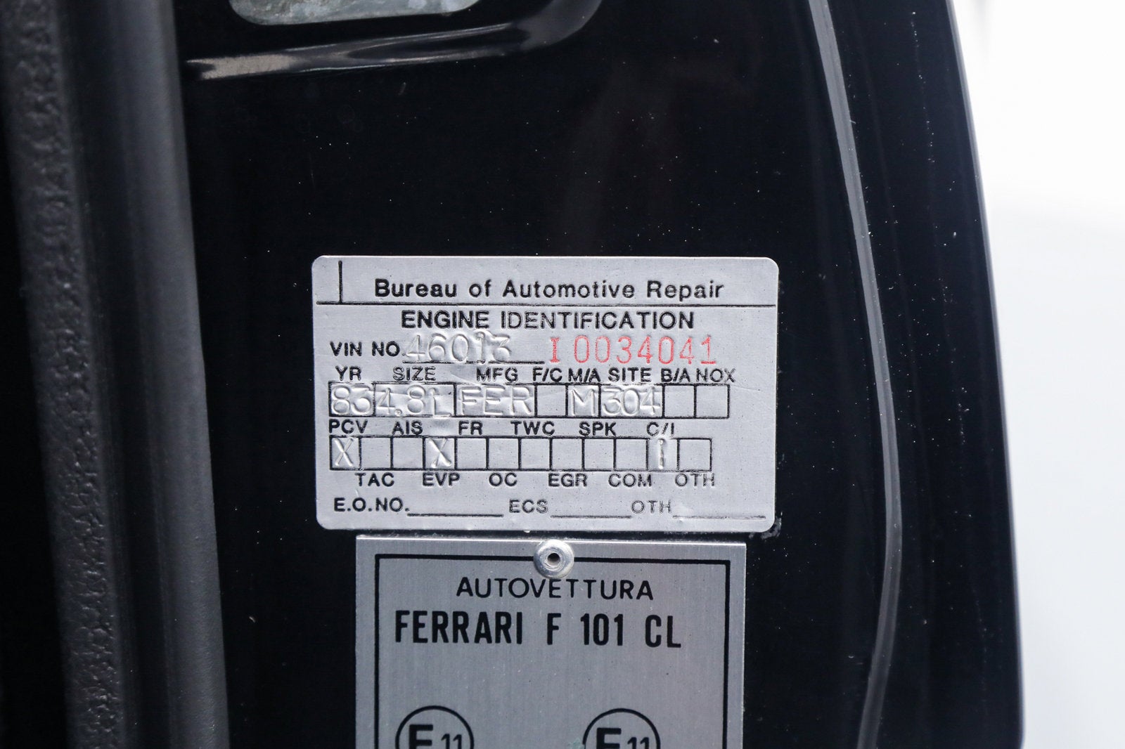 1983 Ferrari 400i 2-Door Coupe, Pininfarina Chassis No. 46013 - One of 1,305 400i's produced including 422 with the manual transmission. - Recently refinished in proper Nero over Nero leather. - Equipped with factory air conditioning, power windows and cassette stereo. - Documented major service including the fuel injection system. - Southern California car once owned by Sony Pictures President Sanford Panitch. - Accompanied by its original tools and operating manuals. When Ferrari introduced the 400GT at the Paris Salon in October 1976, a surprise was in store for the Ferraristi. It marked the very first time a new model was introduced with an automatic transmission as standard equipment. A joint press release from Ferrari and Pininfarina, explained it thusly, "the result of a different concept of the automobile which had developed and asserted itself especially in countries with a high density of automobiles, and which will find increasing favor in Europe in the future." Ironically, the new grand touring 2+2 Ferrari was not initially offered for sale in the United. States. The three-box design, so evocative of its time, is attributed to Leonardo Fioravanti at Pininfarina. To keep the Ferrari faithful satisfied, a traditional 5-speed manual was made optional. Of the 1,305 400i units built through 1985, just 422, like this example, were equipped with the manual transmission; adding to their desirability today. Compared to its predecessor, the Columbo V-12 underwent several modifications. The stroke was increased to 77mm, enlarging the total displacement to 4,823cc (about 400cc per cylinder, hence the 400 name). The camshafts and valve timing were also modified. Breathing through six Weber 38 DCOE carburetors, the horsepower remained at 350hp at 6500rpm. In mid-1979 Bosch K Jetronic fuel injection was added to improve cold starting, run quieter, and afford a cleaner exhaust. Horsepower was revised to 310hp at 6500rpm and torque to 389lb/ft at 4600rpm. Come Fall of 1982, further changes were made by Ferrari, both cosmetic and mechanical. Engines received modified camshafts and new exhaust manifolds. Power was increased to 315hp at 6400pm and torque to 303lb/ft at 4200rpm. Suspension mountings were softened at the front and the rear self-leveling system was linked to a separate fluid source and pump. Finished in a classic combination of Nero over Nero leather, this lovely example was imported new to California by Ferrari Compliance, Inc., of Santa Anna. It was enjoyed by several Southern California owners including, more recently, film executive Sanford Panitch, President of Sony Pictures Motion Pictures Group. A refinish in the factory-correct shade of Nero was completed in July 2021 as was a major service including the fuel injection system, painting of the valve covers and a professional replating of many hardware fittings to their correct factory finish. The five Cromodora wheels are fitted with Michelin TRX radials and the 400i includes factory air conditioning and a Blaupunkt AM/FM stereo cassette radio with four speakers. It is accompanied by tools, manuals, and the aforementioned service and refinishing documentation.