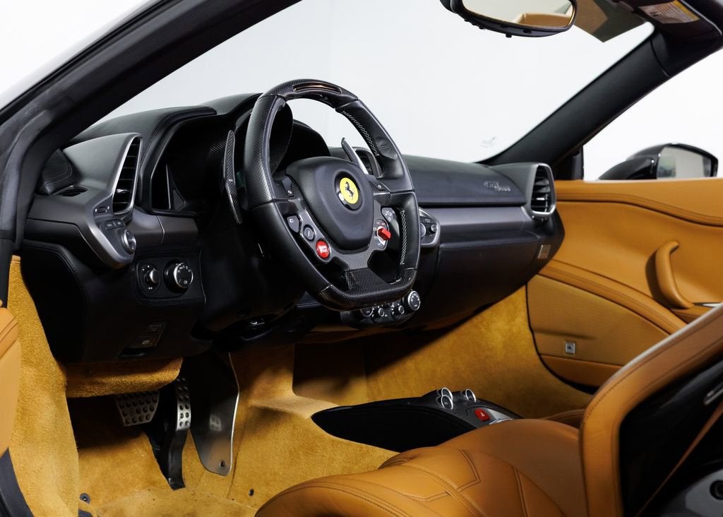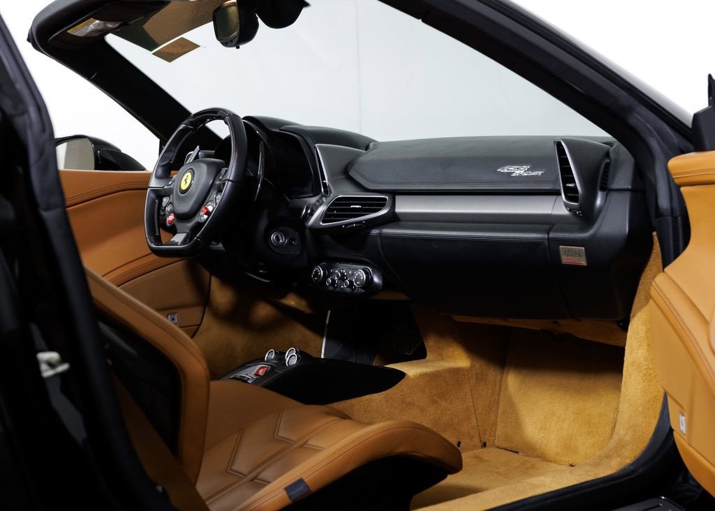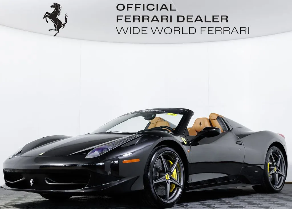 SALE PENDING! Wide World Ferrari is proud to present this exceptional 2013 Ferrari 458 Spider, a beautifully specified example of Ferraris legendary naturally aspirated mid-engine V8 convertible. Showing just 10,160 miles and accompanied by a clean Carfax, this 458 Spider represents the final era of Ferraris naturally aspirated V8 supercars. Finished in Nero Daytona, the exterior exudes understated aggression and timeless elegance. The deep metallic black paint highlights the dramatic curves and aerodynamic sculpting that define the 458s Pininfarina design, while forged wheels finished in metallic Grigio Ferro add a purposeful motorsport character. Inside, the cabin is trimmed in rich Cuoio leather, creating a warm and luxurious contrast to the Nero Daytona exterior. Nero special stitching runs throughout the interior, maintaining a clean and sophisticated aesthetic, while the Nero leather headliner further elevates the sense of craftsmanship. The interior grilles are finished in leather to match the surrounding trim, creating a cohesive and bespoke feel throughout the cockpit. A yellow tachometer dial face adds a vibrant focal point within the instrument cluster, a signature Ferrari detail that reflects the brands racing heritage, while beige coloured safety belts introduce a subtle yet elegant accent. A standout feature of this particular 458 Spider is the highly sought-after carbon fibre racing seats. Rarely seen and extremely desirable among Ferrari enthusiasts and collectors, these lightweight seats dramatically enhance the driving experience by providing exceptional support during spirited driving while showcasing Ferraris motorsport-inspired design philosophy. Further enhancing the driver-focused cockpit is the carbon fibre driver zone with integrated LED shift indicators on the steering wheel, a hallmark Ferrari feature inspired directly by Formula 1. This advanced steering wheel places critical vehicle controls and illuminated shift lights directly in front of the driver, creating an immersive and race-bred interface between driver and machine. This 458 Spider is also exceptionally well equipped with a range of desirable technology and convenience features. These include the Adaptive Frontlight System for improved nighttime visibility, front suspension lift for added practicality over uneven roads, and front and rear parking sensors for easier maneuvering. Comfort and connectivity are provided through the audio-navigator system with Bluetooth, Premium Hi-Fi sound system, and ready kit for use of iPod. Additionally, the car is Ferrari Approved and eligible for up to a 2-year Ferrari Certification warranty (available at an additional charge). As the only 4-Time Cavallino Winning Ferrari Center in the tri-state area and one of the first Ferrari Centers in North America, we pride ourselves on exceptional service. We assist with all aspects of your purchase, including trade-ins, shipping, registration, non-reported financing, and customizations. Conveniently located in Rockland County, just under 30 miles from Manhattan. For more information, email us at ferrarivip@newcountry.com or call 845-682-0129.