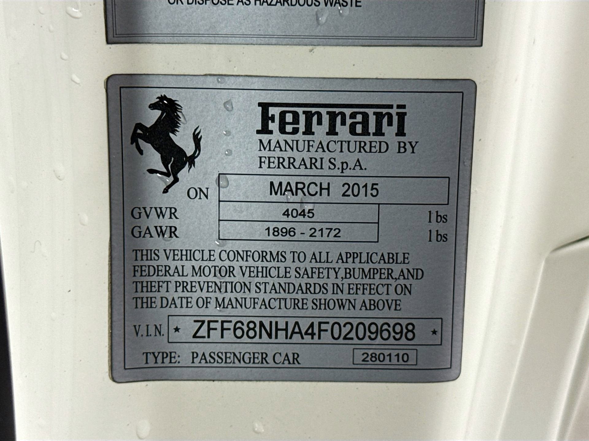 ***NEW ARRIVAL!!!! PICTURES COMING SOON!!!*** ***WOW!!! FERRARI APPROVED!!!! LOADED, LOW MILE, WELL KEPT, LOCAL, 458 SPIDER IN RARE BIANCO AVUS OVR CARTA DA ZUCCHERO INTERIOR!!!*** ***OPTIONS INCLUDE** -ALUTEX DRIVER ZONE WITH LEDS- -ALUTEX DASHBOARD INSERTS- -ALUTEX CENTER BRIDGE- -ALUTEX DOOR PANELS- -ALUTEX SILL KICK- -SCUDERIA SHIELDS- -ELECTRIC SEATS- -SPORT EXHAUST PIPES- -FRONT AND REAR PARKING SENSORS- -REAR PARKING CAMERA- -RADIO NAV WITH BLUETOOTH- -BLUE BRAKE CALIPERS- -COLORED LEATHER/ALCANTARA DUAL INTERIOR- -COLORED LEATHER CENTRAL TUNNEL- -COLORED LEATHER SEAT PIPING- -COLORED LEATHER HEADLINER- -COLORED LEATHER STEERING WHEEL- -COLORED LEATHER UPPER ZONE- -COLORED LEATHER UPPER AND LOWER DASHBOARD- -COLORED LEATHER FRONT DASH TRIM- -COLORED SAFETY BELTS- -COLORED SPECIAL STITCHING- -COLORED INTERIOR GRILLS- -WHITE TACH- -HORSE STITCHED ON HEADREST- -AND MORE!!! PLEASE CALL OR EMAIL TODAY FOR MORE INFO!!!!***