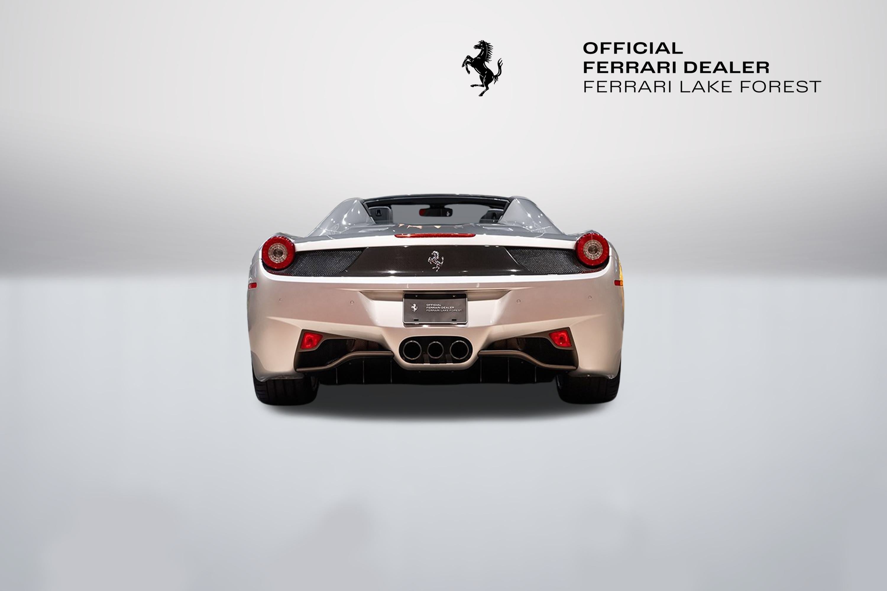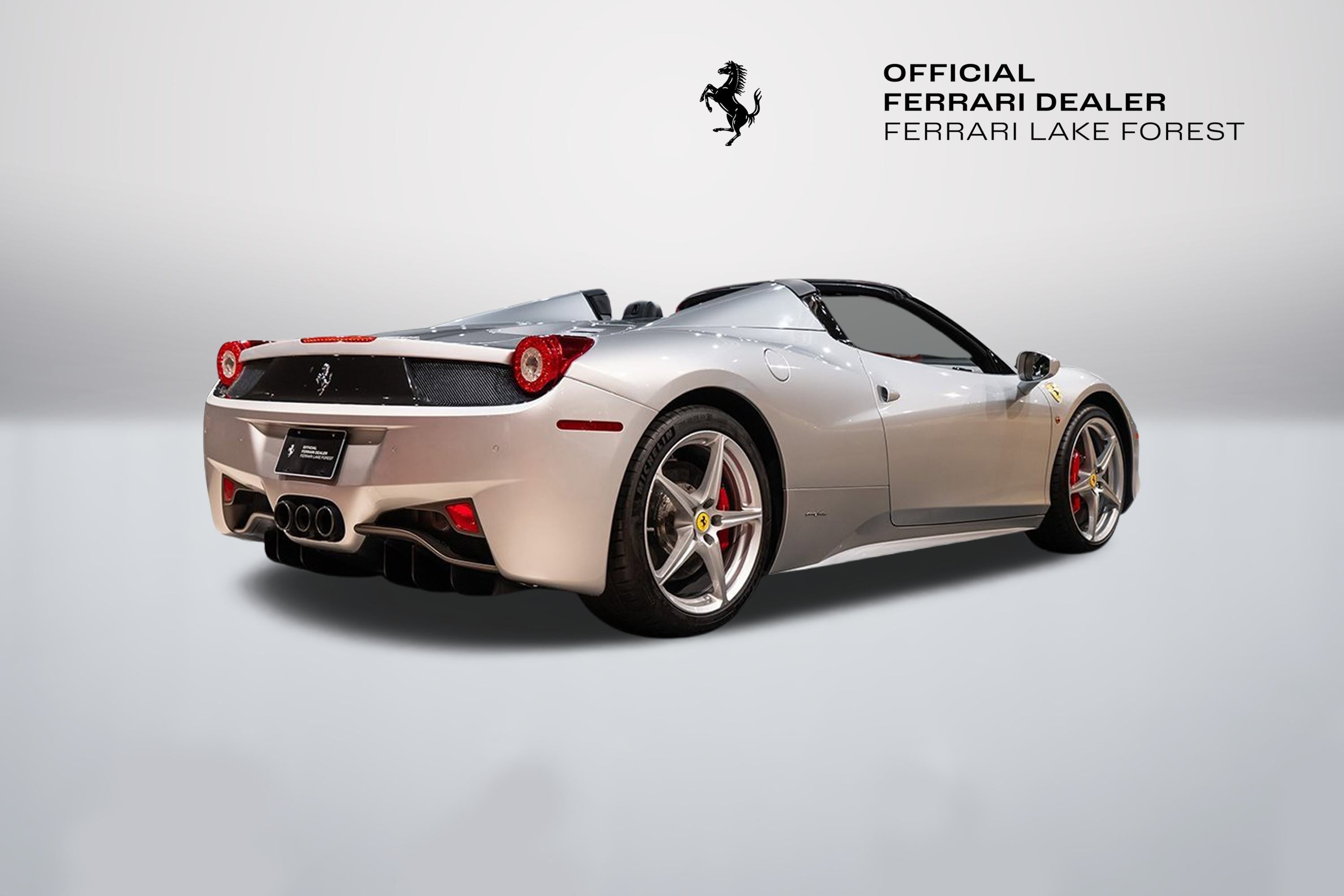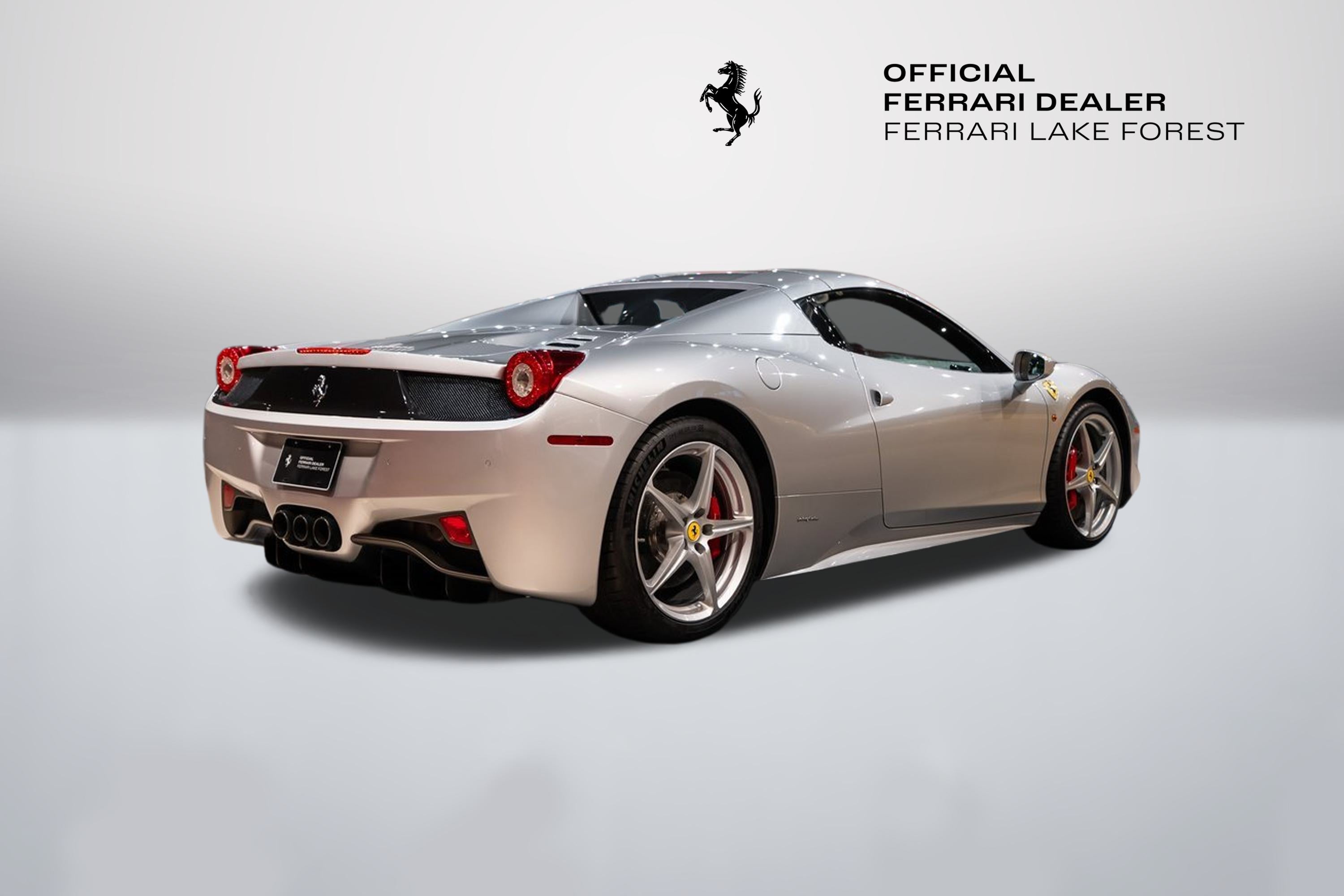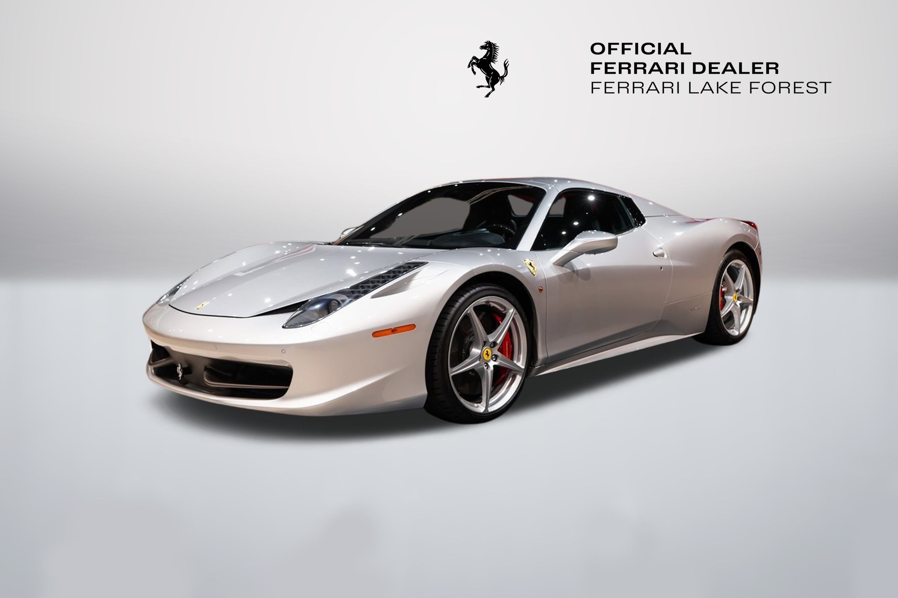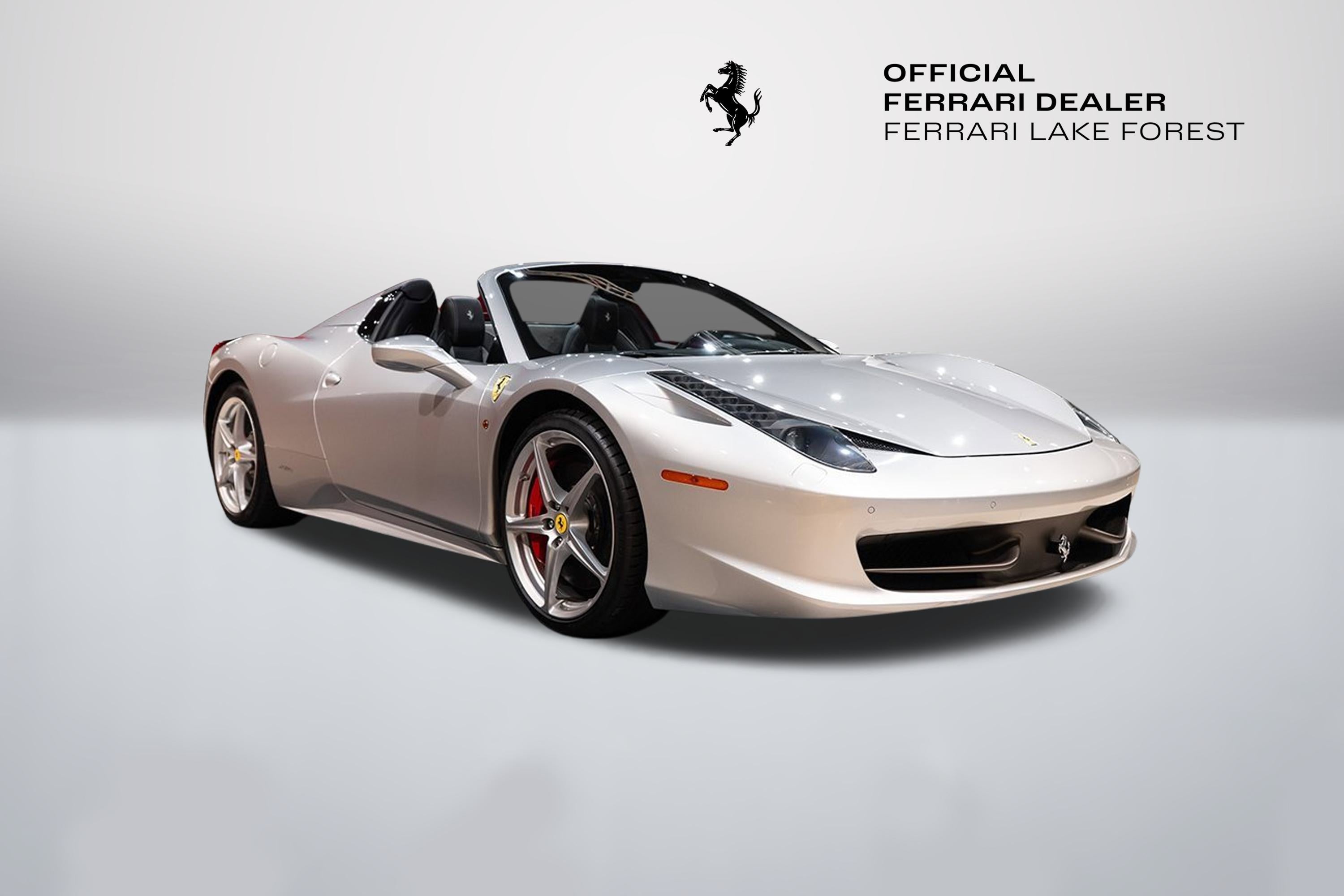 Ferrari of Lake Forest is Proud to Present this Certified Pre Owned 2014 Ferrari 458 Spider Finished in Stunning Argento Nurburgring Silver over Nero Leather Interior. This Ferrari 458 Spider is Optionally Equipped with: Rosso Corsa Brake Calipers Sport Tailpipes Carbon Fiber Rear Finish Panel Scuderia Ferrari Shields 20 Inch Forged Rims Front and Rear Parking Sensors Carbon Fiber Steering Wheel with LEDs Carbon Fiber Center Console Dual Leather and Alcantara Interior in Alcantara Grigio Scuro Electric Seats Carbon Fiber Dashboard Inserts Cavallino Stitched on Headrests in Grigio Scuro Bianco Rev Counter Colored Special Stitching in Speciale Grigio Scuro Electrochromic Rear View Mirror with Homelink The Ferrari 458 Spider is an open-air celebration of everything Maranello does best. Its sculpted body flows into a cabin that disappears beneath a beautifully engineered folding roof, letting the soundtrack do the talking. And what a soundtrack it is. This is the final naturally aspirated V8 Ferrari ever built, a 9,000-rpm masterpiece that answers every throttle input with razor-sharp urgency and a spine-tingling howl. Light on its feet, precise in its responses and gloriously alive at any speed, the 458 Spider feels less like a convertible and more like a purebred drivers car that just happens to let the sky in. The Ferrari Certified Pre Owned Coverage is Included in our asking price. For more information on this Certified Ferrari 458 Spider call one of our Ferrari Specialists today at 847.295.6560