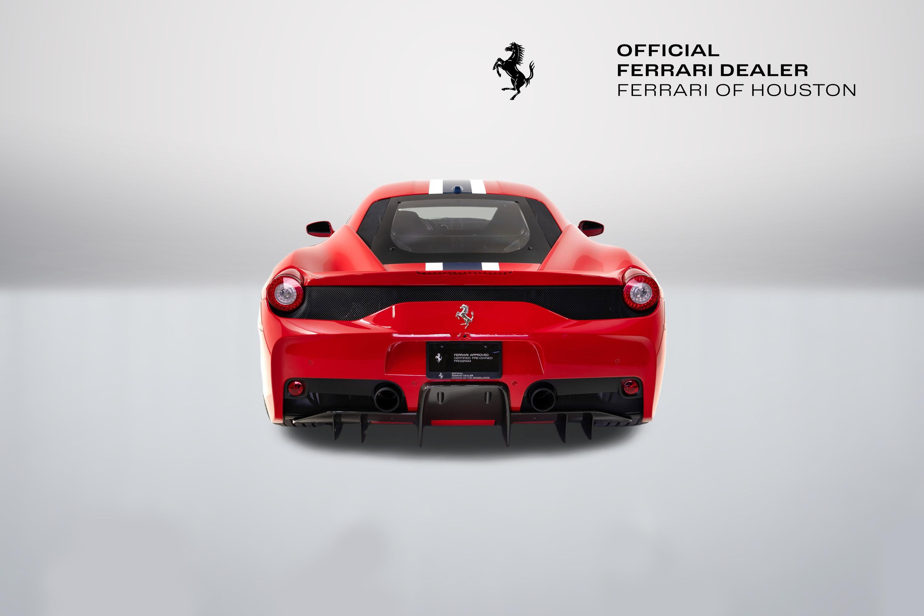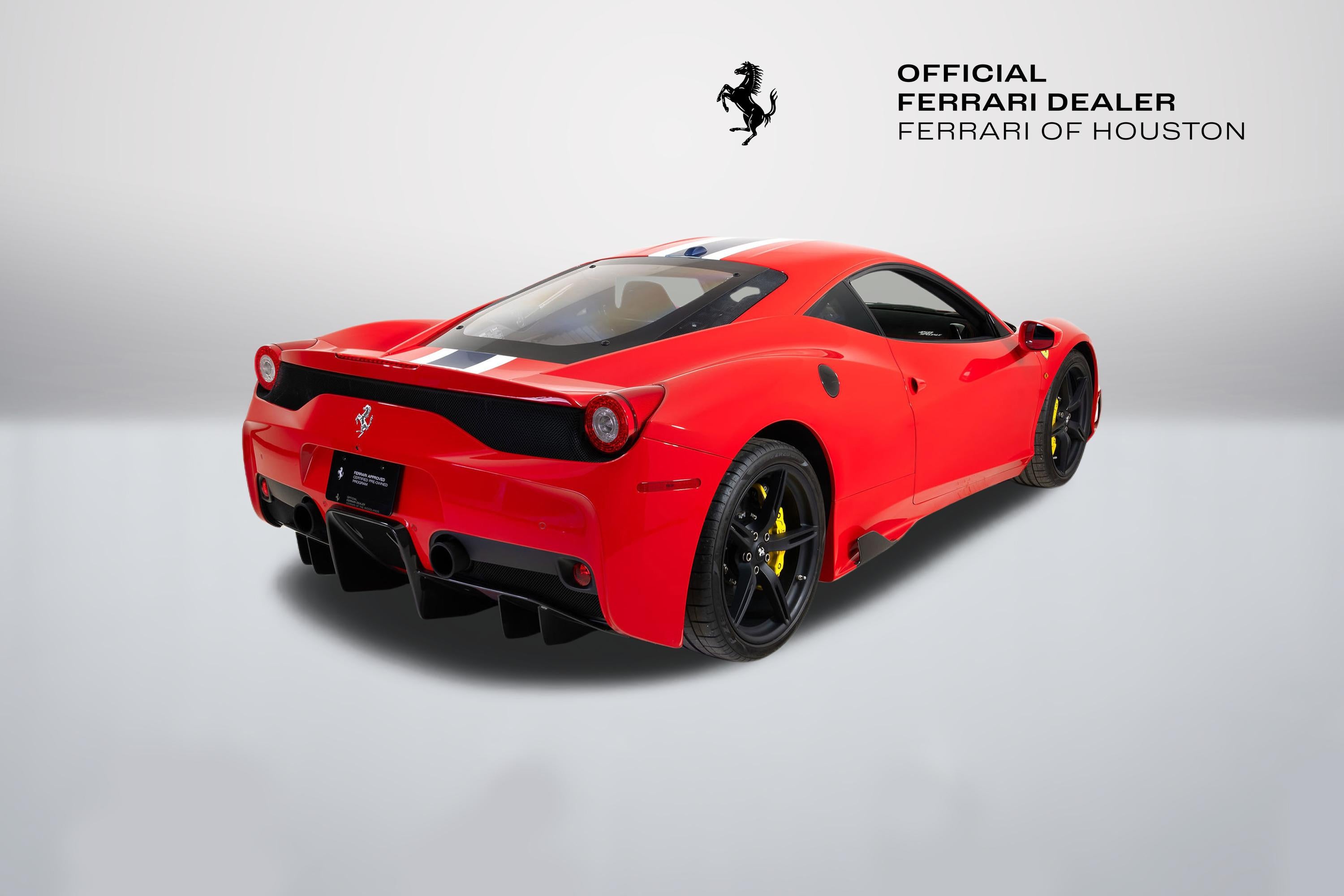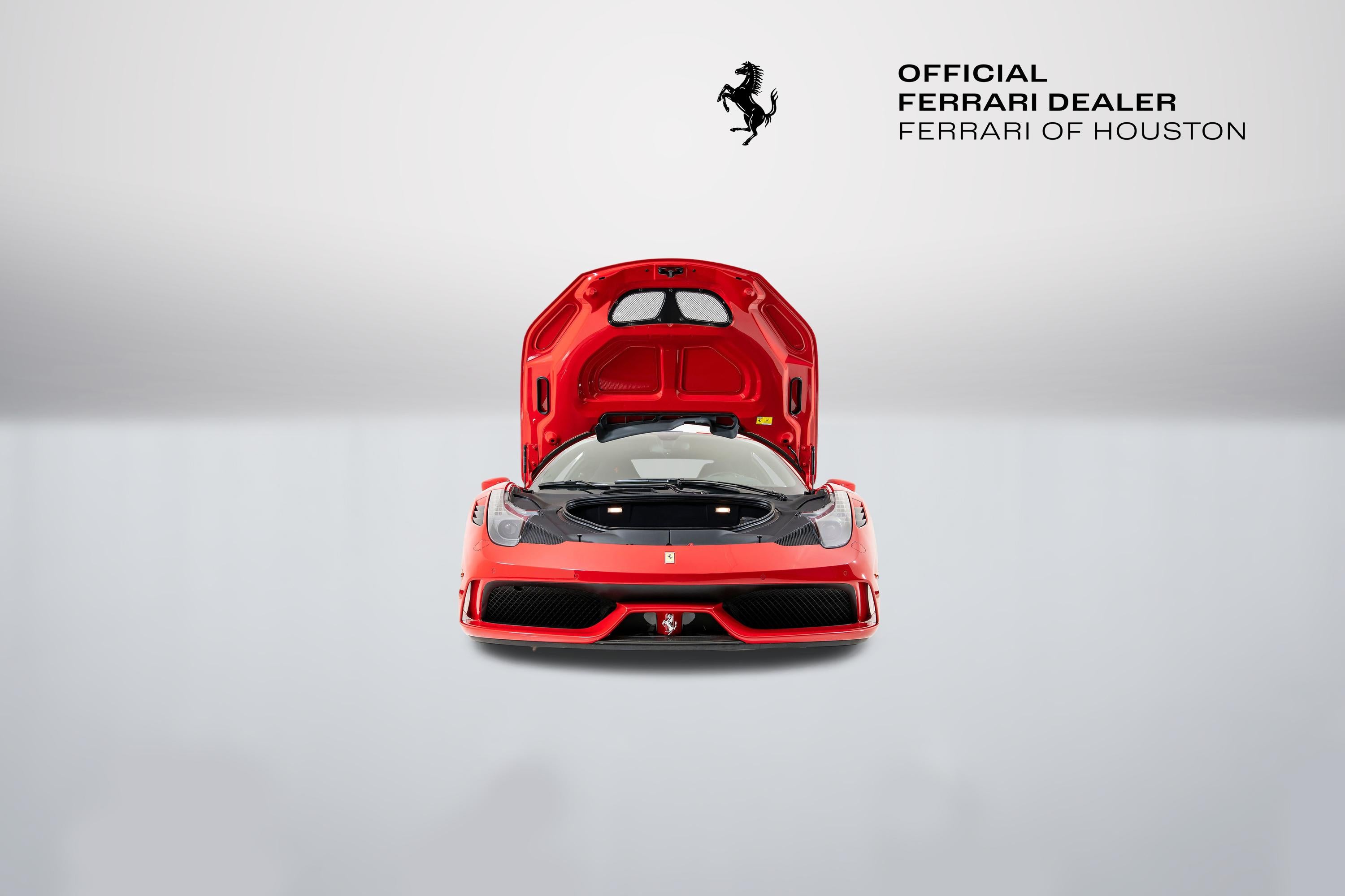 The 458 Speciale has inspired an intense following unlike any other modern Ferrari production model. The Maranello recipe of increased power output, weight savings, advanced aerodynamics, and suspension and electronic advancements have taken what many consider to be one of the finest Ferraris ever built, the 458 Italia, to a completely different level of performance and driving excitement. Many automotive journalists and enthusiasts proclaim the Ferrari 458 Speciale as the best sports car theyve ever driven! We are excited to offer you an exceptional example of this wonderful Ferrari, finished in classic Rosso Corsa paint over Nero Alcantara. It has been meticulously maintained and comes out of the collection of a longtime Ferrari of Houston client and passionate enthusiast. It has covered just 2,978 miles and has been inspected to the highest standards of the Ferrari Approved Program and includes Ferrari warranty coverage until 11/12/2028 at no extra cost. It is complete with all keys, books, tools, cover and battery charger. You can see the full list of factory options shown below. This Ferrari qualifies for a number of special programs offered by Ferrari Financial Services, including extended financing terms of up to 84 months, and a popular 60 month balloon program that offers tremendous flexibility. Let us know if we can structure a custom quote to best meet your financial objectives. Dont miss this opportunity to acquire this stunning piece of Ferrari history and best example of what makes Ferrari a very special sports car! AFS1AFS SYSTEM ALWAALCANTARA WHEEL ARCHES CALYYELLOW BRAKE CALIPERS CEFSCARBON FIBRE FRONT FLAPS CEL2ENGINE COVERS IN CARBON FIBRE CEXDREAR DIFFUSER IN CARBON FIBRE CEXGFRONT AIRVENTS IN CARBON FIBRE CEXNCARBON FIBRE SIDE NOLDERS CGASFUEL CAP IN CARBON FIBER CRPTCarpets colorsEXTRACAMPIONARIO-NOT STANDARD CSB1COLOURED SAFETY BELTSCINTURE ROT (ROSSE) CUPCCARBON FIBRE WHEELS CUP DEPKFERRARI TELEMETRY ELEVSUSPENSION LIFTER EMPHHORSE STITCHED ON HEADRESTROSSO (RED) 0504 EXATTITANIUM EXHAUST PIPES EXTCExternal colorsROSSO CORSA DS 322 INTCInternal colorsALCANTARA NERA 9440 LOGO'SCUDERIA FERRARI' SHIELDS NAVCRADIONAVI SYSTEM + BLUETOOTH PAC1PARKING CAMERA PAR2FRONT AND REAR PARKING SENSORS PNT4NART RACING STRIPEBLU NART 523 RIFS20" FORGED DARK PAINTED RIMS RPMYYELLOW REV.