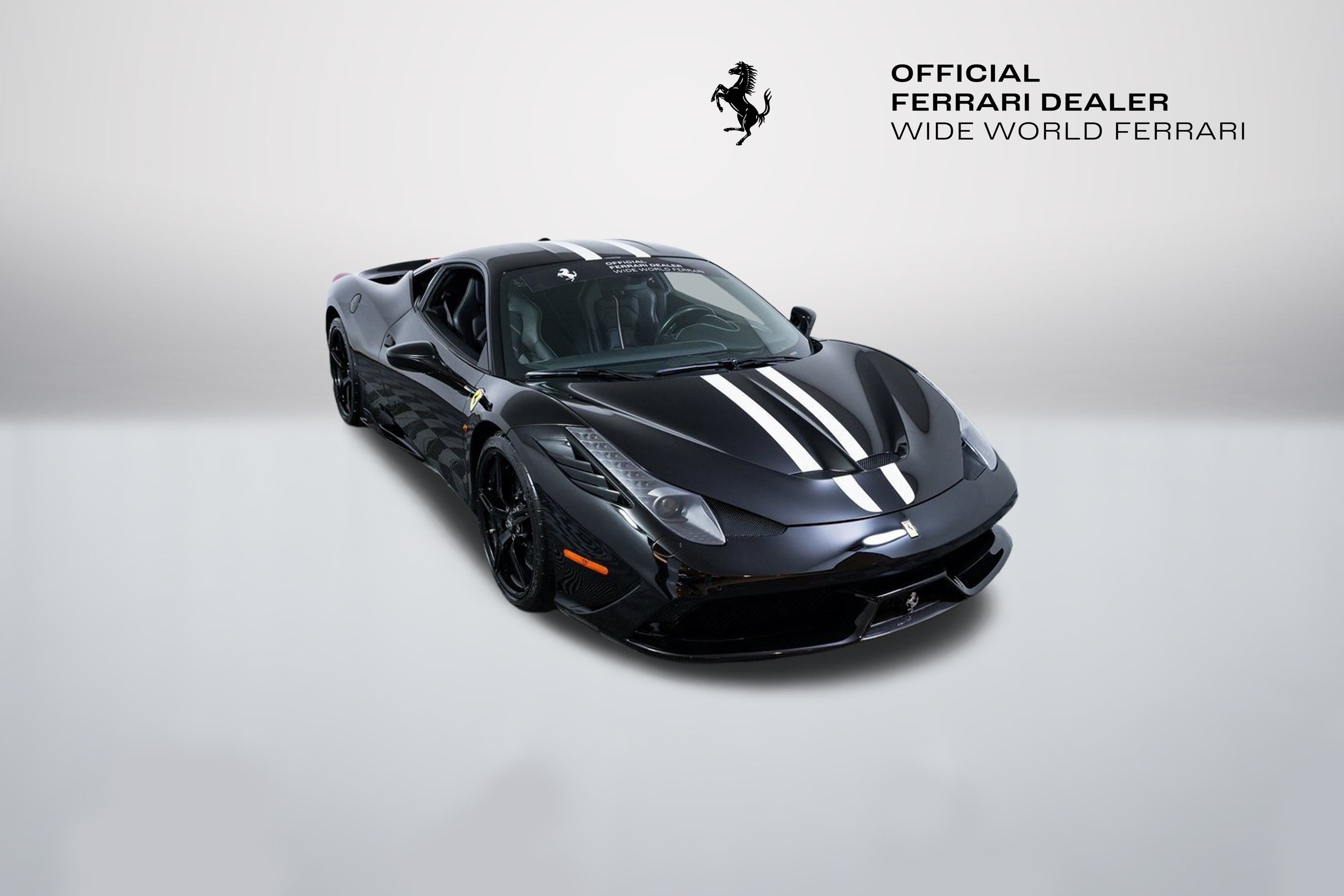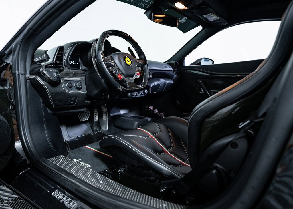 Wide World Ferrari is proud to present this exceptionally rare and highly collectible 2015 Ferrari 458 Speciale, a pinnacle of naturally aspirated engineering and one of the most sought-after modern Ferraris of its era. With only 6,403 miles, a clean Carfax, and an extraordinary specification, this Speciale offers a compelling opportunity for the enthusiast or collector who appreciates the significance of Ferraris last high-revving, non-turbocharged V8 masterpiece in its most extreme form. Finished in Nero, this Speciale commands presence with a stealthy yet purposeful character, elevated further by an iconic livery stripe, an unmistakable nod to Ferraris storied North American Racing Team and a rare, highly prized option. The exterior is enriched by an extensive suite of carbon fiber that underscores the cars track-bred identity, including the carbon fiber front spoiler, aero flaps, engine compartment shields, and rear diffuser, as well as carbon fiber wheel center caps. Gloss black brake calipers, Scuderia Ferrari shields on the fenders, and titanium tailpipe tips complete the look, emphasizing both performance and exclusivity. The interior is crafted around a focused yet luxurious driving environment. Nero leather upholstery is complemented by Bianco special stitching, Bianco Cavallino embroidery on the headrests, and a leather-finished lower zone and wheelhouse trim, resulting in a cabin that feels both bespoke and purpose-built. The striking white tachometer dial sets a motorsport tone, while the carbon fiber Goldrake racing seats provide exceptional support and visual drama. The seats are equipped with the driver adjustment system, ensuring comfort and precision during spirited driving. The center seat area and headliner in Nero further unify the interiors aesthetic, creating a cohesive and refined atmosphere. Additionally, the car is Ferrari Approved and eligible for up to a 2-year Ferrari Certification warranty (available at an additional charge). This car benefits from an active warranty until May 2028. As the only 4-Time Cavallino Winning Ferrari Center in the tri-state area and one of the first Ferrari Centers in North America, we pride ourselves on exceptional service. We assist with all aspects of your purchase, including trade-ins, shipping, registration, non-reported financing, and customizations. Conveniently located in Rockland County, just under 30 miles from Manhattan. For more information, email us at ferrarivip@newcountry.com or call 845-682-0129.