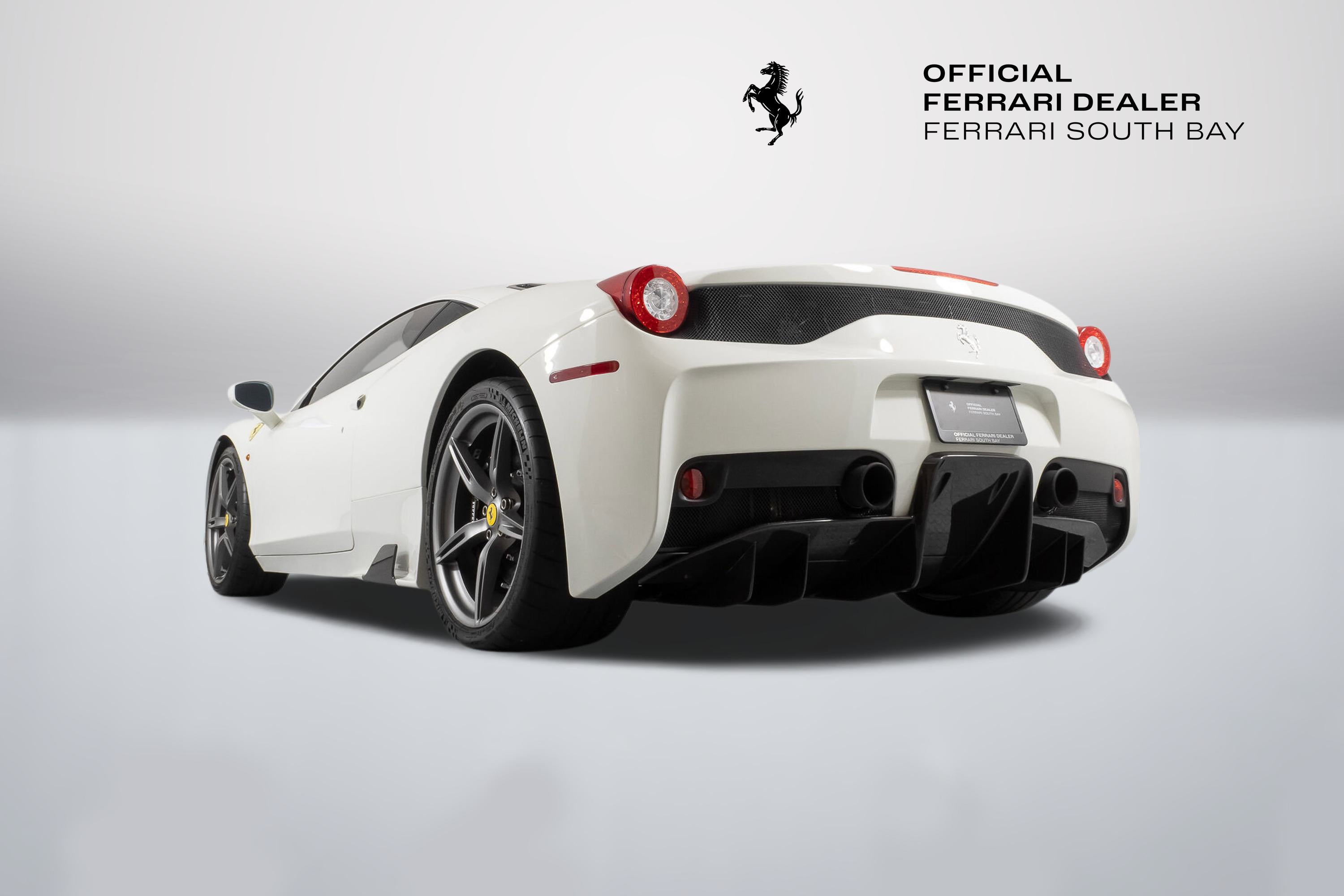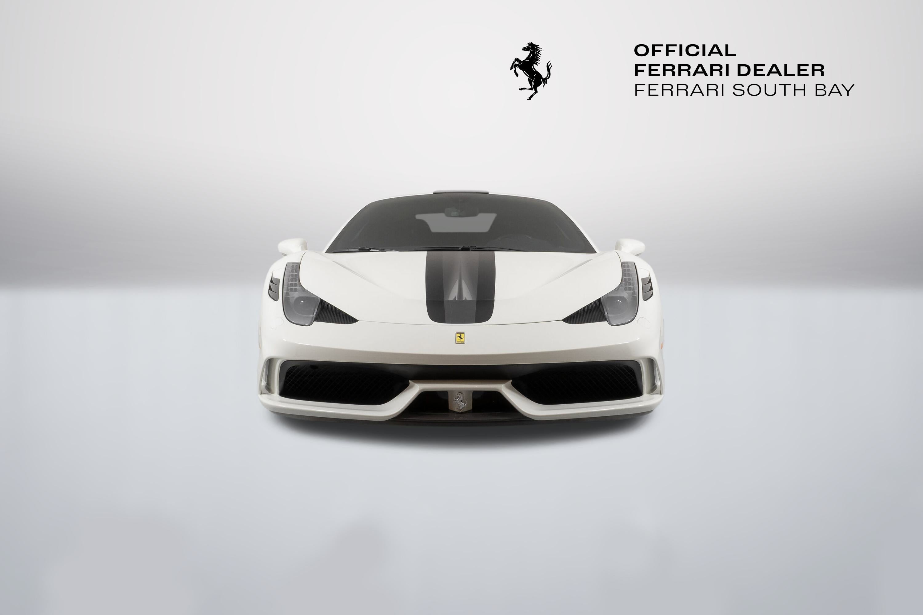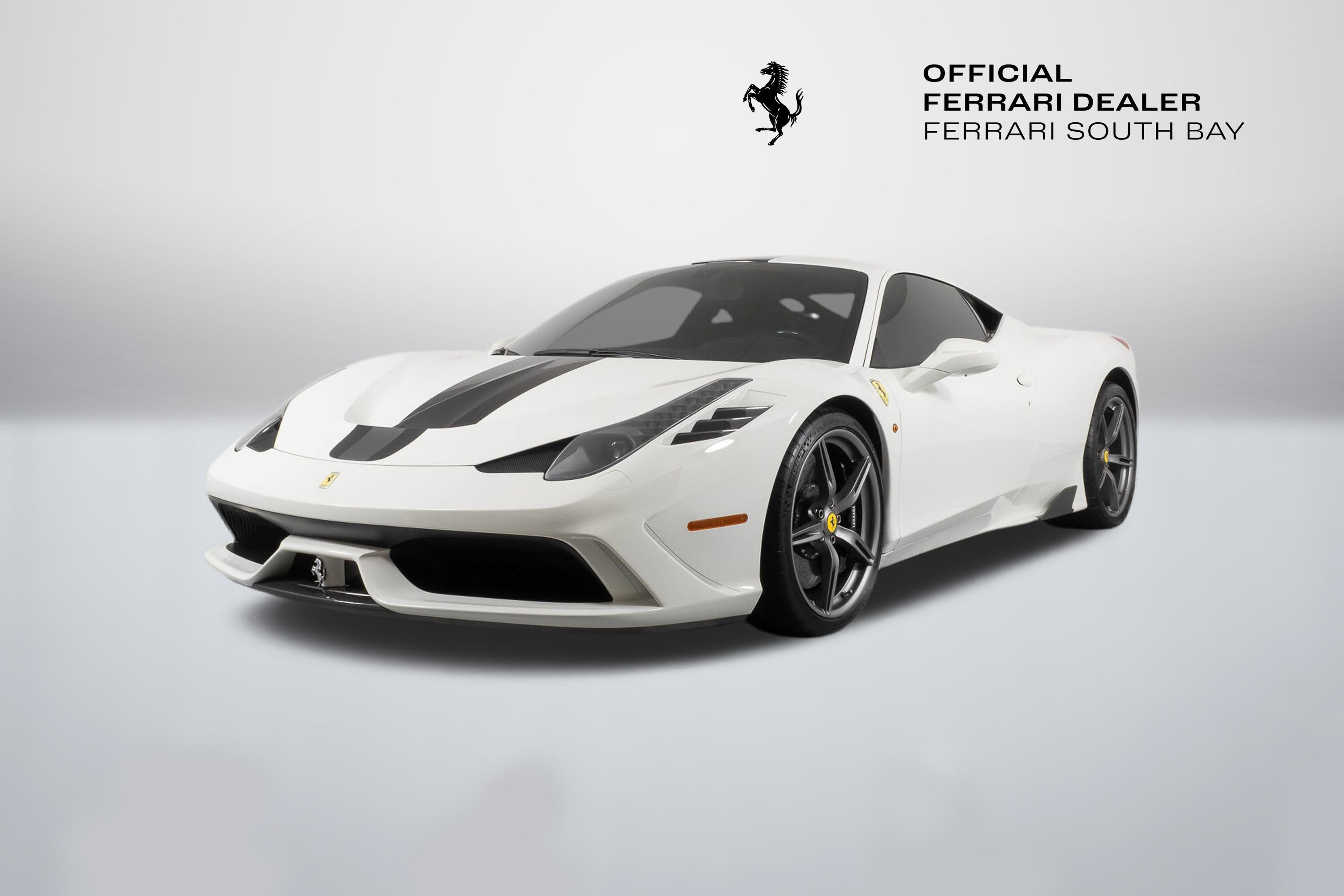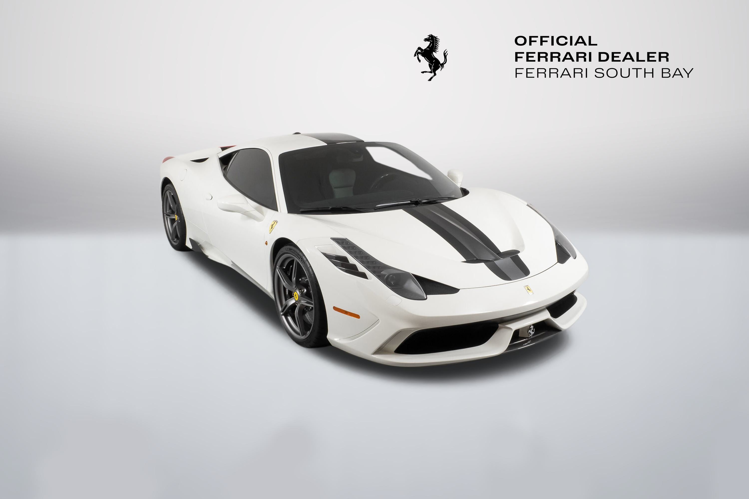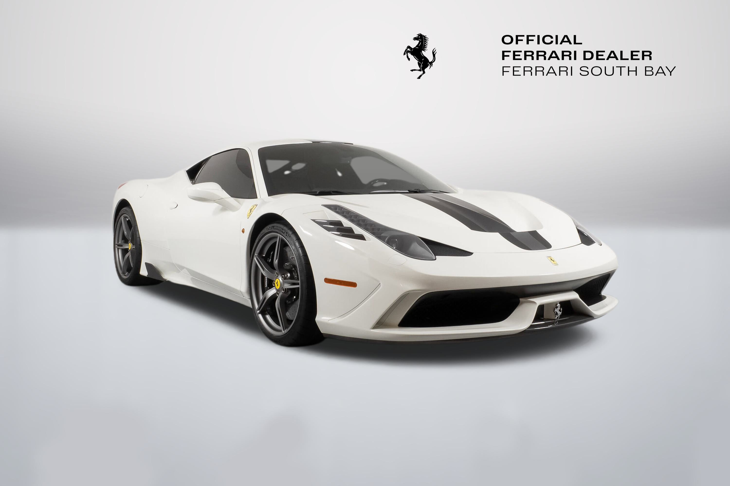- Evo's conclusion? ..intensity, agility and a blistering pace are a given at this level, but the Speciale is something else ...whatever your skill level, there’s never been a car that lets you fly so close to the sun. It is indeed ready to tackle anything the most skilled driver could throw at it, and return thrills unlike any other car on the road. The exterior of this Speciale is finished in Bianco Avus, with a NART Livery Stripe in Nero Daytona and Grigio Silverstone. Scuderia Ferrari Shields have pride of place on the front fenders, while Titanium Exhaust tips allow that glorious V8 to scream to its 9,000 rpm redline. The previous owner added Genuine Ferrari Carbon Fiber Front Spoiler, Front Air Ducts, Rear Diffuser, Rear Deck Side Vents, Engine Bay Finishing Panels and Engine Bay Bulkhead. Glossy Black Brake Calipers clamp down on enormous Carbon Ceramic Discs, ensuring stopping ability commensurate with its acceleration capability. The entire car has been covered in Paint Protective Film since new, so not only is the paint in fantastic condition, it will remain so for years to come. The interior can best be described as race car spartan, with Black Alcantara and Silver Technical Fabric covering the Carbon Fiber Racing Seats (which are fit with the Racing Seat Lifter). Silver Cavallinos are embroidered on the seat headrests and the tachometer face has been finished in white. The interior has had its sticky buttons refinished, returning the tactile feel to the switchgear the car had when it left the factory. This 458 Speciale is offered complete with two keys, books, tools, car cover and battery tender. It has passed Ferrari's rigorous 101-point Certification Inspection, and a 2-year Power15 Ferrari Warranty is in place through July 20, 2027. If you'd like to know more about this amazing 458 Speciale, please reach out to our knowledgeable sales staff! Ferrari South Bay is proudly part of Holand Automotive Group, one of North America’s leading luxury automotive retailers. We offer nationwide shipping, trade-in opportunities, financing, client consignments, and world-class delivery service. Contact us today to explore ownership of this remarkable. Please visit us at 23305 Hawthorne Blvd, Torrance, CA 90505, or call us at (888) 578-8767.