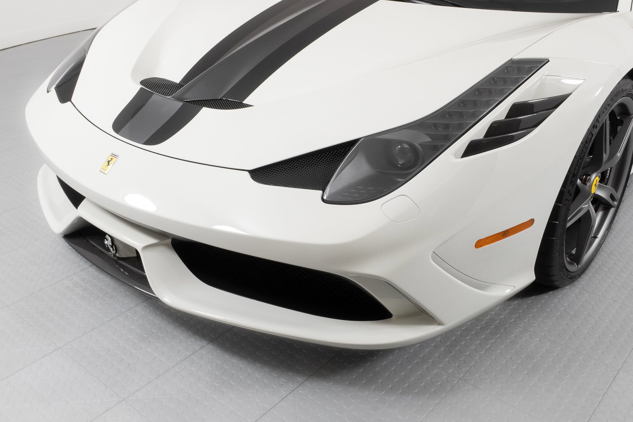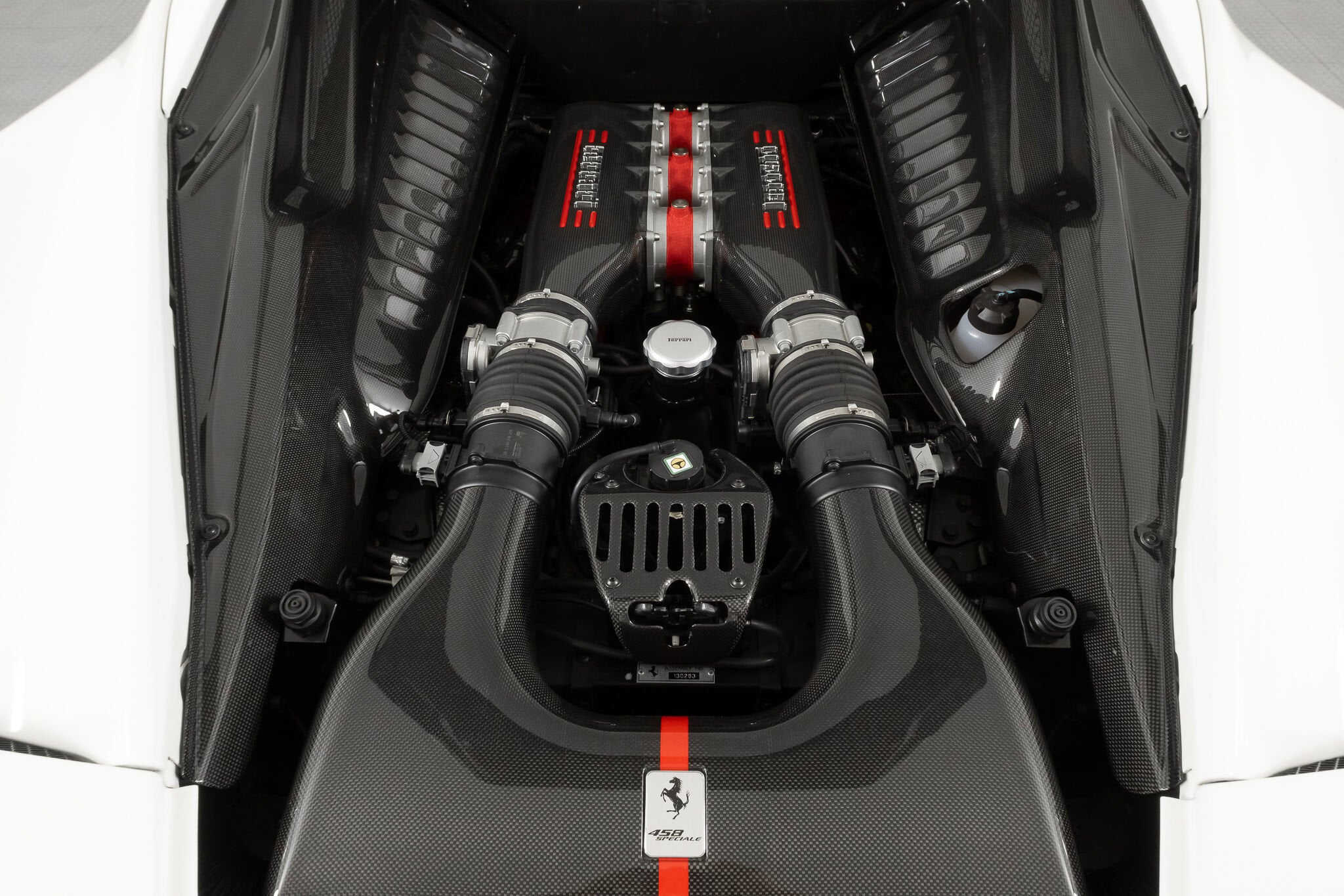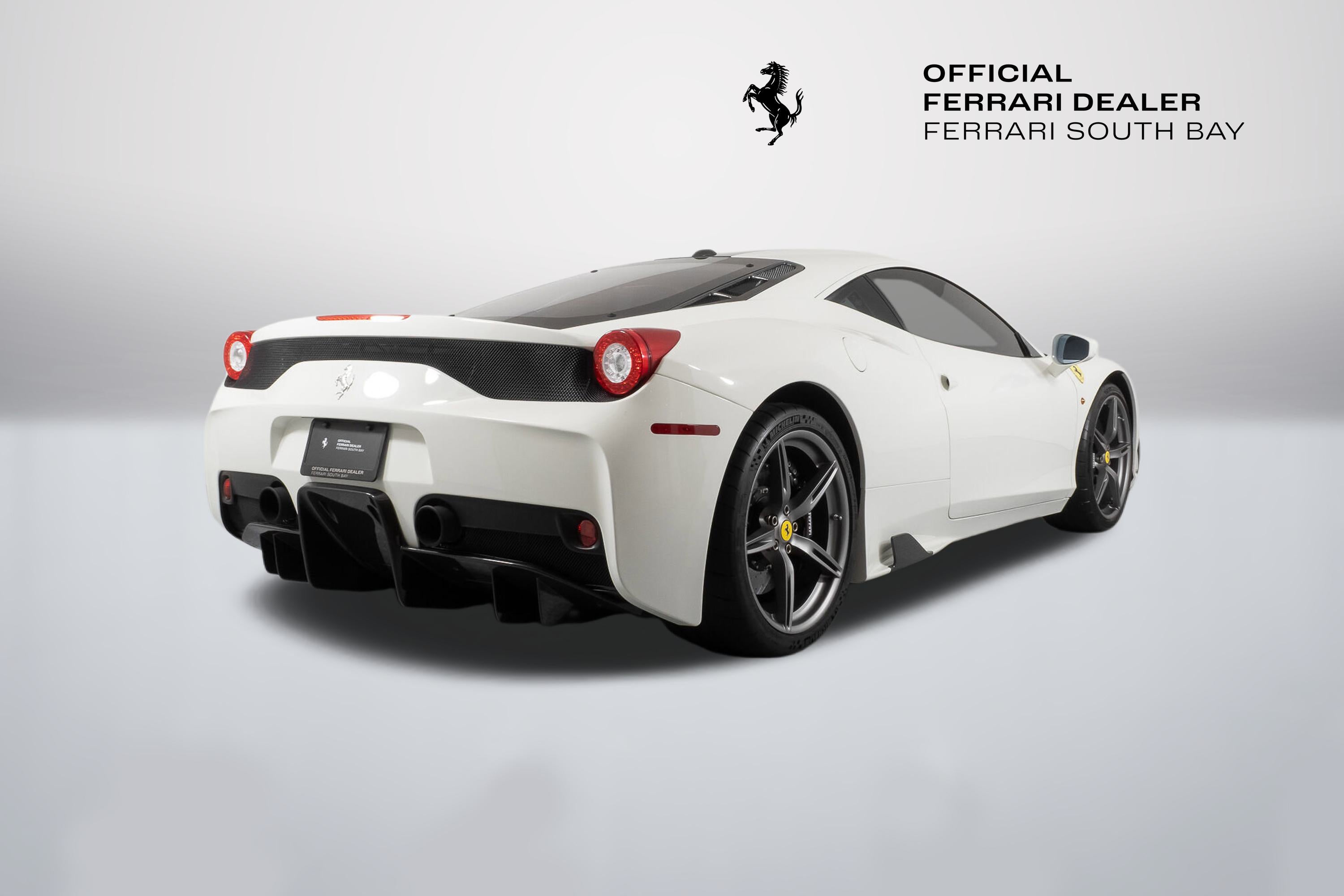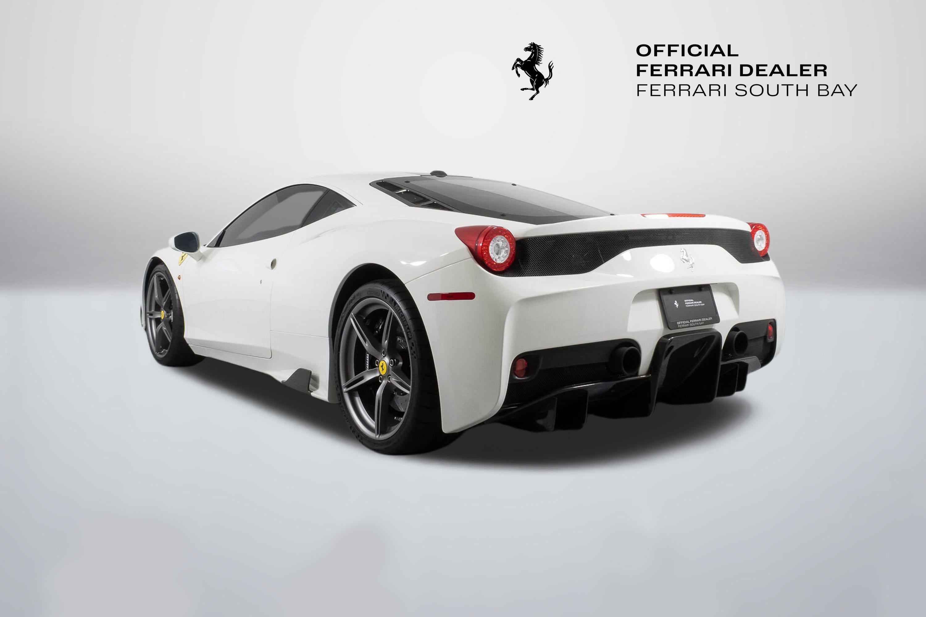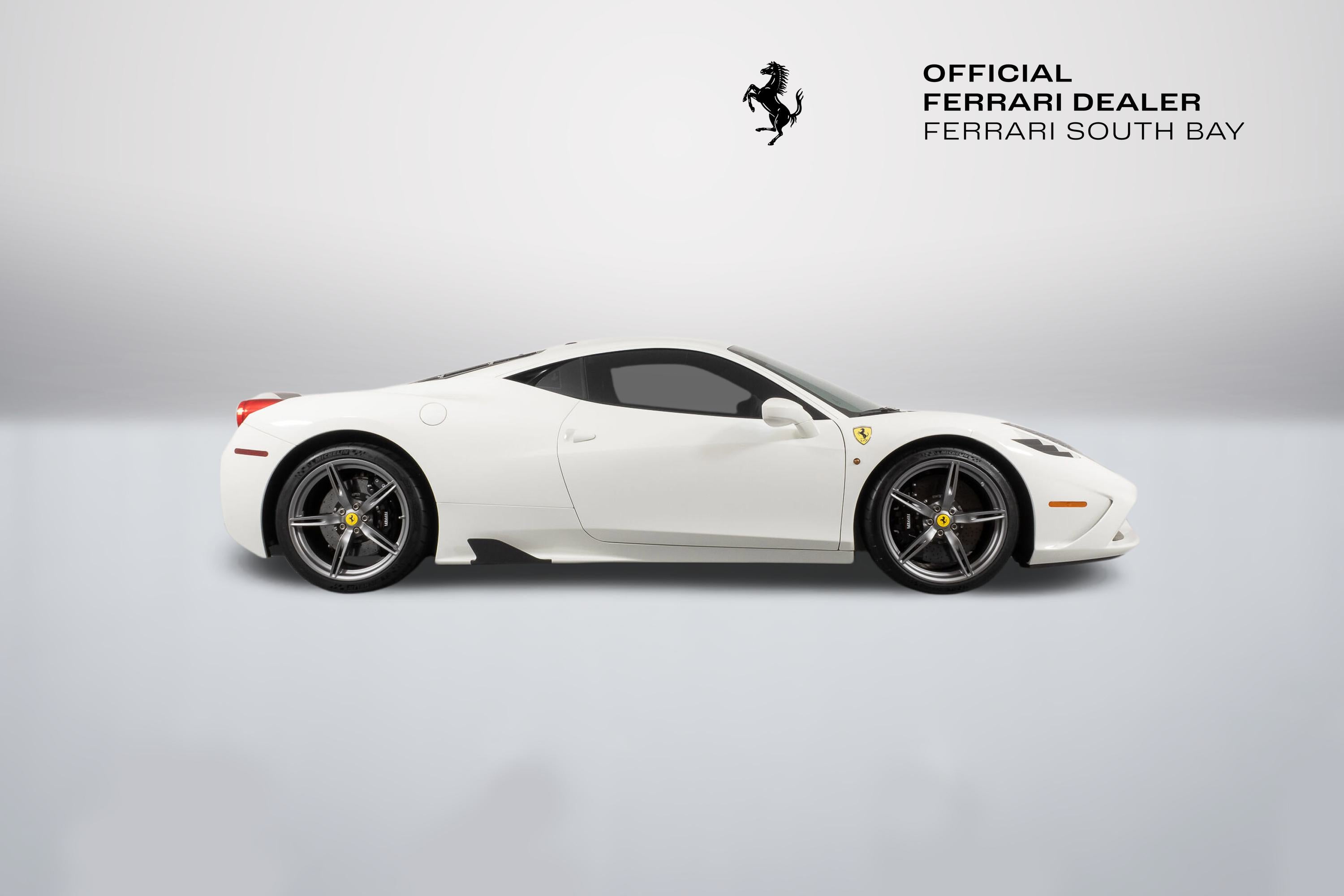 - Evo's conclusion? ..intensity, agility and a blistering pace are a given at this level, but the Speciale is something else ...whatever your skill level, there’s never been a car that lets you fly so close to the sun. It is indeed ready to tackle anything the most skilled driver could throw at it, and return thrills unlike any other car on the road. The exterior of this Speciale is finished in Bianco Avus, with a NART Livery Stripe in Nero Daytona and Grigio Silverstone. Scuderia Ferrari Shields have pride of place on the front fenders, while Titanium Exhaust tips allow that glorious V8 to scream to its 9,000 rpm redline. The previous owner added Genuine Ferrari Carbon Fiber Front Spoiler, Front Air Ducts, Rear Diffuser, Rear Deck Side Vents, Engine Bay Finishing Panels and Engine Bay Bulkhead. Glossy Black Brake Calipers clamp down on enormous Carbon Ceramic Discs, ensuring stopping ability commensurate with its acceleration capability. The entire car has been covered in Paint Protective Film since new, so not only is the paint in fantastic condition, it will remain so for years to come. The interior can best be described as race car spartan, with Black Alcantara and Silver Technical Fabric covering the Carbon Fiber Racing Seats (which are fit with the Racing Seat Lifter). Silver Cavallinos are embroidered on the seat headrests and the tachometer face has been finished in white. The interior has had its sticky buttons refinished, returning the tactile feel to the switchgear the car had when it left the factory. This 458 Speciale is offered complete with two keys, books, tools, car cover and battery tender. It has passed Ferrari's rigorous 101-point Certification Inspection, and a 2-year Power15 Ferrari Warranty is in place through July 20, 2027. If you'd like to know more about this amazing 458 Speciale, please reach out to our knowledgeable sales staff! Ferrari South Bay is proudly part of Holand Automotive Group, one of North America’s leading luxury automotive retailers. We offer nationwide shipping, trade-in opportunities, financing, client consignments, and world-class delivery service. Contact us today to explore ownership of this remarkable. Please visit us at 23305 Hawthorne Blvd, Torrance, CA 90505, or call us at (888) 578-8767.