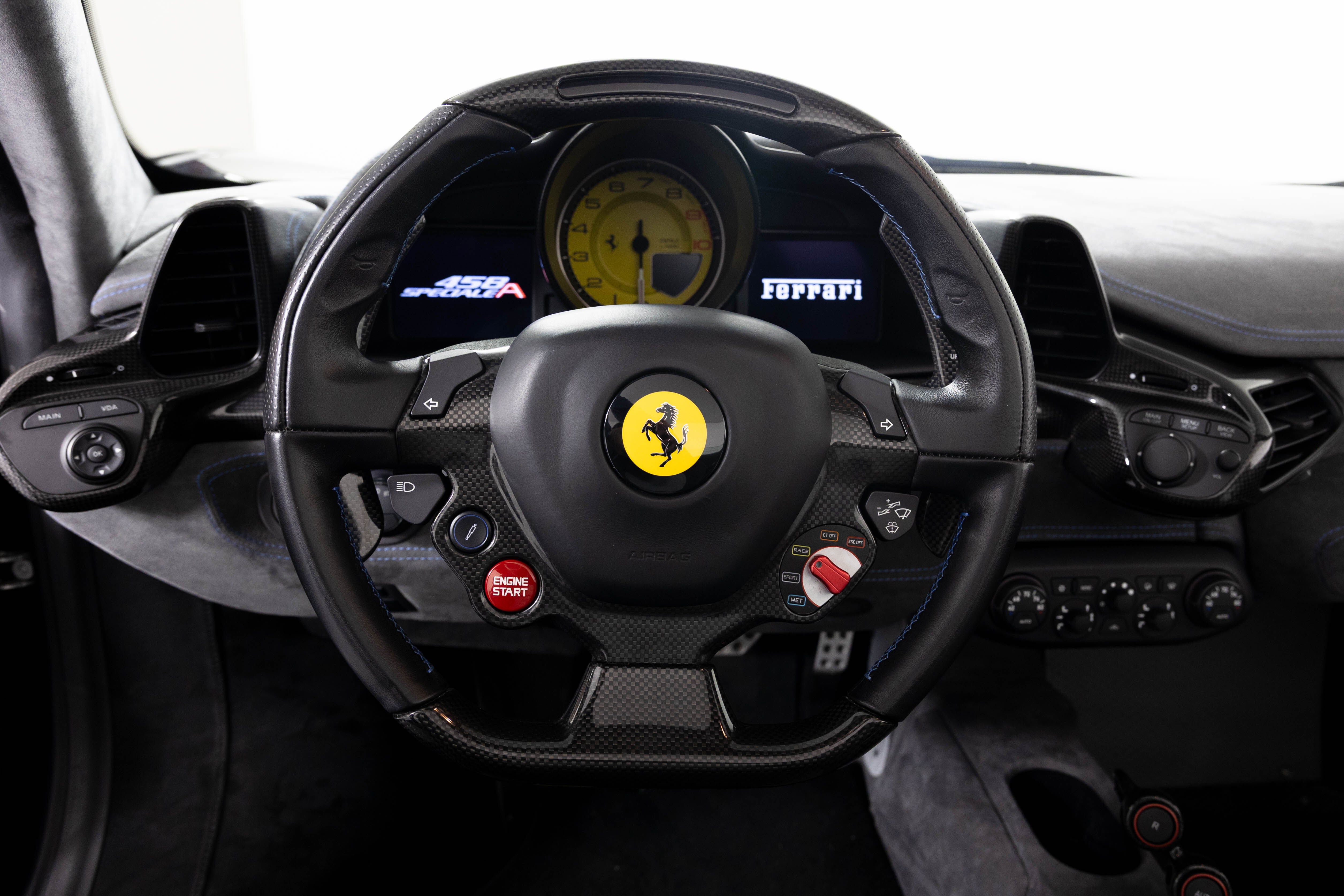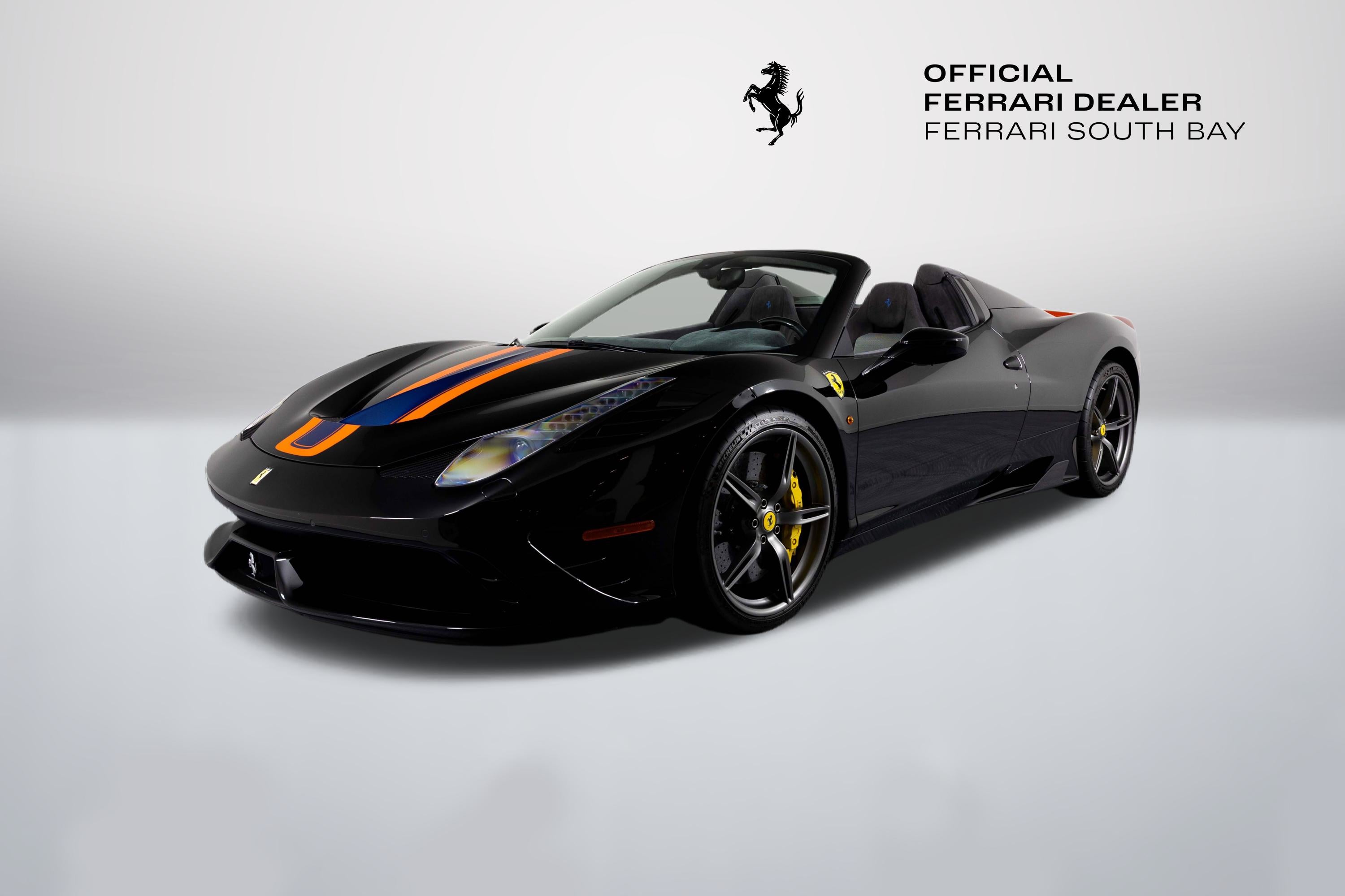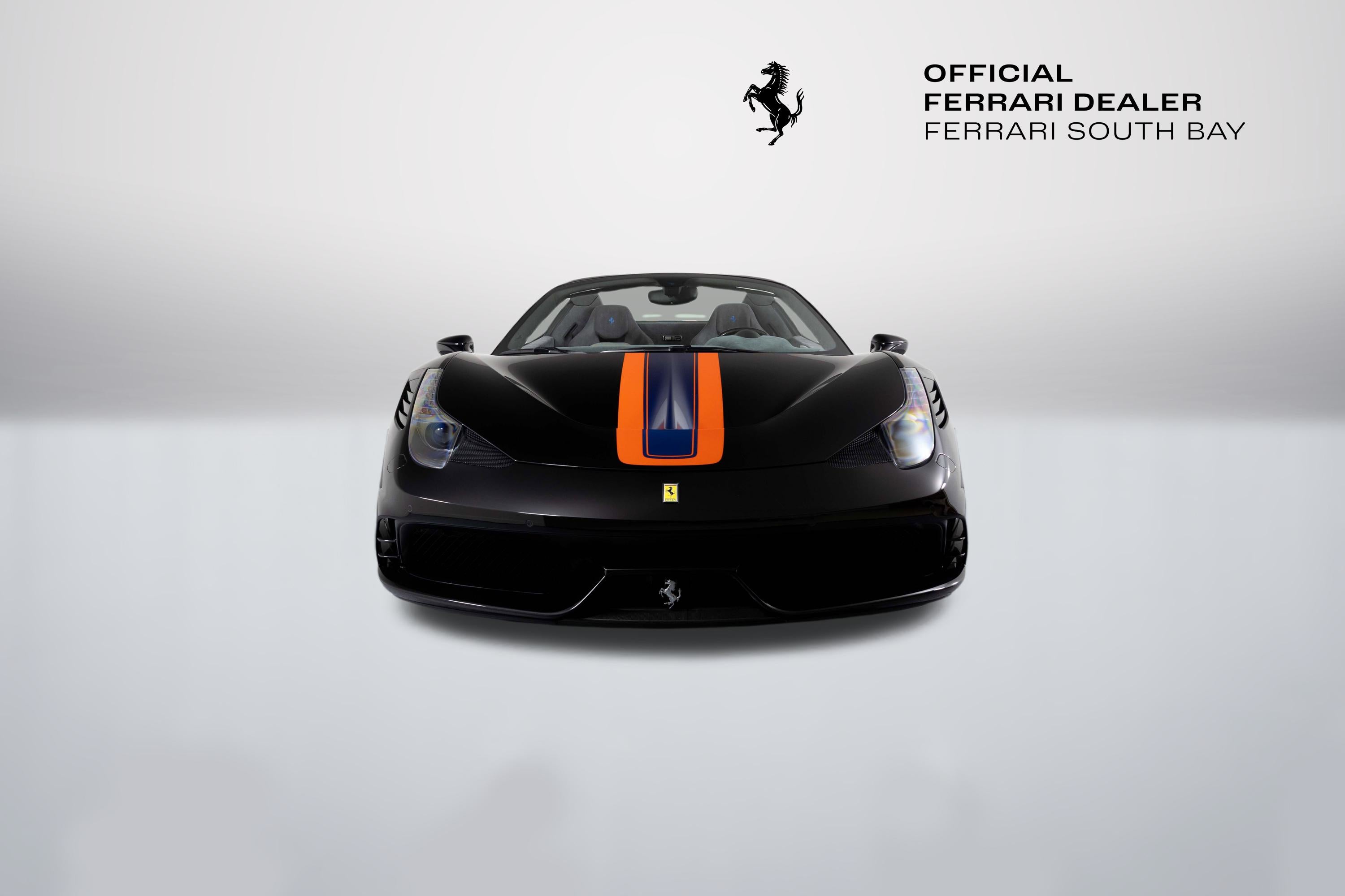 Ferrari South Bay is thrilled to offer this sensational 458 Speciale Aperta finished in Nero with Charcoal Alcantara interior accented with Blue Stitching. A very exclusive convertible version of the already very rare 458 Speciale coupe, its naturally-aspirated 4.5-liter V8 produces 600 hp at 9000 rpm, making it the most powerful naturally aspirated V8 Ferrari has ever produced for a road car. With only 499 458 Speciale As in the world, this a Ferrari which will be a standout in the very finest of collections. The exterior of this 458 Speciale Aperta is finished in Nero, and sports a Livery Stripe in Rosso Dino with NART Blue Central Stripe. Carbon Fiber abounds, covering the Rear Diffuser, Side Winglets, Front Spoiler, B-Pillar Trim, and Front Fender Vents and Engine Air Box and Intake Tubes. Black Satin Forged Wheels surround Carbon Ceramic Brakes with Yellow Calipers, and are affixed with Titanium Studs. Scuderia Ferrari Shields adorn the front fenders. The entire car is covered with Paint Protective Film, ensuring your investment will remain gorgeous well into the future. Step into the cockpit and you're surrounded by Charcoal Alcantara and Technical Fabric Inserts and and Blue Stitching (including the Cavallinos Embroidered into the seat headrests of the Carbon Fiber racing seats). The inner door panels are finished in Carbon Fiber, and so is the Driver's Zone (which includes the Steering wheel (with LED Shift Lights) and F1 Shift Paddles. The Upper Central Console is also finished in Carbon Fiber. The floor of the car is finished in Diamond Plate and Black Alcantara. This 458 Speciale Aperta is offered with both original keys, cover, books, battery tender, and tools. The car has passed Ferrari's rigorous 101-Point Certification Inspection, and is eligible for a 2-year Power16 warranty at the time of purchase. If you'd like to learn more about this amazing Speciale A, or set up a viewing in our showroom, please reach out to one of our knowledgeable sales staff. Ferrari South Bay is proudly part of Holand Automotive Group, one of North America’s leading luxury automotive retailers. We offer nationwide shipping, trade-in opportunities, financing, client consignments, and world-class delivery service. Contact us today to explore ownership of this remarkable. Please visit us at 23305 Hawthorne Blvd, Torrance, CA 90505, or call us at (888) 578-8767.