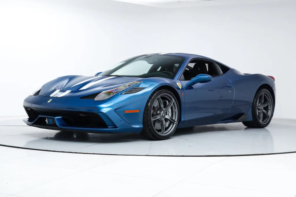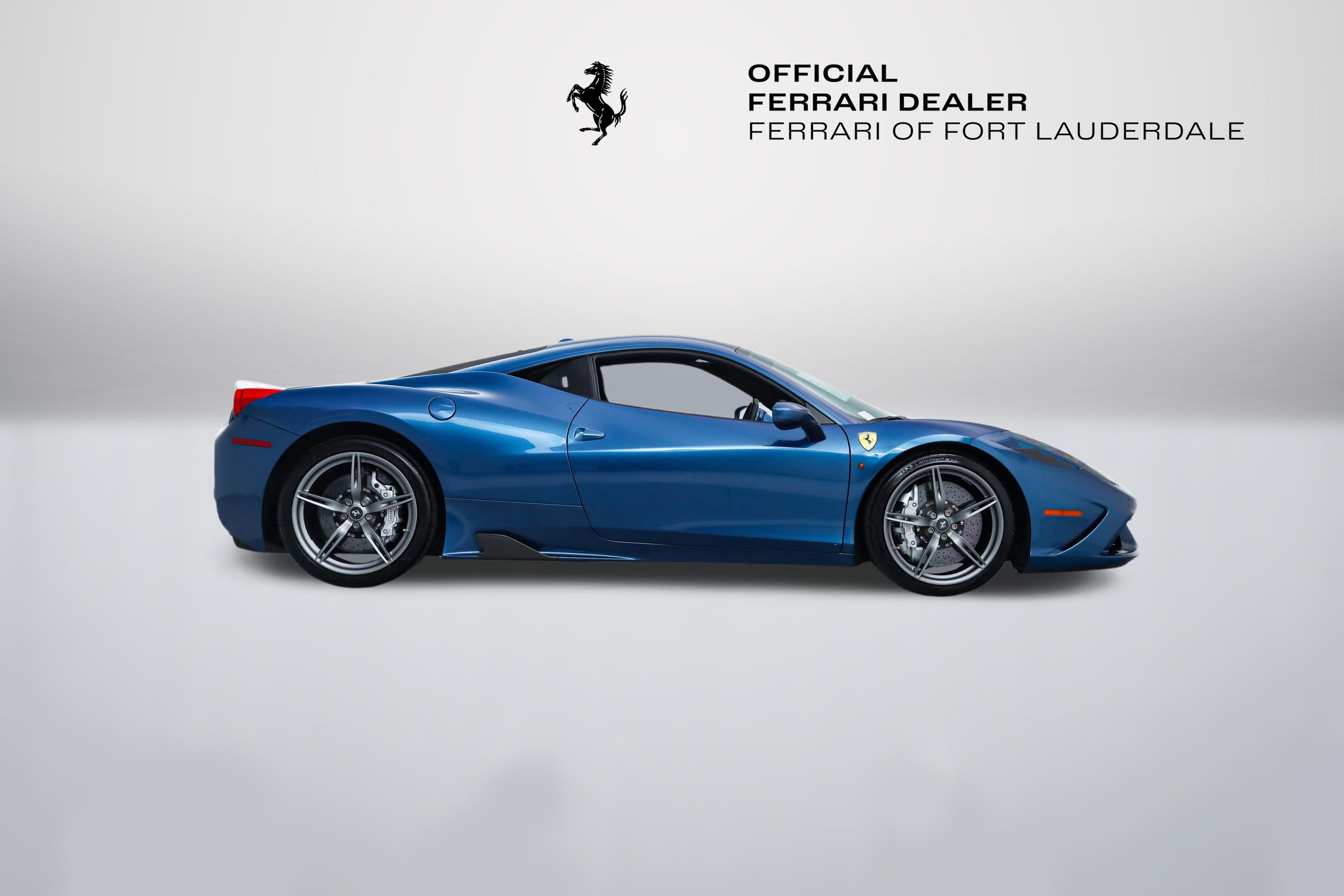 Ferrari 458 Speciale - Blu NART over Nero - Low Miles - Pristine Condition - Many Fine Options - Expertly Maintained by Authorized Ferrari Dealers - Factory Options: - Suspension Lifter - Special 2-Layer Paint Color - Racing Livery in Bianco and Blu NART - Carbon Fiber Front Spoiler - Carbon Fiber Front Air Intakes - Carbon Fiber Engine Covers - Carbon Fiber Rear Diffuser - Carbon Fiber Lateral Sill Fins - Carbon Fiber Wheel Caps - Carbon Fiber Racing Seats - Scuderia Ferrari Shields - Aluminum Brake Calipers - Driver Seat Adjustment Device - Alcantara Headliner in Nero - Alcantara Wheelhouse Trim - Alcantara Dashboard in Nero - Alcantara Upper Part in Nero - Alcantara Rear Trim - Grigio Seat Areas - Yellow Rev Counter - Integrated Audio System - Satellite Radio - Adaptive Frontlight System (AFS) - Cruise Control - Telemetry Kit - Track Inner Cams Kit - Inner and Outer Electrochromic Mirrors with HomeLink - Navigation System with Bluetooth - Rear Parking Camera - Front and Rear Parking Sensors If you are in the market for a Ferrari 458 Speciale, please call or email us today.
