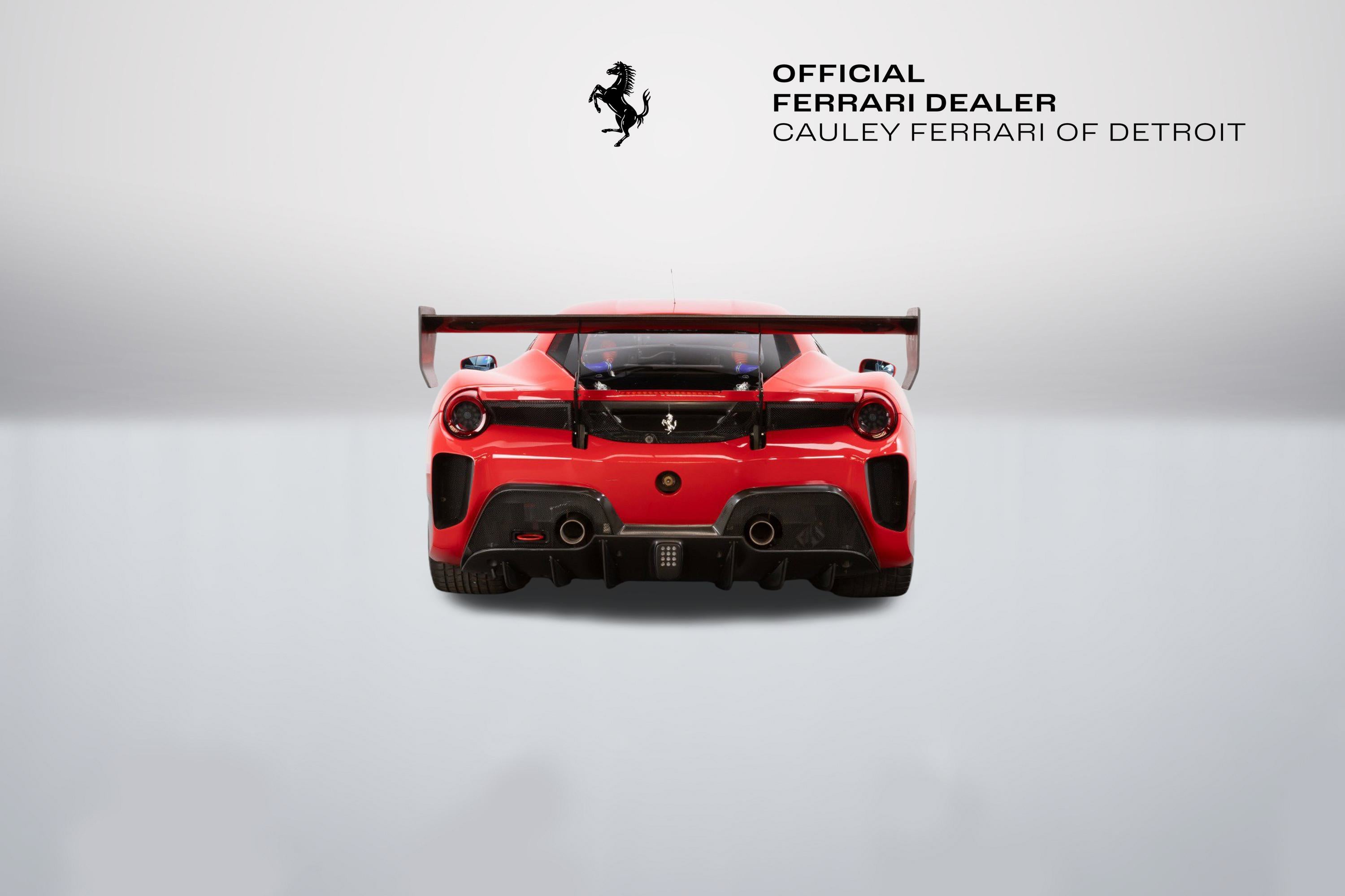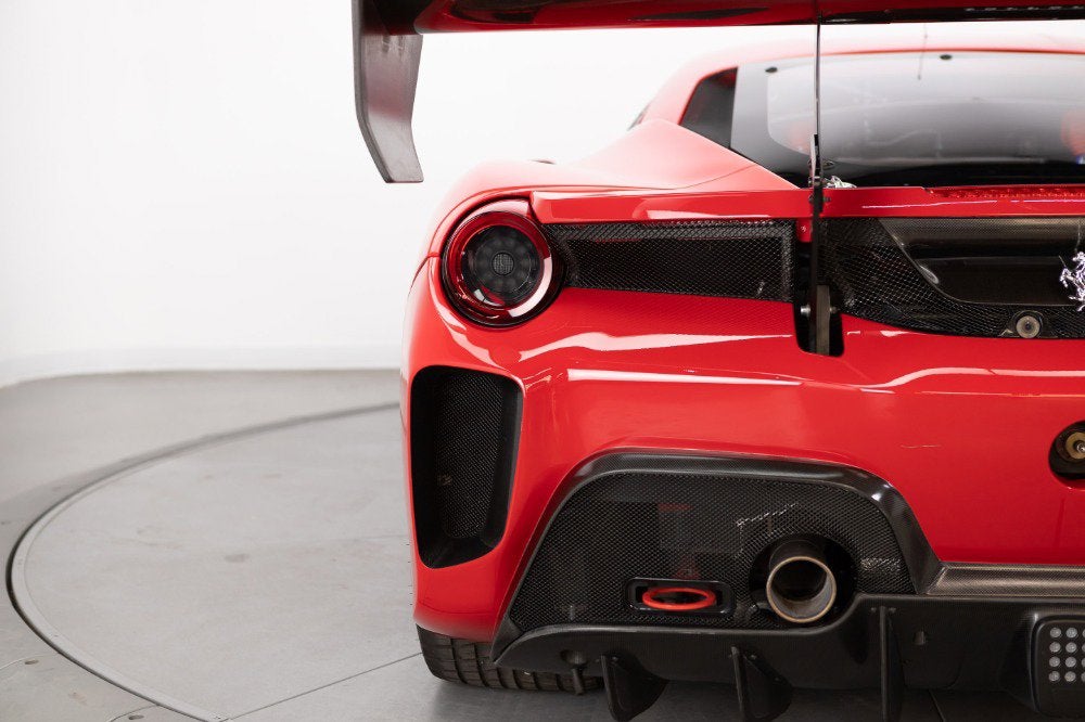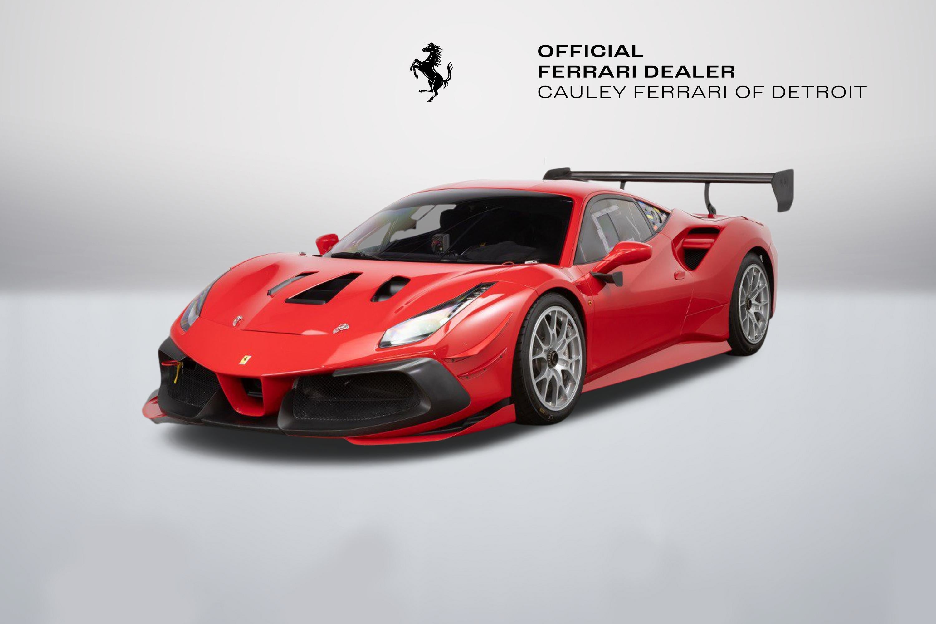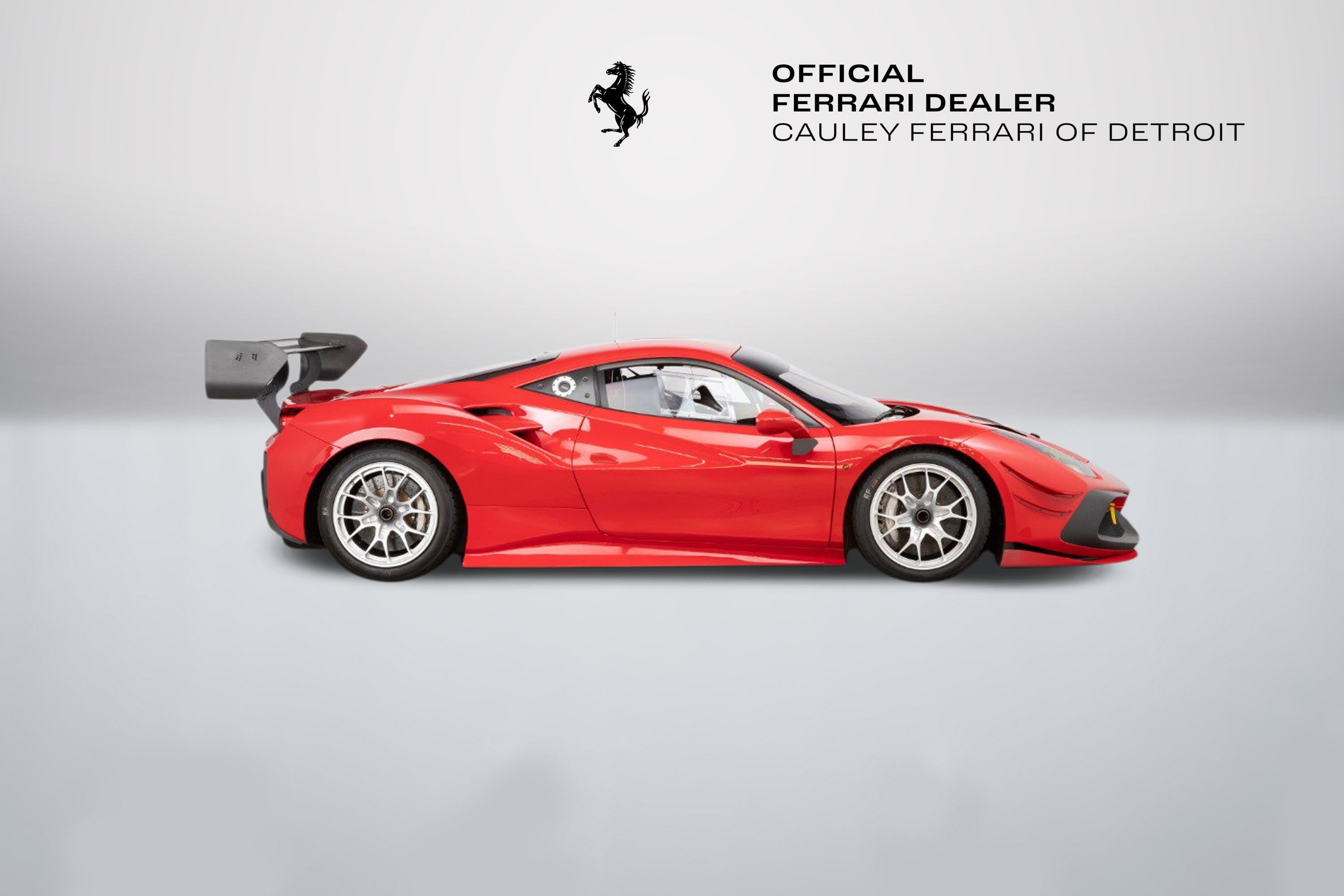 Cauley Ferrari of Detroit is very excited to offer you this 2022 Ferrari 488 Challenge EVO finished in classic Rosso Corsa over a Nero race interior. Currently, it has just 4,414 Miles. IT has been managed and serviced by HP-Tech Motorsport since new. Included with the sale are two extra sets of rims, a large driver and passenger seat, radio, Race Logic VBox Video and Data Recorder, and a Chill Out Cool Suit System. Exterior color and seat sizes are the only options available when ordering. This is not a road-legal car, but a true dedicated race car. Prospective owners have the option to not only purchase the car but the ability to race it in a one-make series throughout North America in Ferrari Challenge. Give us a call at 248-538-9600 or email info@cauley.net to set up a private viewing of this car or stop by our showroom in West Bloomfield, MI to see it up close. In 1993, Ferrari first introduced the Ferrari Challenge race series, which is a Ferrari-only championship that gives its clients the ability to purchase a turnkey Ferrari race car from the factory. Owners are then allowed to race their Challenge car in a Ferrari-sanctioned race series where full support will be offered from crews, fuel, tires, parts, etc. You just show up and drive! The first Ferrari model offered in the Challenge series was the 348 Berlinetta and a race variant has been offered for all subsequent models - the F355, 360, F430, 458, and lastly the 488. The Ferrari challenge now encompasses three official championships around the world, North America, Asia-Pacific, and Europe. Competitors from each series are brought together at the Annual World Finals called the Finali Mondiali which changes location every year. Headlining the changes between the previous 488 Challenge and the new EVO package are upgraded aerodynamics, producing a significant increase in downforce, improved tires from Pirelli that will enable the drivers to push harder over the full race distance, plus the upgraded electronics and driver interface to support all of these enhancements. Visually, the new 488 Challenge EVO is most strikingly marked by a completely revised front end, which is home to the most significant aerodynamic changes to the car. While the new nose is certainly a significant aesthetic improvement, it's the space underneath the new nose that has the most important aerodynamic updates with a new floor and adjustable flaps incorporated. The flaps offer an important tuning opportunity, allowing the driver to select between high and low downforce configurations. Passing down the side of the car, the 488 Challenge EVO is also marked by a small winglet underneath the wing mirrors. This winglet seems to be pointed in such a way as to generate lift, but it is there to redirect hot air from the radiators and ensure it does not enter the intercooler intakes further along the flank of the car. So, while a nominal amount of lift is generated, it is more than counter-balanced by the increase in power that comes from the improved efficiency of the intercoolers. At the rear of the 488 Challenge is a revised rear bumper, which features three critical enhancements. The first is the revised rear-wing endplates, which on the EVO are bowed in slightly at the bottom. These endplates interact with the second enhancement, the holes cut in the bumper behind each rear wheel. These holes exhaust air from the wheel well and reduce the aerodynamic drag on the car. The rear-wing endplates interact with this airflow and help to pull the air out from this space and bring it into contact with the air already being worked by the rear wing. The last, but perhaps most critical enhancement, however, is the revised rear-facing camera. The 488 Challenge car, as well as the EVO, does not have a rear-view mirror, so drivers rely on this camera to see those behind. The Ferrari 488 Challenge EVO also makes use of a new and improved tire, provided by Pirelli. After receiving feedback from the drivers, Pirelli was able to design a tire with a higher performance ceiling and a more consistent performance through the race, allowing drivers to push harder and for longer than previously. Challenge drivers have three Manettino settings to adjust during the heat of competition; one controls braking, while the other two separately adjust the traction control and electronic differential. In essence, they give the driver independent control over when and how intensely the system intervenes. It will take time for any driver to master all the permutations of torque and traction, but this is a car that rewards skill and commitment. If you are not already an experienced race car driver, do not worry. Ferrari offers various driver training programs through its Corso Pilota program at a few different locations in North America. The programs are designed to train everyone from novices to those with real racing experience under their belt.