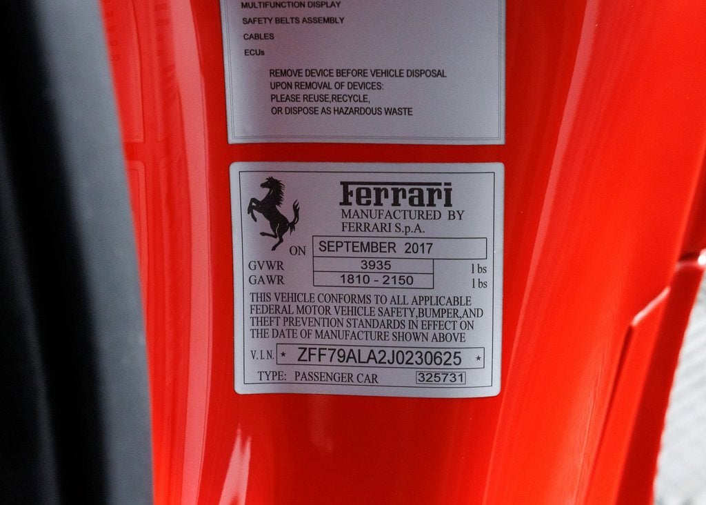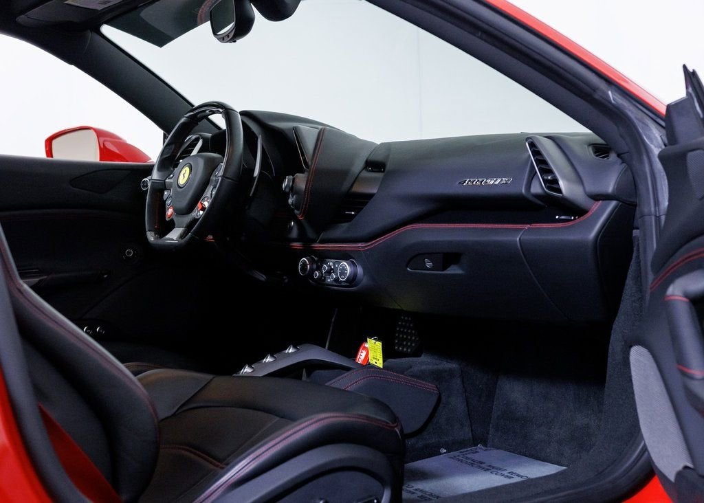 Wide World Ferrari is proud to present this exceptional Ferrari 488 GTB, a beautifully specified, low-mileage example of Maranello's twin-turbocharged V8 masterpiece. Showing just 2,953 miles and supported by a clean Carfax, this 488 GTB delivers breathtaking performance, everyday usability, and unmistakable Ferrari character in one sculpted, mid-engine package. Finished in iconic Rosso Corsa, the exterior embodies Ferraris racing heritage with a bold yet timeless presence. The look is elevated by 20-inch forged wheels finished in matte Grigio Corsa, perfectly complemented by striking Giallo Modena brake calipers and the coveted Scuderia Ferrari shields proudly displayed on the fenders. Every line and aerodynamic detail serves both form and function, reinforcing the 488 GTBs reputation as one of the most visually captivating modern Ferraris. The interior is appointed in Nero, creating a purposeful and performance-focused cockpit. Electric seats provide both comfort and support, enhanced by special stitching in Rosso and Rosso-colored seat belts that add a vibrant, motorsport-inspired contrast. The embroidered Cavallino emblems on the headrests in Rosso further reflect Ferraris handcrafted attention to detail. Overhead, the upper part of the passenger compartment is trimmed in Nero leather, elevating the cabins refined yet aggressive atmosphere. At the heart of the driver-focused environment is the highly desirable carbon fiber steering wheel with integrated LED shift indicators, paired with a signature yellow tachometer dial facean unmistakable Ferrari hallmark. Together, they deliver a truly immersive driving experience, connecting driver and machine with precision and emotion. Additionally, the car is Ferrari Approved and eligible for up to a 2-year Ferrari Certification warranty (available at an additional charge). As the only 4-Time Cavallino Winning Ferrari Center in the tri-state area and one of the first Ferrari Centers in North America, we pride ourselves on exceptional service. We assist with all aspects of your purchase, including trade-ins, shipping, registration, non-reported financing, and customizations. Conveniently located in Rockland County, just under 30 miles from Manhattan. For more information, email us at ferrarivip@newcountry.com or call 845-682-0129.