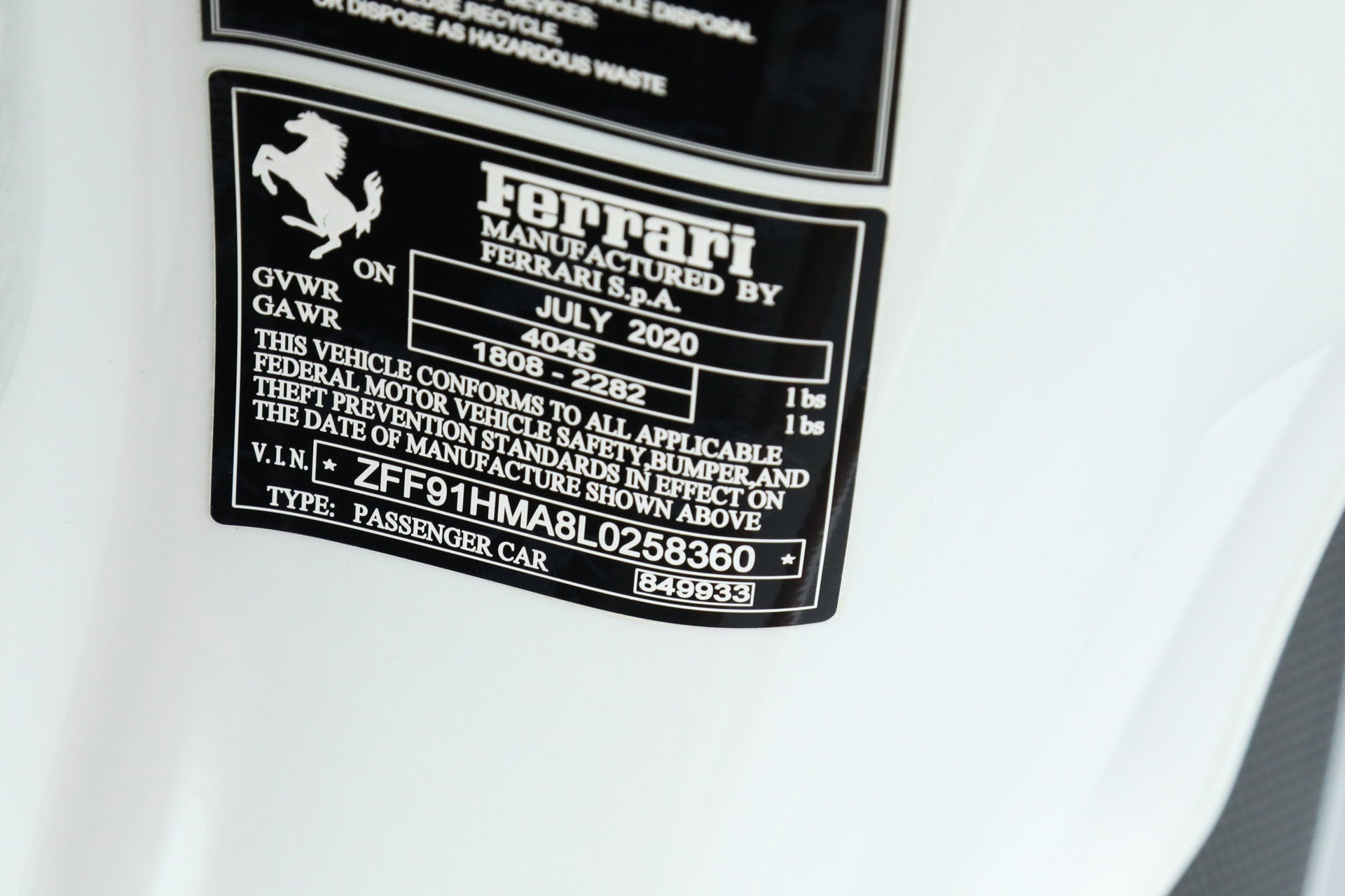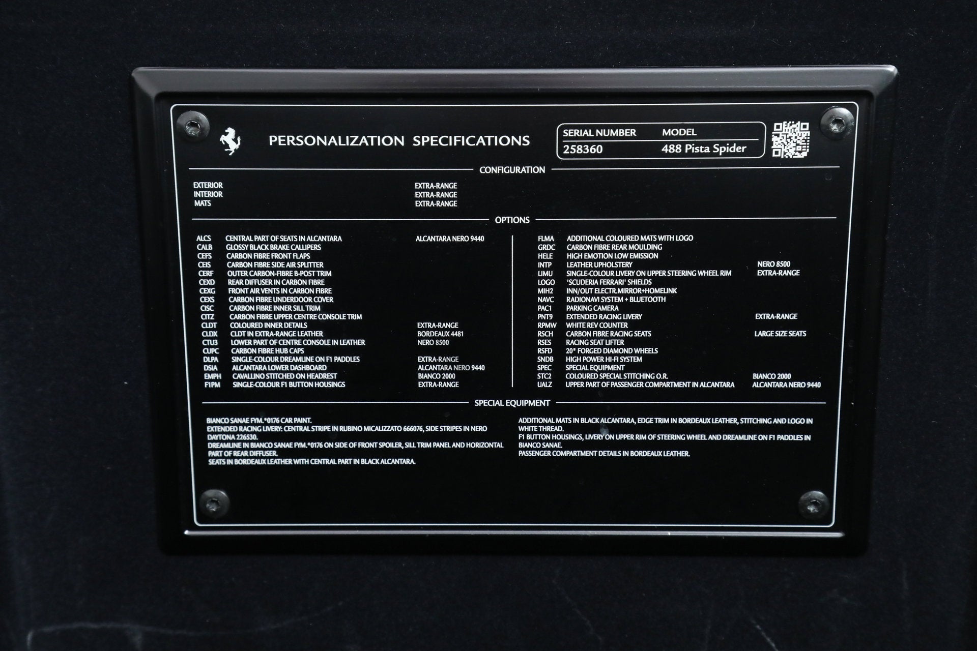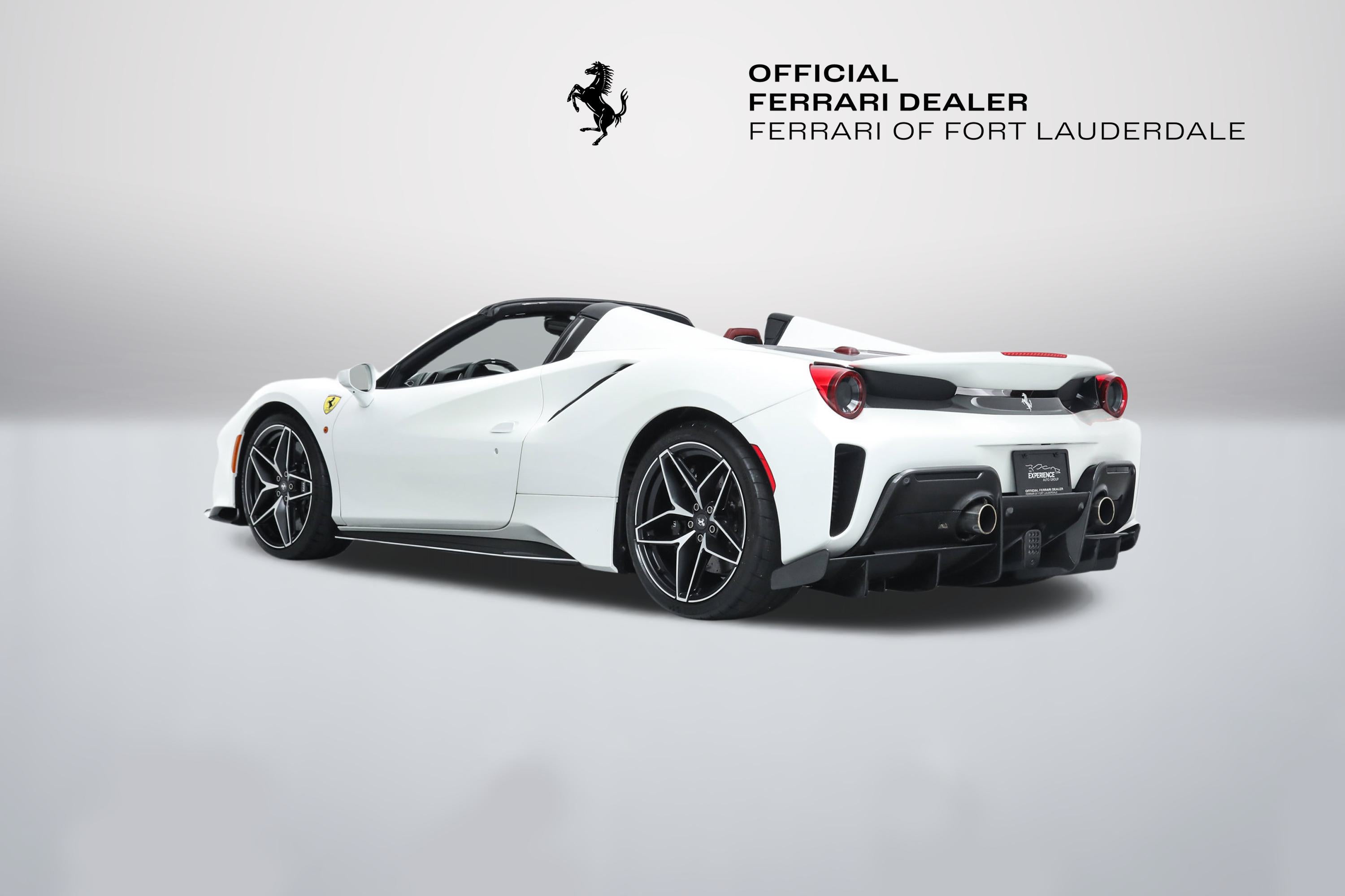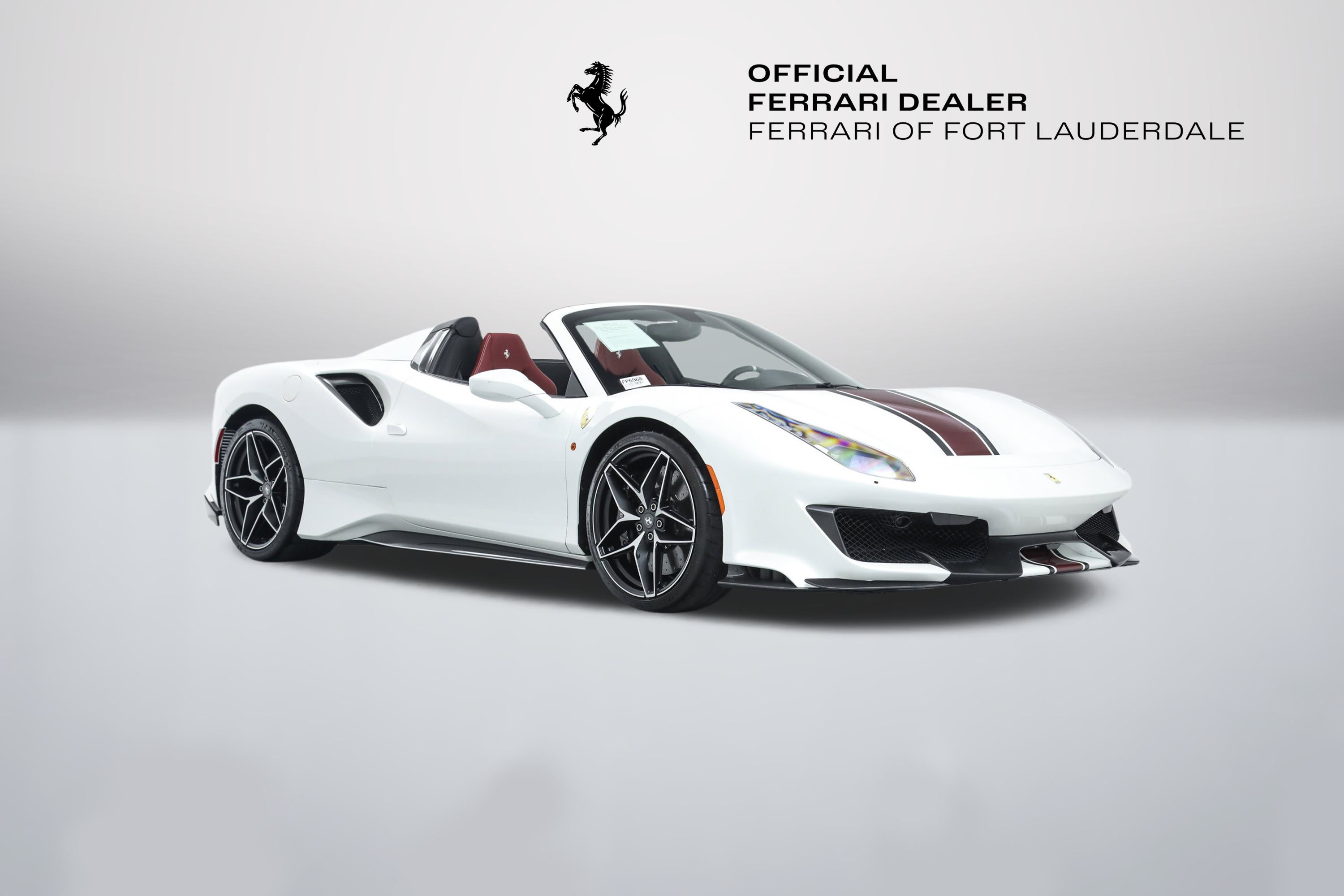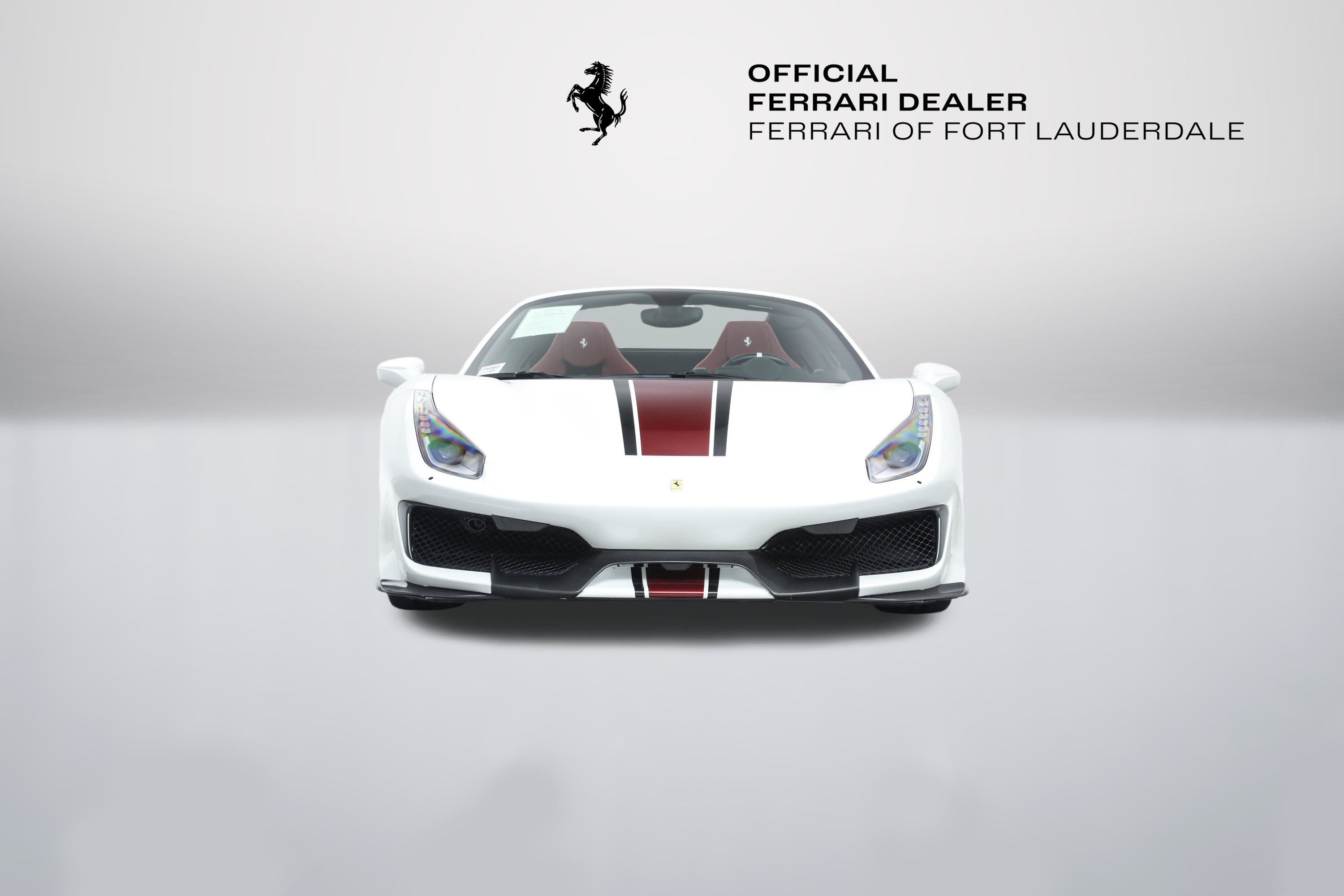 Ferrari 488 Pista Spider - FRONT END PPF - - FERRARI CERTIFIED PRE-OWNED - AVAILABLE EXTENDED FERRARI WARRANTY - - Bianco Sanae over Bordeaux and Nero - Two Owners - Pristine Condition - Many Fine Options - Expertly Maintained by Authorized Ferrari Dealers - Available Extended Ferrari Warranty - Complimentary Ferrari Genuine Maintenance Service to 9/19/27 - Factory Options: - Special Extra-Range Paint Color - Extended Racing Livery in Rubino Micalizzato and Nero Daytona - Exterior Dreamlines in Bianco Sanae - Interior Dreamlines and F1 Button Housings in Bianco Sanae - Seats in Bordeaux Leather with Nero Alcantara Centers - Passenger Compartment Details in Bordeaux Leather - Embroidered Mats in Nero Alcantara with Bordeaux Leather Edging - Carbon Fiber Front Flaps - Carbon Fiber Front Air Vents - Carbon Fiber Side Air Splitters - Carbon Fiber Outer B-Post Trim - Carbon Fiber Rear Moulding - Carbon Fiber Rear Diffuser - Carbon Fiber Underdoor Covers - Carbon Fiber Wheel Caps - Carbon Fiber Upper Center Console - Carbon Fiber Inner Sill Trim - Carbon Fiber Racing Seats - 20-inch Forged Diamond Wheels - Gloss Black Brake Calipers - Racing Seat Lifter - Leather Upholstery in Nero - Lower Center Console in Nero Leather - Alcantara Lower Dashboard in Nero - Alcantara Upper Part in Nero - Cavallino Stitched to Headrests in Bianco - Special Stitching in Bianco - High Power HiFi Sound System - Inner and Outer Electrochromic Mirrors with HomeLink - Radio Navigation System with Bluetooth - Parking Camera - White Rev Counter - High Emotion Low Emission (HELE) System If you are in the market for a Ferrari 488 Pista, please call or email us today. This Ferrari has passed a multi-point inspection performed by our factory trained technicians, and has been enrolled in the Ferrari Approved Certified Pre-Owned Program. The Certified program makes available up to two years of additional Ferrari Power Approved Warranty coverage. Please see dealer for more details.