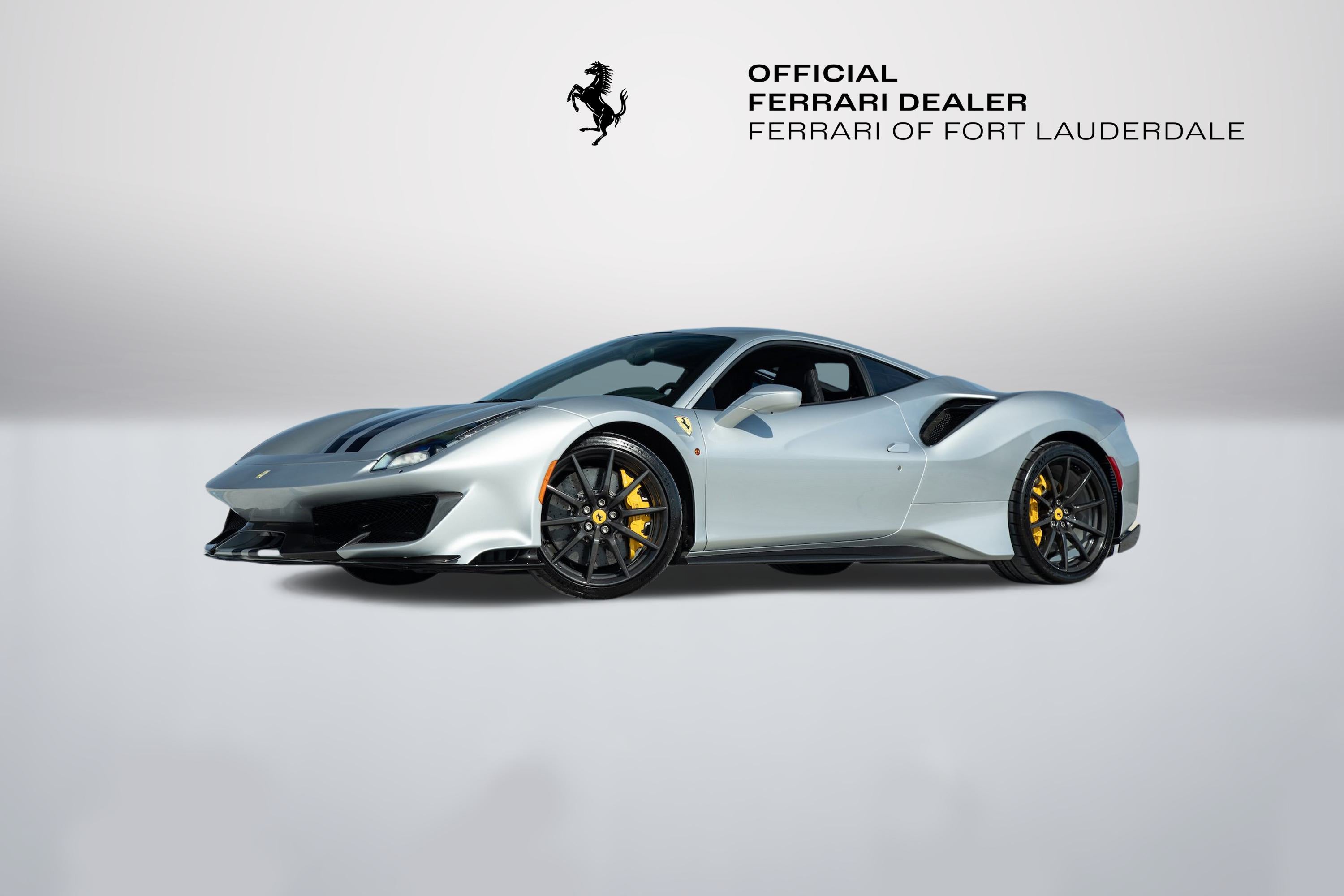 Ferrari 488 Pista - FERRARI CERTIFIED PRE-OWNED - AVAILABLE EXTENDED FERRARI WARRANTY - - Argento Nurburgring over Blu Scuro - Low Miles - Pristine Condition - Many Fine Options - Expertly Maintained by Authorized Ferrari Dealers - Available Extended Ferrari Warranty - Complimentary Ferrari Genuine Maintenance Service to 2/12/26 - Factory Options: - Suspension Lifter - Racing Stripe in Blu America - Carbon Fiber Wheels - Carbon Fiber Front Air Vents - Carbon Fiber Front Flaps - Carbon Fiber Side Air Splitters - Carbon Fiber Engine Covers - Carbon Fiber Rear Diffuser - Carbon Fiber Rear Moulding - Carbon Fiber Underdoor Covers - Carbon Fiber Upper Center Console - Carbon Fiber Inner Sill Trim - Carbon Fiber Interior Trims in Matte Finish - Carbon Fiber Racing Seats - Yellow Brake Calipers - Scuderia Ferrari Shields - Racing Seat Lifter - Special Stitching in Grigio Scuro - Alcantara Seats Inner Trim in Blu Scuro - Colored Inner Details in Nero - Titanium Exhaust Pipes - Heat Insulating Windscreen - Inner and Outer Electrochromic Mirrors with HomeLink - Parking Camera - Aluminum Rev Counter If you are in the market for a Ferrari 488 Pista, please call or email us today. This Ferrari has passed a multi-point inspection performed by our factory trained technicians, and has been enrolled in the Ferrari Approved Certified Pre-Owned Program. The Certified program makes available up to two years of additional Ferrari Approved Warranty coverage. Please see dealer for more details.