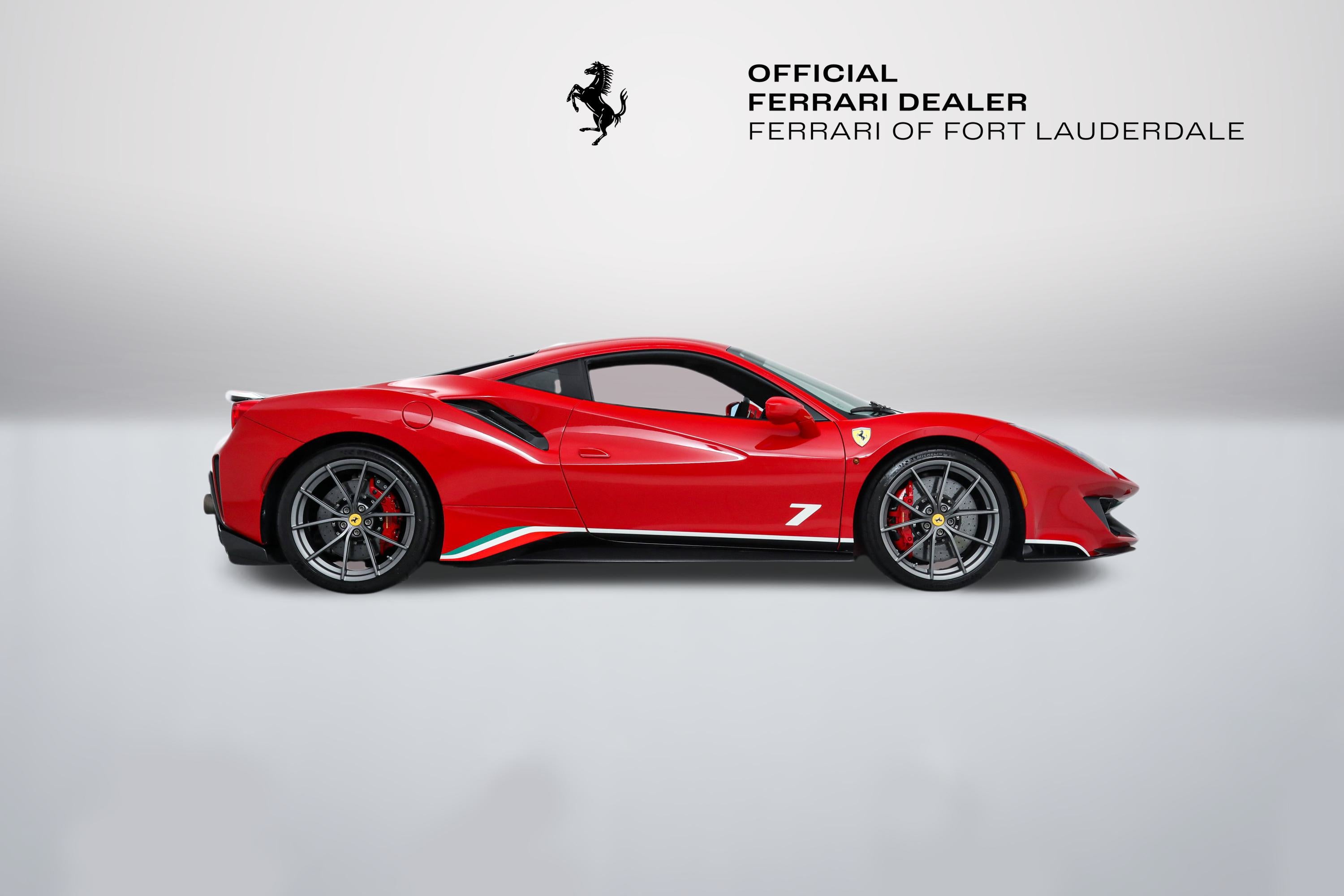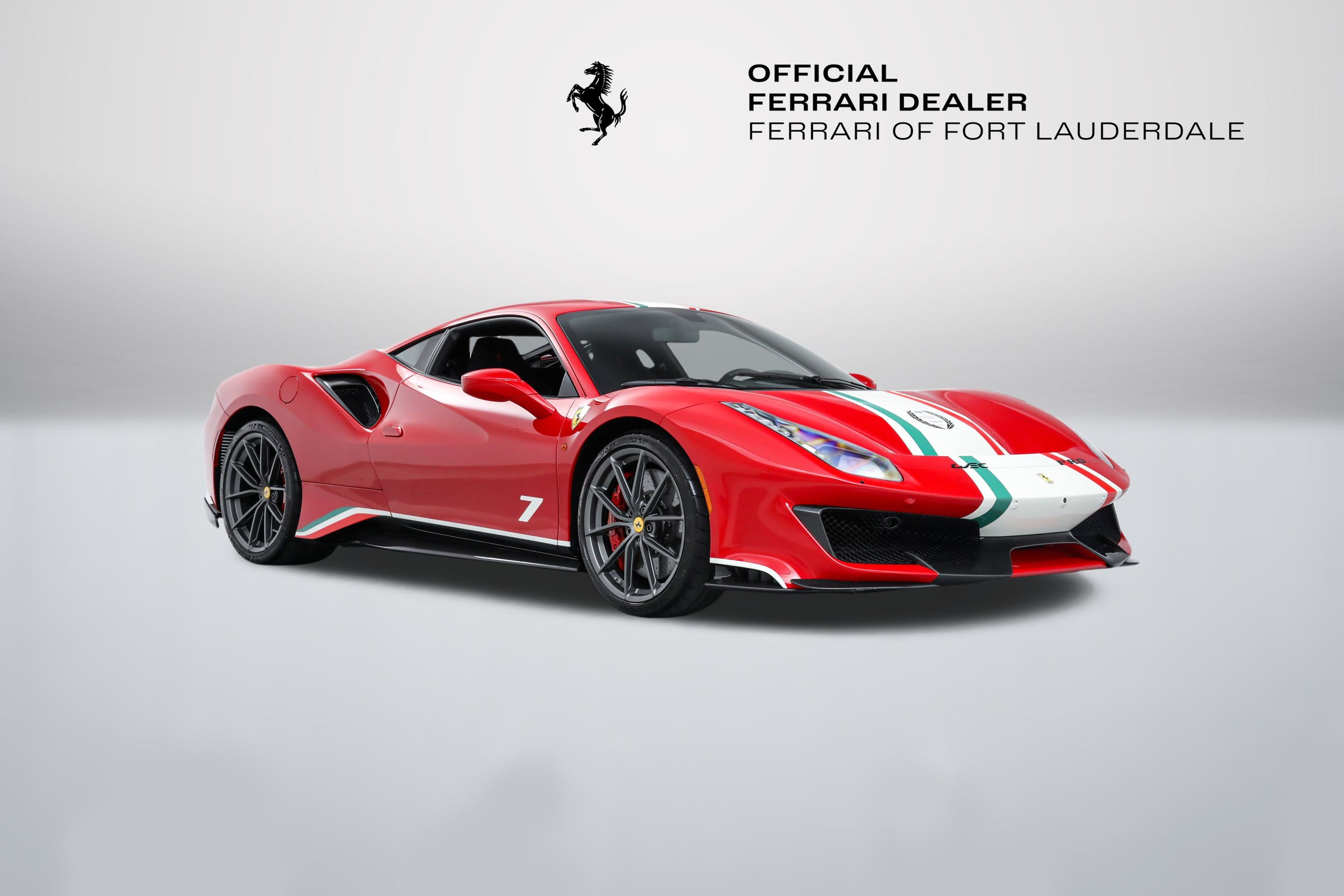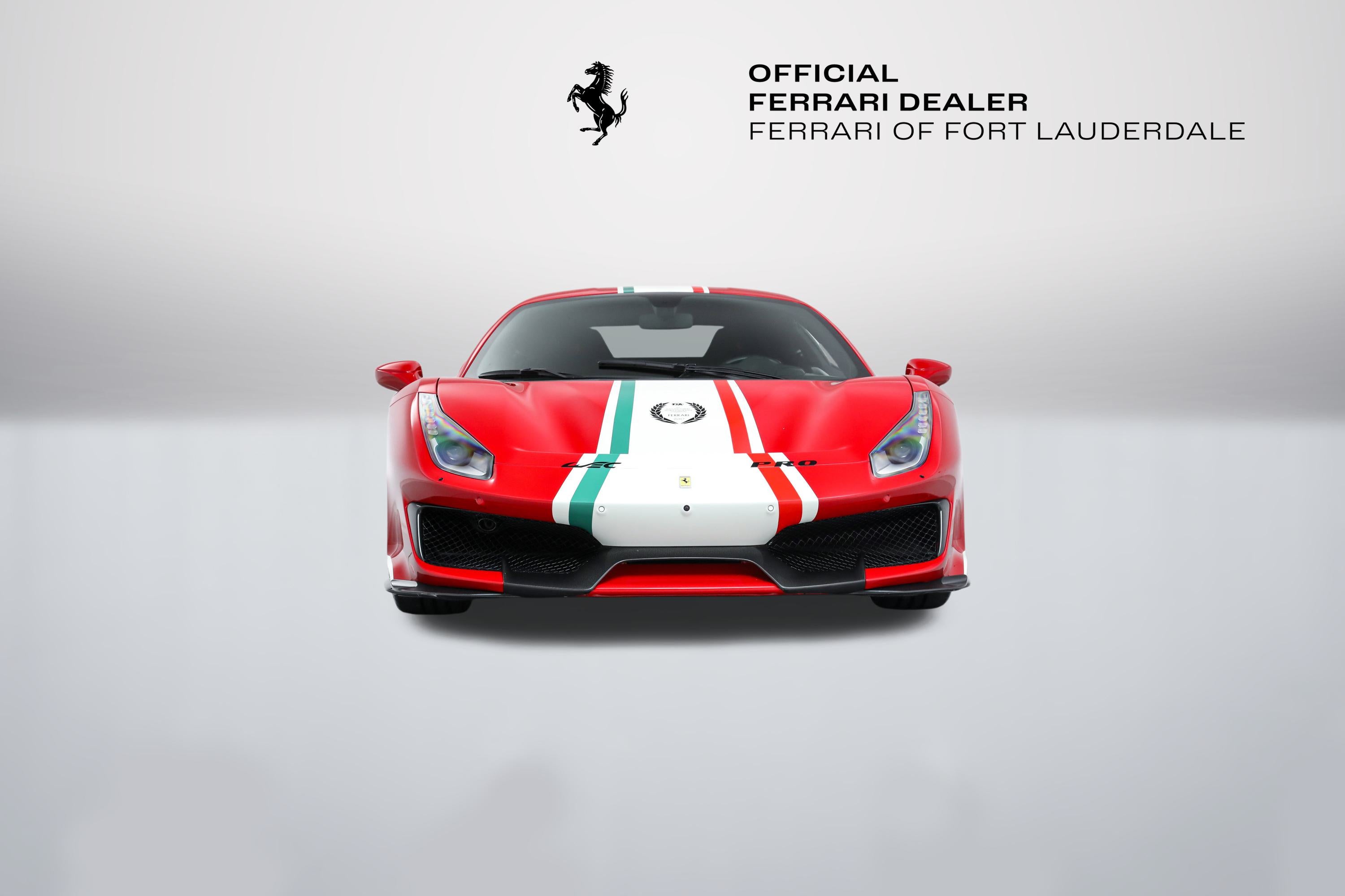Ferrari 488 Pista Piloti - TAILOR MADE FOR FERRARI RACING DRIVERS - - FERRARI CERTIFIED PRE-OWNED - AVAILABLE EXTENDED FERRARI WARRANTY - - Rosso Corsa over Nero - LOW MILES - Many Fine Options - Excellent Condition - Sold as New by Our Dealership - Expertly Maintained by Our Factory Trained Technicians - Available Extended Ferrari Warranty - Complimentary Ferrari Genuine Maintenance Service to 12/2/27 - Factory Options: - Ferrari Tailor Made - Suspension Lifter - Tricolor and Bespoke Detailing - Painted Exterior Dreamlines - Seats in Perforated Alcantara with Tricolor Base - Details in Red Leather on Dashboard - Details in Black Alcantara on Door Pocket - Additional Floor Mats with Tricolor Detailing - Steering Wheel in Black Leather with Alcantara Grips - Tricolor Dreamline on Shift Paddles - Carbon Fiber Kickplates with Tailor Made Logo - Dedication Plate in Matte Carbon Fiber - Carbon Fiber Front Flaps - Carbon Fiber Side Air Splitters - Carbon Fiber Rear Diffuser - Carbon Fiber Rear Moulding - Carbon Fiber Engine Covers - Carbon Fiber Front Air Vents - Carbon Fiber Underdoor Covers - Carbon Fiber Instrument Cover - Carbon Fiber Upper Center Console Trim - Carbon Fiber Inner Sill Trim - Carbon Fiber Front Luggage Compartment - Carbon Fiber Racing Seats - Racing Seat Lifter - Interior Carbon Fiber in Matte Finish - Cavallino Stitched to Headrests in Rosso - Stitching in Rosso - Forged Wheels - Red Brake Calipers - Scuderia Ferrari Shields - Adaptive Frontlight System (AFS) - Titanium Exhaust Pipes - High Emotion Low Emission (HELE) System - High Power HiFi Sound System - Navigation System with Bluetooth - Front and Rear Parking Cameras - White Rev Counter - Vehicle Personalization Plate If you are in the market for a Ferrari 488 Pista Piloti, please call or email us today. This Ferrari has passed a multi-point inspection performed by our factory trained technicians, and has been enrolled in the Ferrari Approved Certified Pre-Owned Program. The Certified program makes available up to two years of additional Ferrari Power Approved Warranty coverage. Please see dealer for more details.