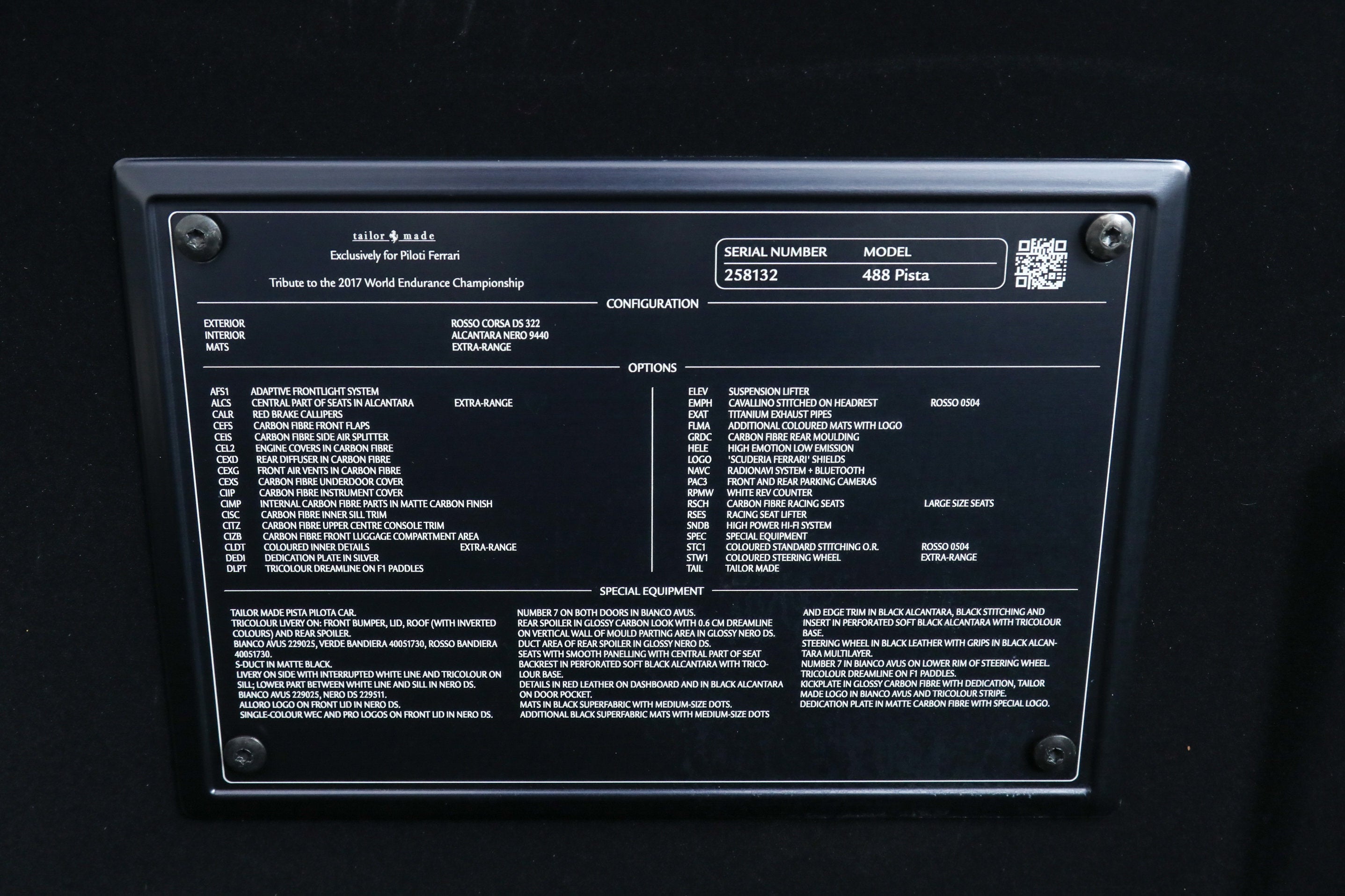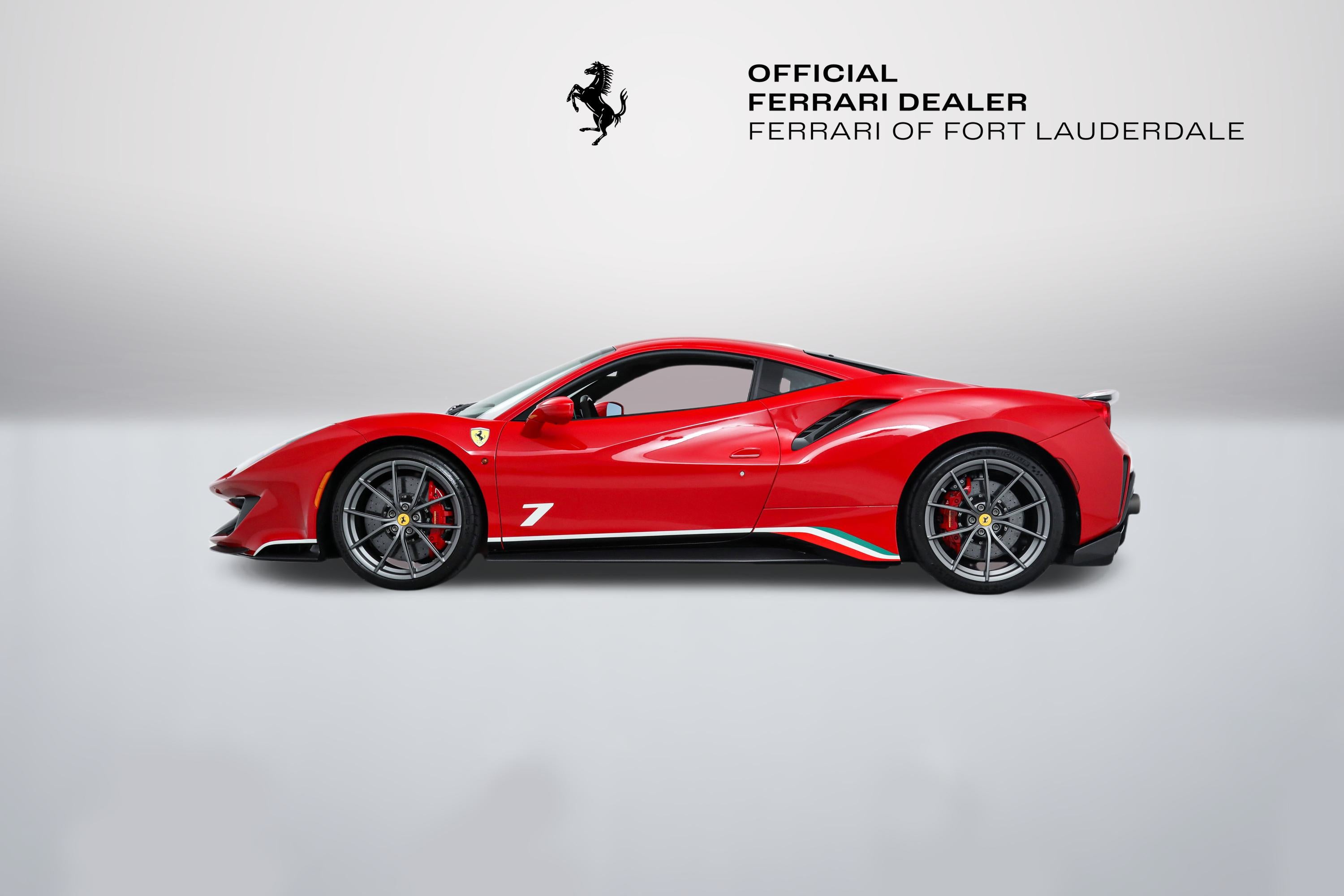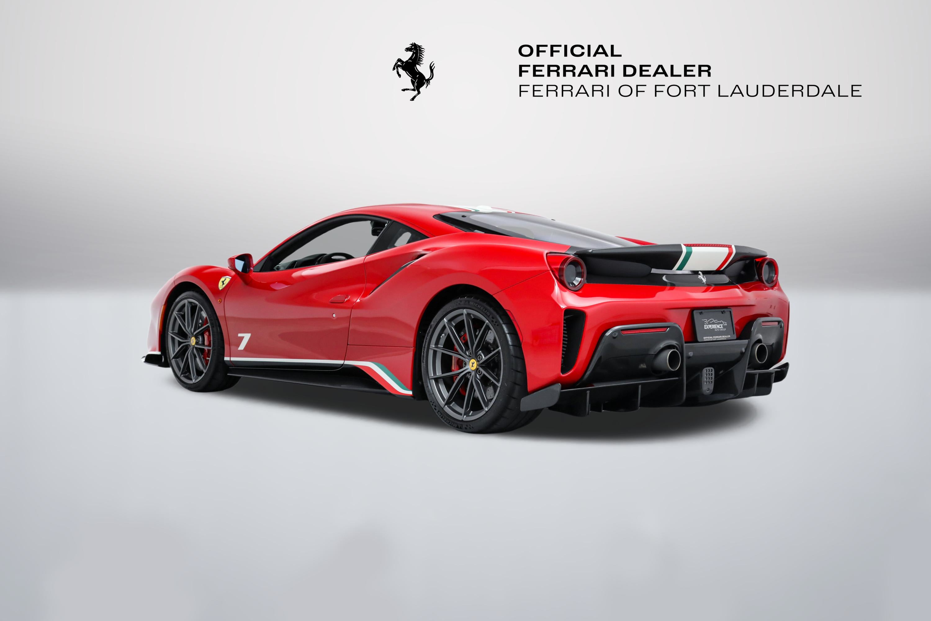 Ferrari 488 Pista Piloti - TAILOR MADE FOR FERRARI RACING DRIVERS - - FERRARI CERTIFIED PRE-OWNED - AVAILABLE EXTENDED FERRARI WARRANTY - - Rosso Corsa over Nero - LOW MILES - Many Fine Options - Excellent Condition - Sold as New by Our Dealership - Expertly Maintained by Our Factory Trained Technicians - Available Extended Ferrari Warranty - Complimentary Ferrari Genuine Maintenance Service to 12/2/27 - Factory Options: - Ferrari Tailor Made - Suspension Lifter - Tricolor and Bespoke Detailing - Painted Exterior Dreamlines - Seats in Perforated Alcantara with Tricolor Base - Details in Red Leather on Dashboard - Details in Black Alcantara on Door Pocket - Additional Floor Mats with Tricolor Detailing - Steering Wheel in Black Leather with Alcantara Grips - Tricolor Dreamline on Shift Paddles - Carbon Fiber Kickplates with Tailor Made Logo - Dedication Plate in Matte Carbon Fiber - Carbon Fiber Front Flaps - Carbon Fiber Side Air Splitters - Carbon Fiber Rear Diffuser - Carbon Fiber Rear Moulding - Carbon Fiber Engine Covers - Carbon Fiber Front Air Vents - Carbon Fiber Underdoor Covers - Carbon Fiber Instrument Cover - Carbon Fiber Upper Center Console Trim - Carbon Fiber Inner Sill Trim - Carbon Fiber Front Luggage Compartment - Carbon Fiber Racing Seats - Racing Seat Lifter - Interior Carbon Fiber in Matte Finish - Cavallino Stitched to Headrests in Rosso - Stitching in Rosso - Forged Wheels - Red Brake Calipers - Scuderia Ferrari Shields - Adaptive Frontlight System (AFS) - Titanium Exhaust Pipes - High Emotion Low Emission (HELE) System - High Power HiFi Sound System - Navigation System with Bluetooth - Front and Rear Parking Cameras - White Rev Counter - Vehicle Personalization Plate If you are in the market for a Ferrari 488 Pista Piloti, please call or email us today. This Ferrari has passed a multi-point inspection performed by our factory trained technicians, and has been enrolled in the Ferrari Approved Certified Pre-Owned Program. The Certified program makes available up to two years of additional Ferrari Power Approved Warranty coverage. Please see dealer for more details.