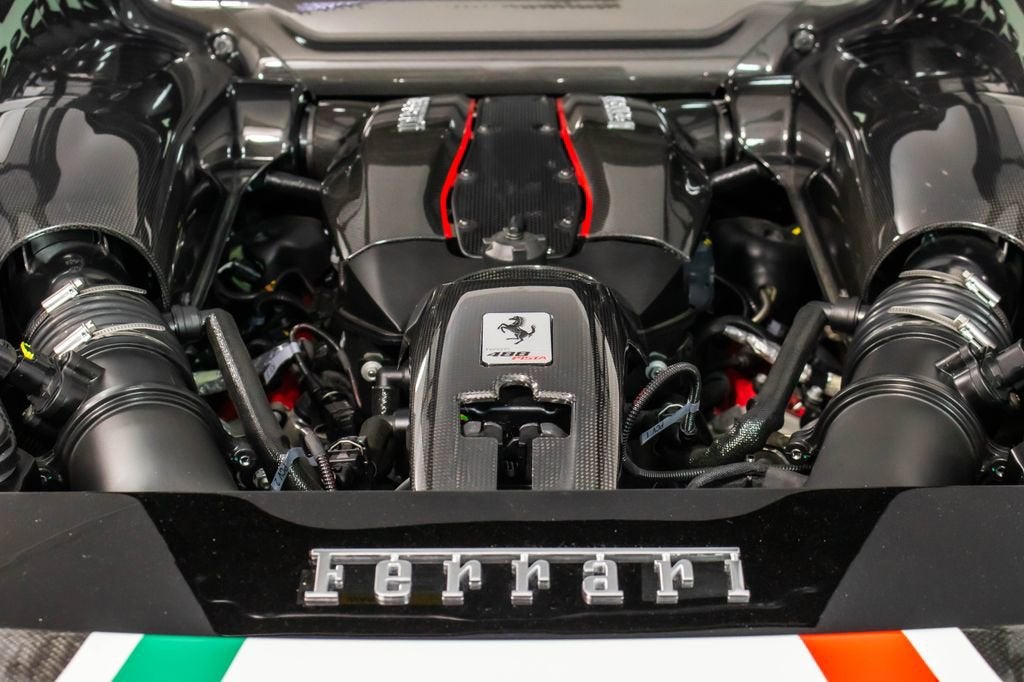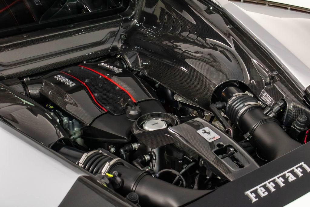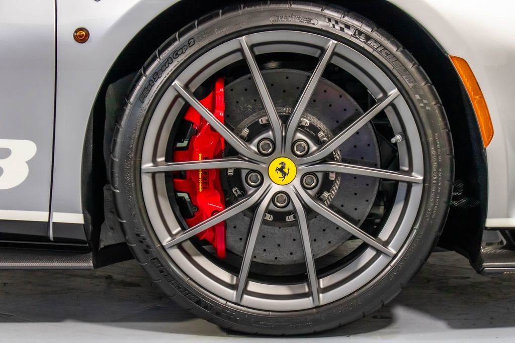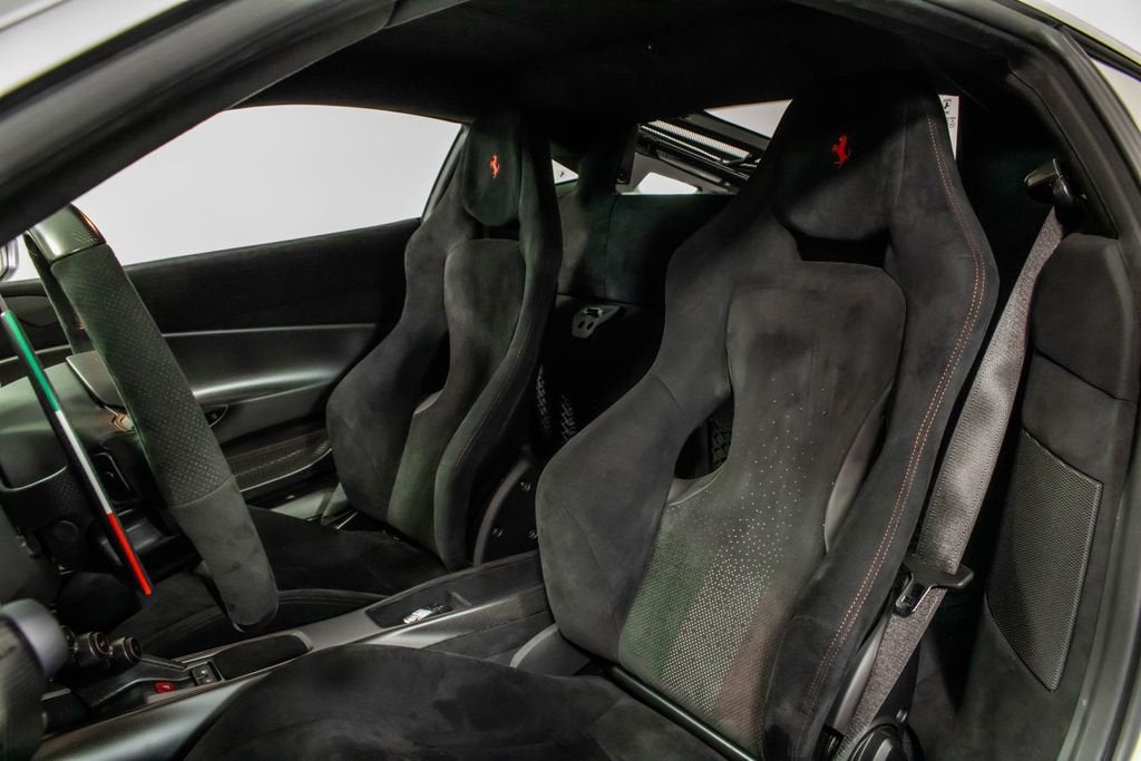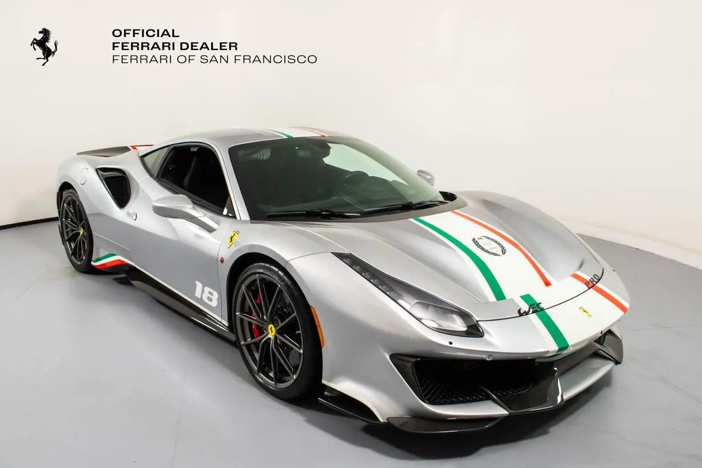 • Apple CarPlay Adaptive Frontlight System Red brake calipers Extensive carbon-fibre exterior and interior trim Carbon fibre engine covers, front flaps, side air splitter, rear extractor, front air vents, underdoor cover, instrument cover, sill trim, and upper centre console trim Titanium exhaust pipes Cavallino embroidered on headrests in Rosso Scuderia Ferrari shields Electrochromic mirrors with HomeLink Navigation with Bluetooth Front and rear parking cameras White rev counter Carbon fibre racing seats, large size Racing seat lifter High-power Hi-Fi system Ferrari Telemetry Suspension lifter Track inner cam kit Coloured steering wheel and stitching in Extra-Range/Rosso tones Description: The Ferrari 488 Pista Piloti is one of the most distinctive and emotionally charged expressions of Ferraris racing heritage, created as a tribute to the marques 2017 World Endurance Championship success. Finished in Argento Nurburgring, this Tailor Made example presents an especially striking interpretation of the Piloti Ferrari theme, pairing its motorsport-inspired livery with a purposeful yet sophisticated specification. The tricolour graphics, WEC and PRO logos, and race number 18 on both doors give the car an unmistakable competition-bred presence, while the extensive use of glossy carbon fibre reinforces its aggressive, lightweight character. Inside, the cabin is trimmed in Nero Alcantara, delivering the focused atmosphere expected of Ferraris most track-oriented special series cars, yet elevated by bespoke Tailor Made details throughout. Tricolour accents on the steering wheel, F1 paddles, and seat design tie the cockpit directly back to Ferraris endurance racing identity, while Rosso embroidery and custom detailing add contrast and craftsmanship. Carbon fibre racing seats, a white rev counter, telemetry, and the track inner cam kit underline the Pistas driver-centric intent, while features such as Apple CarPlay, navigation, parking cameras, and a suspension lifter bring welcome usability. This 488 Pista Piloti is a compelling blend of Ferrari Corse inspiration, Tailor Made exclusivity, and road-going performance, offering a specification that feels every bit as special as the cars place in Ferrari history.