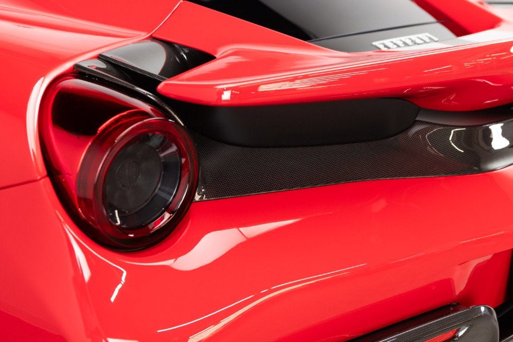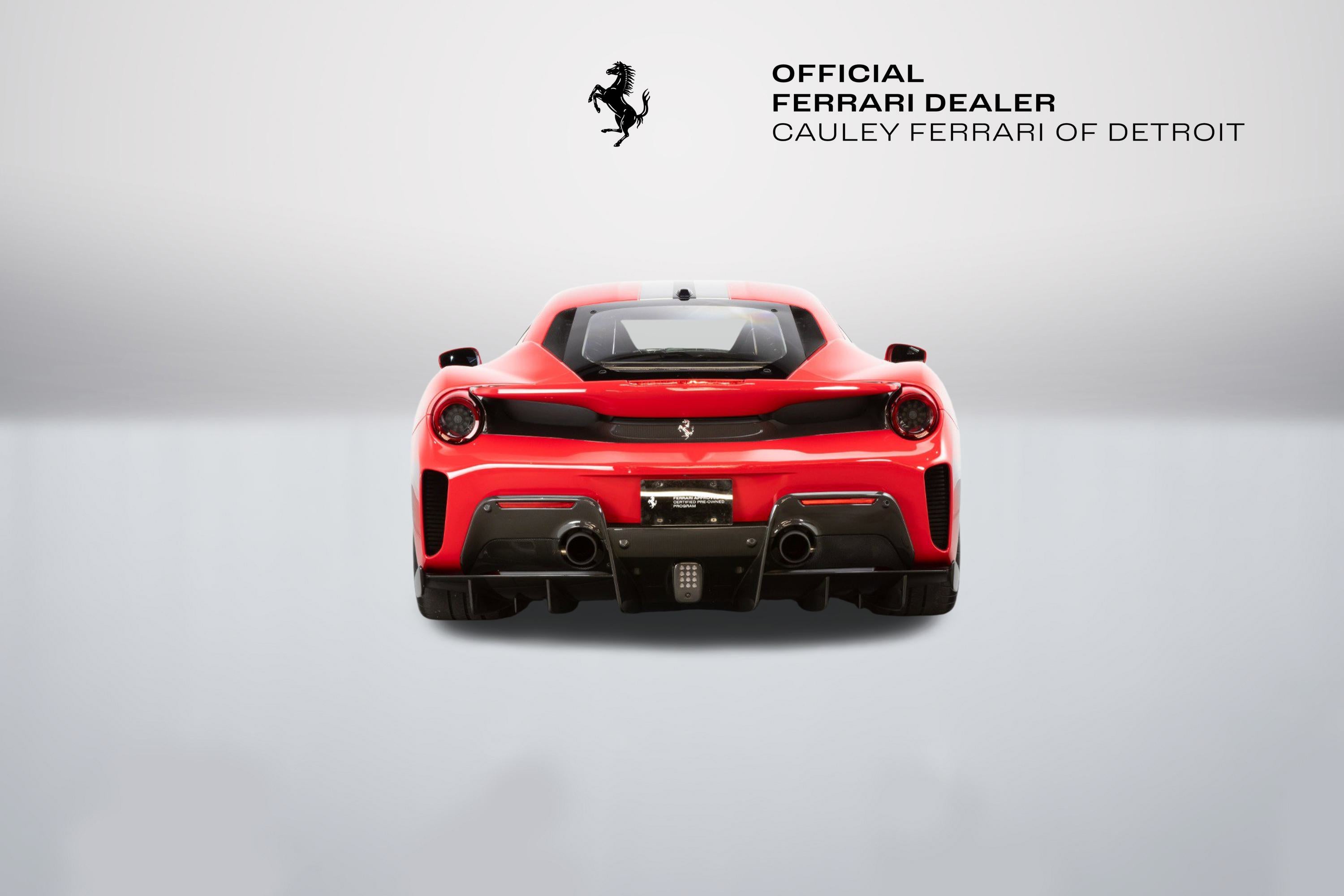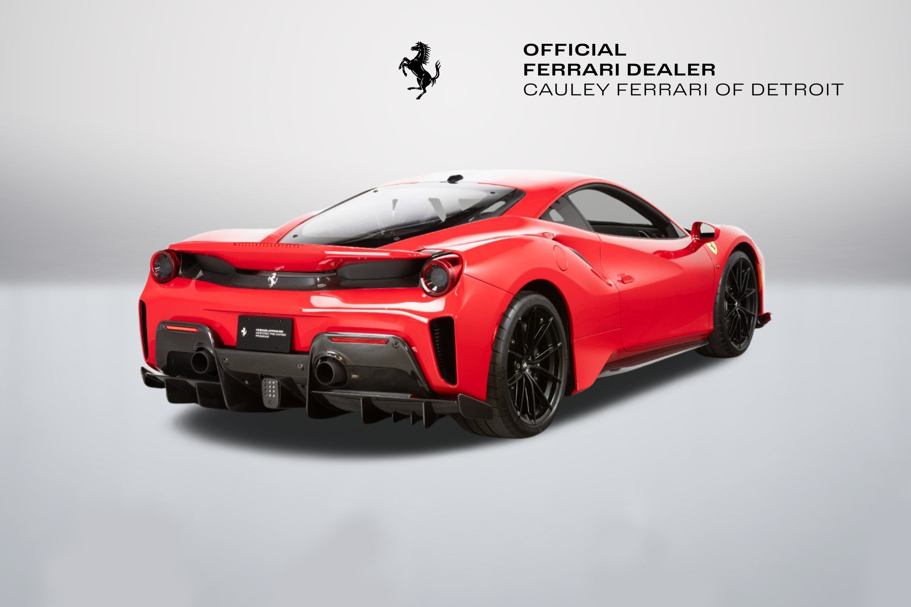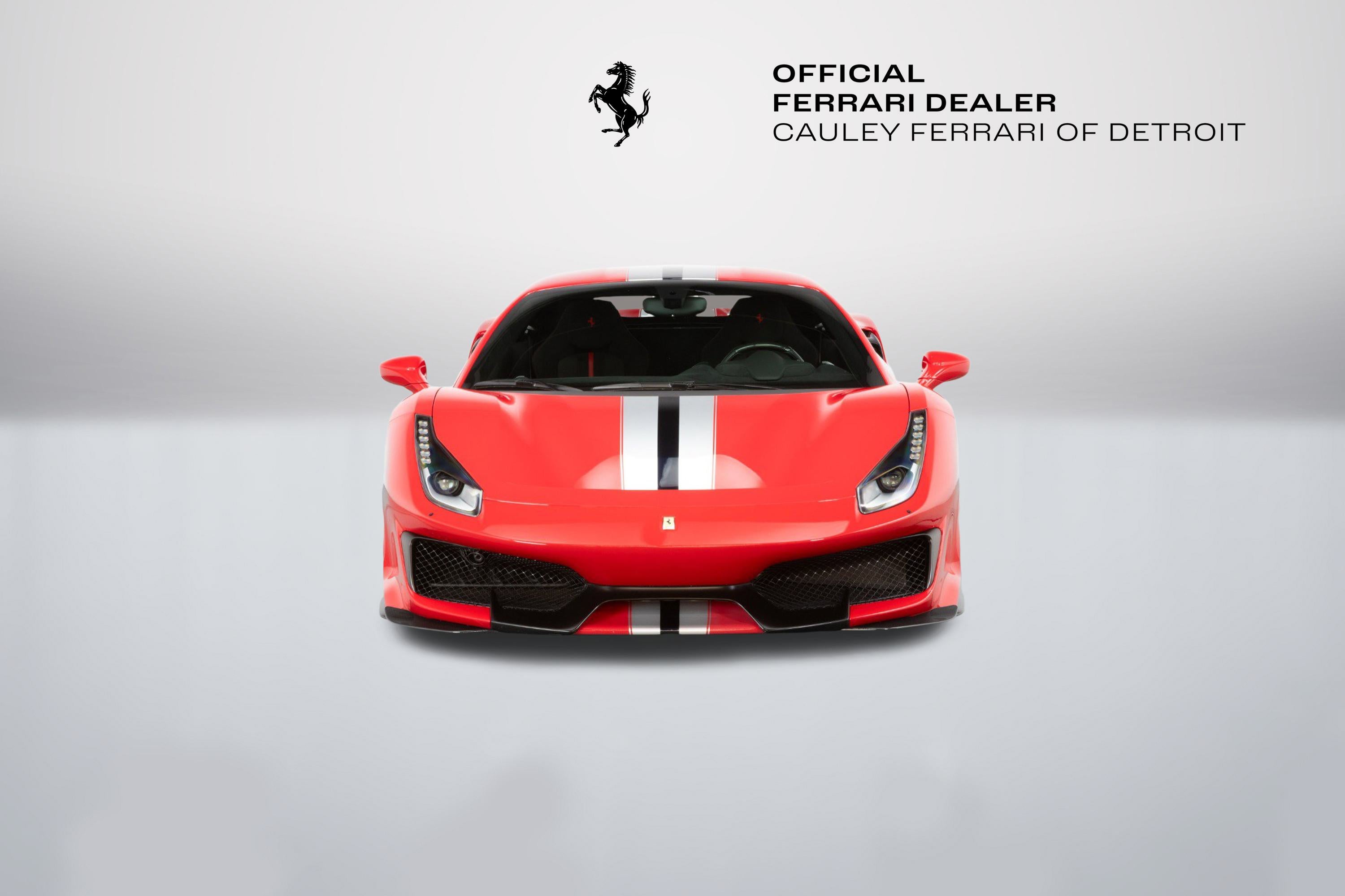 Cauley Ferrari of Detroit is very excited to offer you this gorgeous 2020 Ferrari 488 Pista in the iconic Rosso Corsa with an Argento Nurburgring and Blu America Livery over Nero Alcantara with a Central Stripe in Rosso Ferrari on the seats. It has all the right options - suspension lifter, carbon fiber options throughout the interior and exterior, and engine bay as well, and much more. It has completed 5,419 miles, and we are selling this as a Ferrari Approved Certified Pre-Owned Vehicle. It is currently under a Ferrari Bumper-to-Bumper Warranty through 4/3/27 and this will be followed by a 1-year Ferrari Power Warranty through 4/3/28. The free scheduled maintenance plan is in effect until 4/3/27. Please ask us about our financing and leasing options available through Ferrari Financial Services (FFS). We can offer you monthly financing as far out as 84 months, Balloon financing up to 60 months, as well as Open-End Leasing scenarios. FFS is available on all new and pre-owned Ferrari models. These flexible payment options make getting into a Ferrari easier than ever before. Let us show you how. Give us a call at 248-538-9600 to set up an appointment for a closer look or stop by our showroom in West Bloomfield, MI. Factory Options: - Adaptive Frontlight System - Carbon Fibre Side Air Splitter - Engine Covers in Carbon Fibre - Rear Diffuser in Carbon Fibre - Carbon Fibre Underdoor Cover - Coloured Inner Details Rosso Ferrari 130421 - Carbon Fibre Hub Caps - Suspension Lifter - Cavallino Stitched on Headrest Rosso 0504 - Black Tailpipe Tips - Carbon Fibre Rear Moulding - High Emotion Low Emission - 'Scuderia Ferrari' Shields - Inner/Outer Electrochromic Mirrors + Homelink - Radio/NAV System + Bluetooth - Parking Camera - Two-Tone Stripe Argento Nurburgring - 20" Dark Forged Wheels - Red Rev Counter - Carbon Fibre Racing Seats Large Size Seats - Racing Seat Lifter - Integrated Audio System - Coloured Special Stitching Rosso 0504 The Ferrari 488 Pista is a track-focused, limited-edition supercar at the time featured the most powerful V8 engine ever produced by Ferrari, that boasted exceptional performance with a heavy emphasis on lightweight design and aerodynamic efficiency, drawing heavily from the company's racing experience with the 488 Challenge and GTE cars; its name translates to "track" in Italian, signifying its pure racing pedigree and exceptional handling capabilities on the circuit.