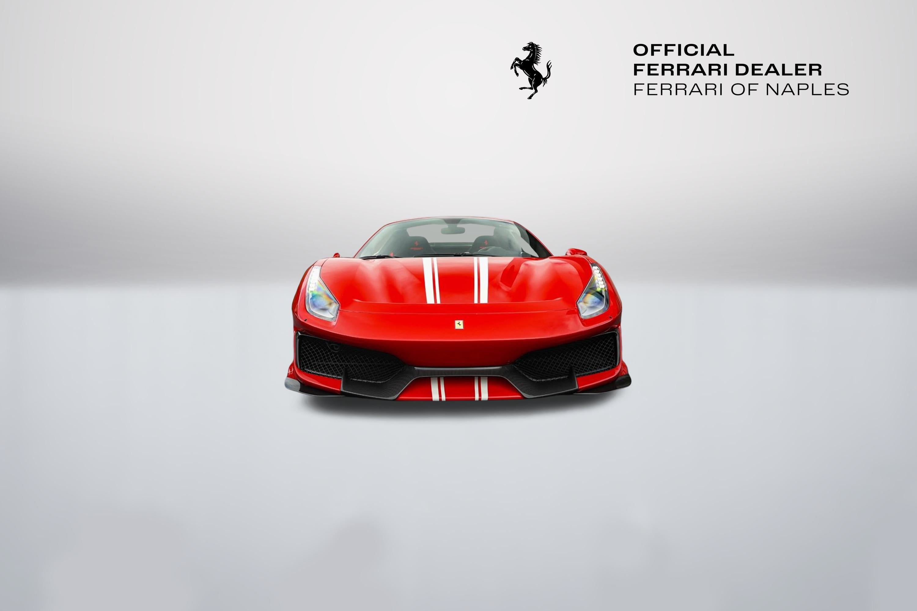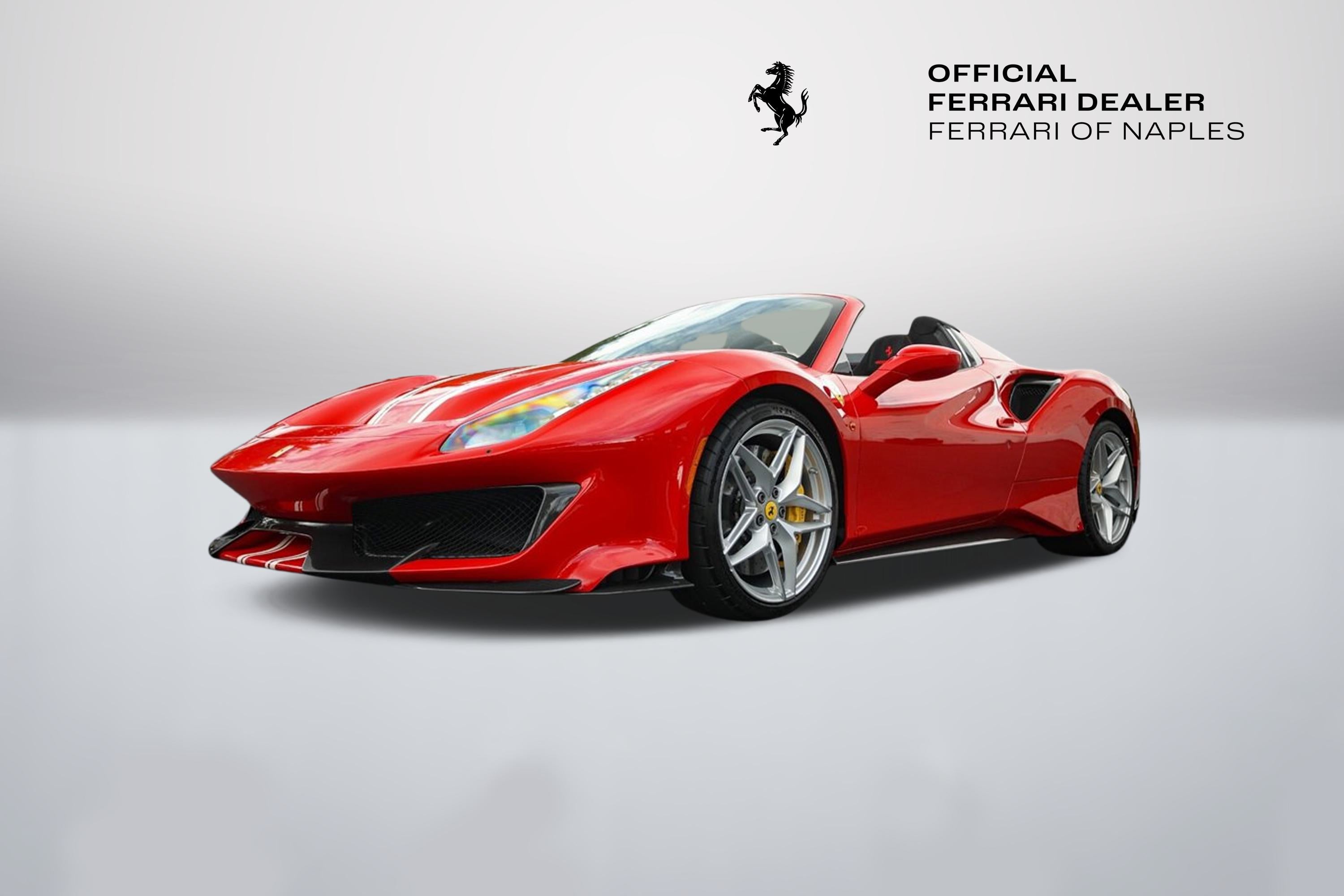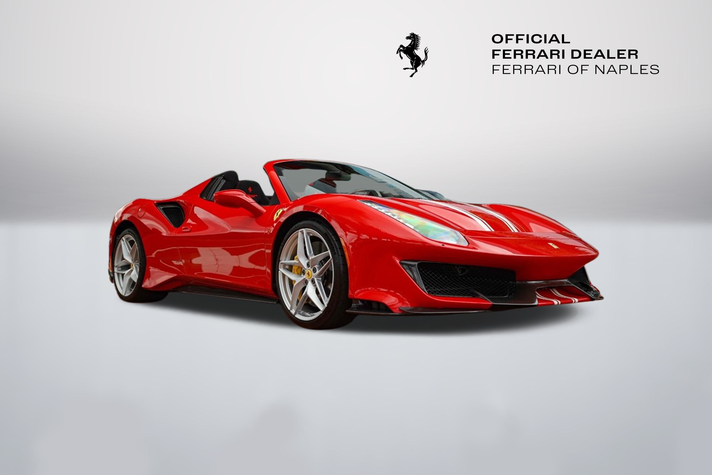 2019 Ferrari 488 Pista Spider Rosso Corsa with Nero Alcantara Interior & Bianco Stripe 4,054 Miles Ferrari Approved Ferrari of Naples is proud to present this stunning 2019 Ferrari 488 Pista Spider, finished in classic Rosso Corsa accented by a Bianco racing stripe, and trimmed in a purposeful Nero Alcantara interior with Rosso details. With only 4,054 miles from new and Ferrari Approved certification, this Pista Spider exemplifies the perfect blend of track-derived engineering and open-air emotion. Unveiled as the most powerful V8 convertible in Ferrari history at the time, the 488 Pista Spider carries forward Maranellos motorsport heritage in an uncompromising road-going form. Powered by the award-winning 3.9-liter twin-turbocharged V8, producing 710 horsepower and 568 lb-ft of torque, it sprints from 060 mph in just 2.8 seconds, with a top speed of over 211 mph. Lightweight materials, F1-inspired aerodynamics, and a dual-clutch F1 transmission create a visceral, pure driving experience. The Pista Spider combines breathtaking open-top performance with track precision--its very name, Pista (Italian for track), pays homage to Ferraris championship-winning lineage. Factory Options and Highlights Exterior and Aerodynamics Giallo Modena Brake Calipers (CALY) Carbon Fibre Front Spoiler and Aero Flaps (CEFS) Carbon Fibre Lateral Air Intakes (CEIS) Carbon Fibre Diffuser (CEXD) Carbon Fibre Lateral Spoilers (CEXG) Carbon Fibre Under-Door Trim (CEXS) Rear Segment in Carbon Fibre (GRDC) Black Ceramic Coated Tailpipes (EXAB) Scuderia Ferrari Shields on Fenders (LOGO) Racing Livery in Bianco (PNT7 Extracampionario) 20-inch Forged Wheels in Argento Nurburgring (RMSV) Interior and Cockpit Full Nero Alcantara Interior with Rosso Ferrari Details (CLDT) Carbon Fibre Rear Pillars and Trim (CERF) Yellow Tachometer Dial (RPMY) Rosso Cavallino Embroidered Headrests (EMPH) Carbon Fibre Racing Seats (RSCH, Size Large) Manual Seat Height Ratchet Adjustment (RSES) Rosso Special Contrast Stitching (STC2) Custom Carpet Color (CRPT Extracampionario) Technology and Comfort AFS Adaptive Front light System (AFS1) Front Suspension Lift (ELEV) Satellite Navigation (NAVC) Rear Parking Camera (PAC1) Integrated Audio System (SND2) HELE System (High Emotion Low Emission) Functional Equipment Without Navigator (FNEQ) As the official Ferrari dealer of Southwest Florida, Ferrari of Naples offers an exclusive selection of Ferrari models, backed by unparalleled service and expertise. Our commitment to excellence ensures that each vehicle meets the highest standards of quality and performance. To schedule a private viewing or request a personalized video tour of this 2019 Ferrari 488 Pista Spider, please contact us: Phone: (239) 256-1400 Email: smora@newcountry.