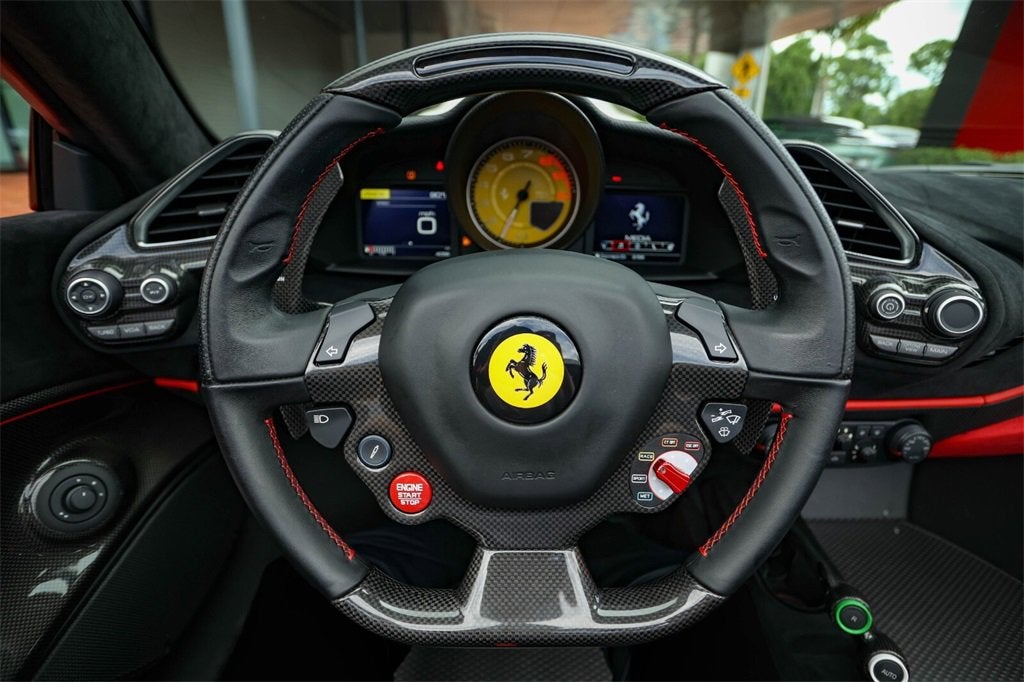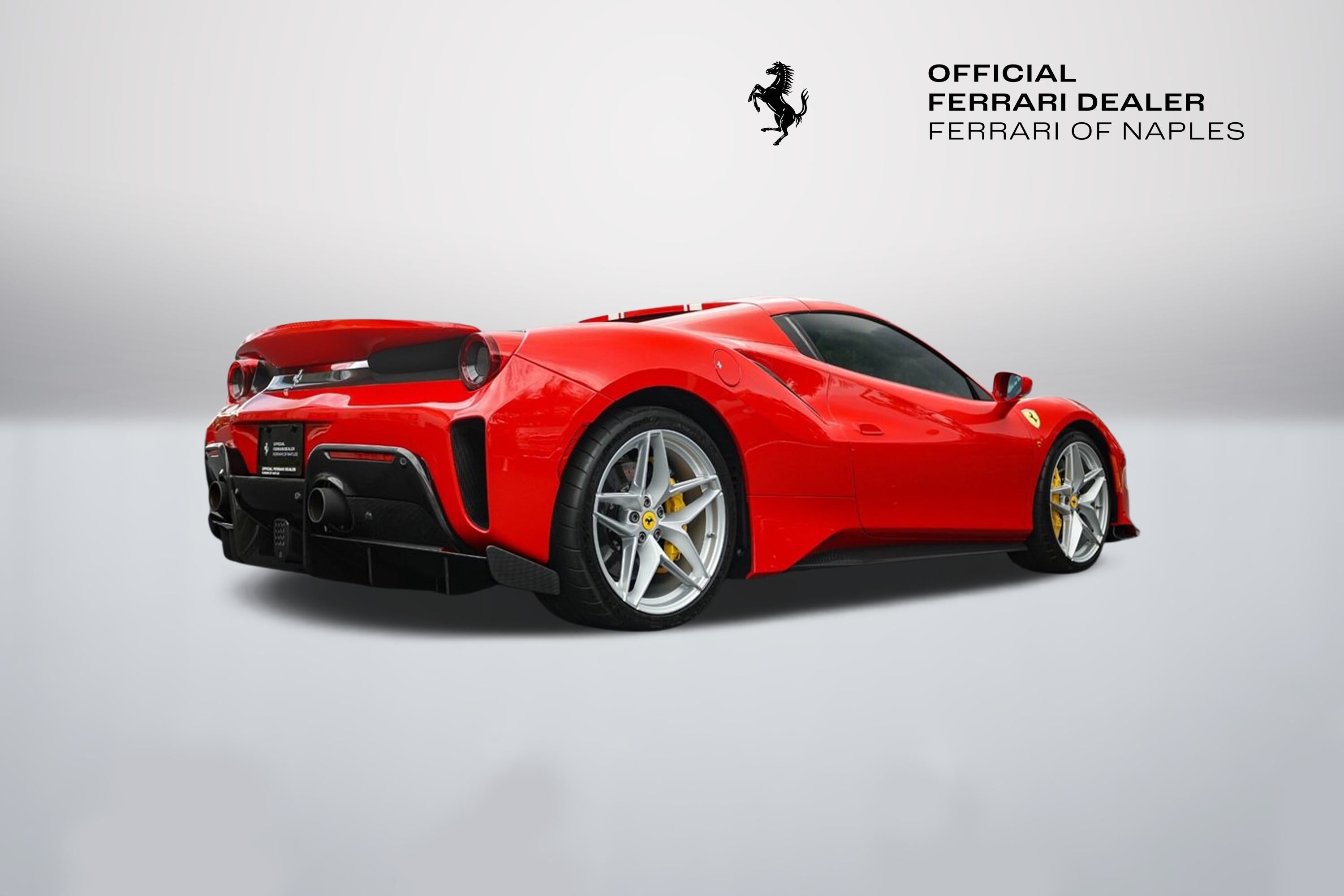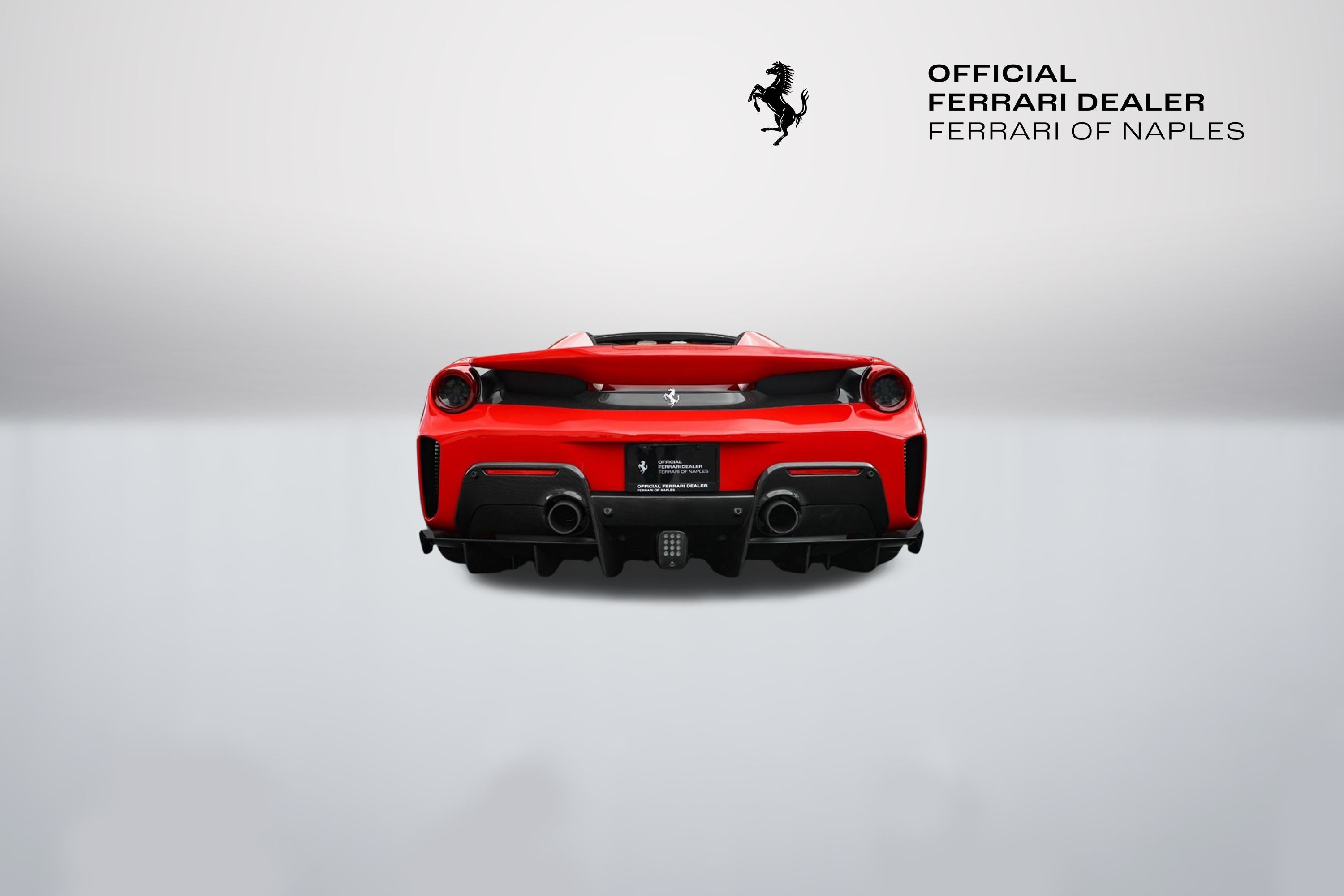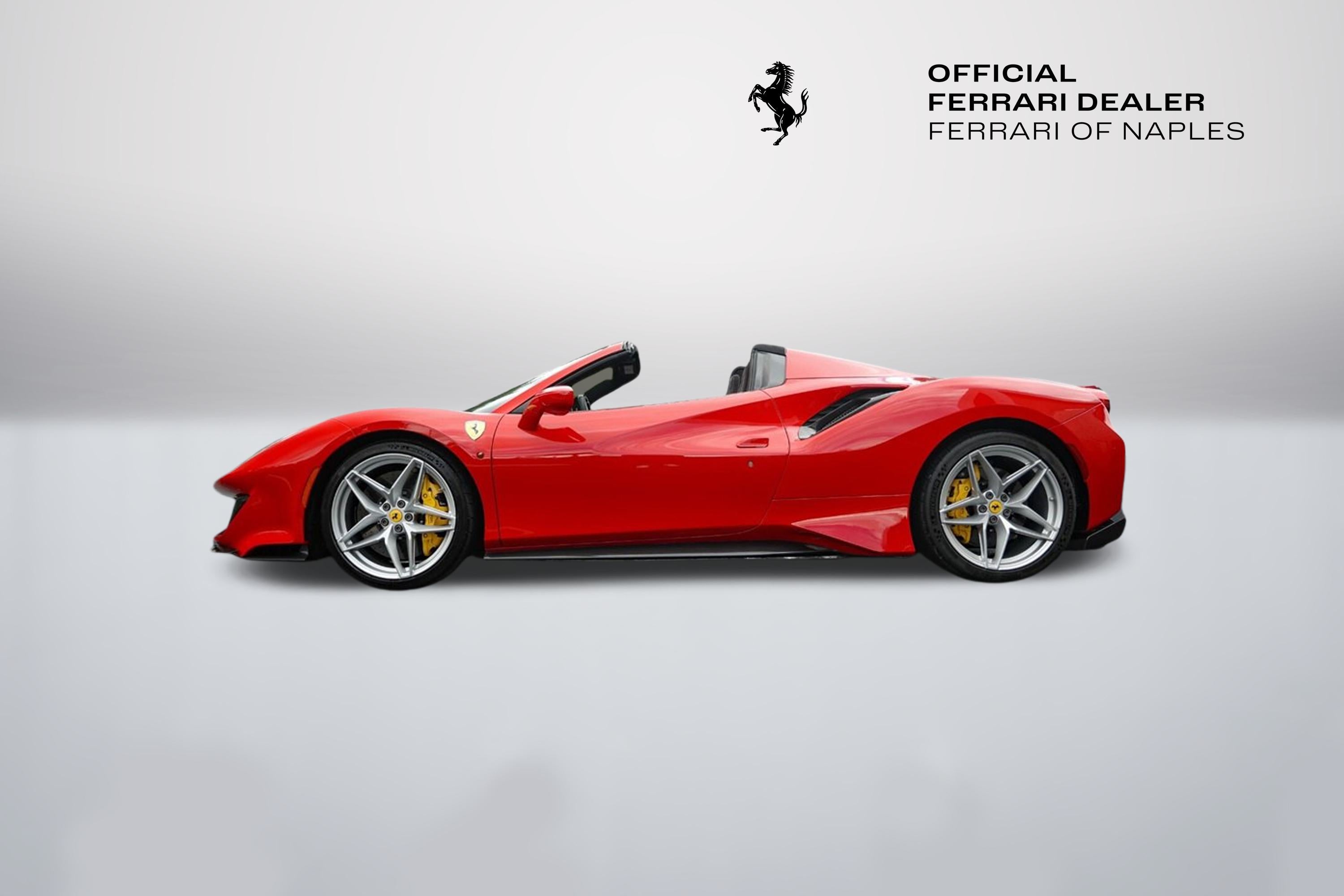 2019 Ferrari 488 Pista Spider Rosso Corsa with Nero Alcantara Interior & Bianco Stripe 4,054 Miles Ferrari Approved Ferrari of Naples is proud to present this stunning 2019 Ferrari 488 Pista Spider, finished in classic Rosso Corsa accented by a Bianco racing stripe, and trimmed in a purposeful Nero Alcantara interior with Rosso details. With only 4,054 miles from new and Ferrari Approved certification, this Pista Spider exemplifies the perfect blend of track-derived engineering and open-air emotion. Unveiled as the most powerful V8 convertible in Ferrari history at the time, the 488 Pista Spider carries forward Maranellos motorsport heritage in an uncompromising road-going form. Powered by the award-winning 3.9-liter twin-turbocharged V8, producing 710 horsepower and 568 lb-ft of torque, it sprints from 060 mph in just 2.8 seconds, with a top speed of over 211 mph. Lightweight materials, F1-inspired aerodynamics, and a dual-clutch F1 transmission create a visceral, pure driving experience. The Pista Spider combines breathtaking open-top performance with track precision--its very name, Pista (Italian for track), pays homage to Ferraris championship-winning lineage. Factory Options and Highlights Exterior and Aerodynamics Giallo Modena Brake Calipers (CALY) Carbon Fibre Front Spoiler and Aero Flaps (CEFS) Carbon Fibre Lateral Air Intakes (CEIS) Carbon Fibre Diffuser (CEXD) Carbon Fibre Lateral Spoilers (CEXG) Carbon Fibre Under-Door Trim (CEXS) Rear Segment in Carbon Fibre (GRDC) Black Ceramic Coated Tailpipes (EXAB) Scuderia Ferrari Shields on Fenders (LOGO) Racing Livery in Bianco (PNT7 Extracampionario) 20-inch Forged Wheels in Argento Nurburgring (RMSV) Interior and Cockpit Full Nero Alcantara Interior with Rosso Ferrari Details (CLDT) Carbon Fibre Rear Pillars and Trim (CERF) Yellow Tachometer Dial (RPMY) Rosso Cavallino Embroidered Headrests (EMPH) Carbon Fibre Racing Seats (RSCH, Size Large) Manual Seat Height Ratchet Adjustment (RSES) Rosso Special Contrast Stitching (STC2) Custom Carpet Color (CRPT Extracampionario) Technology and Comfort AFS Adaptive Front light System (AFS1) Front Suspension Lift (ELEV) Satellite Navigation (NAVC) Rear Parking Camera (PAC1) Integrated Audio System (SND2) HELE System (High Emotion Low Emission) Functional Equipment Without Navigator (FNEQ) As the official Ferrari dealer of Southwest Florida, Ferrari of Naples offers an exclusive selection of Ferrari models, backed by unparalleled service and expertise. Our commitment to excellence ensures that each vehicle meets the highest standards of quality and performance. To schedule a private viewing or request a personalized video tour of this 2019 Ferrari 488 Pista Spider, please contact us: Phone: (239) 256-1400 Email: smora@newcountry.