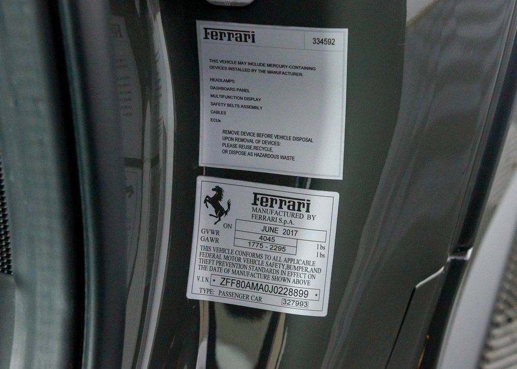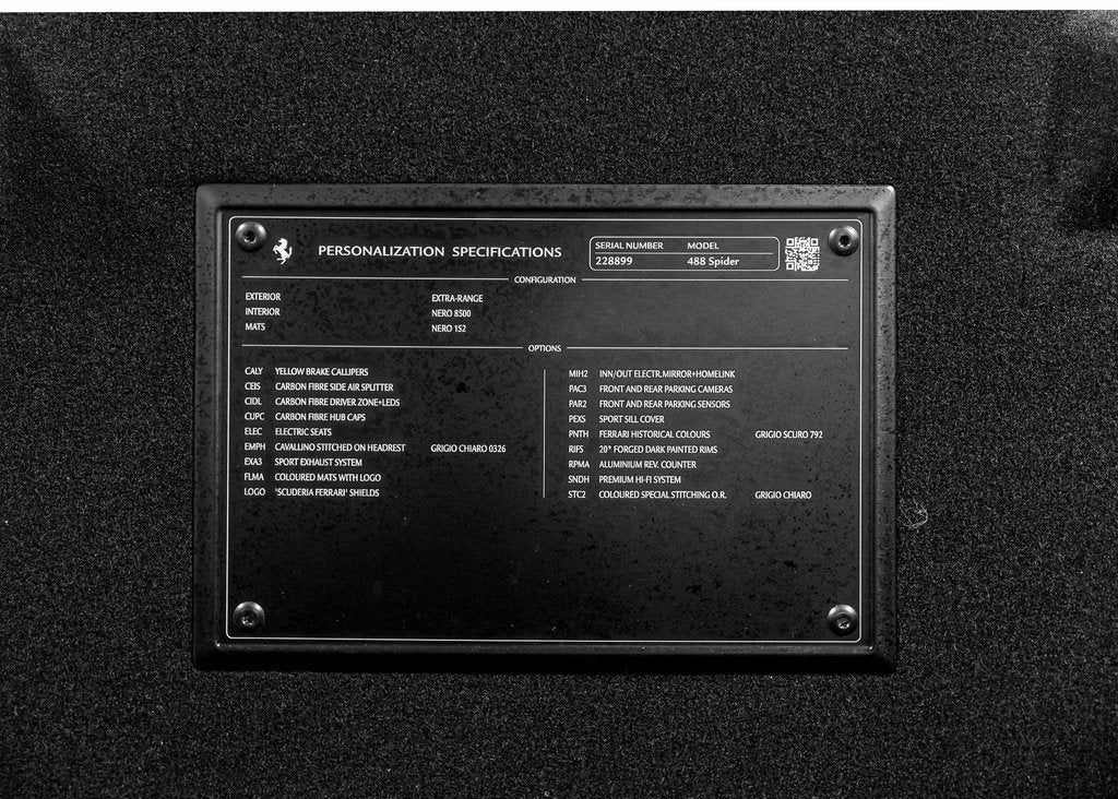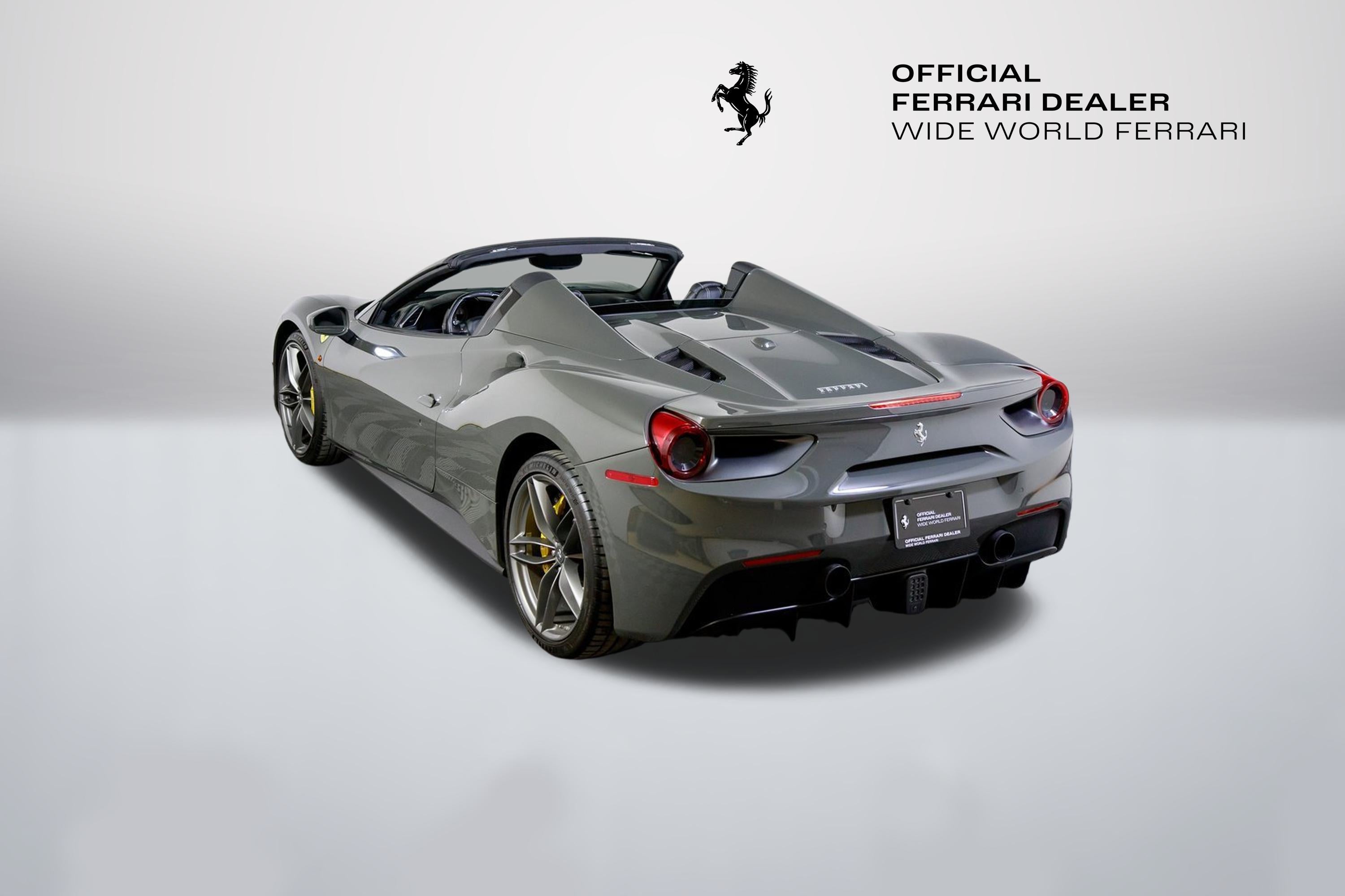 SALE PENDING! Wide World Ferrari is proud to present this beautifully specified 2018 Ferrari 488 Spider, showing just 7,663 miles and supported by a clean Carfax. A thrilling embodiment of Ferraris mid-engine legacy, the 488 Spider delivers explosive twin-turbo V8 performance, surgically precise handling, and the pure exhilaration of open-air driving wrapped in one of Maranellos most timeless designs. Finished in Grigio Scuro, a historical Ferrari color, this Spider exudes understated sophistication with a decidedly aggressive edge. The exterior is elevated by carefully selected performance accents, including carbon fibre lateral air intake splitters, carbon fibre wheel centre caps, sports external sill trim panels, and sports tailpipe tips. 20 forged wheels anchor the stance, while Giallo Modena brake calipers add a striking motorsport contrast. Iconic Scuderia Ferrari shields on the fenders complete the unmistakable Ferrari presence. The interior is a refined blend of performance and luxury, finished in Nero and accented with special stitching in Grigio Chiaro. The driver-focused cockpit features carbon fibre trim throughout the driver zone, highlighted by the carbon fibre steering wheel with LED shift indicatorsa true Ferrari hallmark. Electric seats provide comfort and adjustability, while embroidered Cavallino emblems on the headrests in Grigio Chiaro add a bespoke touch. An aluminium tachometer dial face reinforces the cars motorsport DNA, complemented by overmats with embroidered vehicle logo for a cohesive finish. Technology and usability are seamlessly integrated, featuring a Premium Hi-Fi system, front and rear parking cameras, and front parking sensors for added confidence. Inner and outer electrochromic rear-view mirrors with HomeLink enhance everyday convenience without detracting from the driving experience. Additionally, the car is Ferrari Approved and eligible for up to a 2-year Ferrari Certification warranty (available at an additional charge). As the only 4-Time Cavallino Winning Ferrari Center in the tri-state area and one of the first Ferrari Centers in North America, we pride ourselves on exceptional service. We assist with all aspects of your purchase, including trade-ins, shipping, registration, non-reported financing, and customizations. Conveniently located in Rockland County, just under 30 miles from Manhattan. For more information, email us at ferrarivip@newcountry.com or call 845-682-0129.