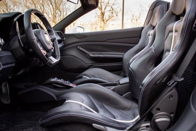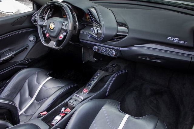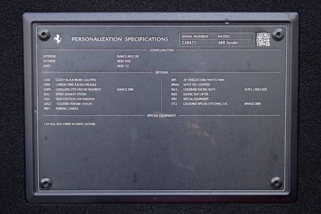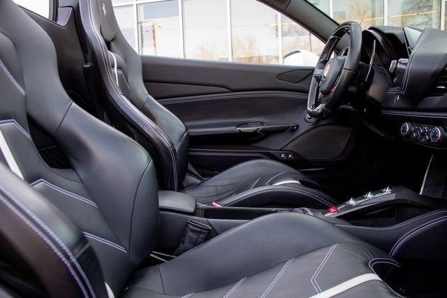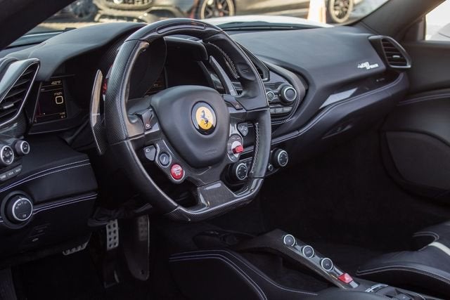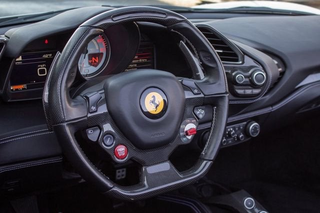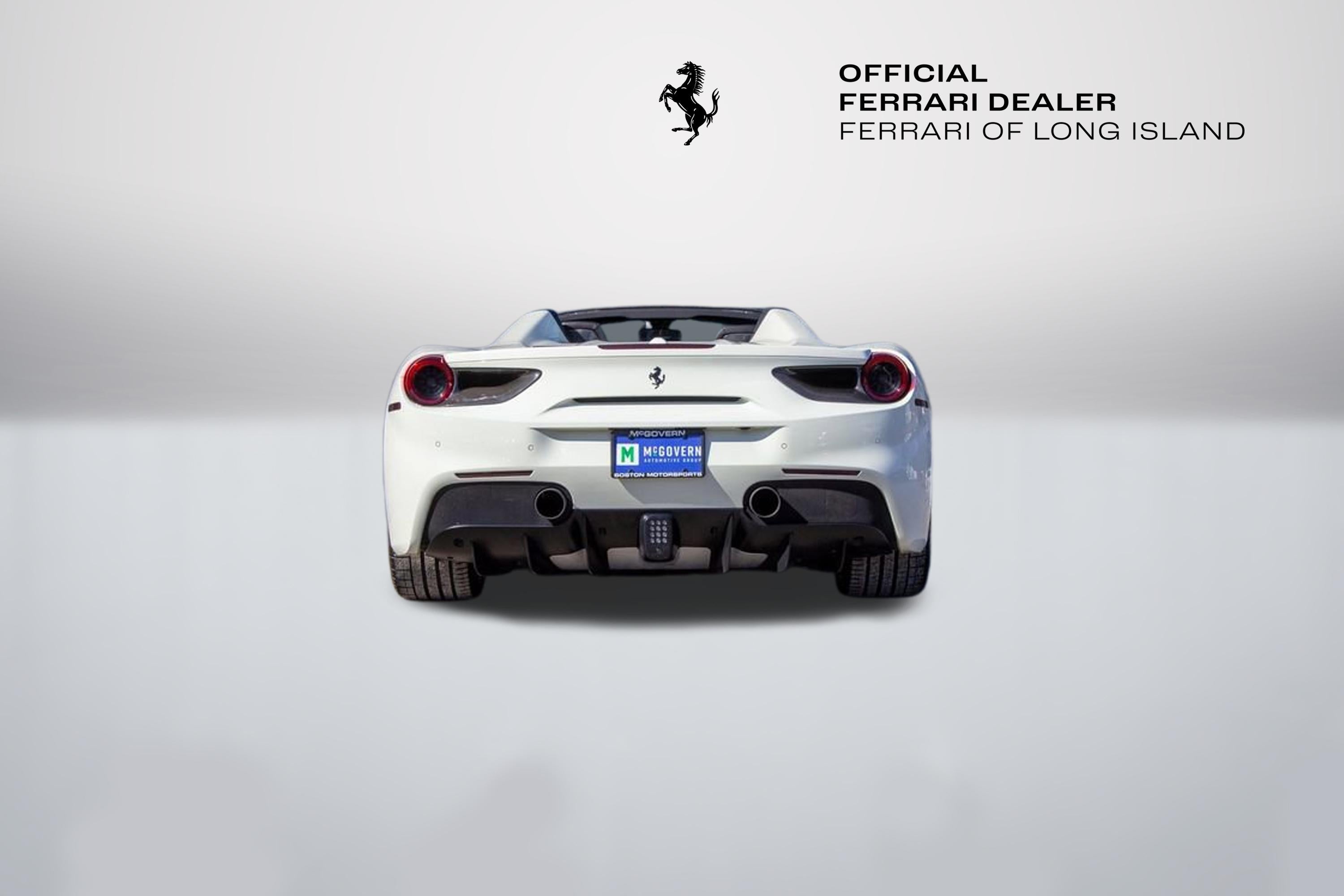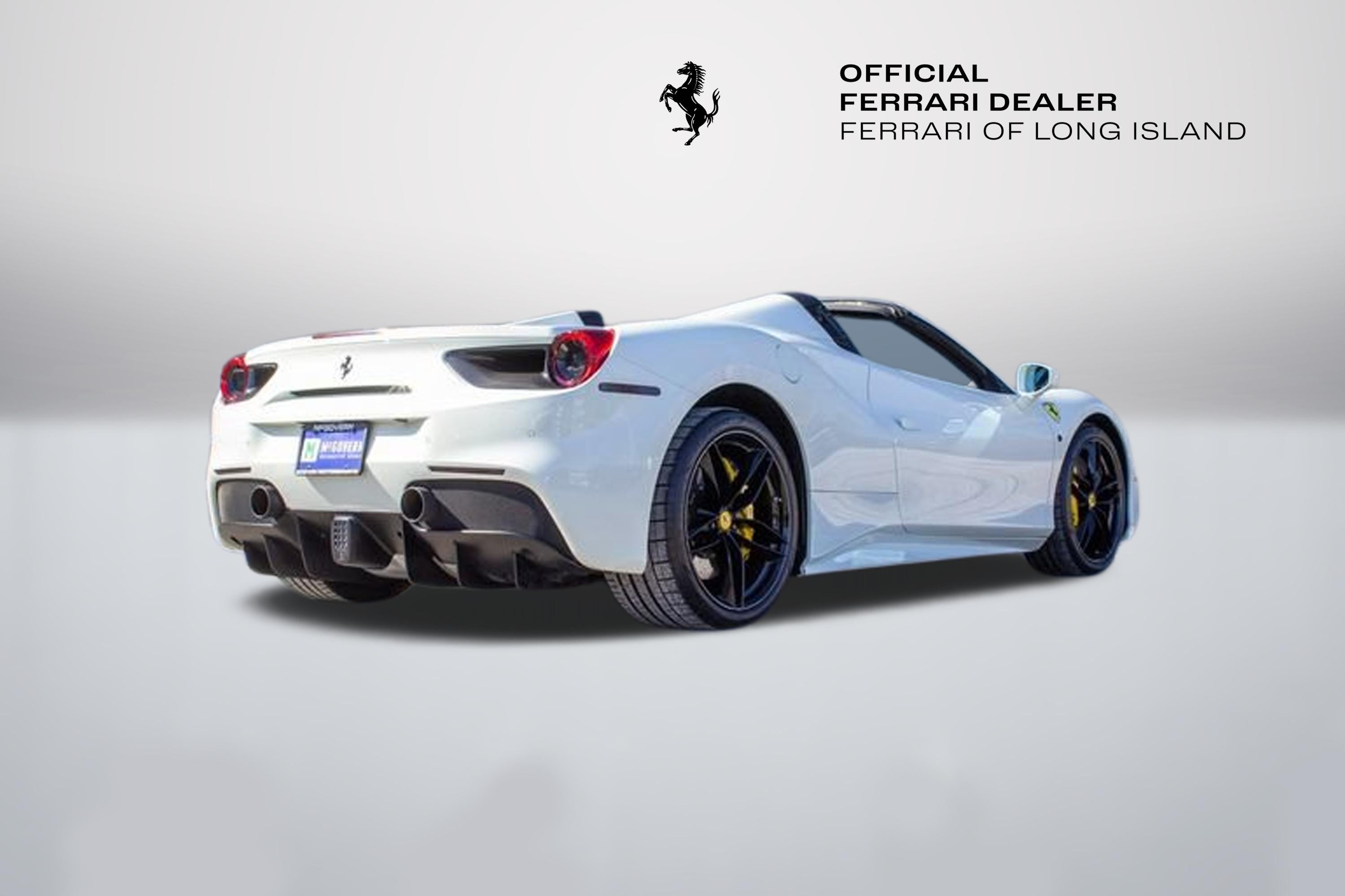 Ferrari of Long Island is proud to present this stunning Ferrari 488 Spider, finished in Bianco Avus over a Nero interior, accented by Bianco contrast stitching. This highly optioned example is equipped with a host of performance-focused features, including Scuderia Ferrari fender shields, gloss black brake calipers, and 20-inch forged wheels in a matte Grigio Corsa finish. Carbon fibre racing seats in the Goldrake style and a carbon fibre racing package further enhance its driver-focused character, while sport tailpipe tips complete the cars aggressive and unmistakable presence. Inside, the cabin blends performance with refined technology, featuring a white tachometer dial face and a rear parking camera for added convenience and everyday usability. This vehicle has passed a comprehensive multi-point inspection performed by our factory-trained technicians and is enrolled in the Ferrari Approved Certified Pre-Owned Program. This program offers up to two additional years of Ferrari Power Approved Warranty coverage. Please contact Ferrari of Long Island today for additional information or to schedule your private viewing.