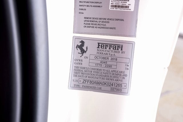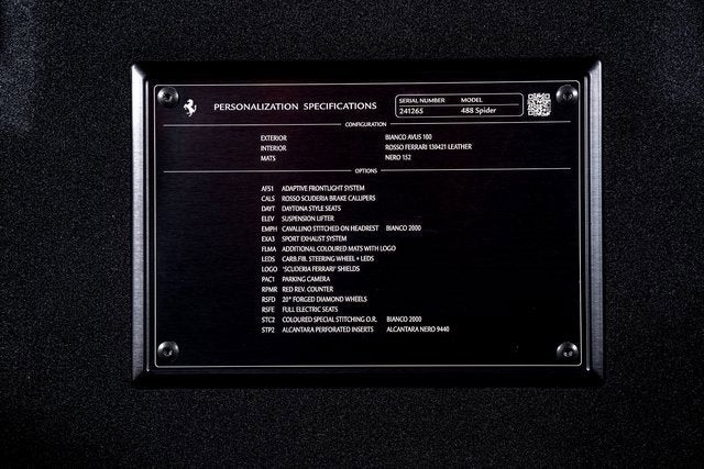 Ferrari Maserati of Long Island is proud to present this stunning 2019 Ferrari 488 Spider, powered by a 3.9L V8 engine paired with a 7-speed automatic transmission and rear-wheel drive. Finished in Bianco Avus over Rosso Ferrari Daytona Style Seats, this beautifully specified 488 Spider features a clean CARFAX and below-market average mileage. Fully serviced and professionally detailed, it is available now for viewing in our Long Island showroom. This example is exceptionally well optioned, featuring the Adaptive Front Light System, Rosso Scuderia brake calipers, and the iconic Scuderia Ferrari fender shields. Performance and driving dynamics are enhanced by the suspension lifter and sport exhaust system, delivering both everyday usability and an unmistakable Ferrari soundtrack. It rides on striking 20" Forged Diamond Wheels, completing its aggressive yet elegant stance. Inside, the cabin showcases Daytona Style Seats with full electric adjustment, Alcantara perforated inserts, colored special stitching, and additional colored mats with logo. A carbon fiber steering wheel with LEDs and a red rev counter further emphasize the cars motorsport heritage, while the Cavallino stitched on the headrests adds a refined finishing touch. A parking camera provides added convenience. Blending open-top exhilaration, breathtaking performance, and unmistakable Ferrari design, this 2019 Ferrari 488 Spider represents an exceptional opportunity for enthusiasts seeking a highly optioned and meticulously maintained example. Contact us today for additional information or to schedule your private viewing.