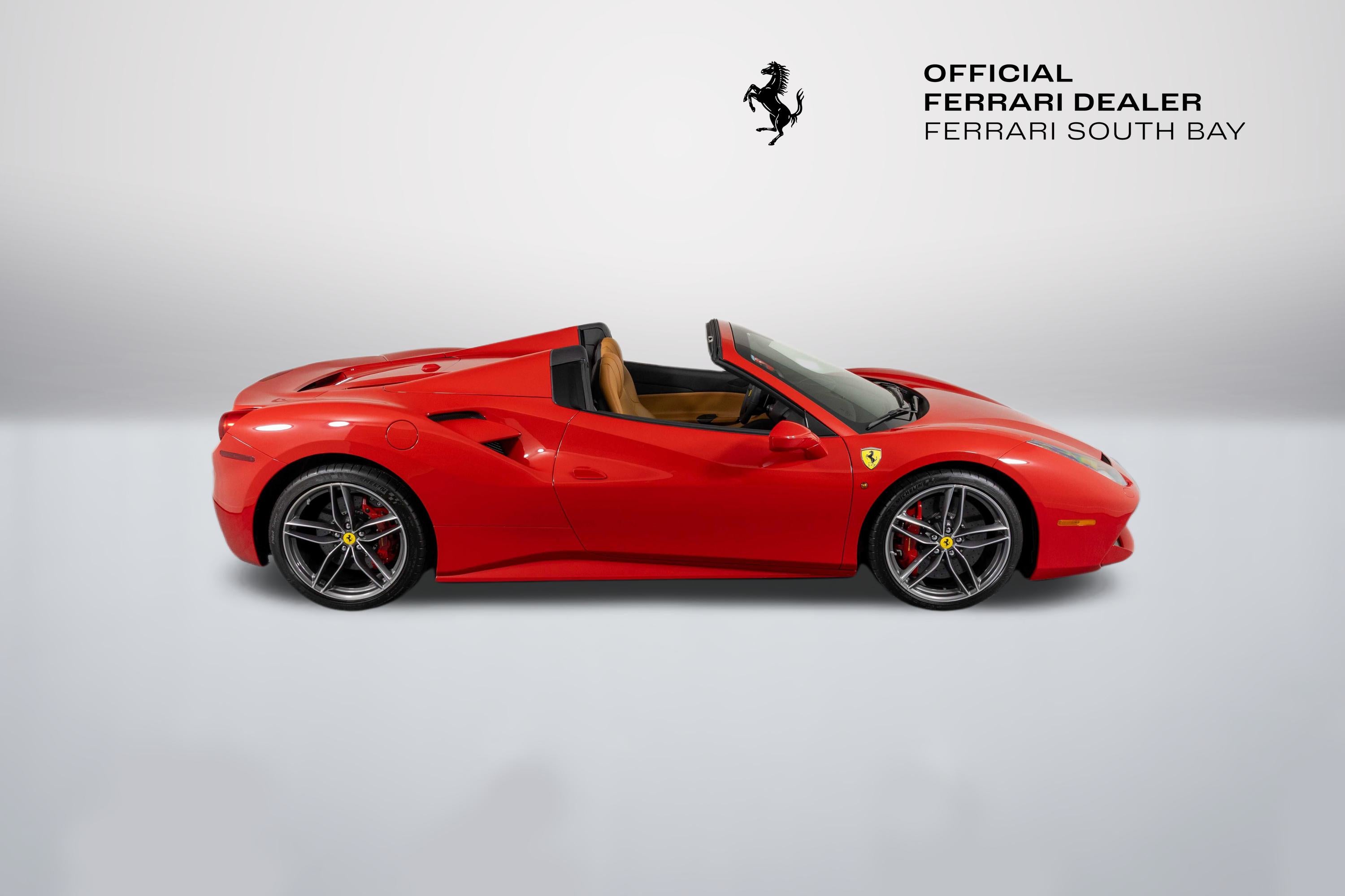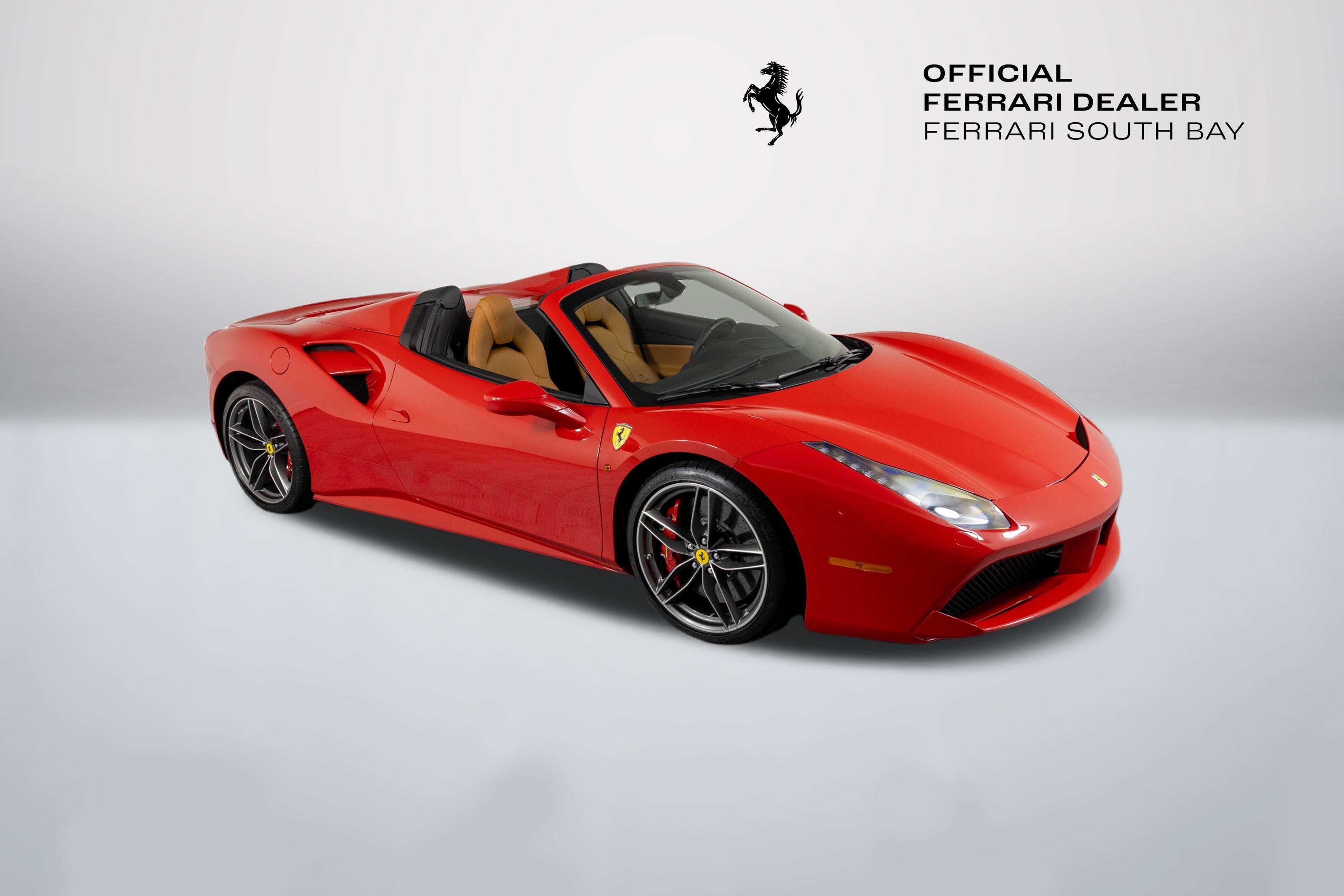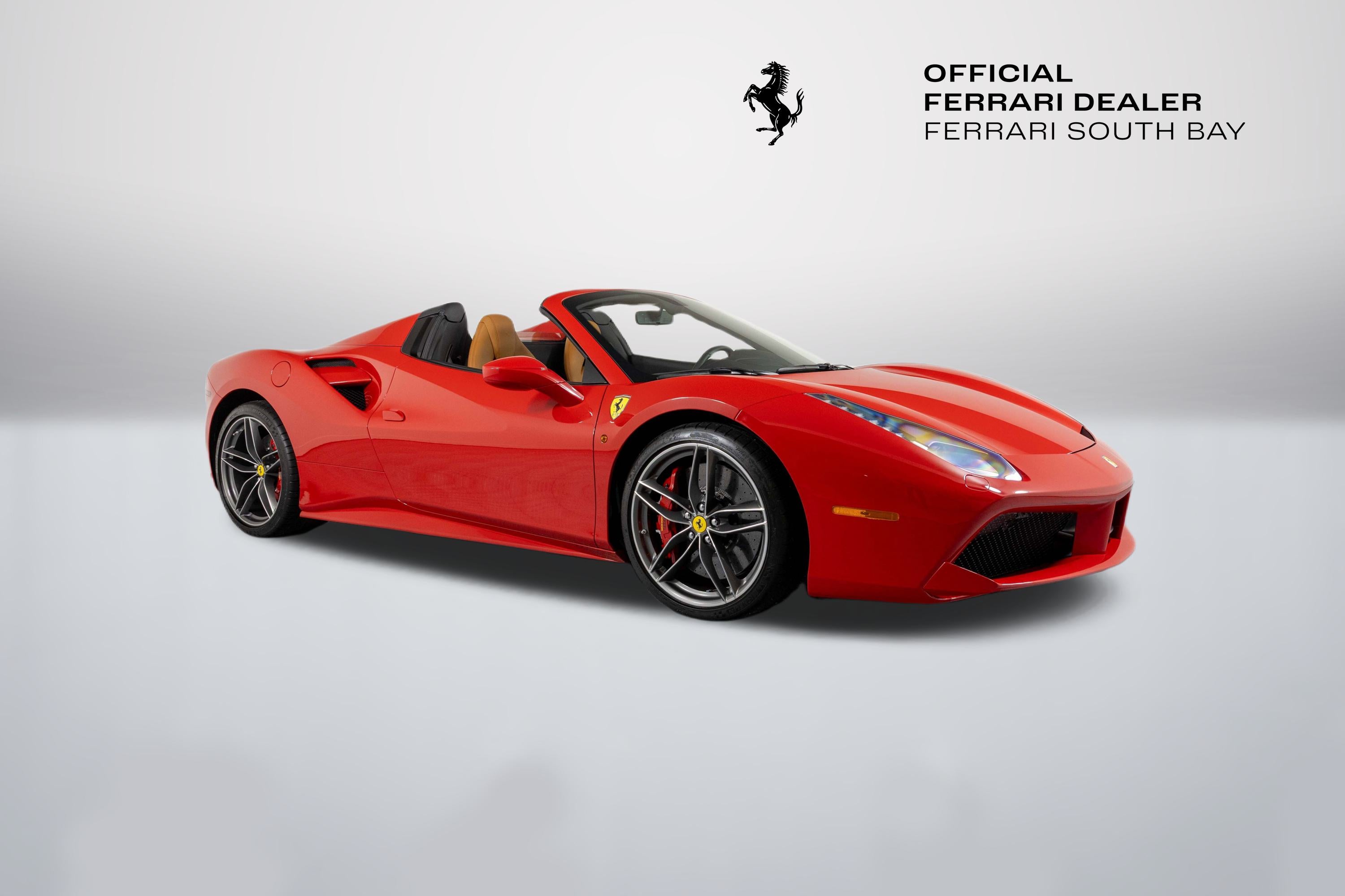 Ferrari South Bay is thrilled to offer this beautiful delivery-mile 488 Spider, finished in Classic Rosso Corsa with equally-classic Cuoio leather interior. With only 59 miles since initial delivery, this 488 Spider is all but technically new! The exterior is finished in Ferrari's iconic Rosso Corsa and has Scuderia Ferrari Shields proudly positioned on the front fenders. 20 Forged Diamond-Cut wheels surround Carbon Ceramic Brakes with Red Calipers. The Interior of this 488 Spider is trimmed in time-honored Cuoio Leather accented with Rosso. This 488 Spider is offered complete with both keys, tools, car cover and battery tender. It has passed Ferrari's 101-Point Certification and is eligible for Ferrari's Power16 Warranty at time of purchase. If you'd like to know more about this sensational 488 Spider, please contact one of our knowledgeable sales staff. Ferrari South Bay is proudly part of Holand Automotive Group, one of North America’s leading luxury automotive retailers. We offer nationwide shipping, trade-in opportunities, financing, client consignments, and world-class delivery service. Contact us today to explore ownership of this remarkable Ferrari. Please visit us at 23305 Hawthorne Blvd, Torrance, CA 90505, or call us at (888) 578-8767.